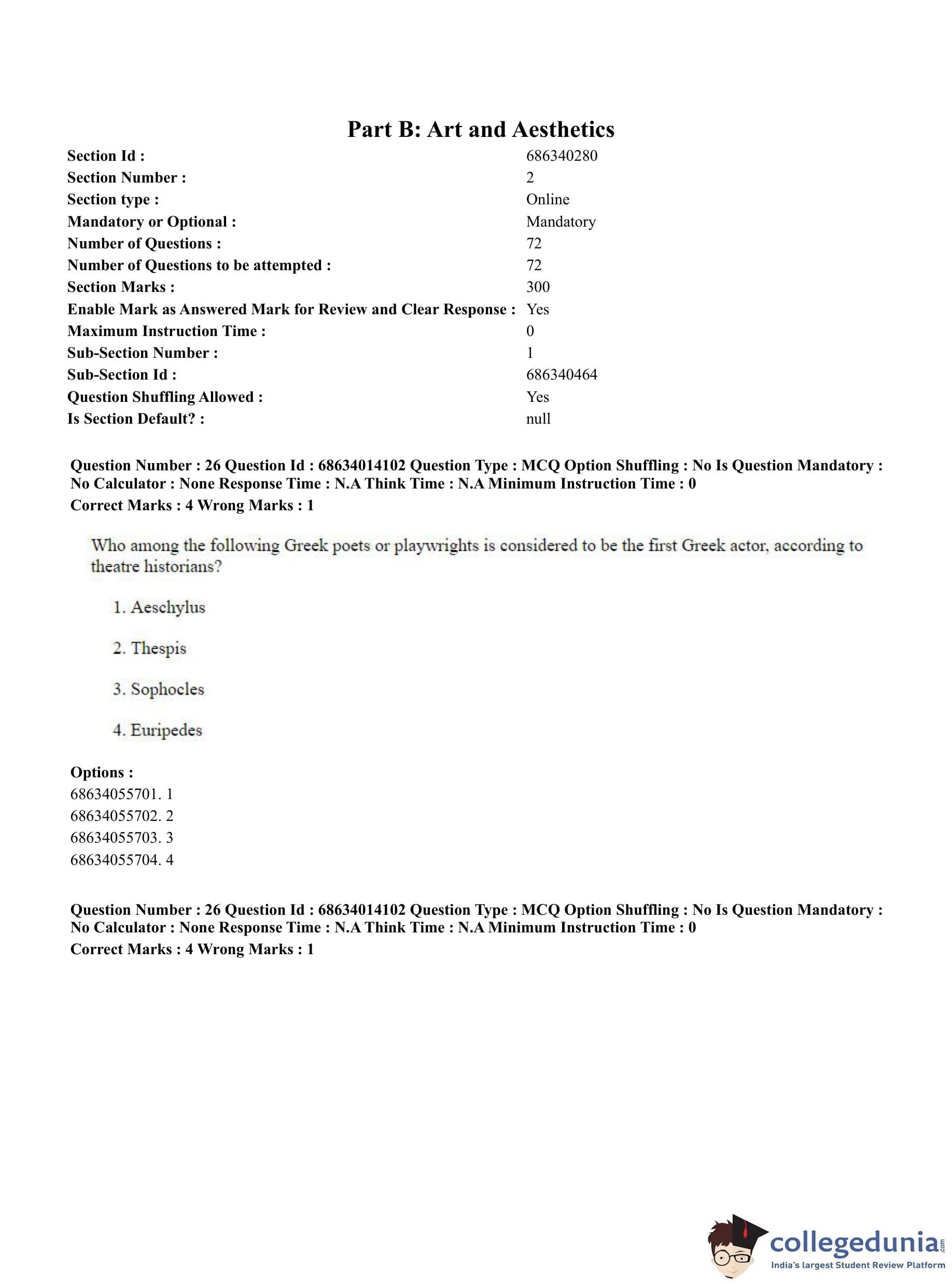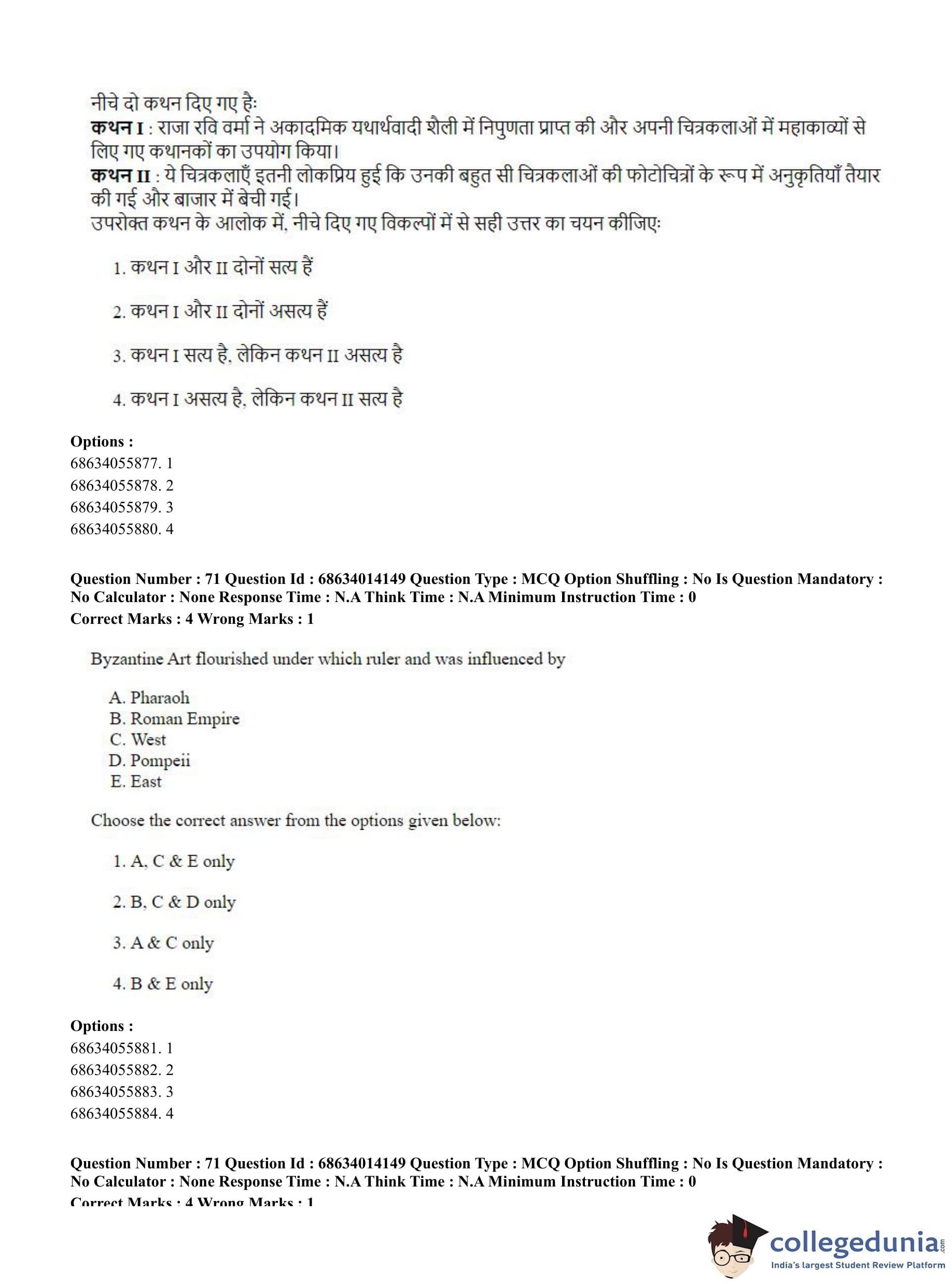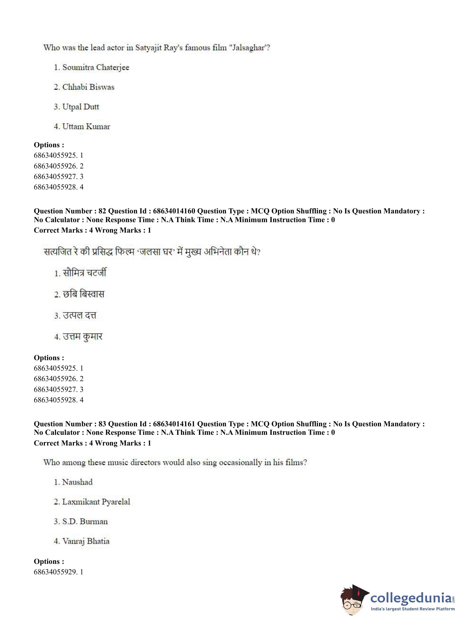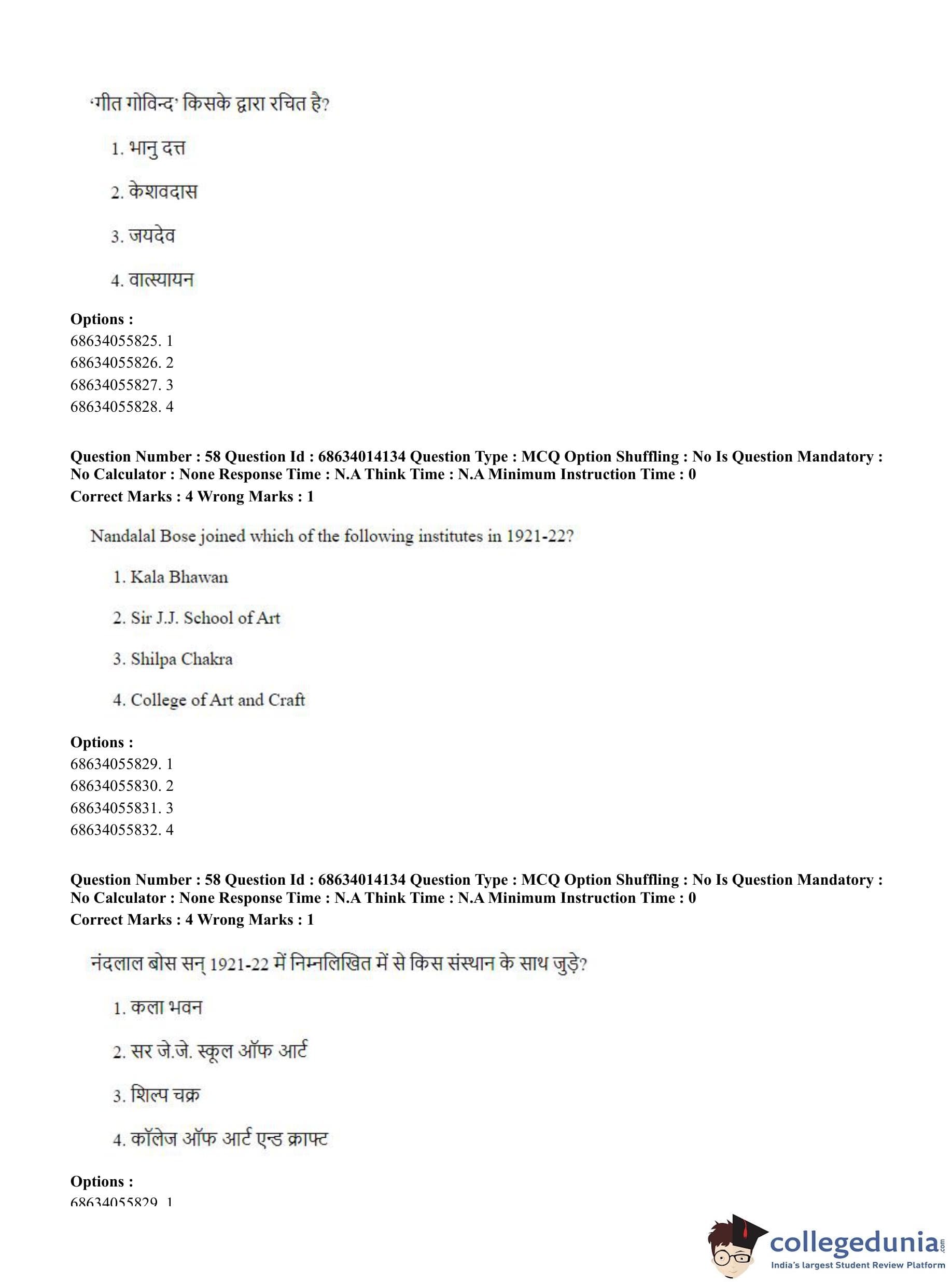 CUET PG 2023 Art and Aesthetics Question Paper in English (June 11 - Shift 3)