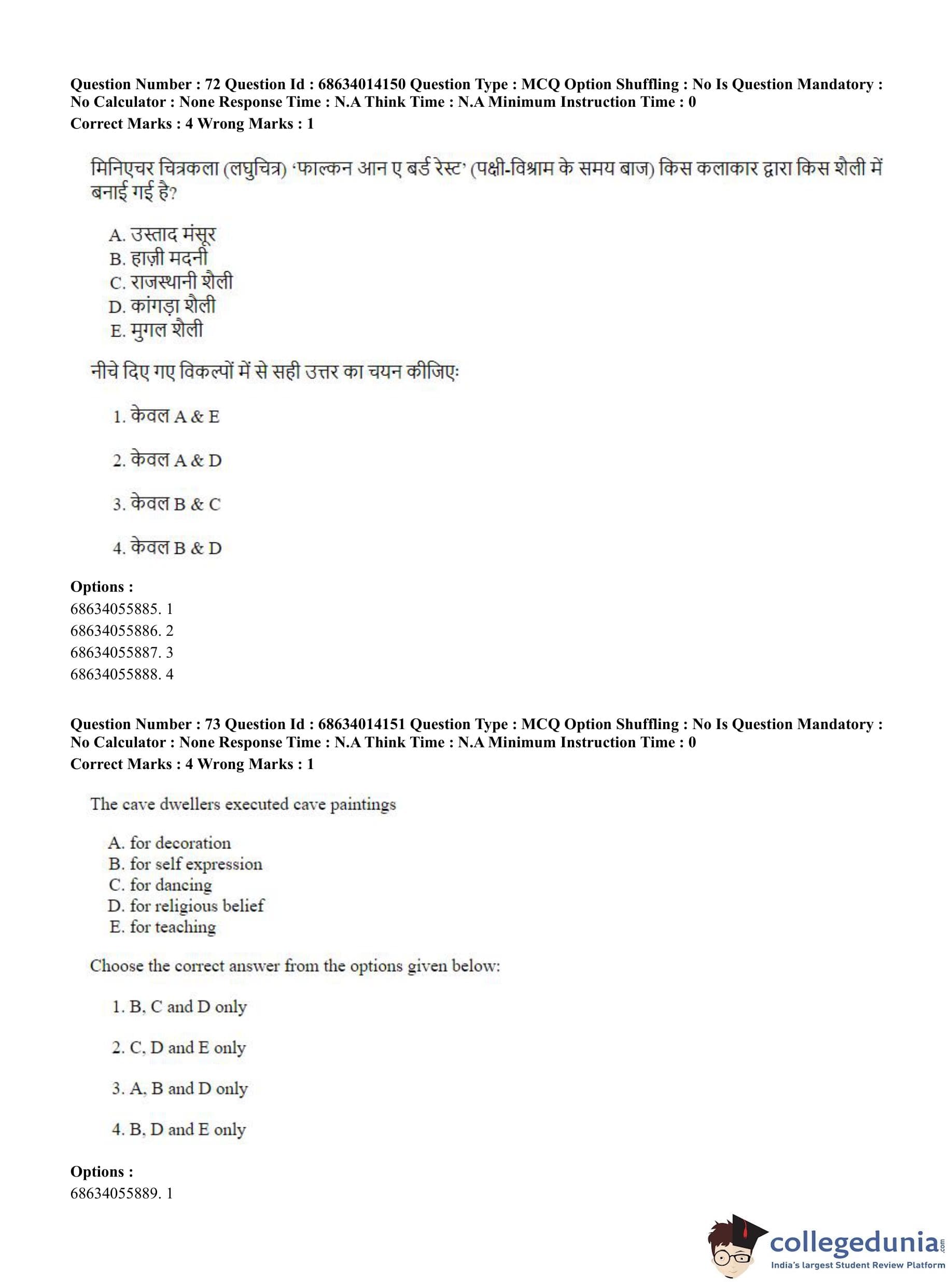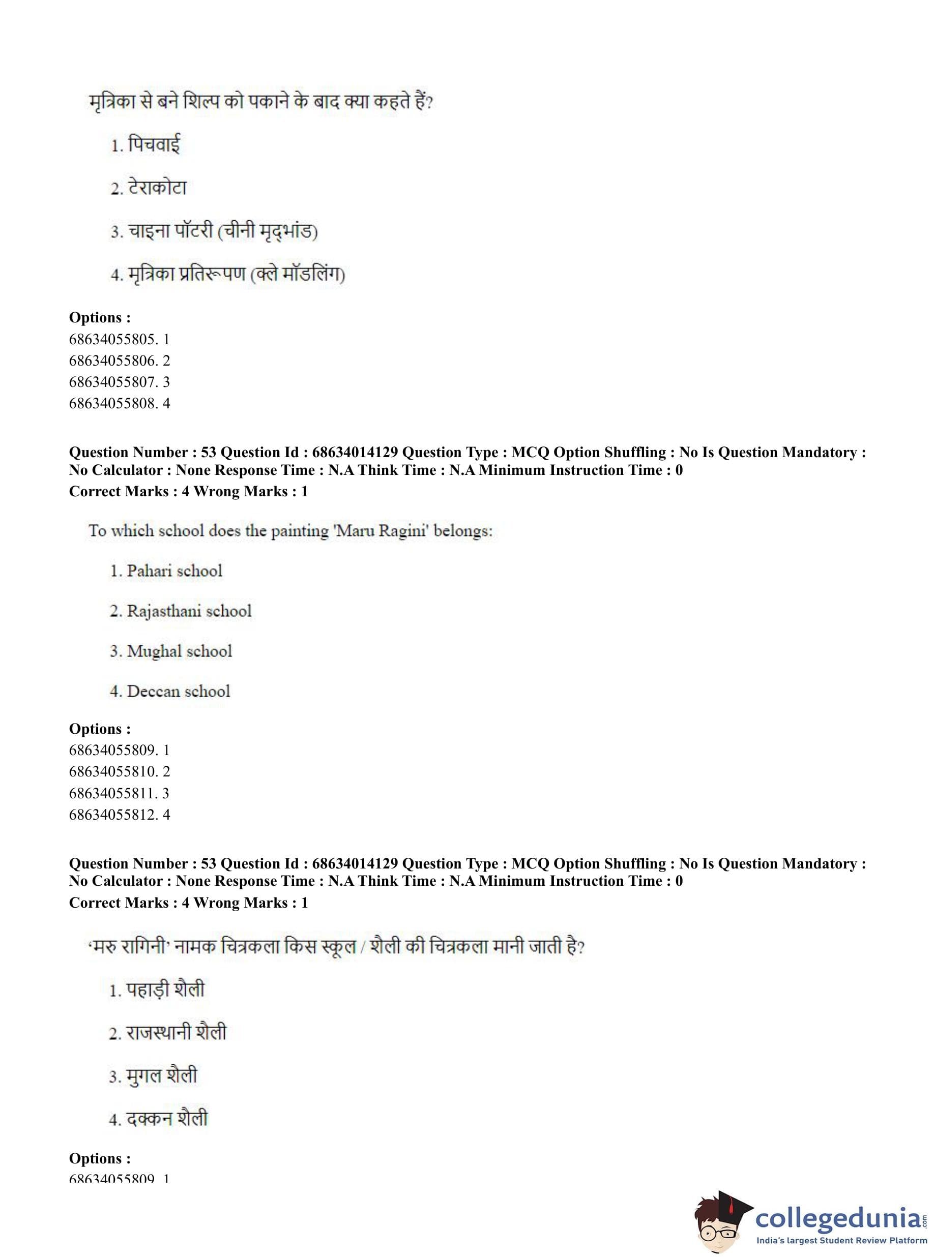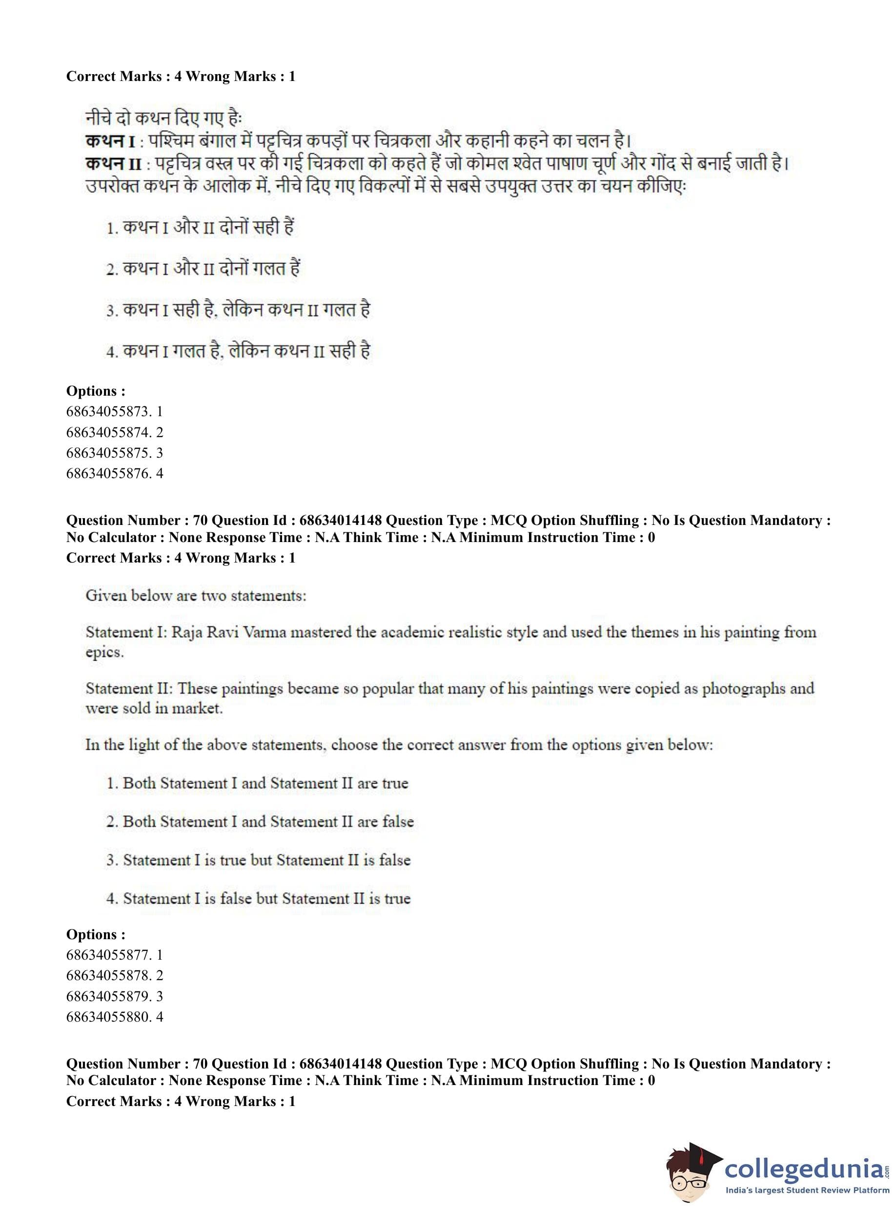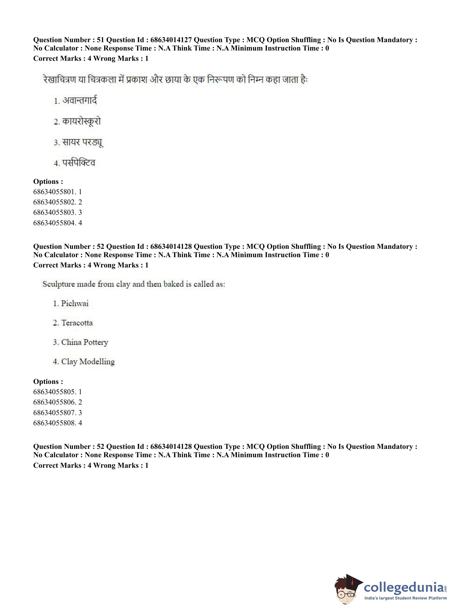 CUET PG 2023 Art and Aesthetics Question Paper in English (June 11 - Shift 3)