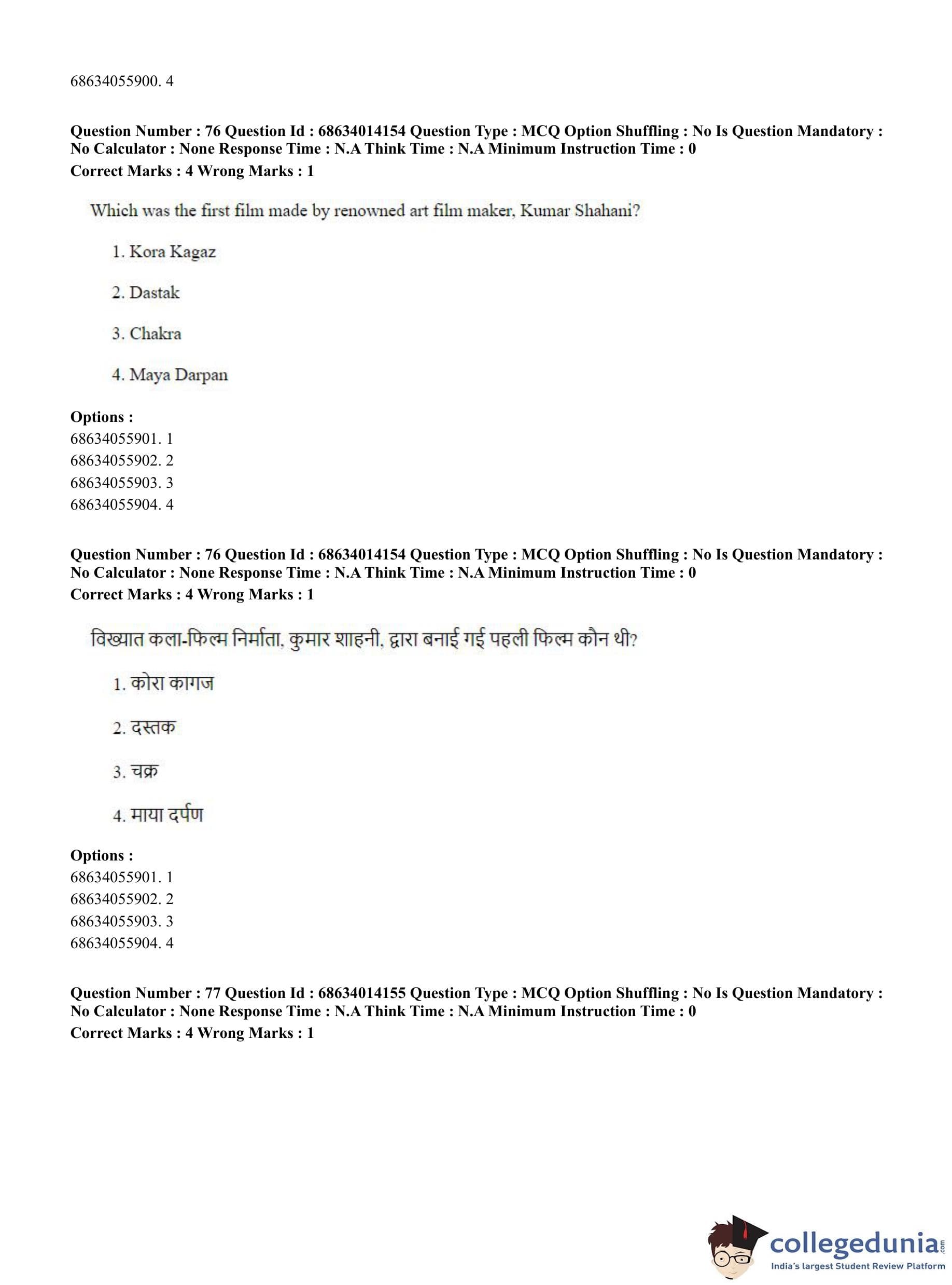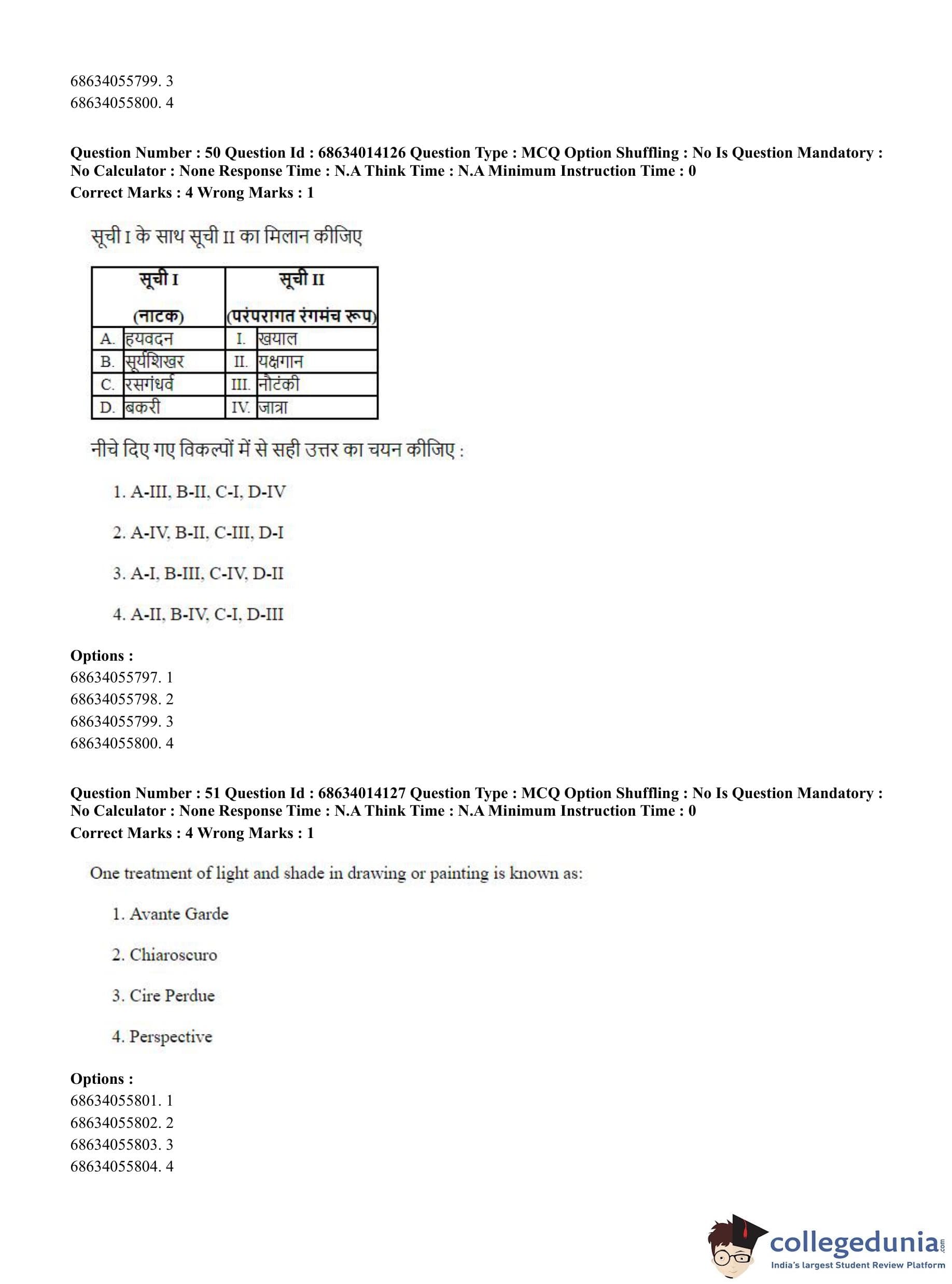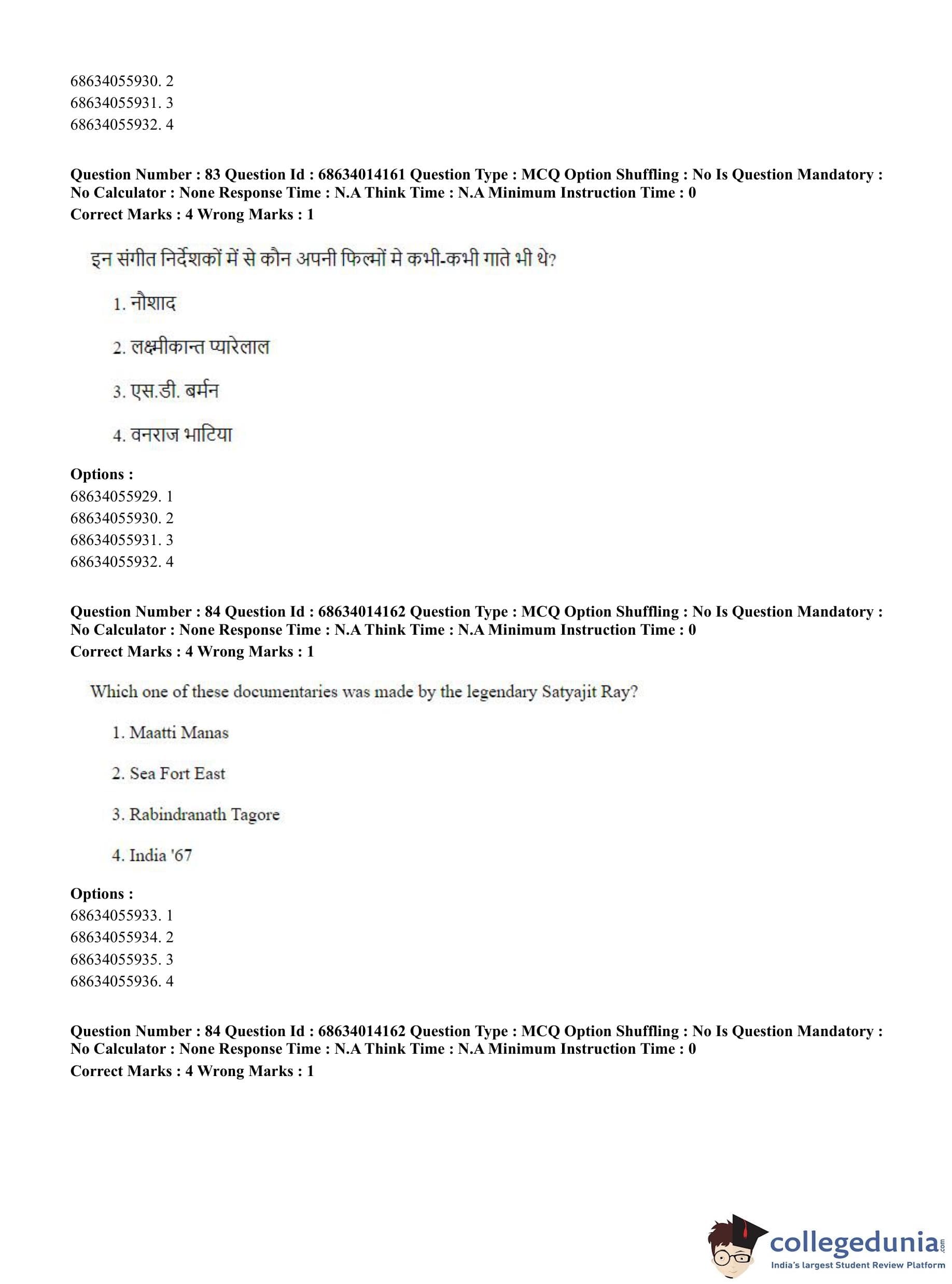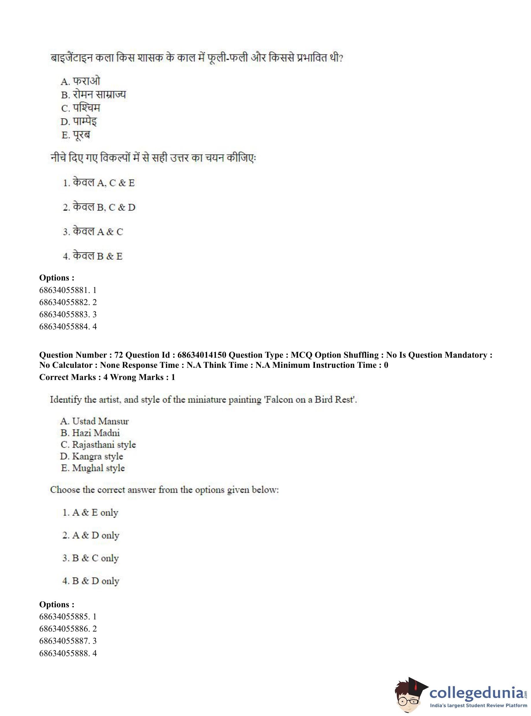 CUET PG 2023 Art and Aesthetics Question Paper in English (June 11 - Shift 3)