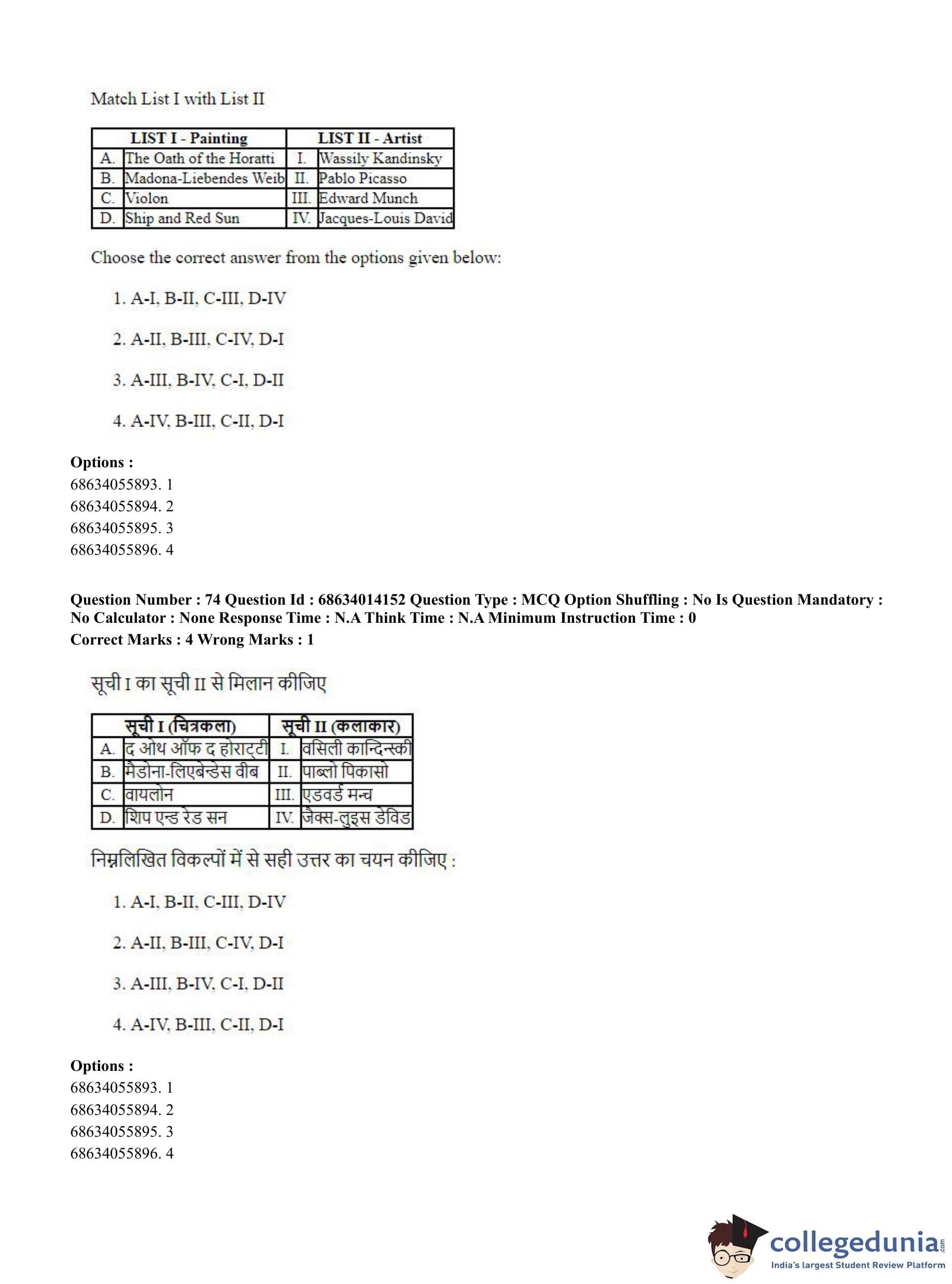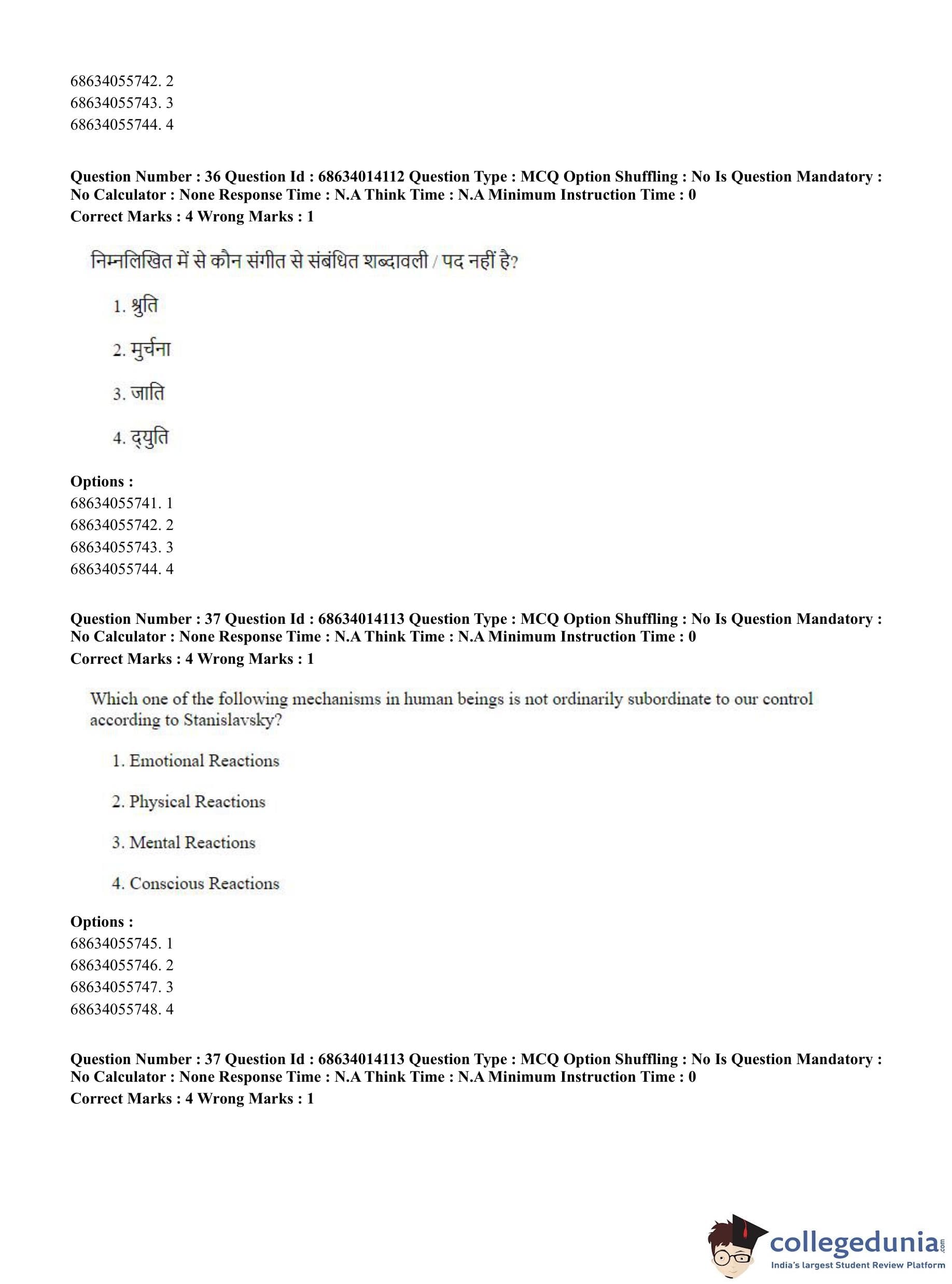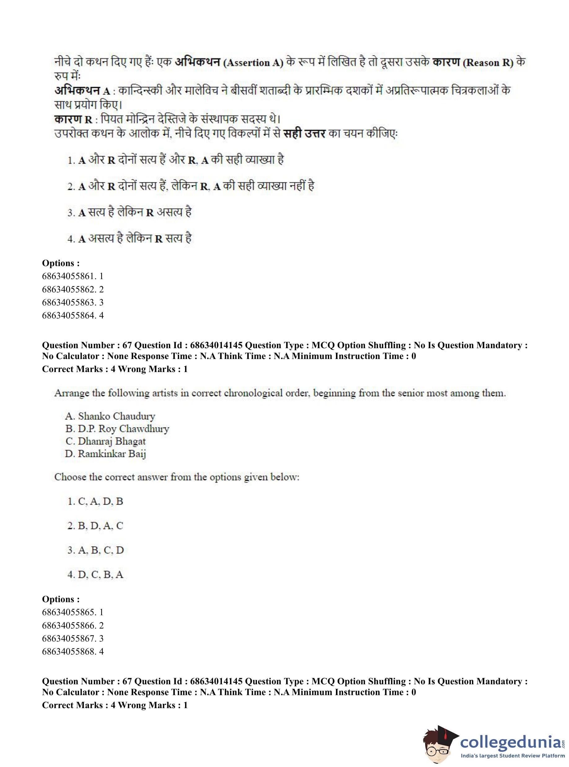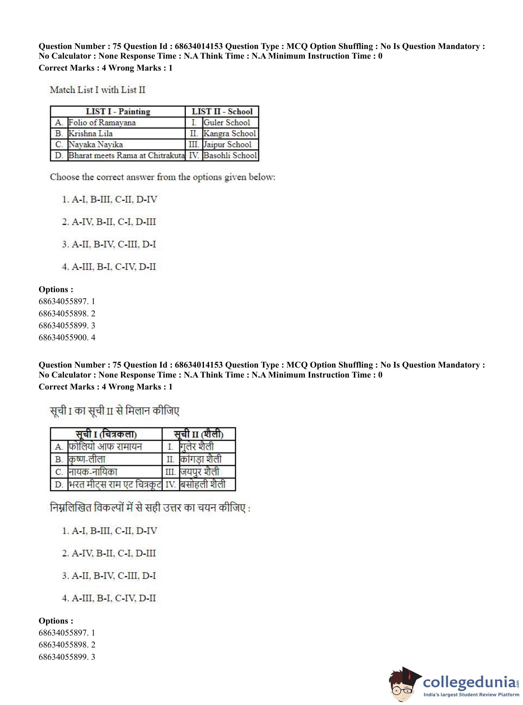 CUET PG 2023 Art and Aesthetics Question Paper in English (June 11 - Shift 3)