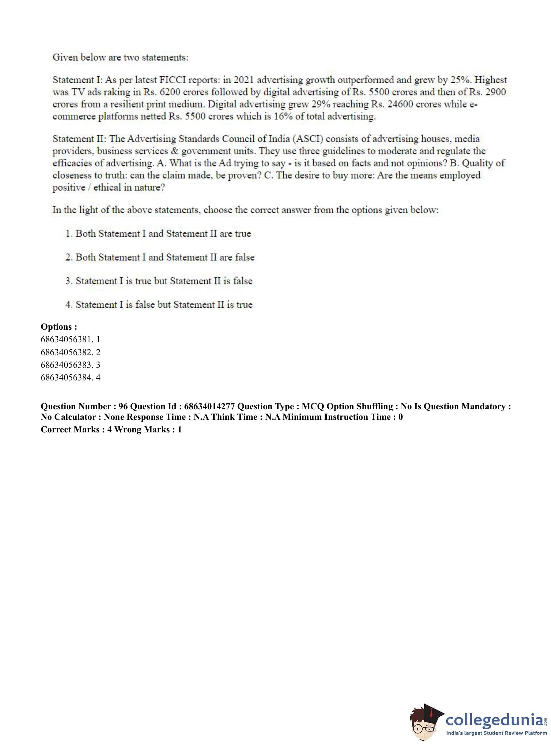 CUET PG 2023 Art and Aesthetics Question Paper with Answer Key PDF in Hindi is available for download here. The exam was conducted by National Testing Agency (NTA) on June 11, 2023 in Shift 3. The question paper comprised a total of 100 questions divided into 2 sections.
