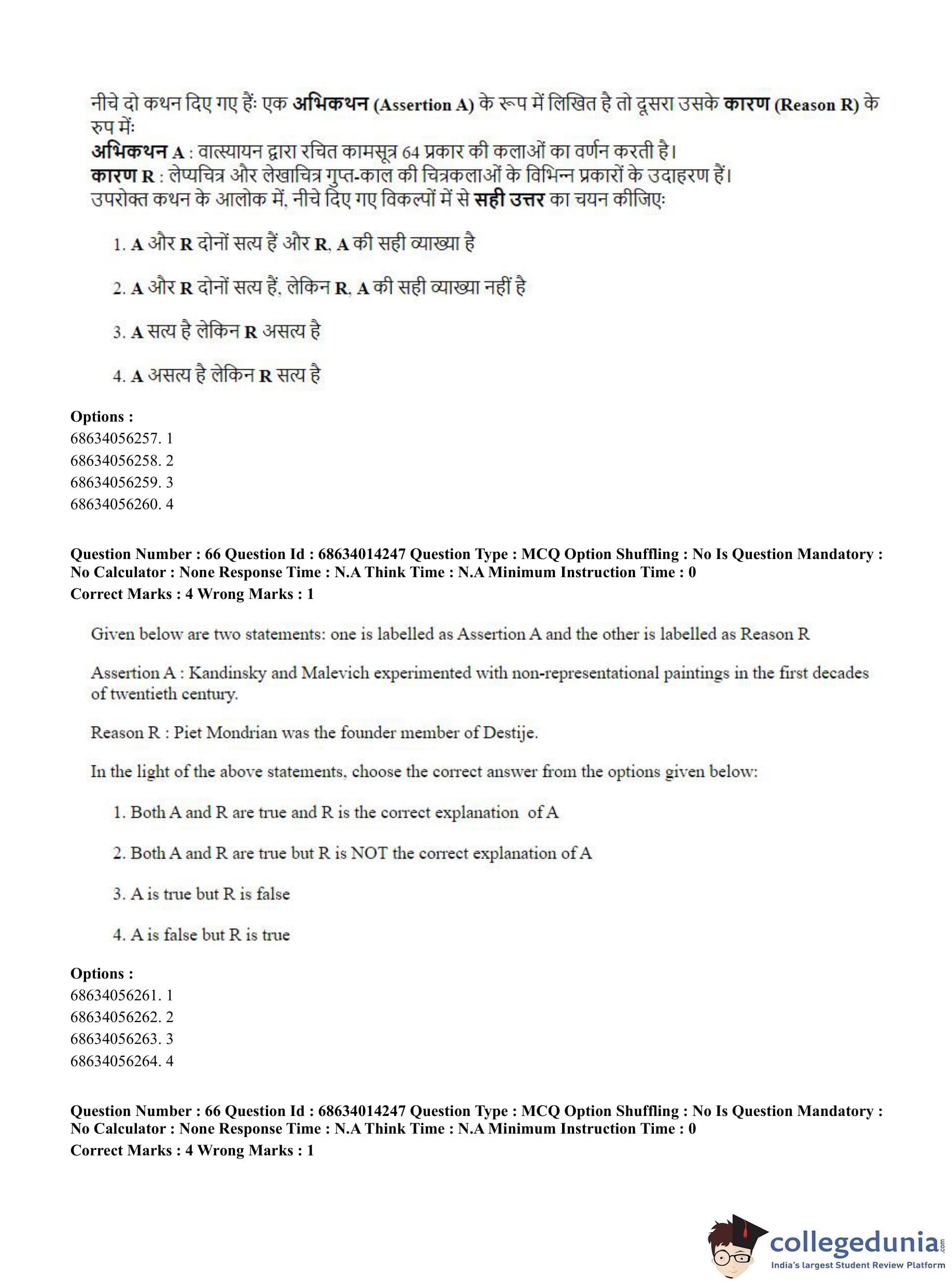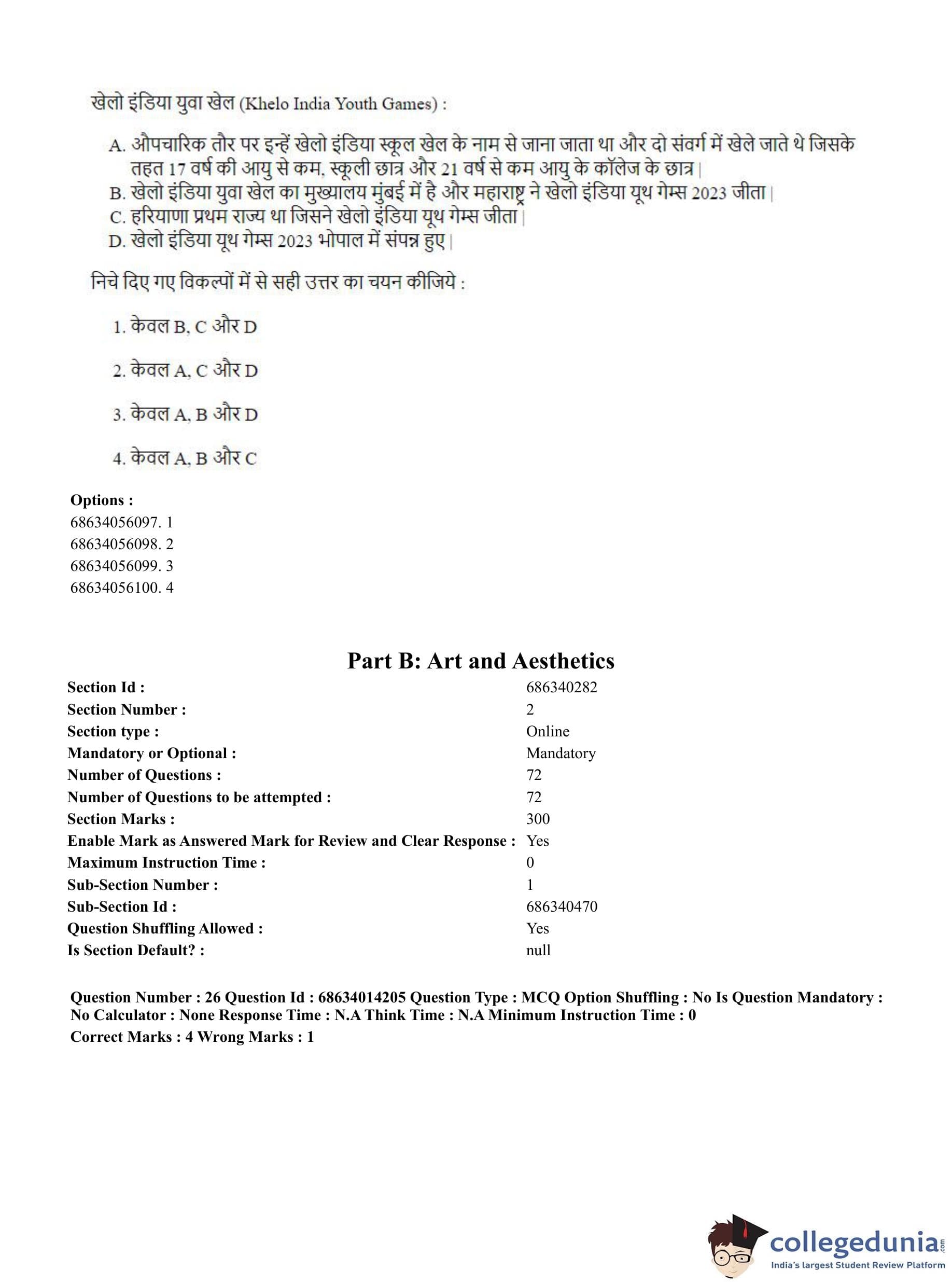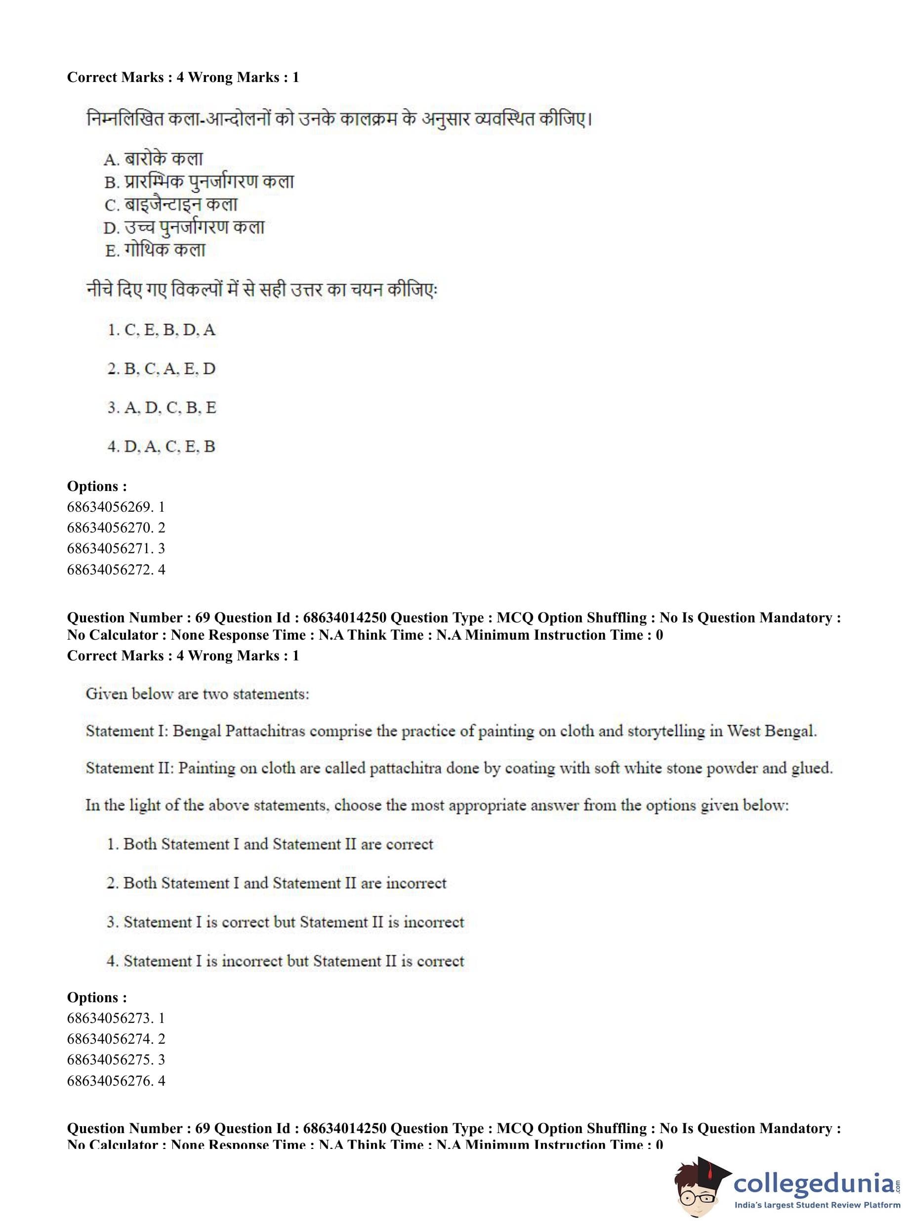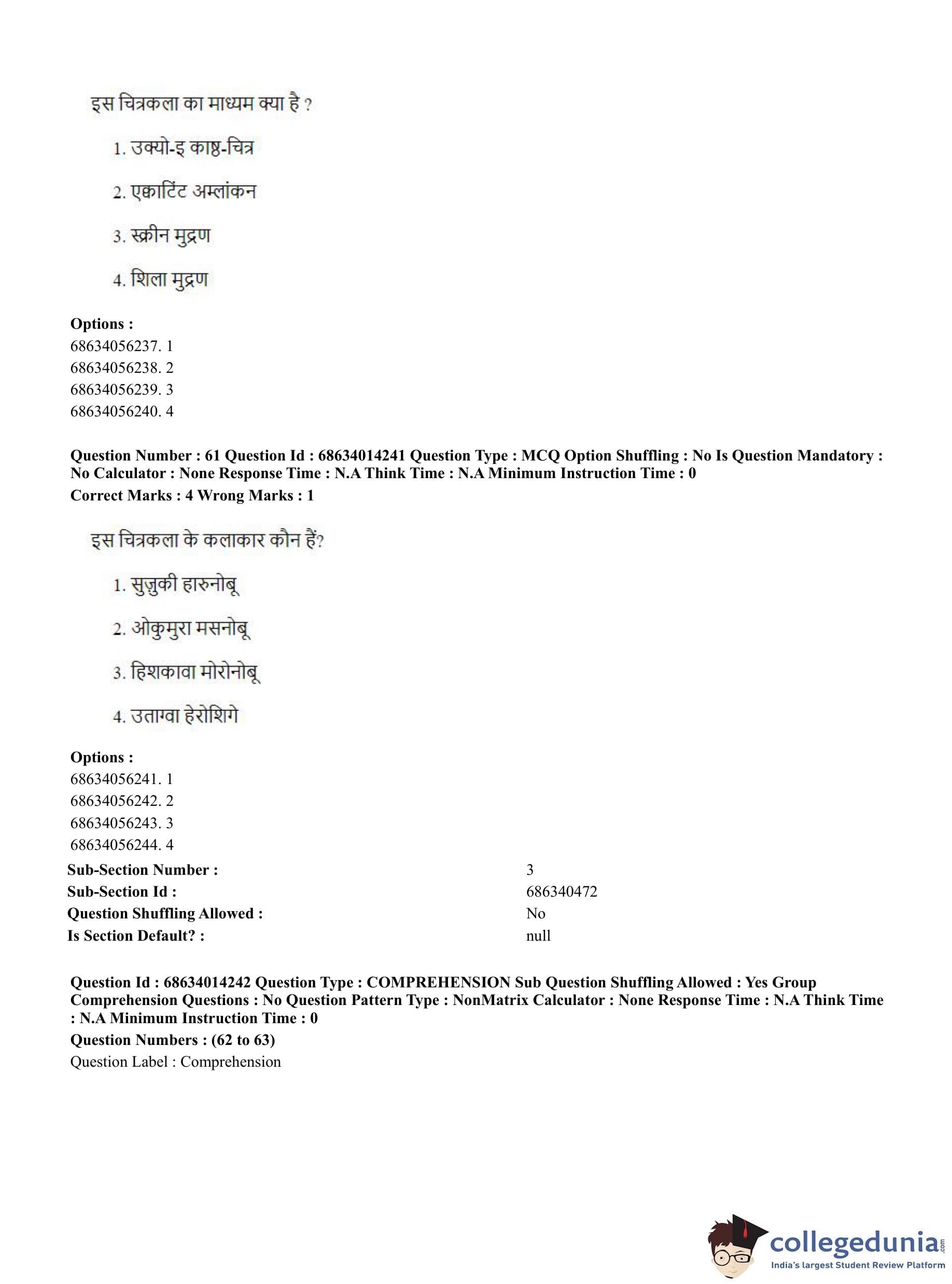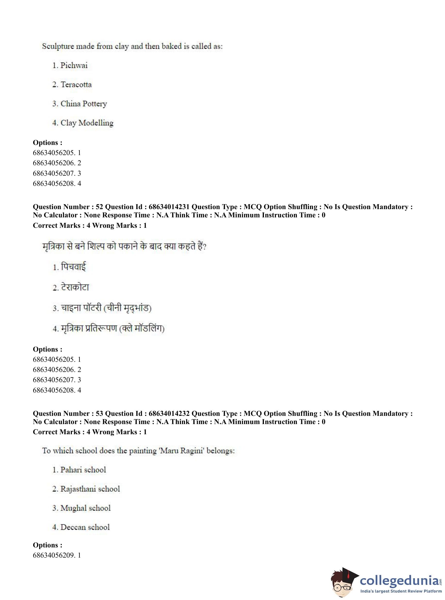 CUET PG 2023 Art and Aesthetics Question Paper in Hindi (June 11 - Shift 3)