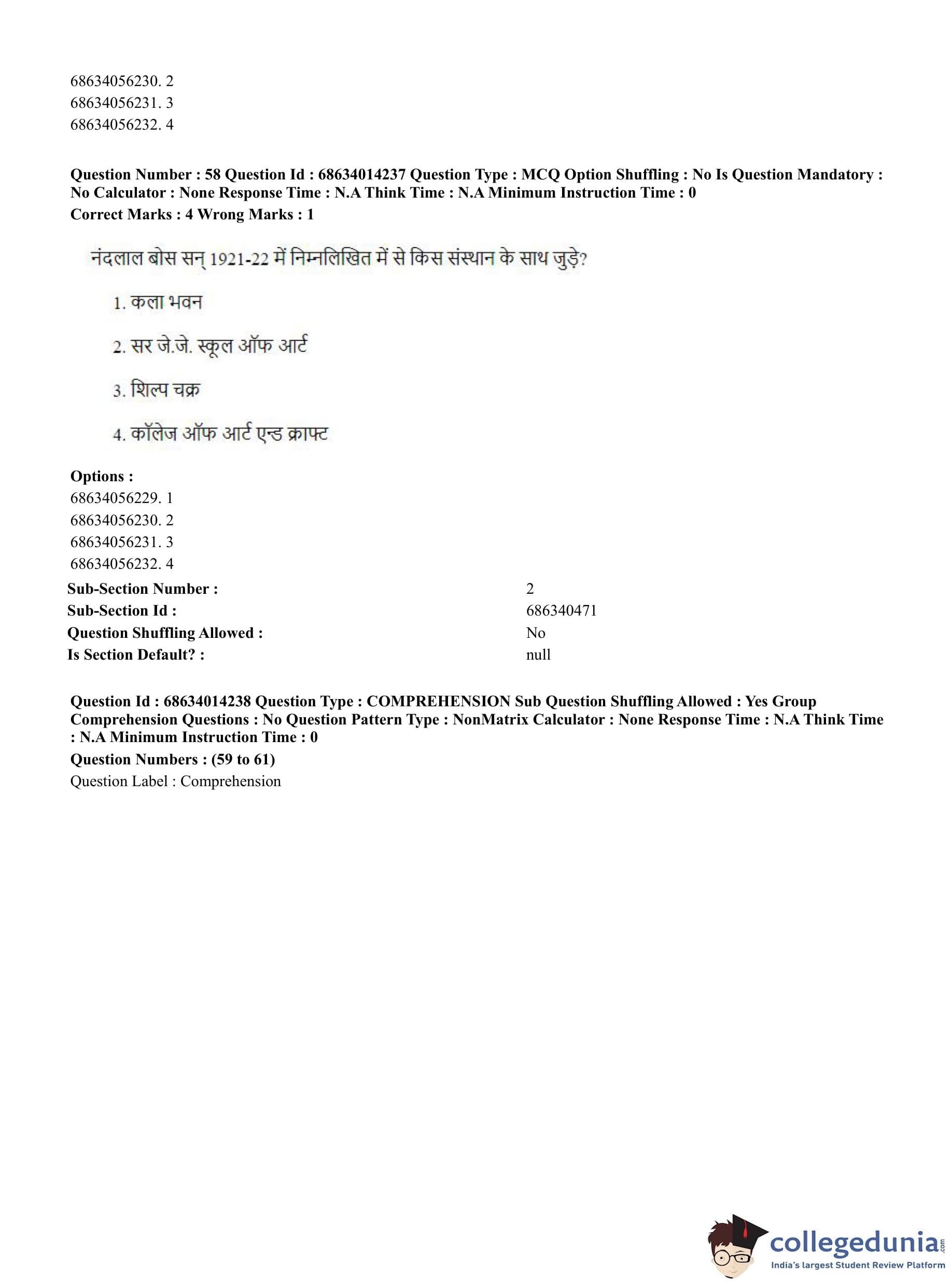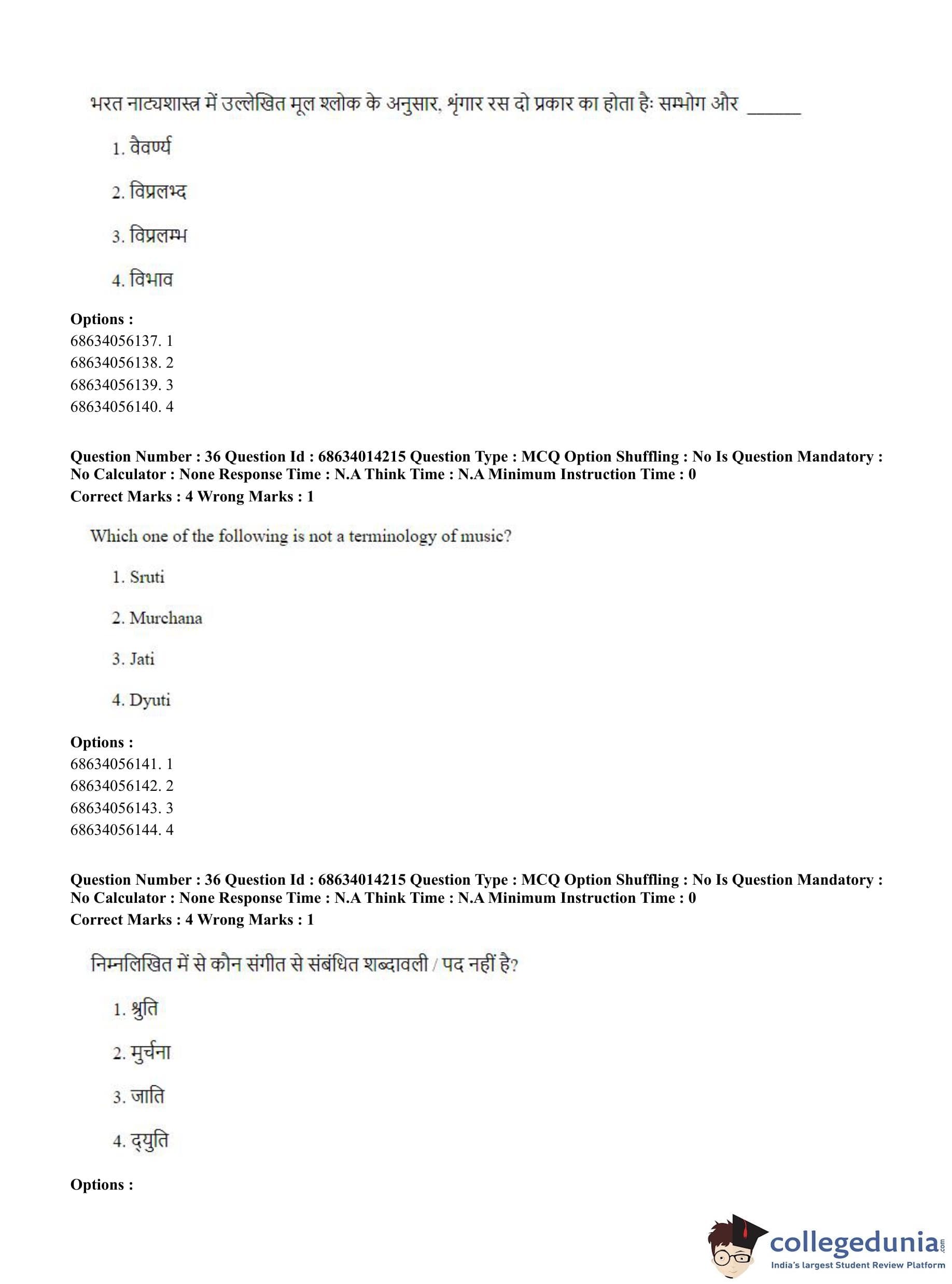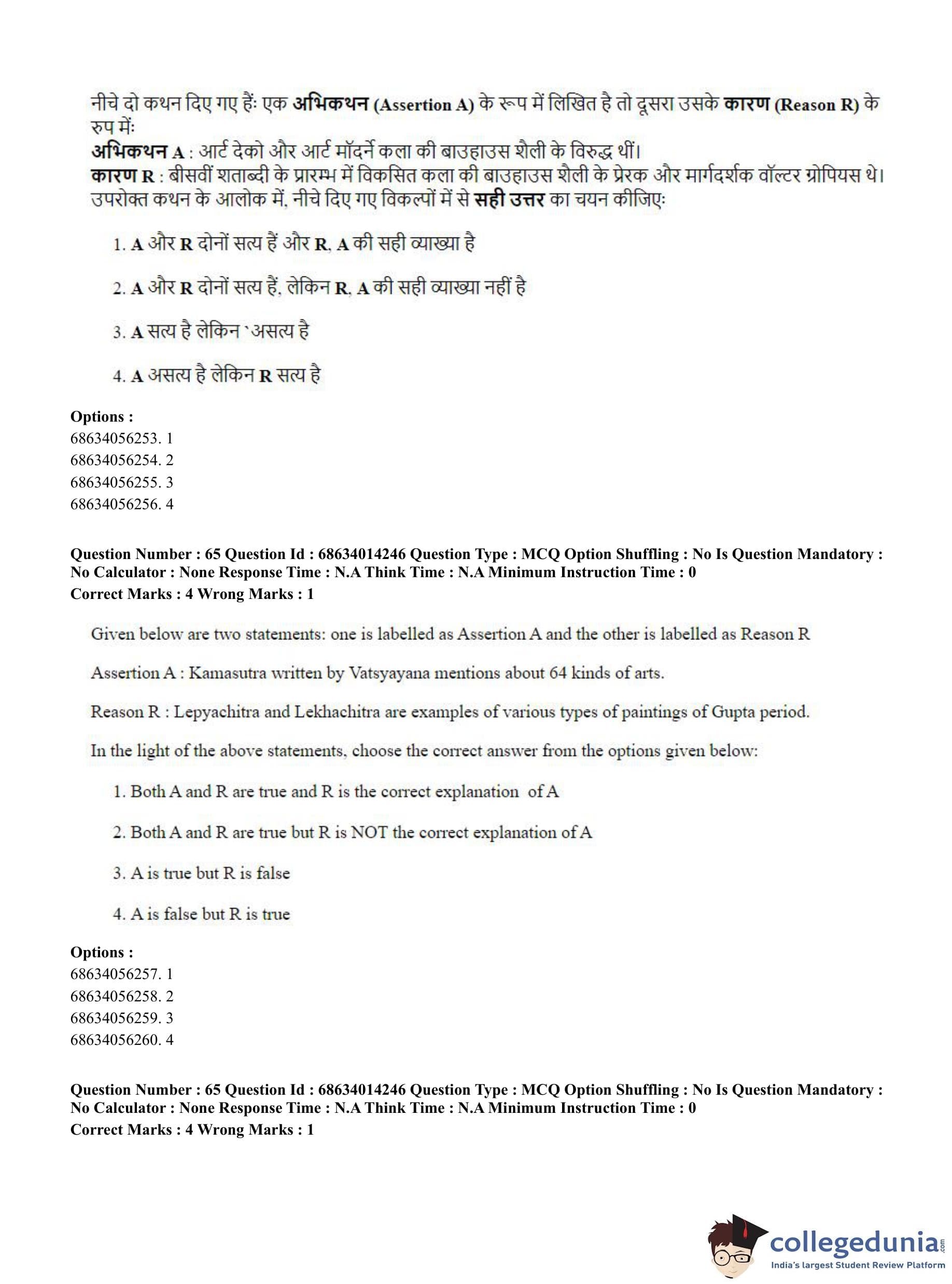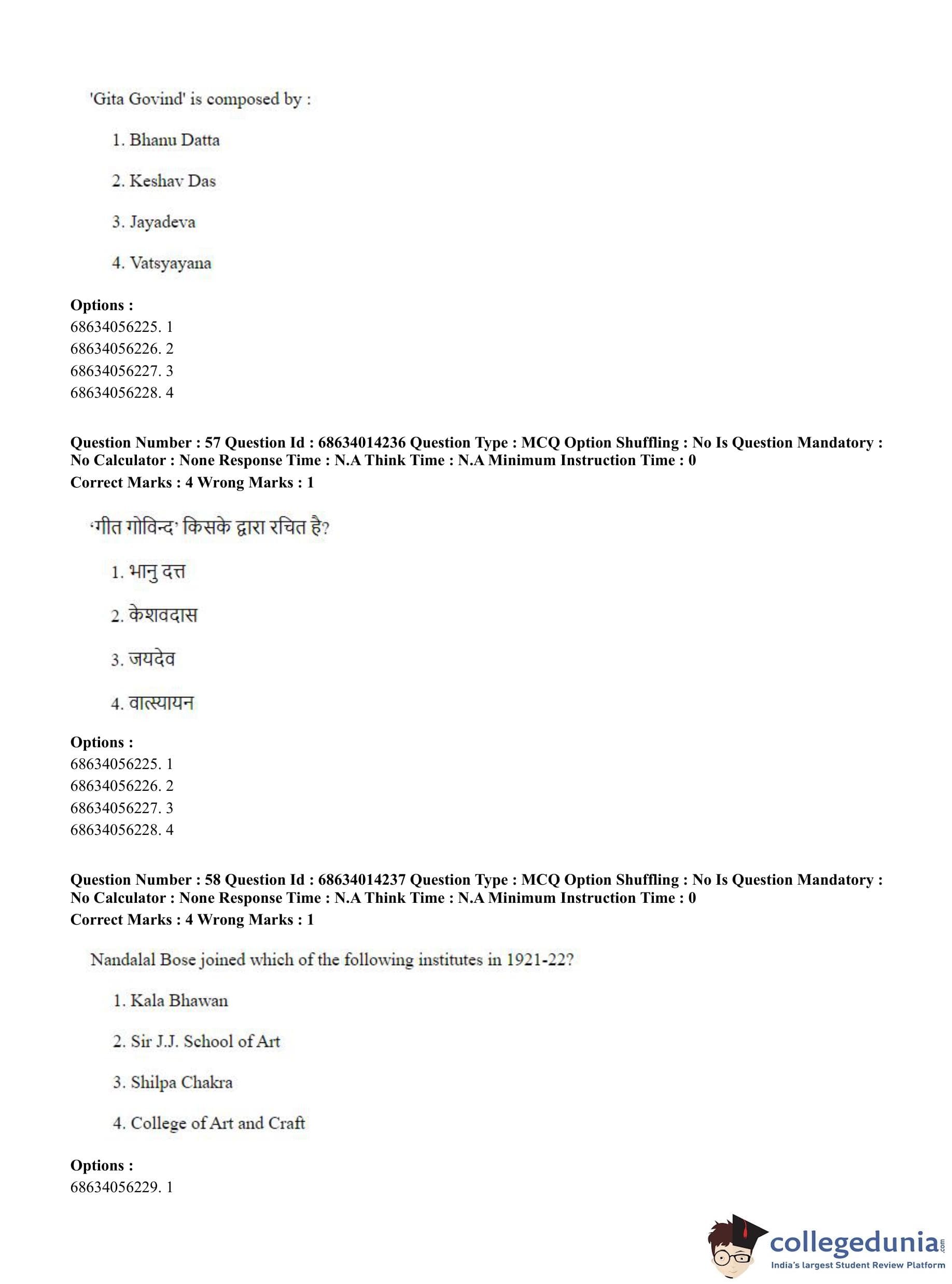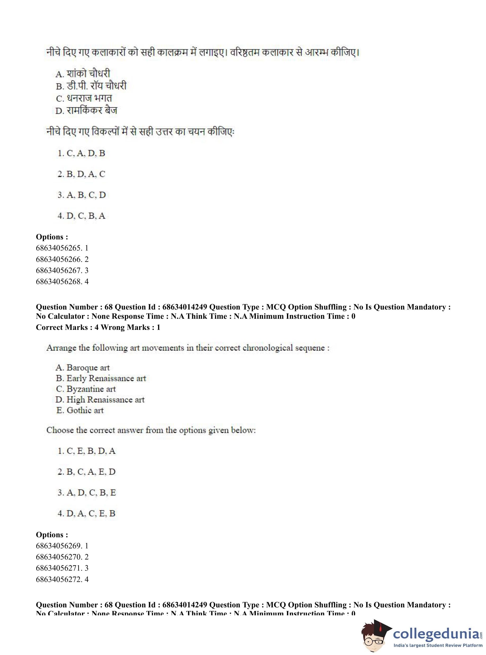 CUET PG 2023 Art and Aesthetics Question Paper in Hindi (June 11 - Shift 3)