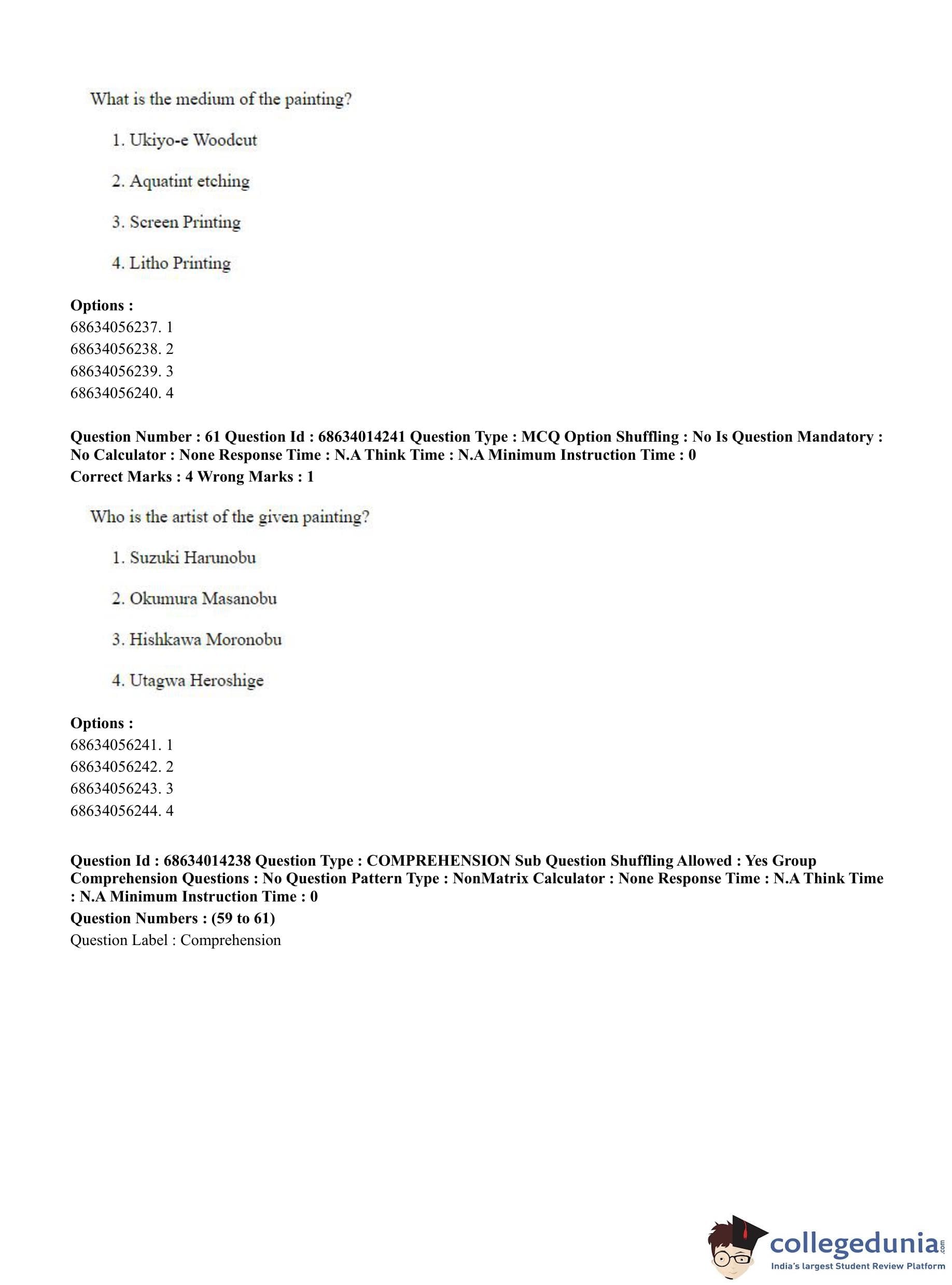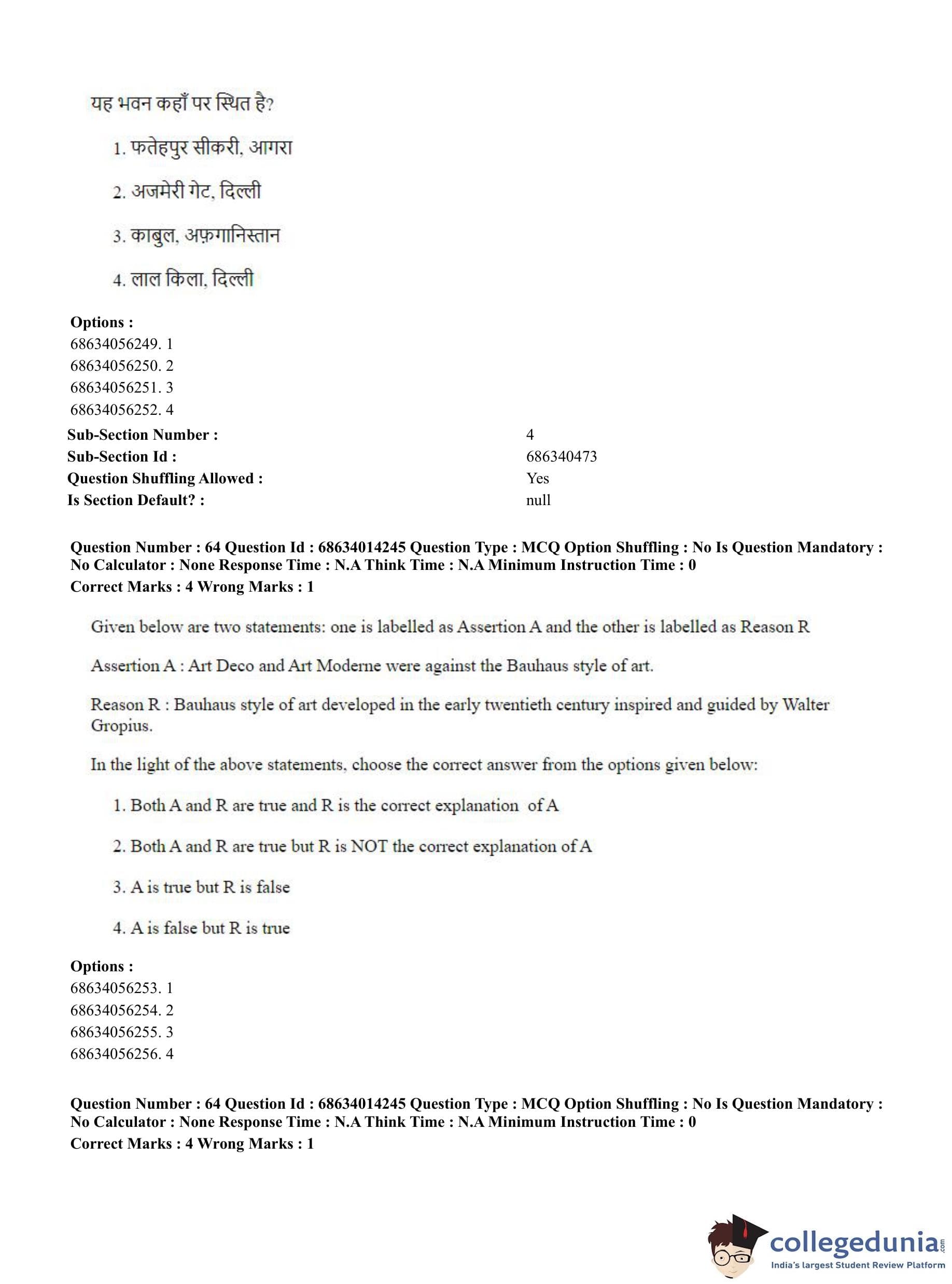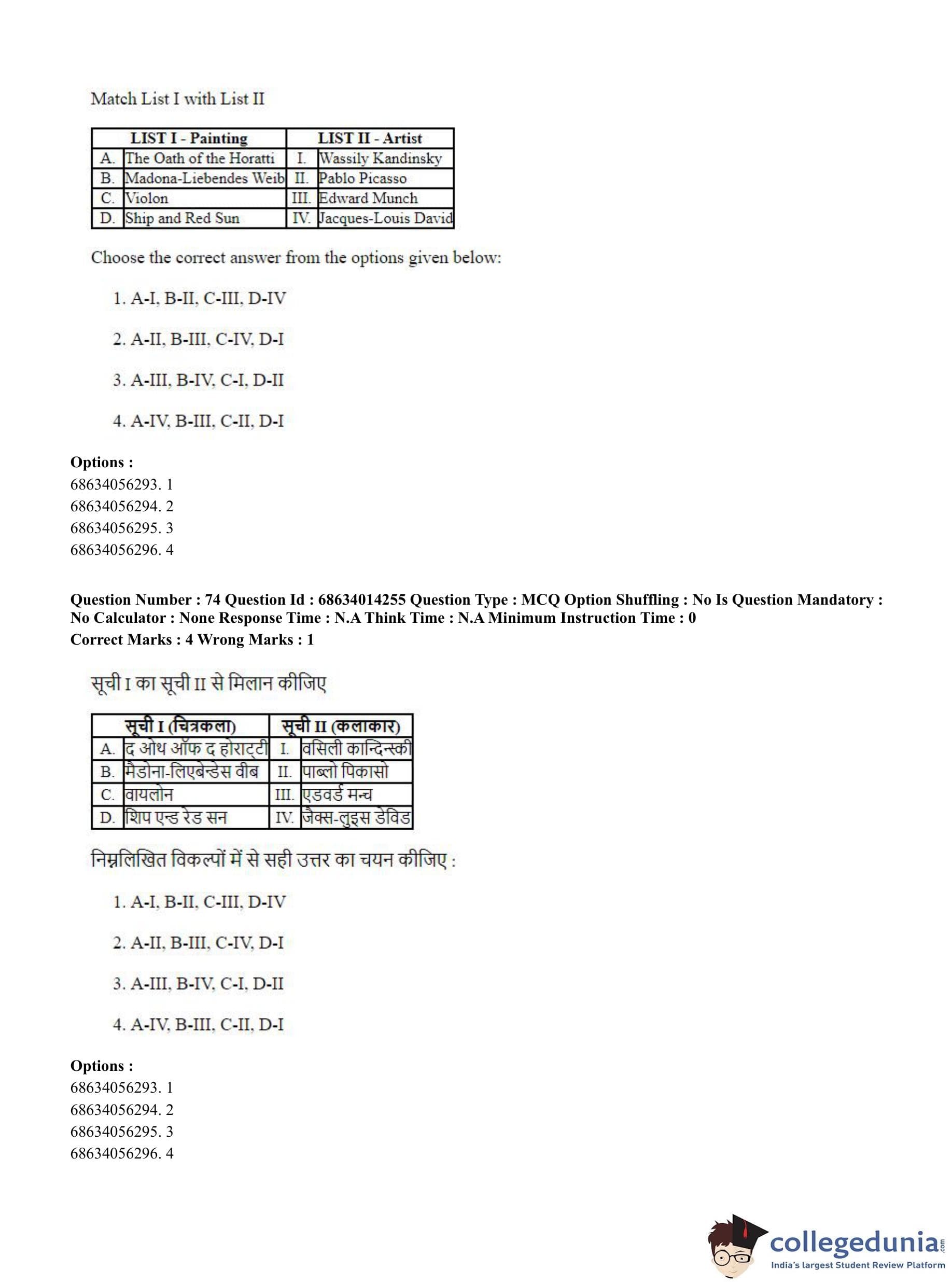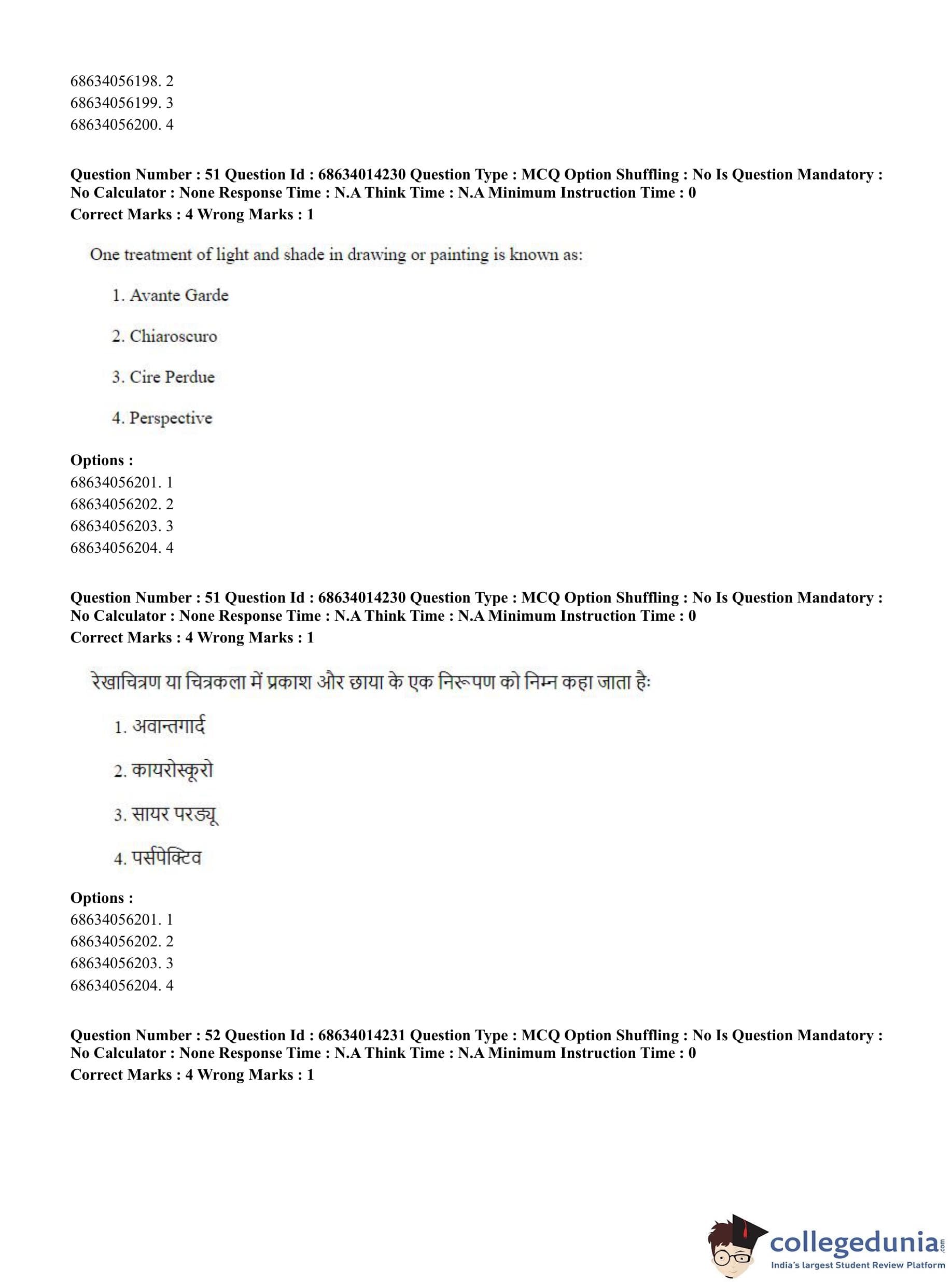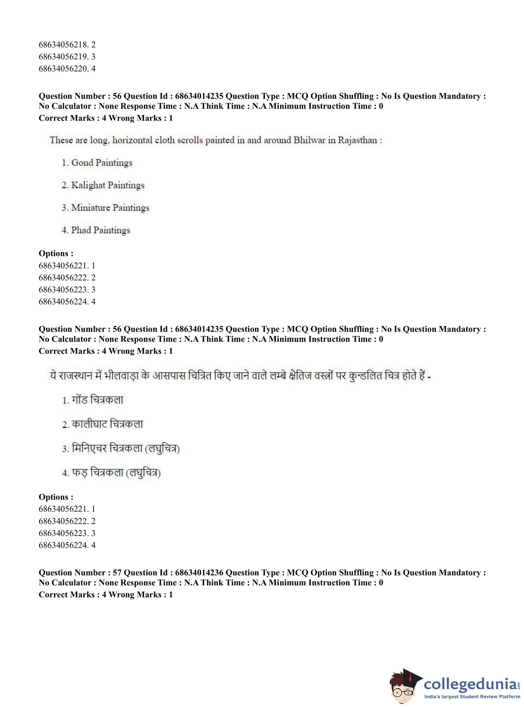 CUET PG 2023 Art and Aesthetics Question Paper in Hindi (June 11 - Shift 3)