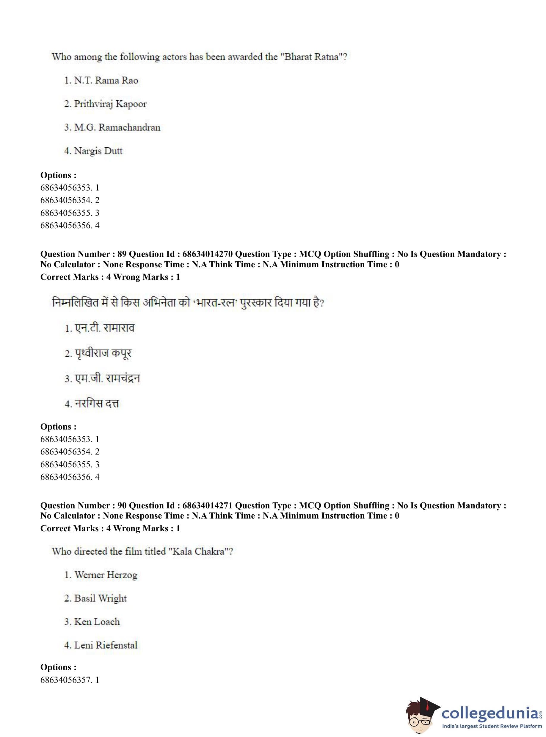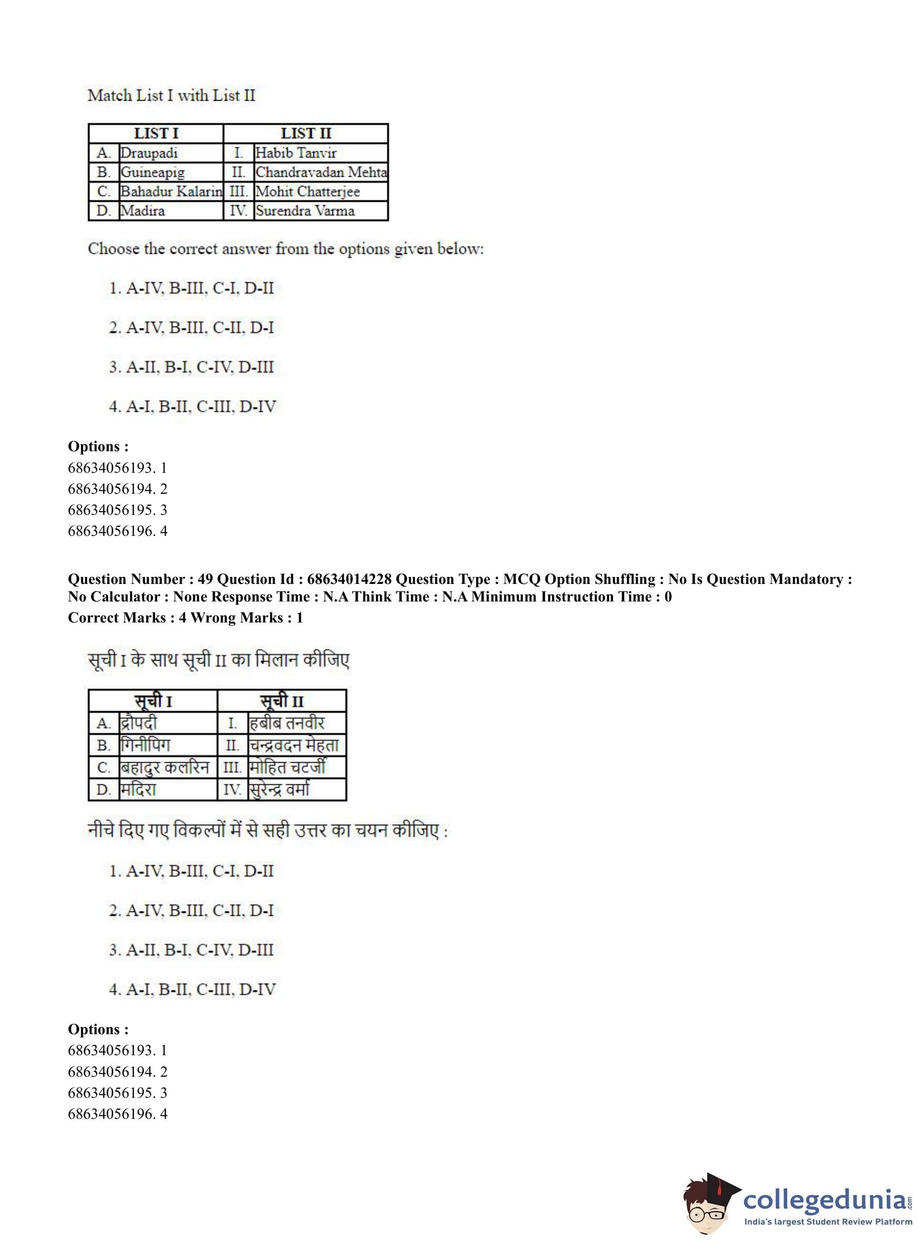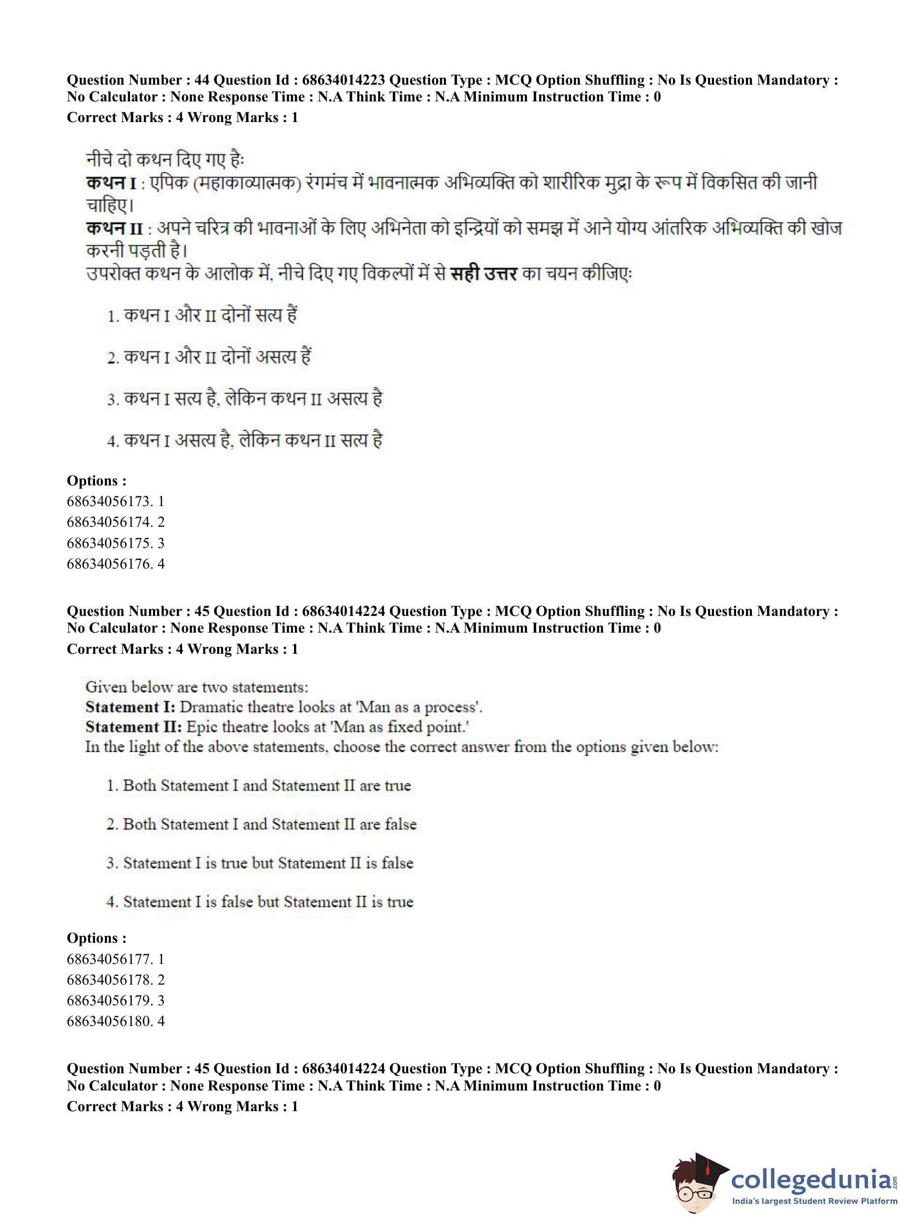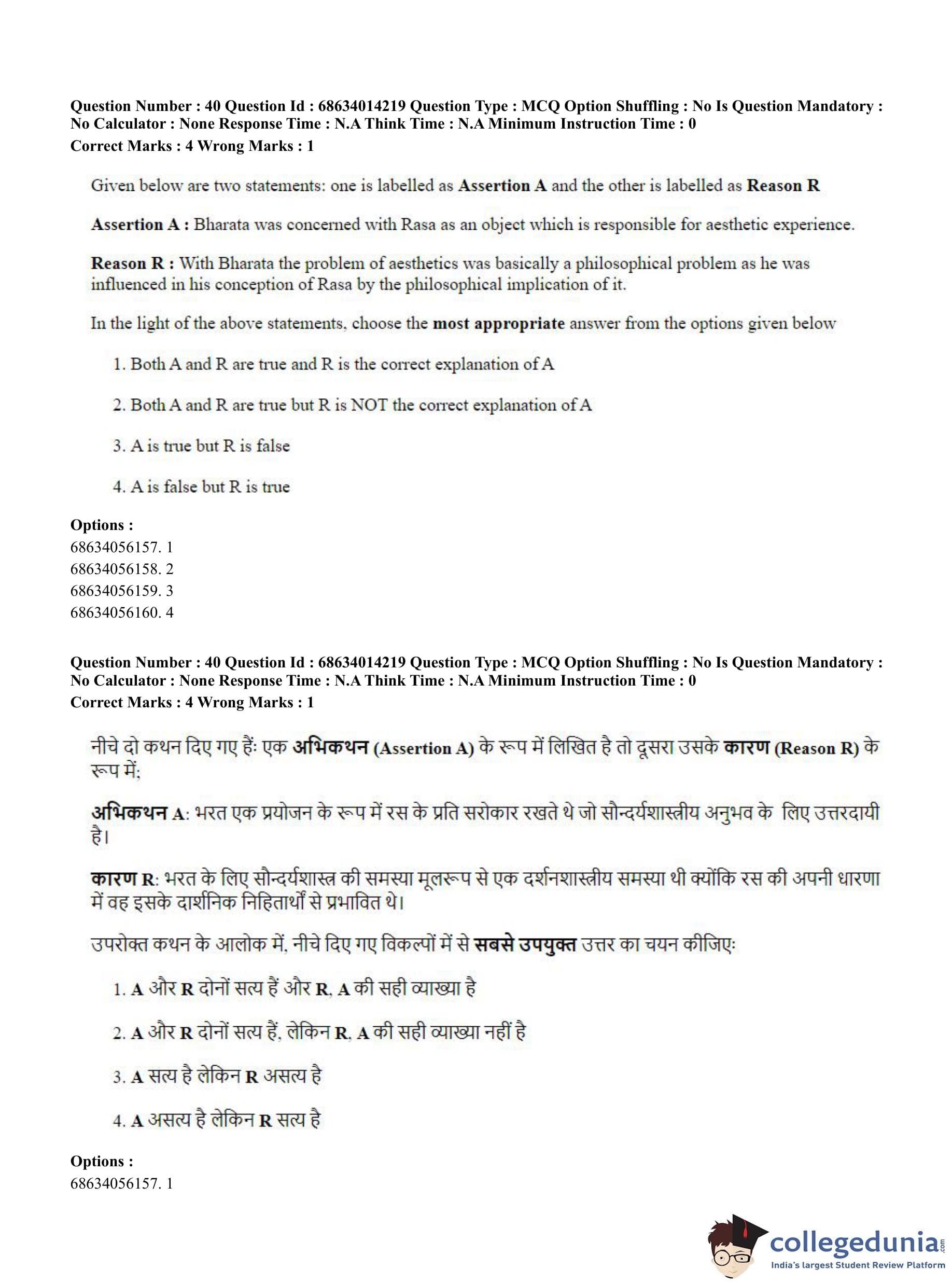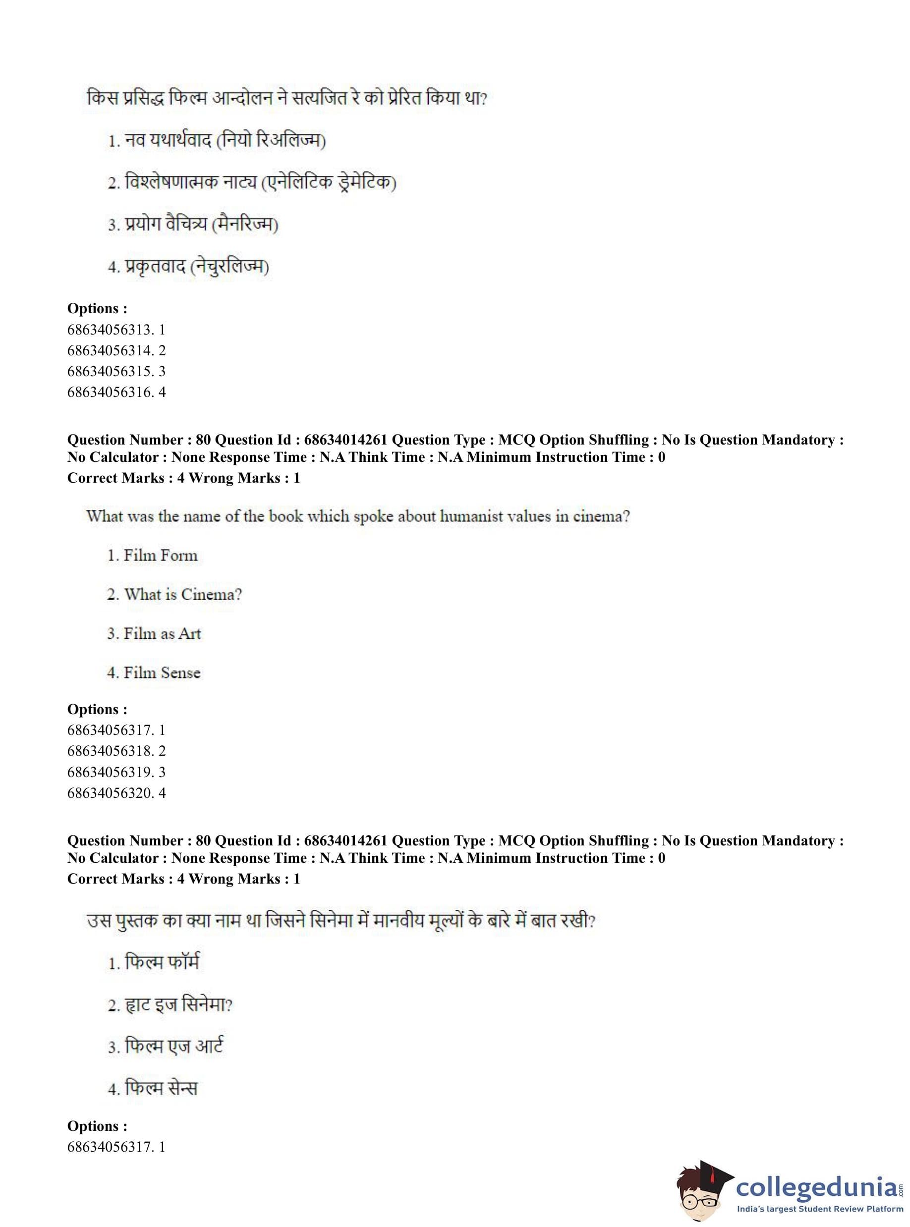 CUET PG 2023 Art and Aesthetics Question Paper in Hindi (June 11 - Shift 3)
