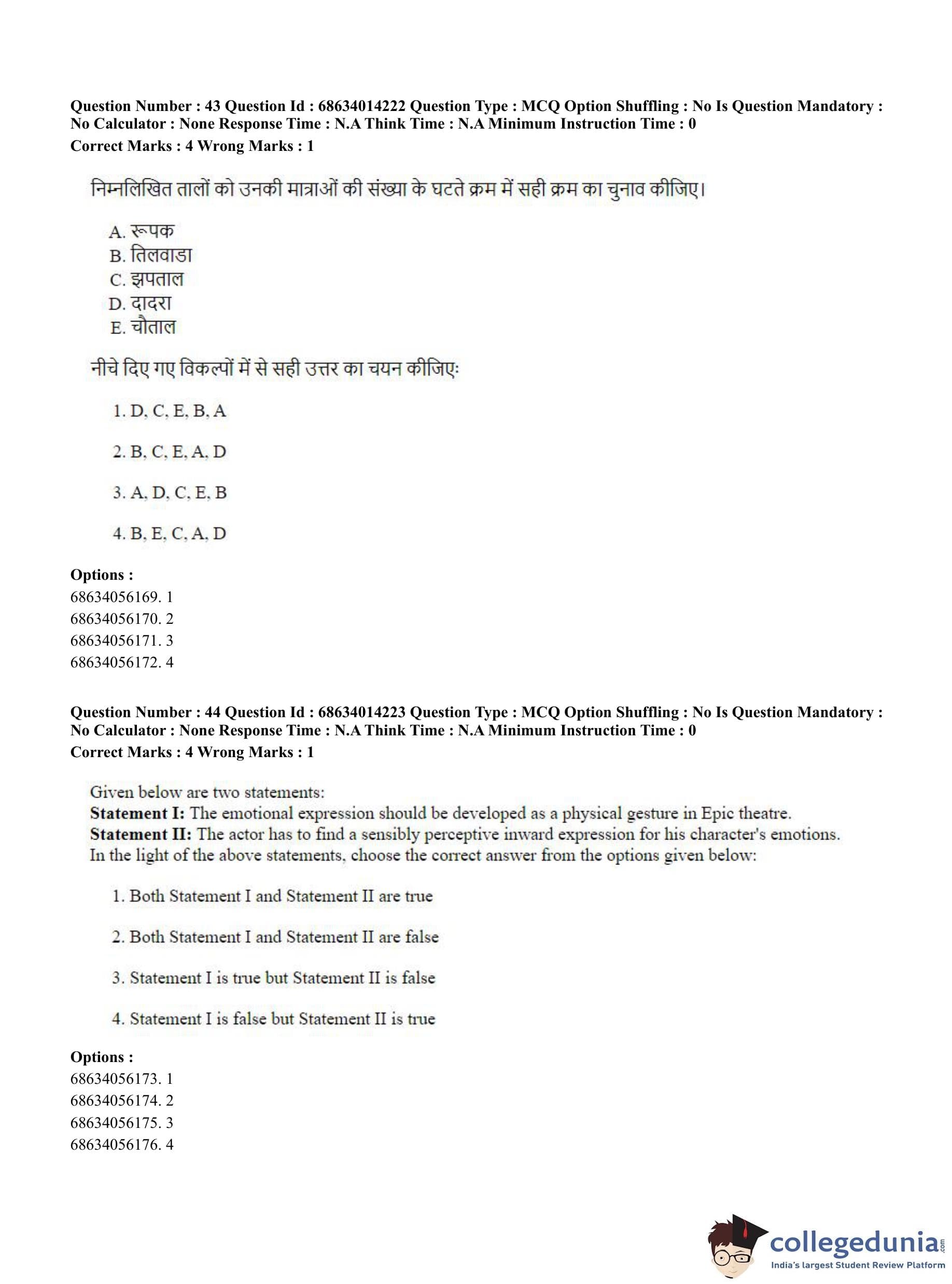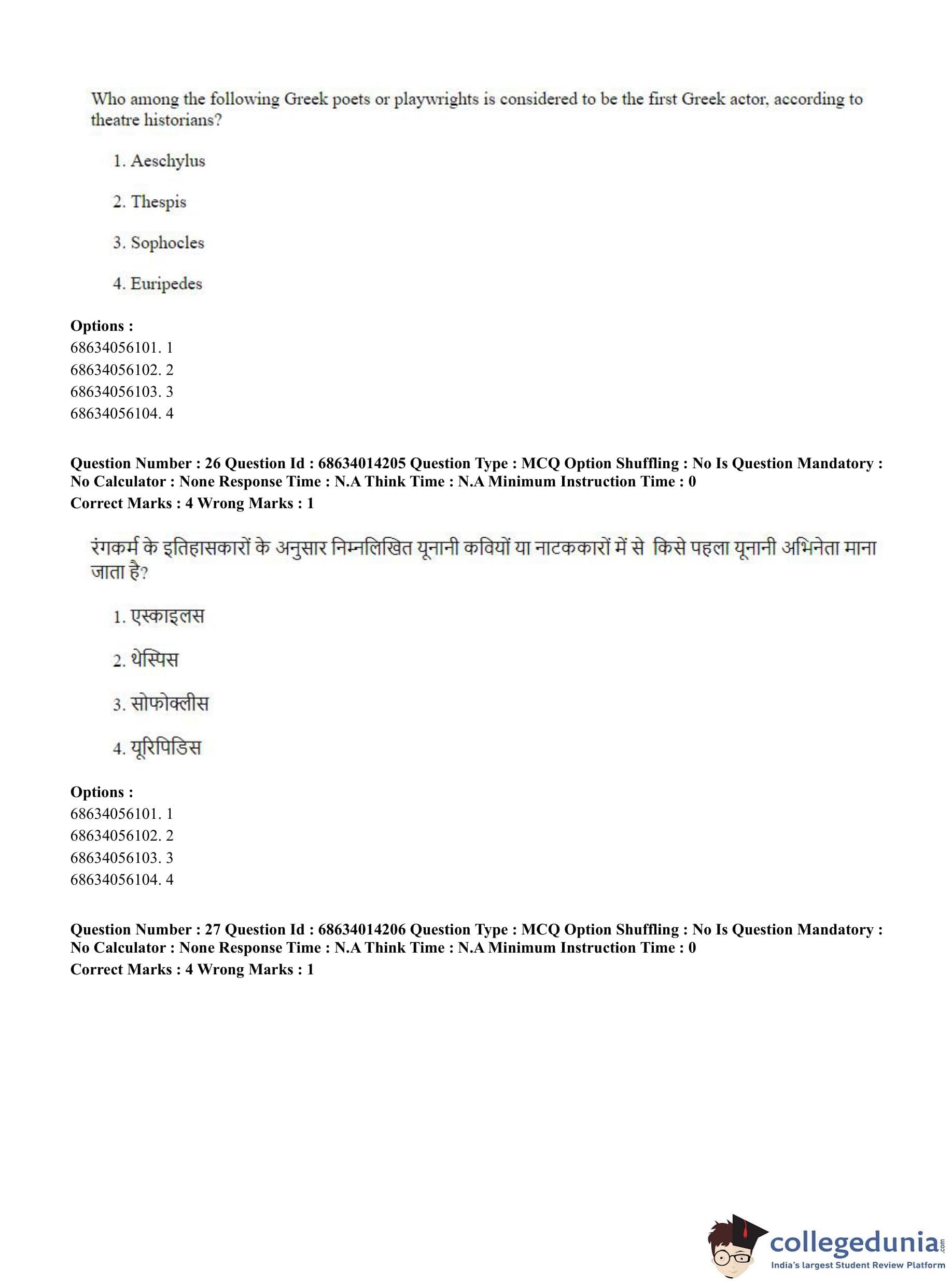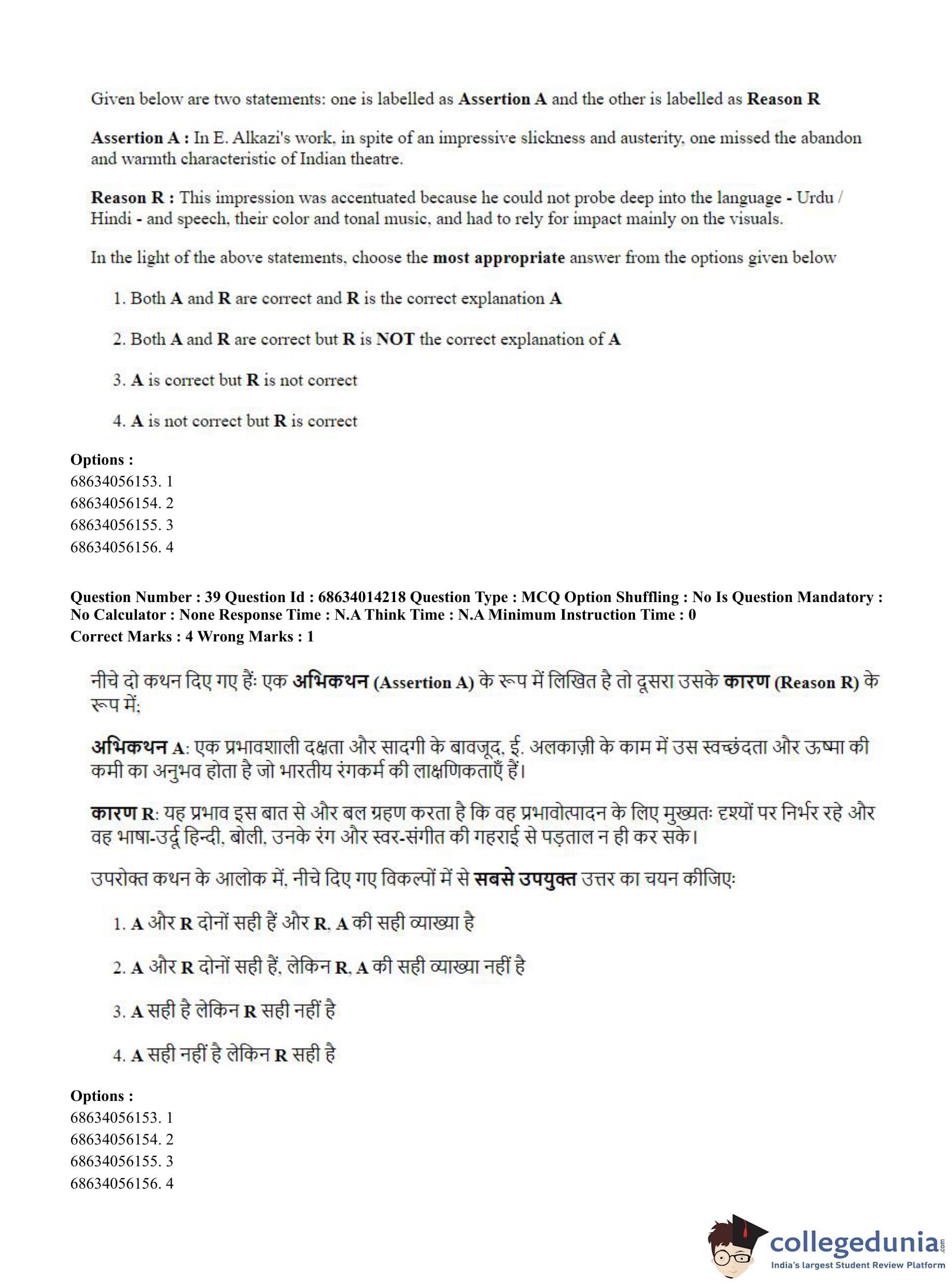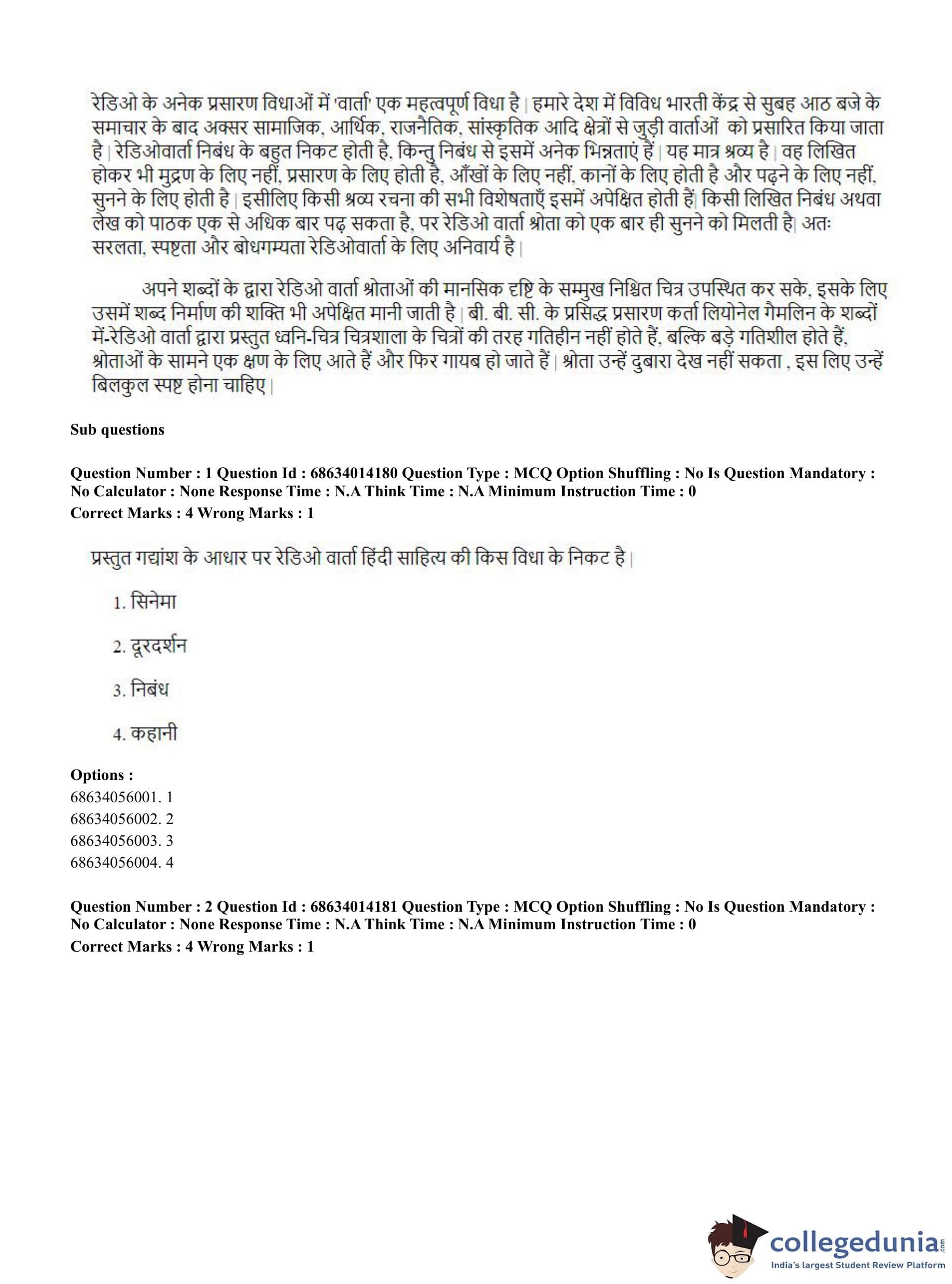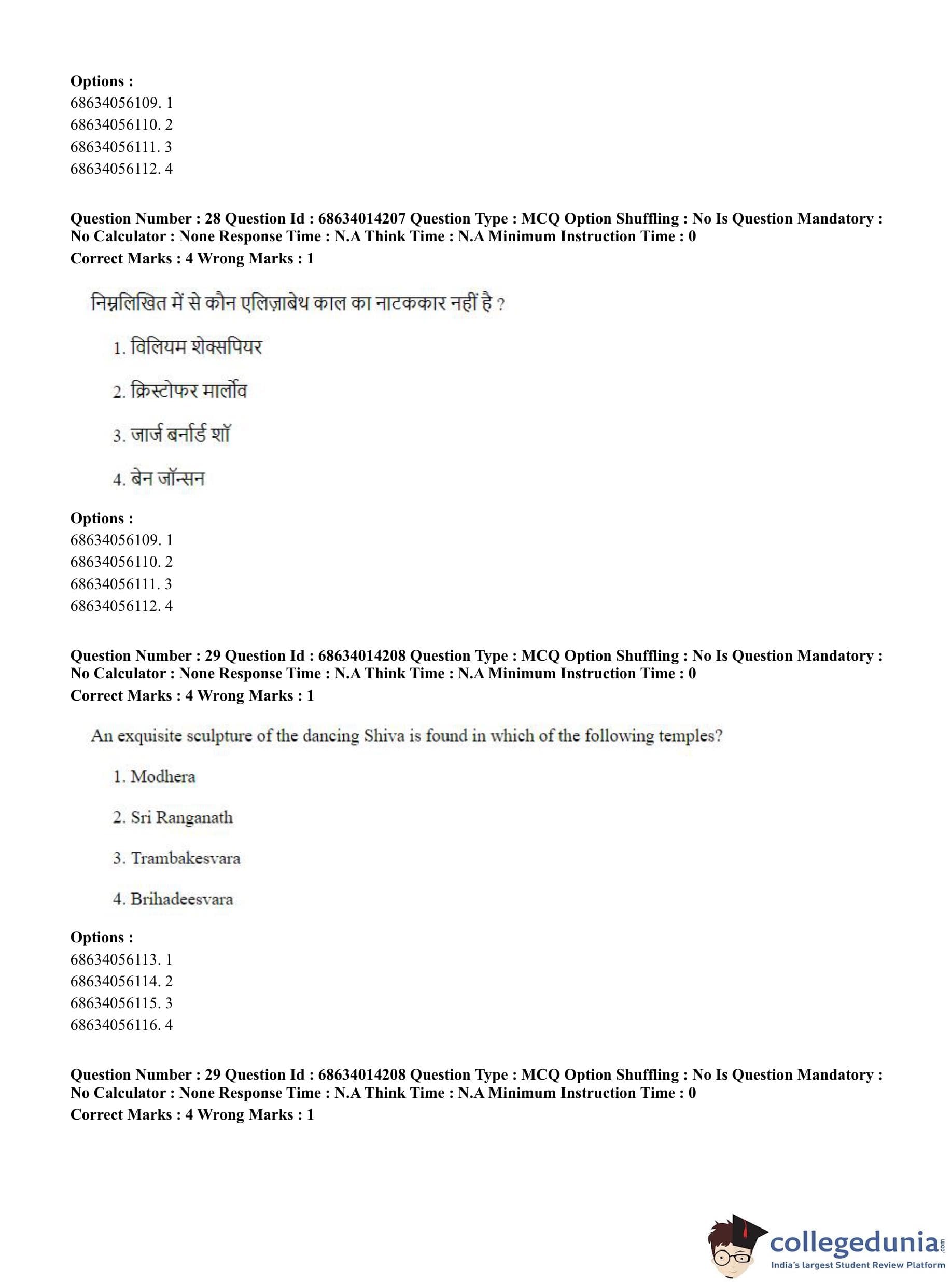 CUET PG 2023 Art and Aesthetics Question Paper in Hindi (June 11 - Shift 3)