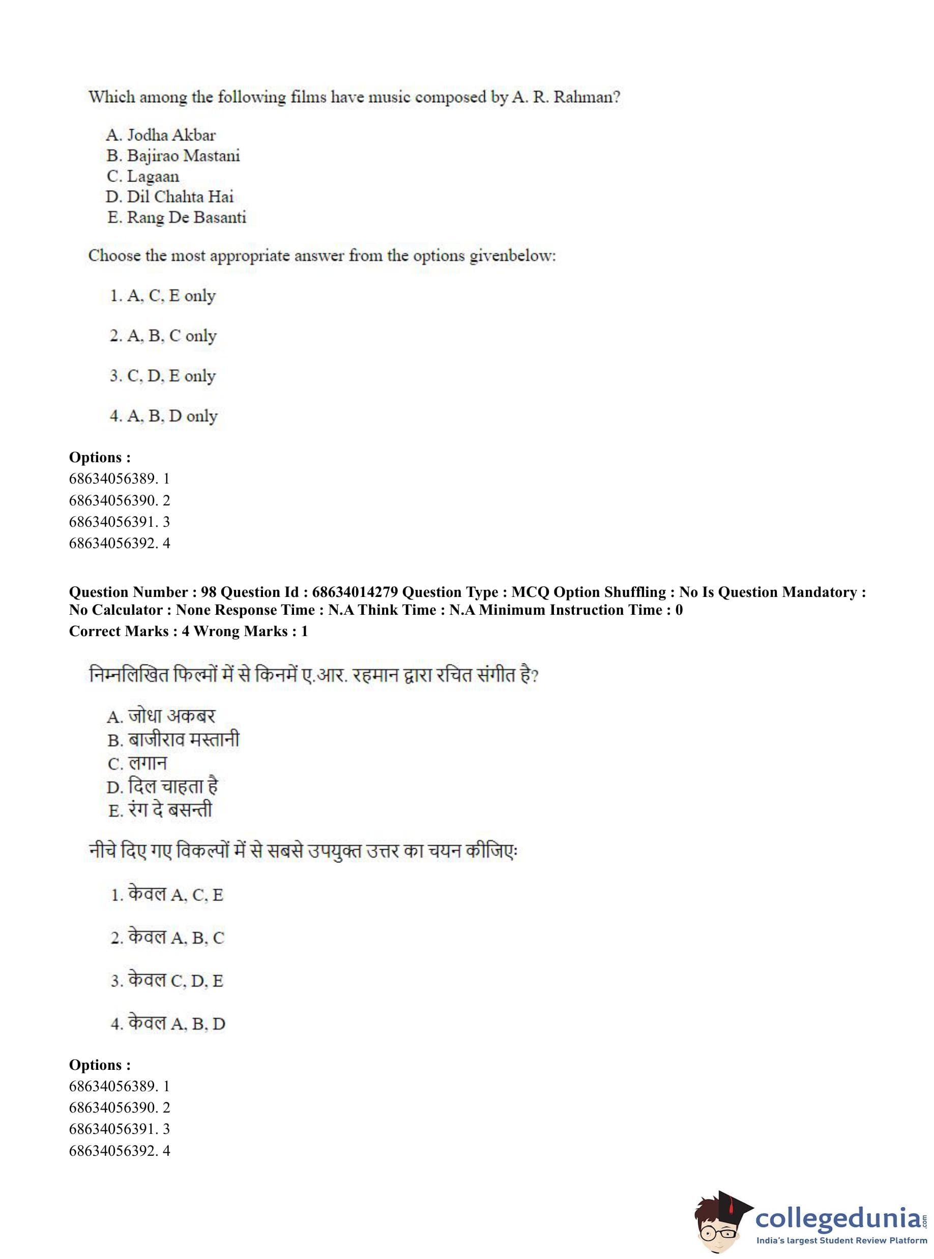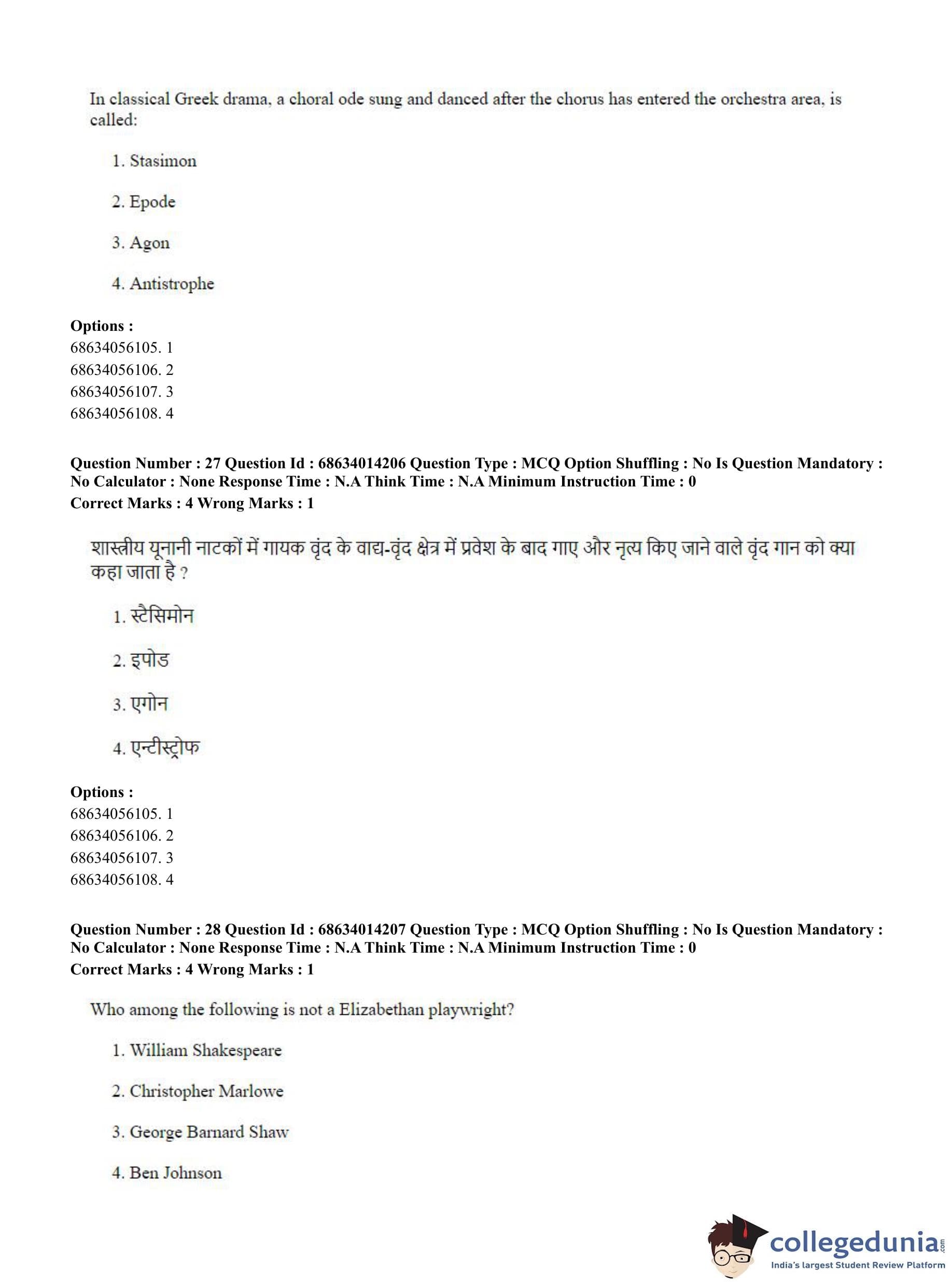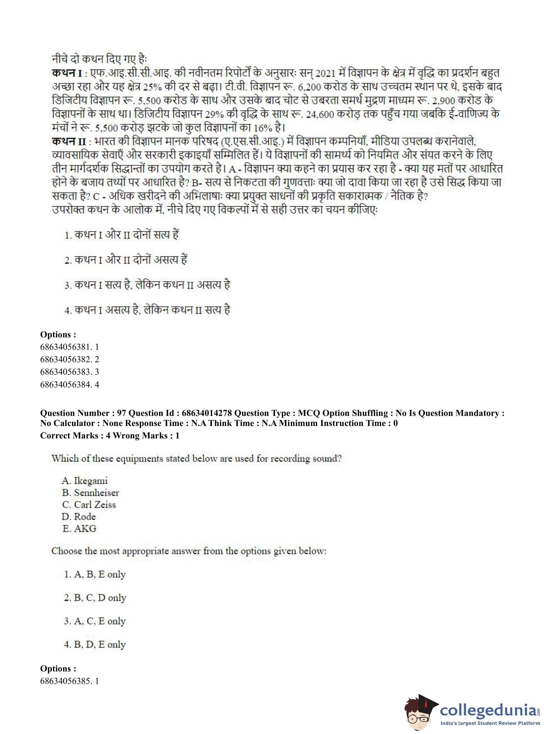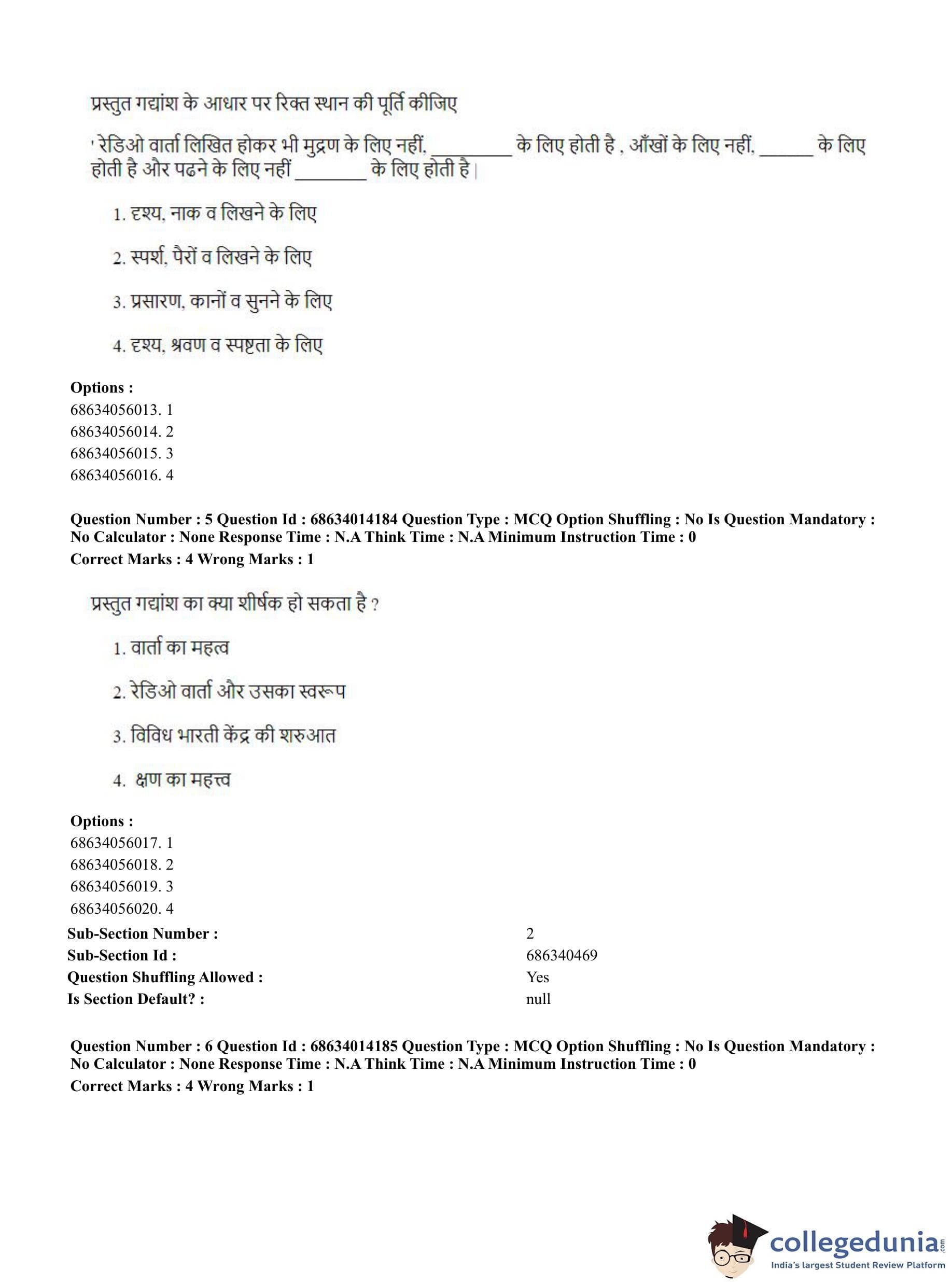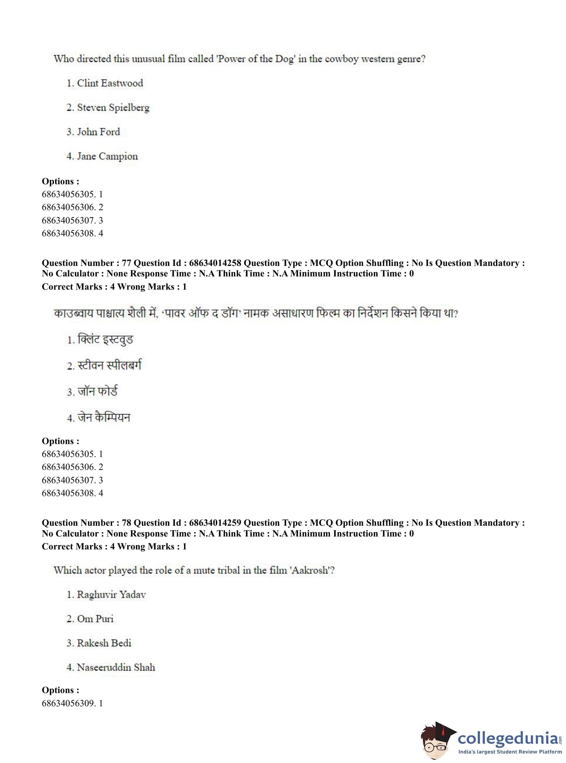 CUET PG 2023 Art and Aesthetics Question Paper in Hindi (June 11 - Shift 3)