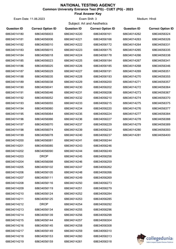 | CUET PG Art and Aesthetics Question Paper 2023 PDF | CUET PG Art and Aesthetics Answer Key 2023 PDF |