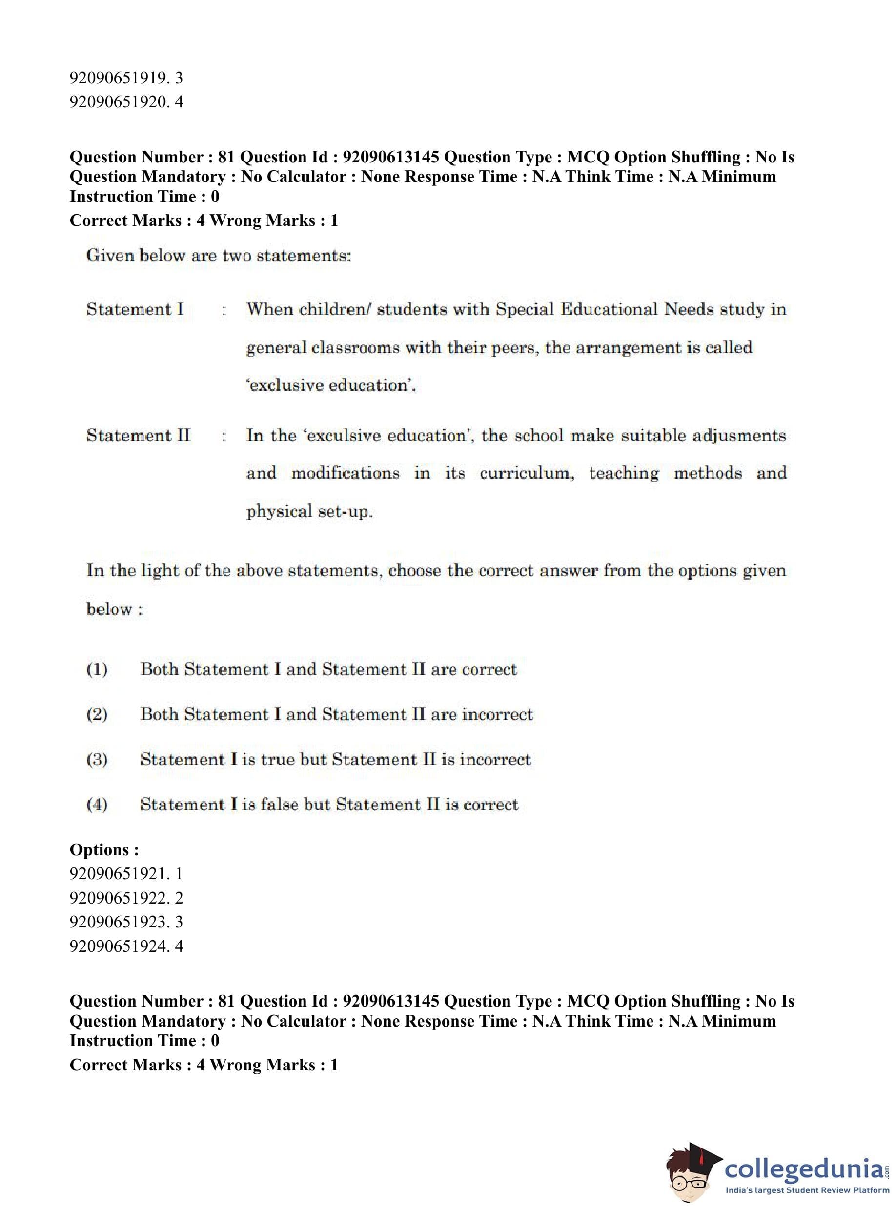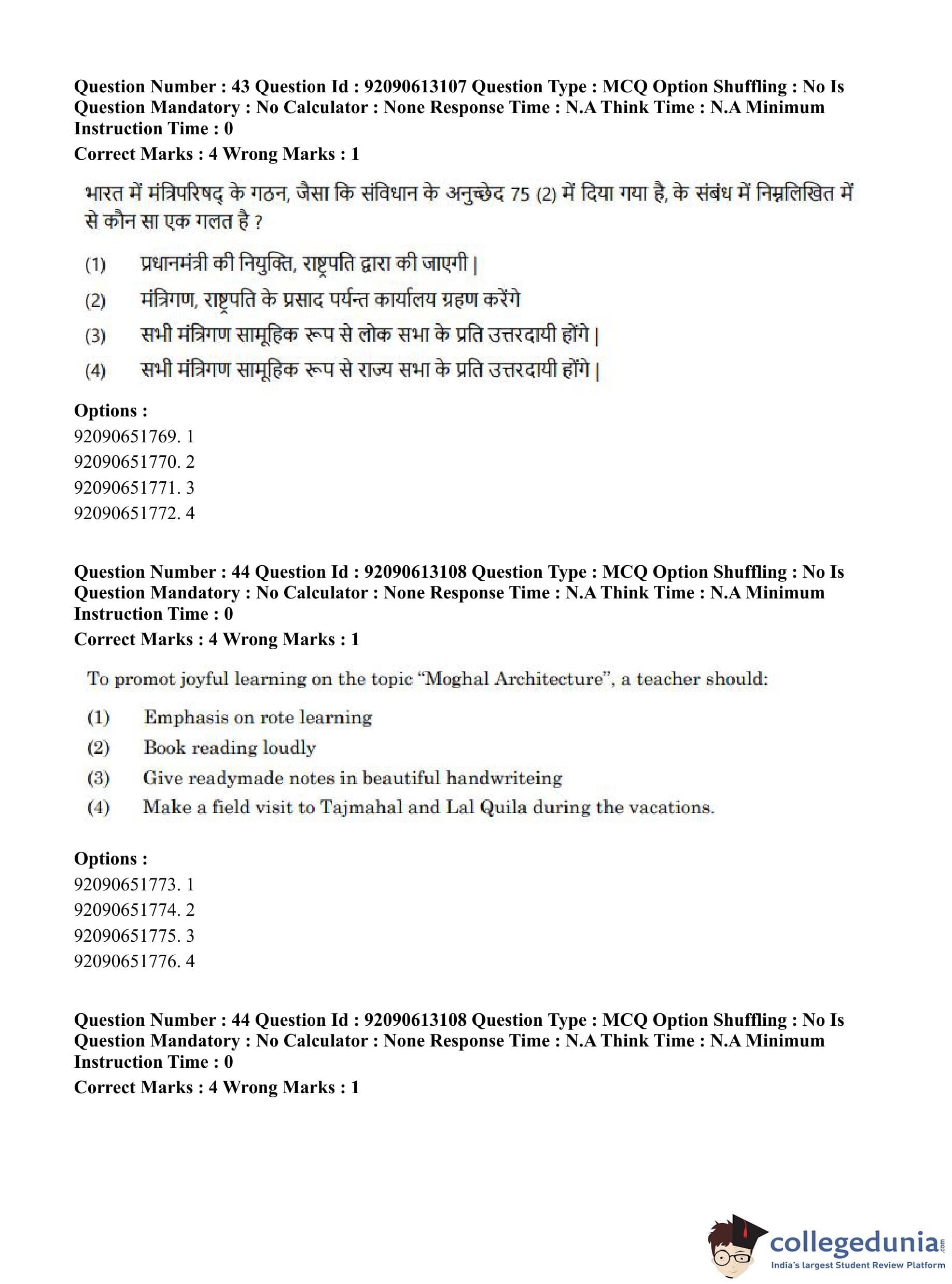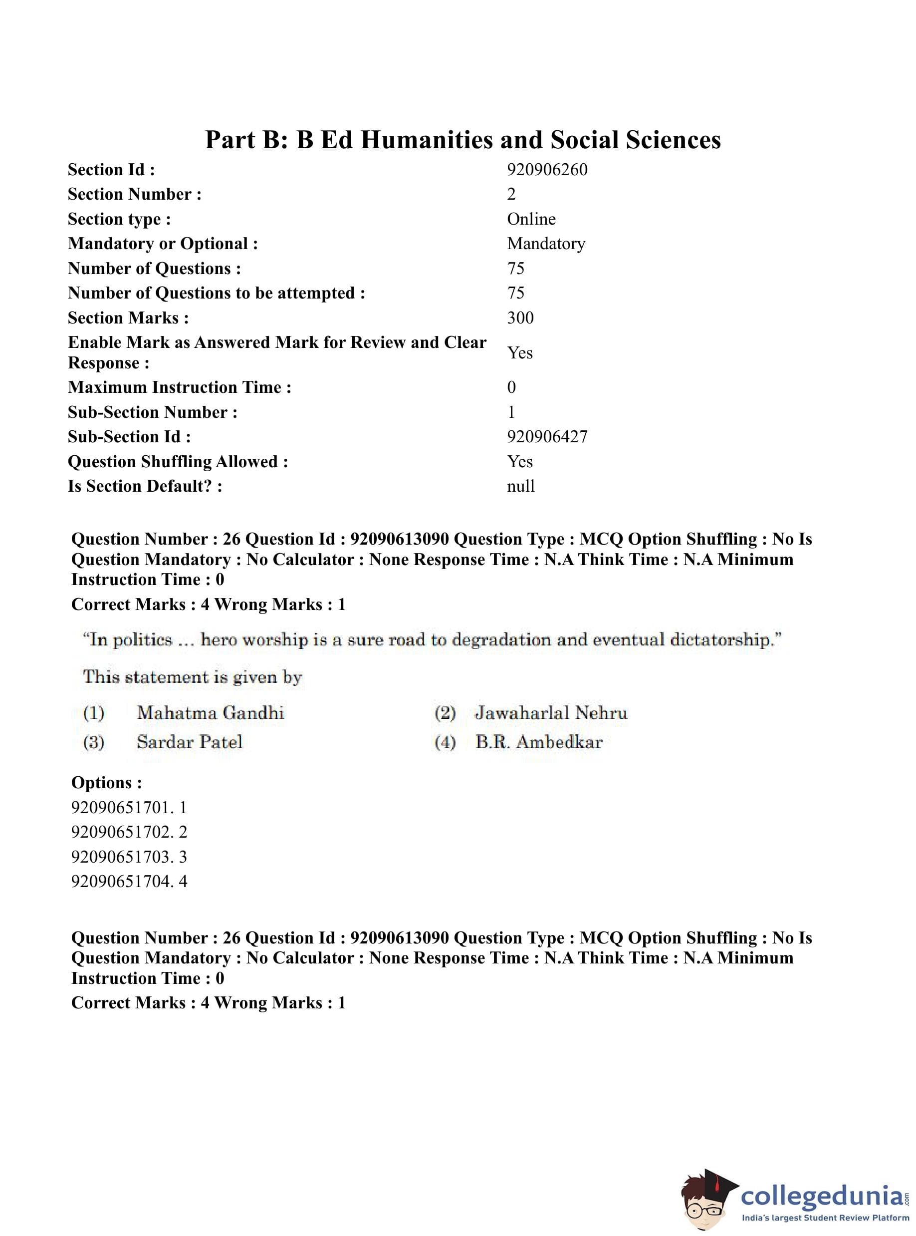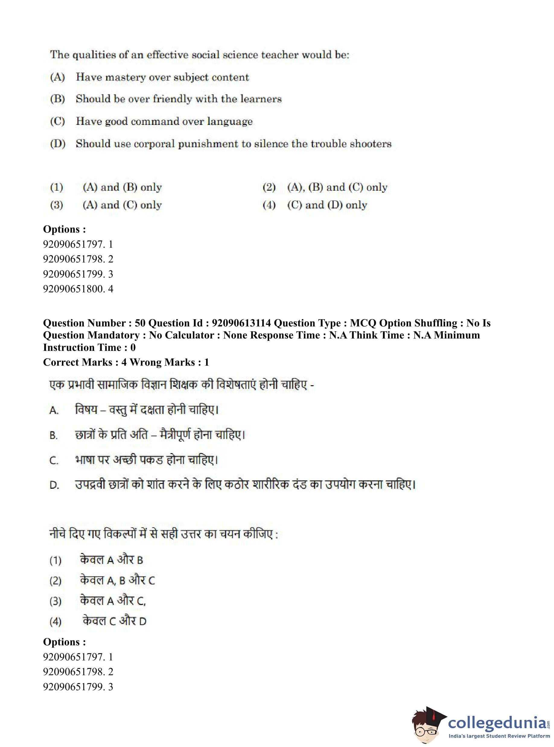 CUET PG 2023 B.Ed. Humanities and Social Sciences Question Paper in English (June 12 - Shift 1)