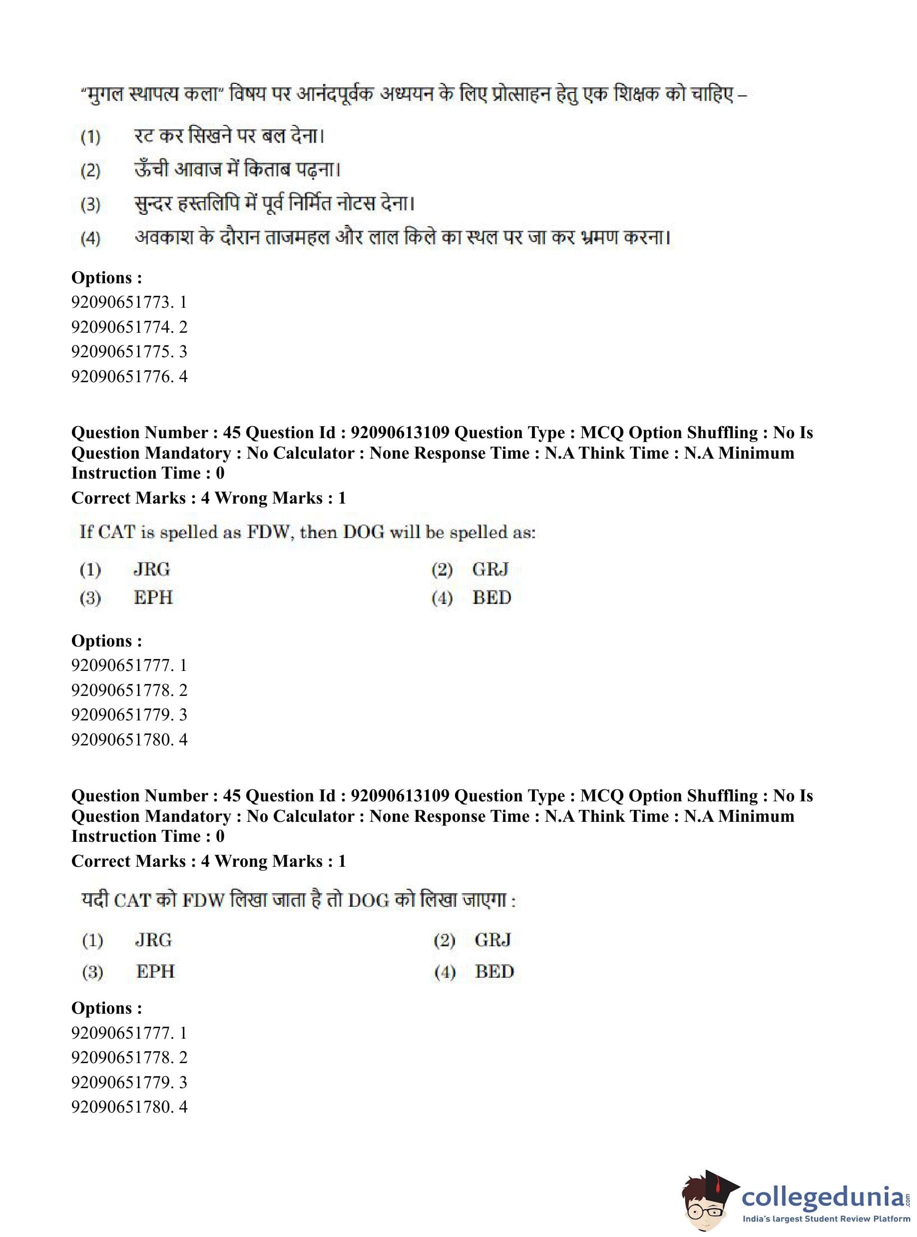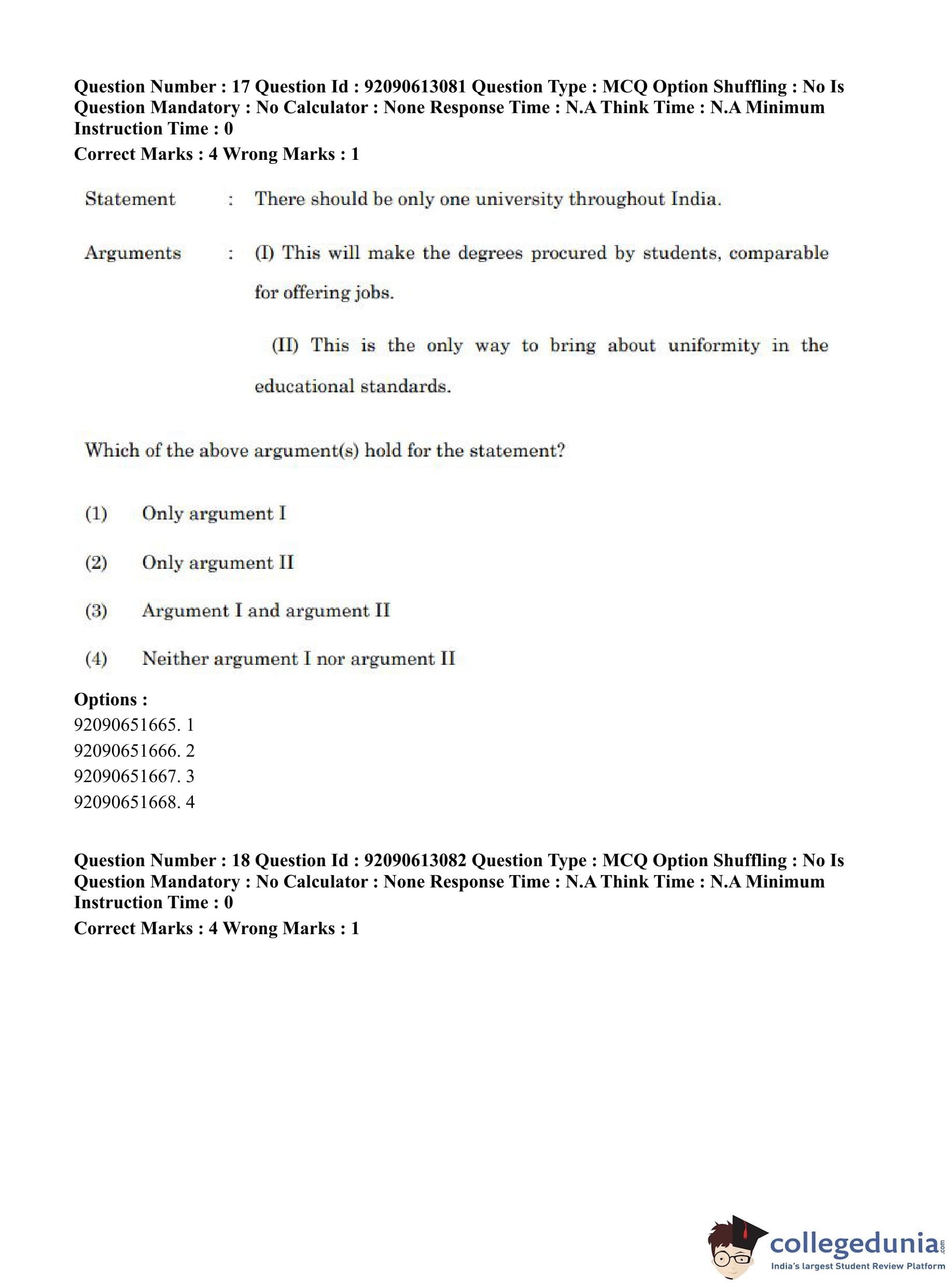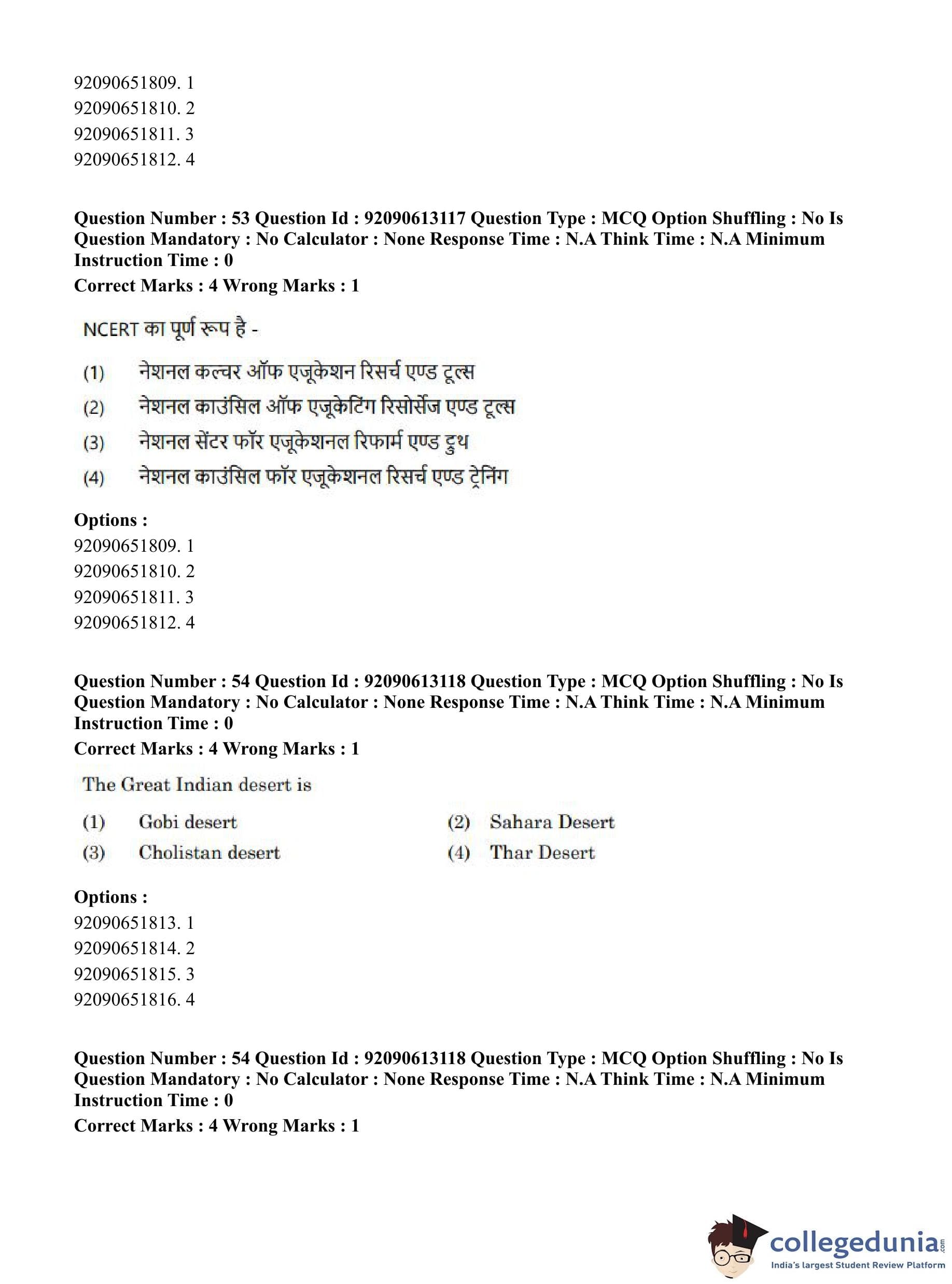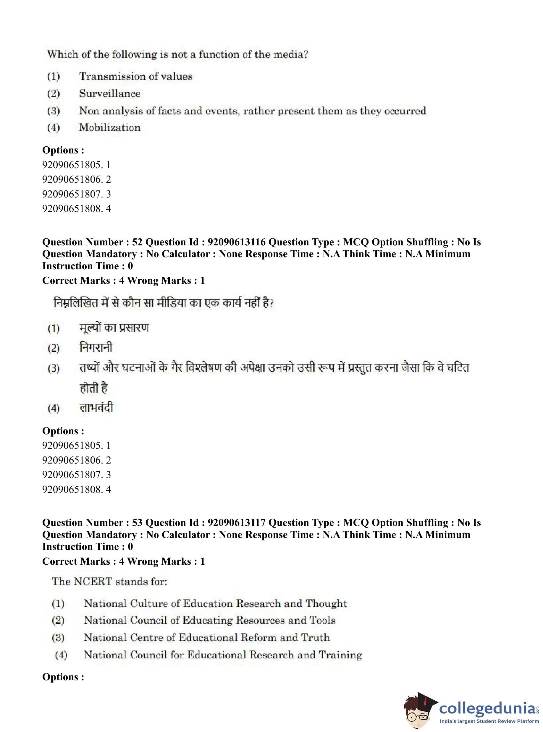 CUET PG 2023 B.Ed. Humanities and Social Sciences Question Paper in English (June 12 - Shift 1)