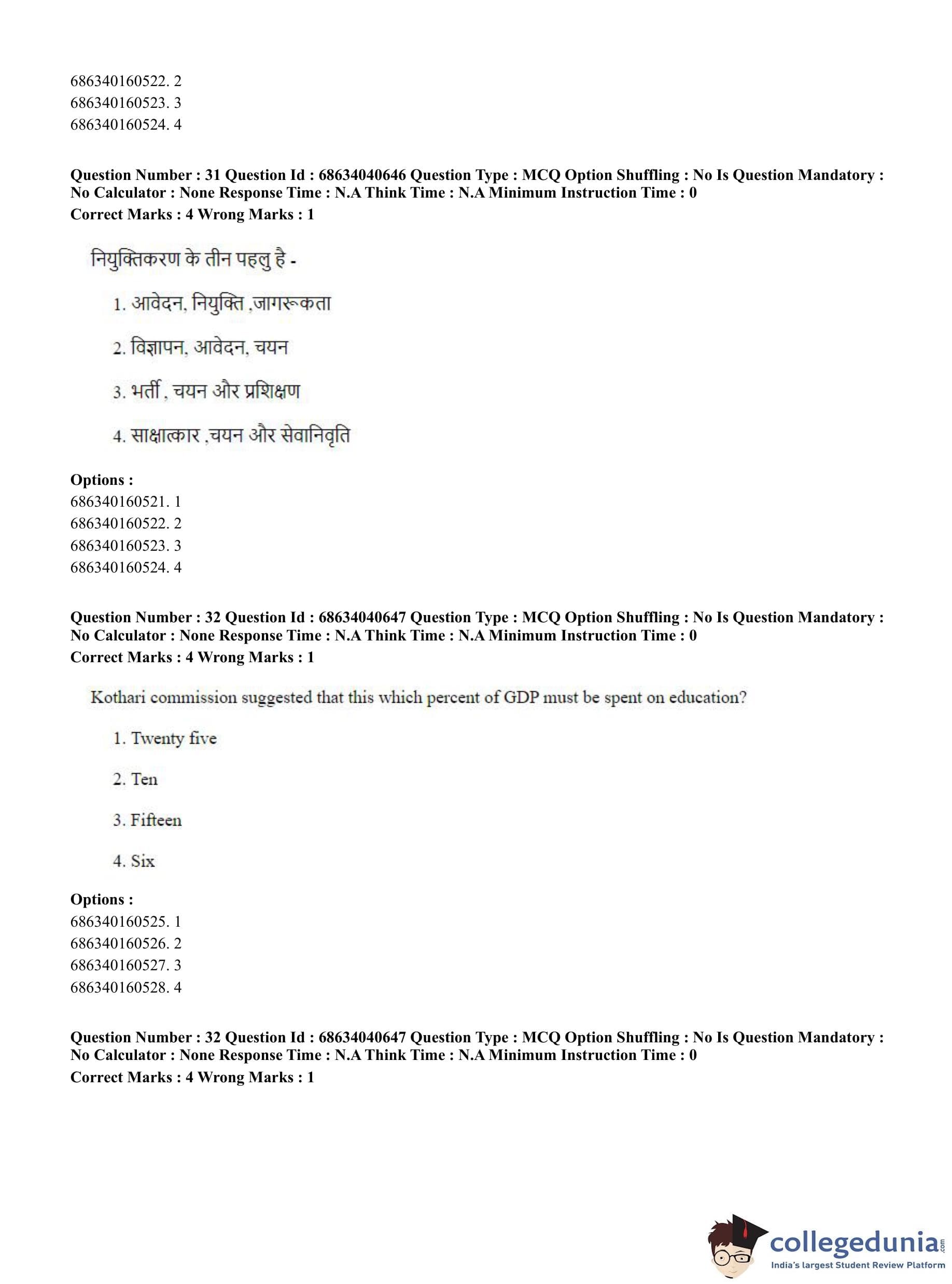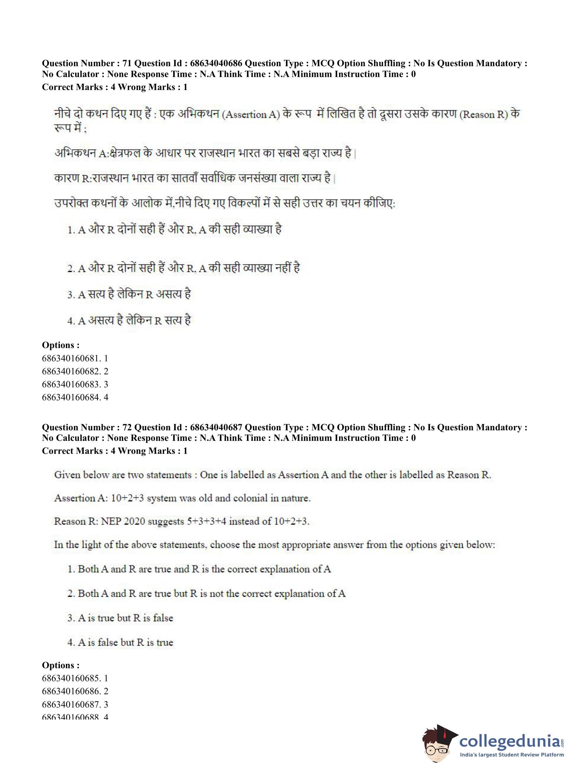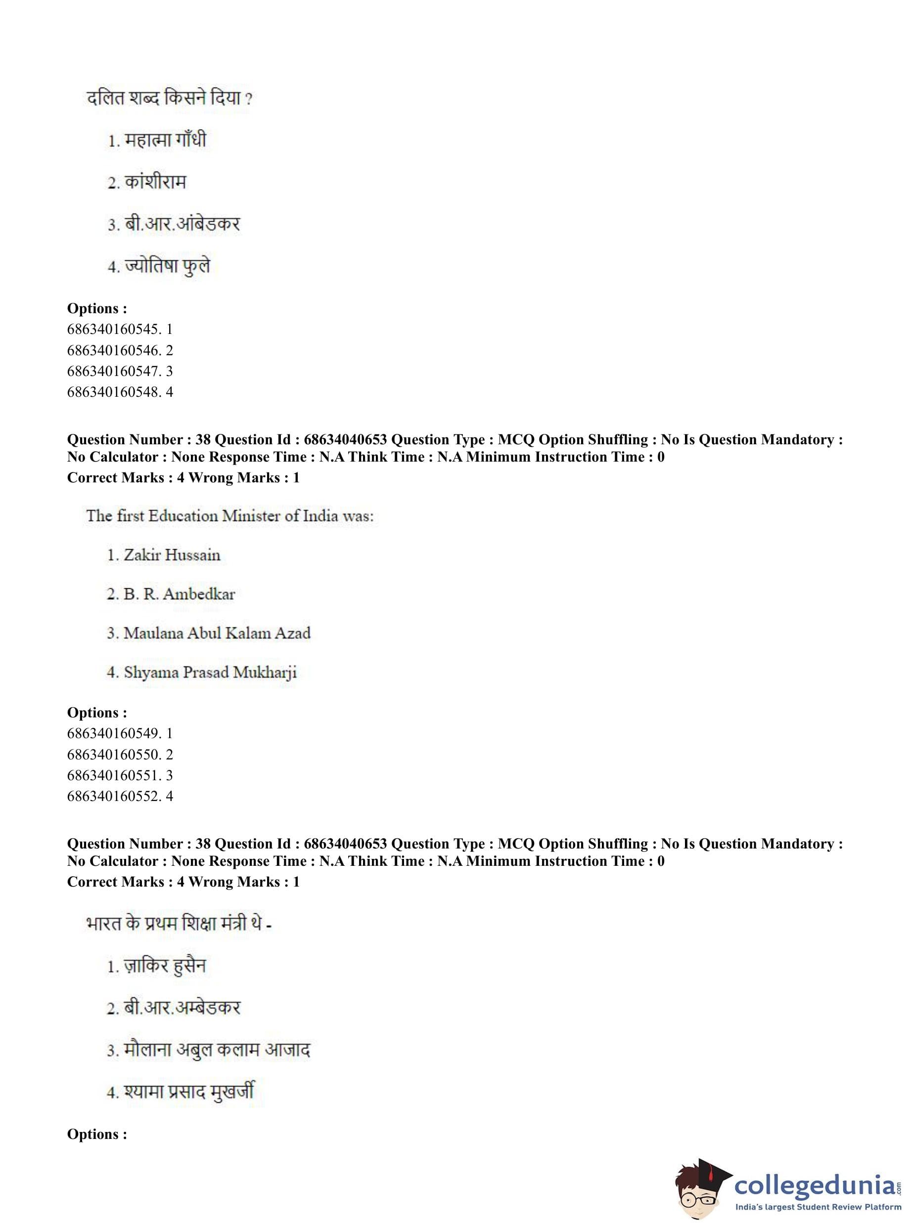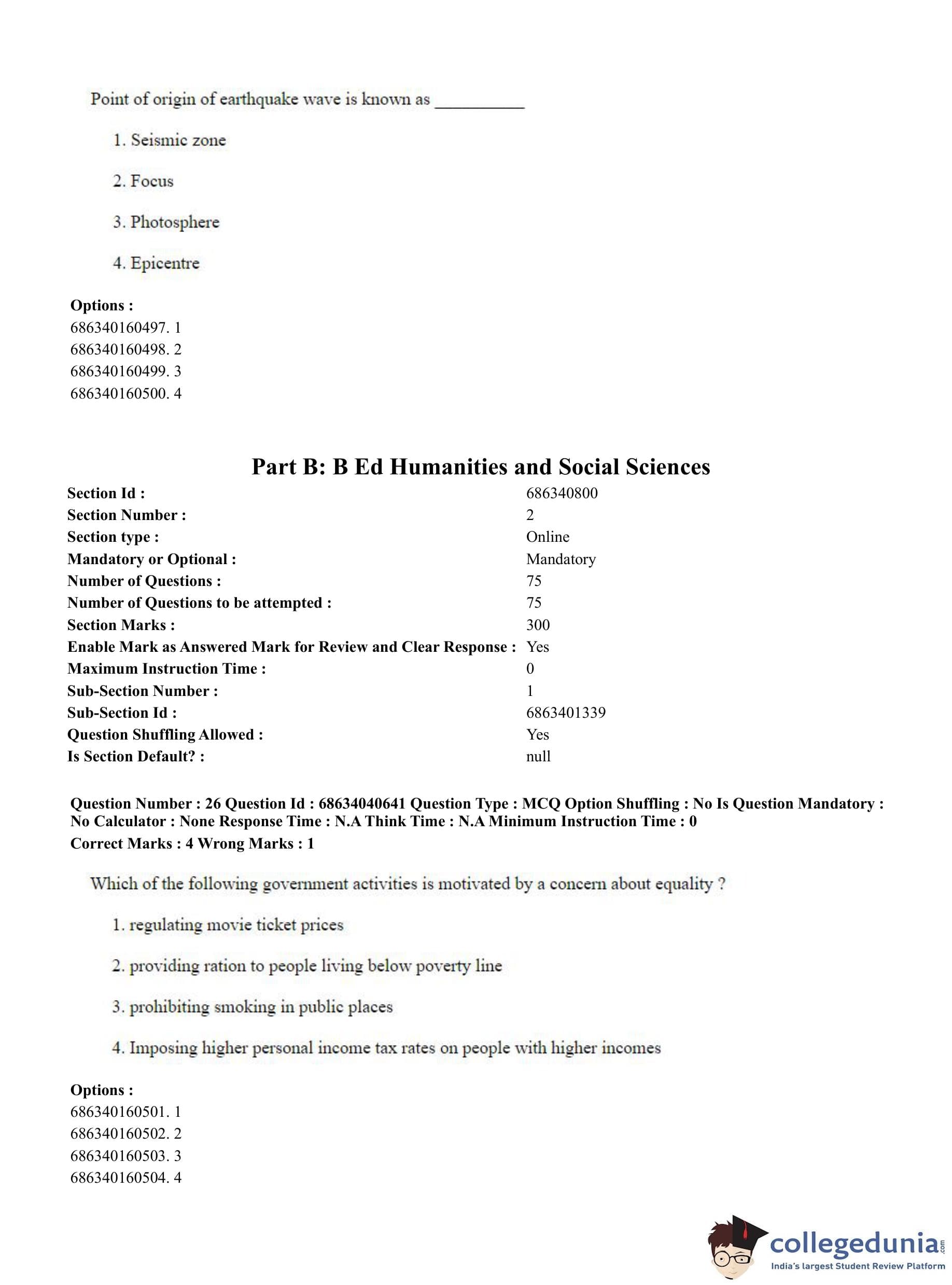CUET PG 2023 B.Ed. Humanities and Social Sciences Question Paper in English (June 30 - Shift 3)