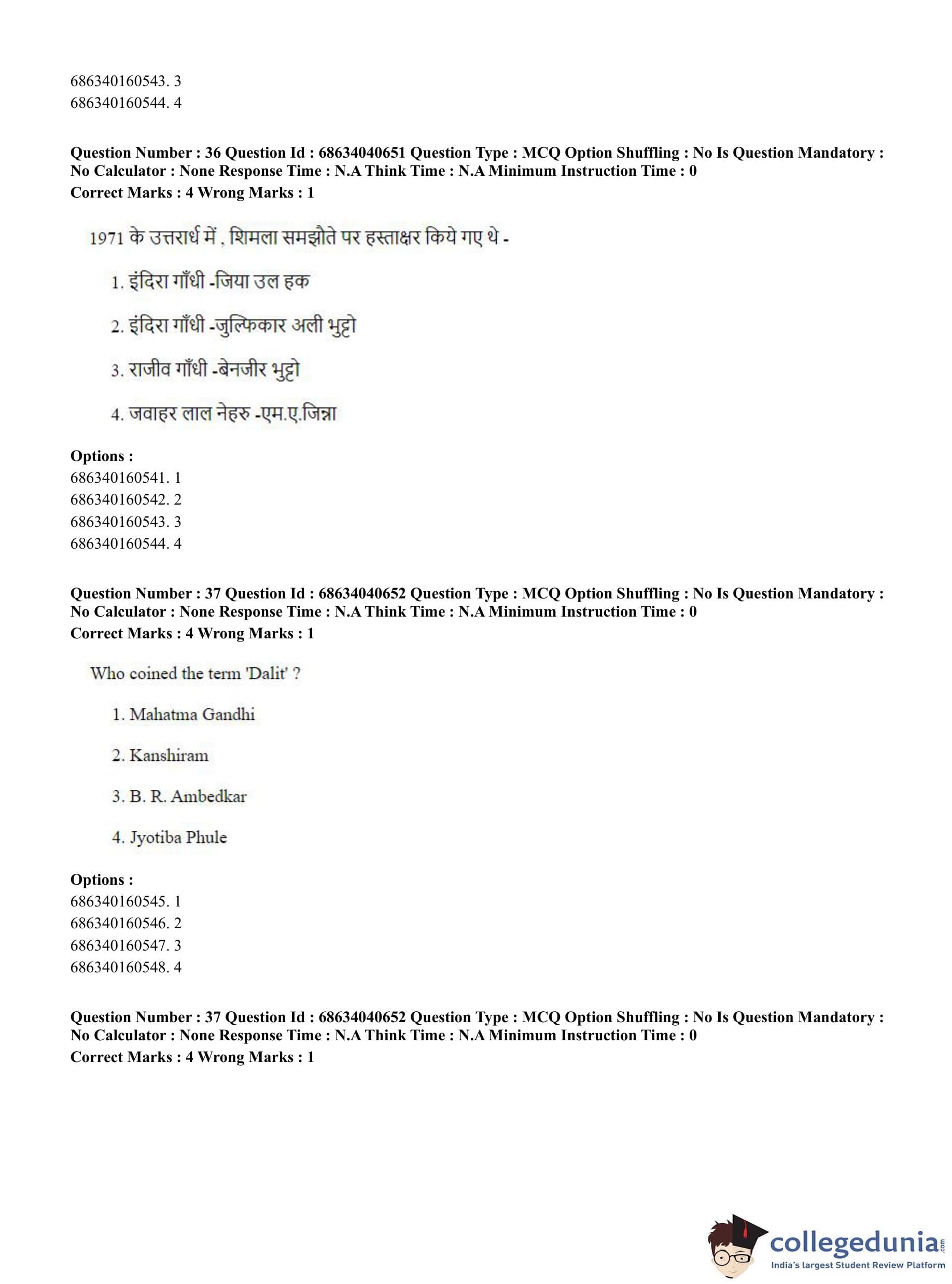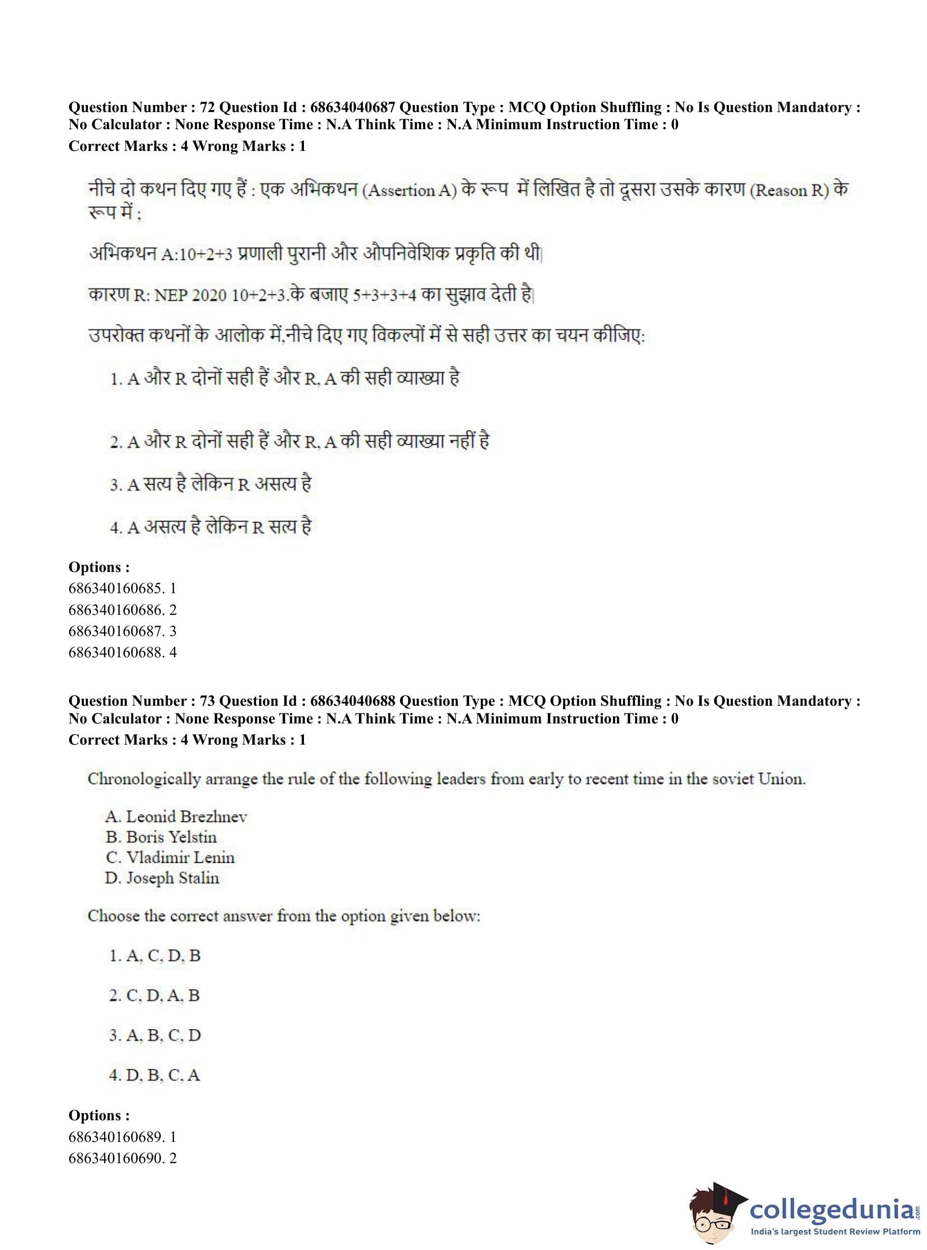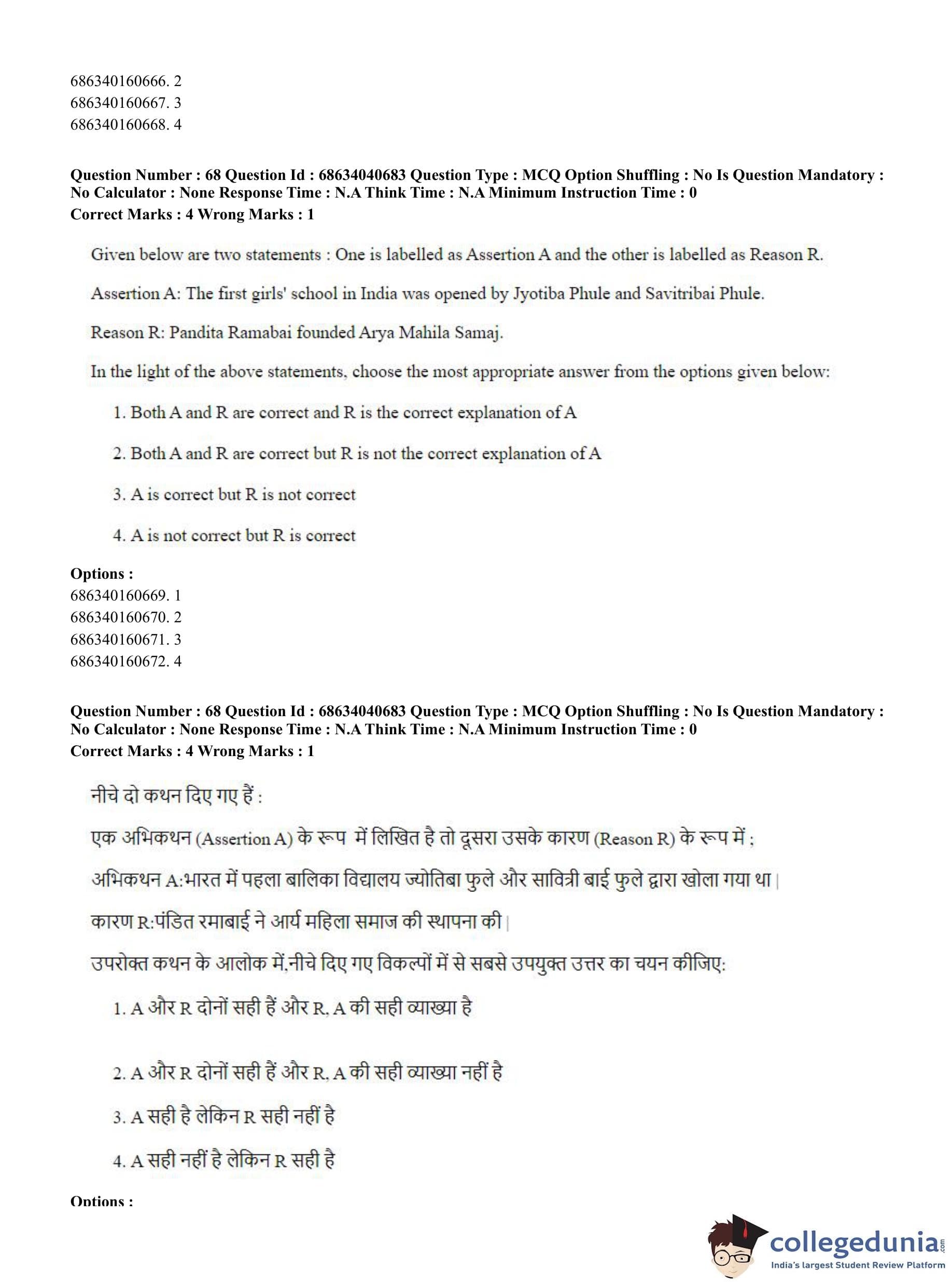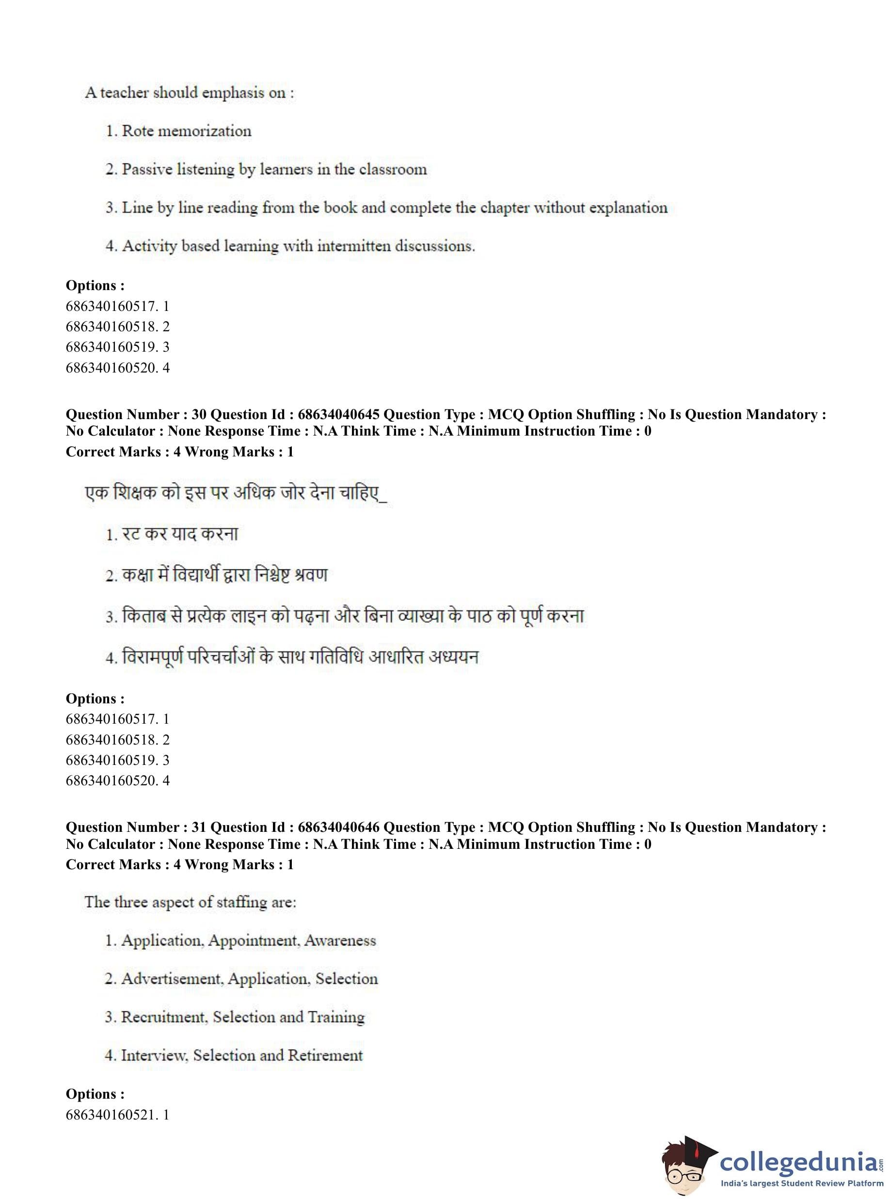 CUET PG 2023 B.Ed. Humanities and Social Sciences Question Paper in English (June 30 - Shift 3)