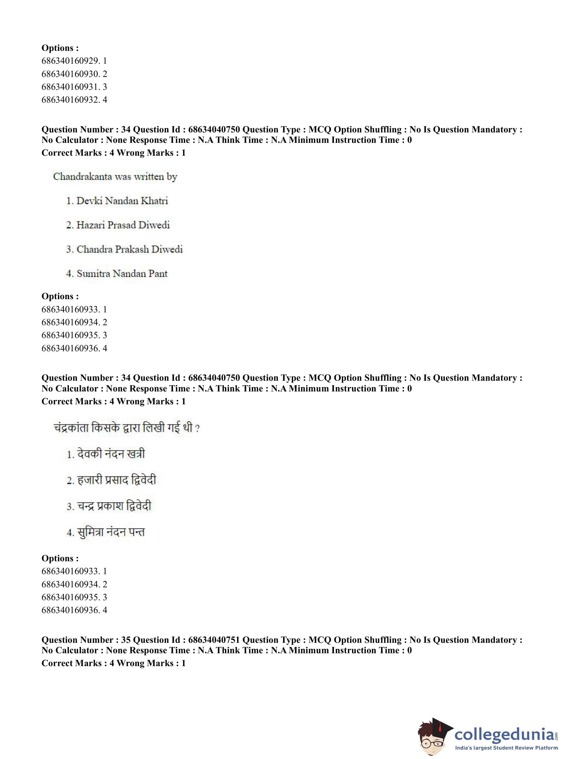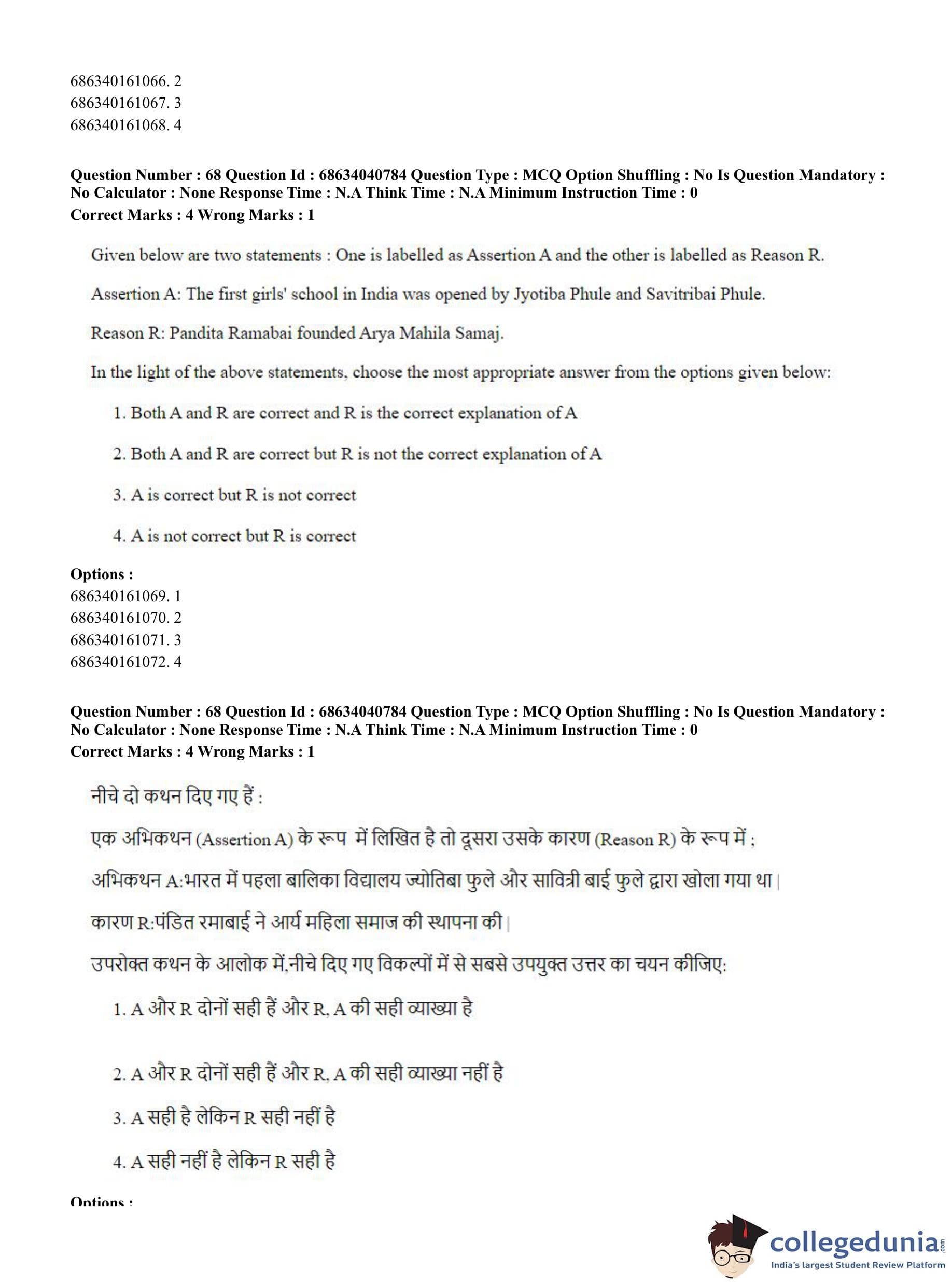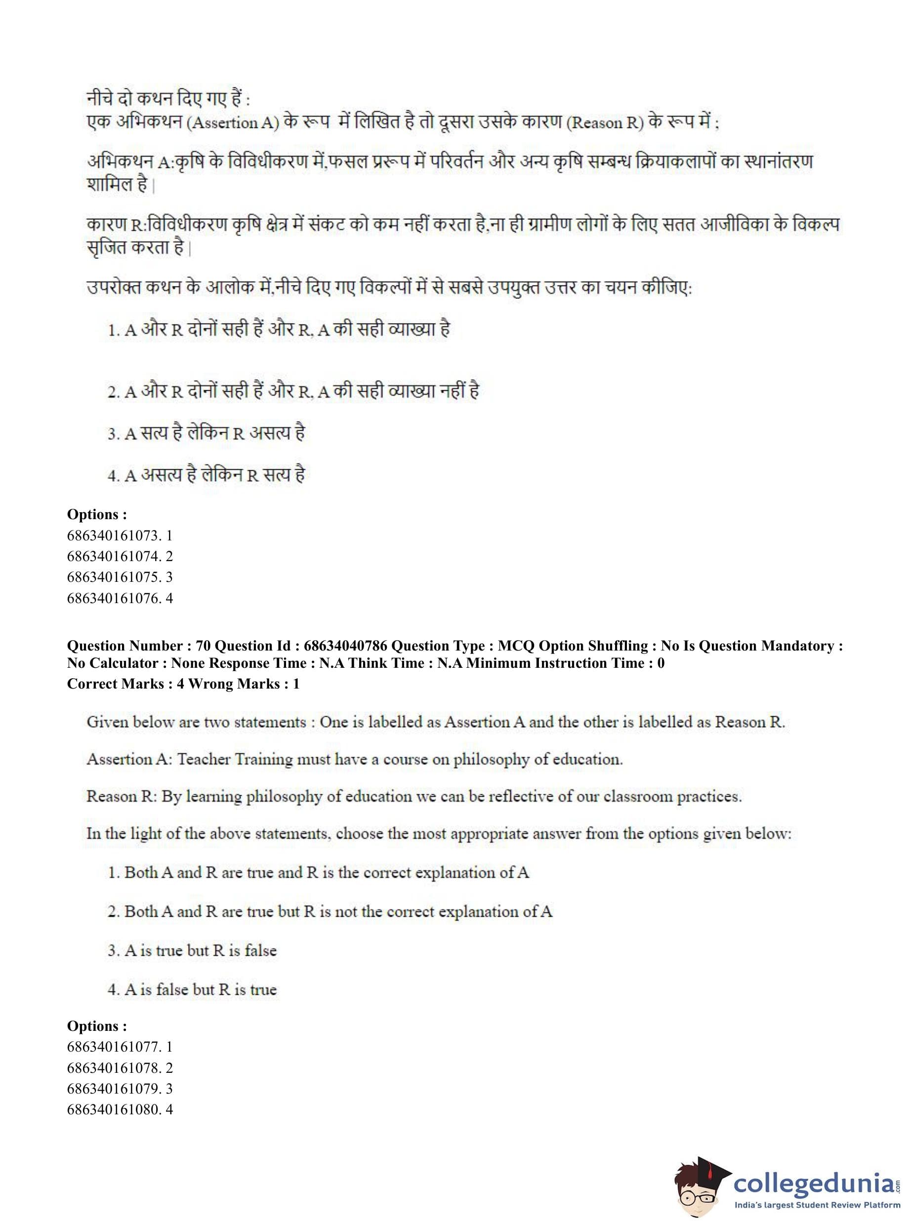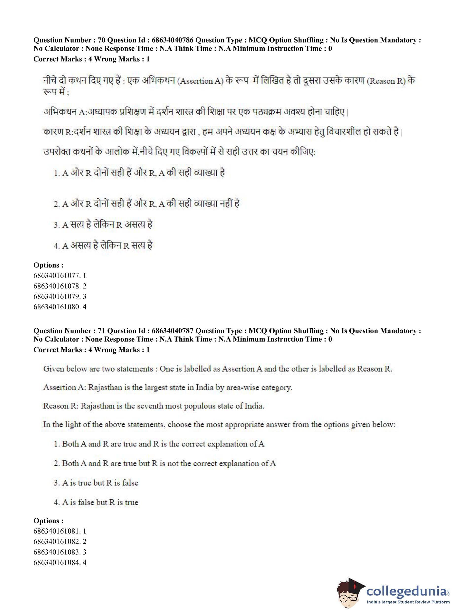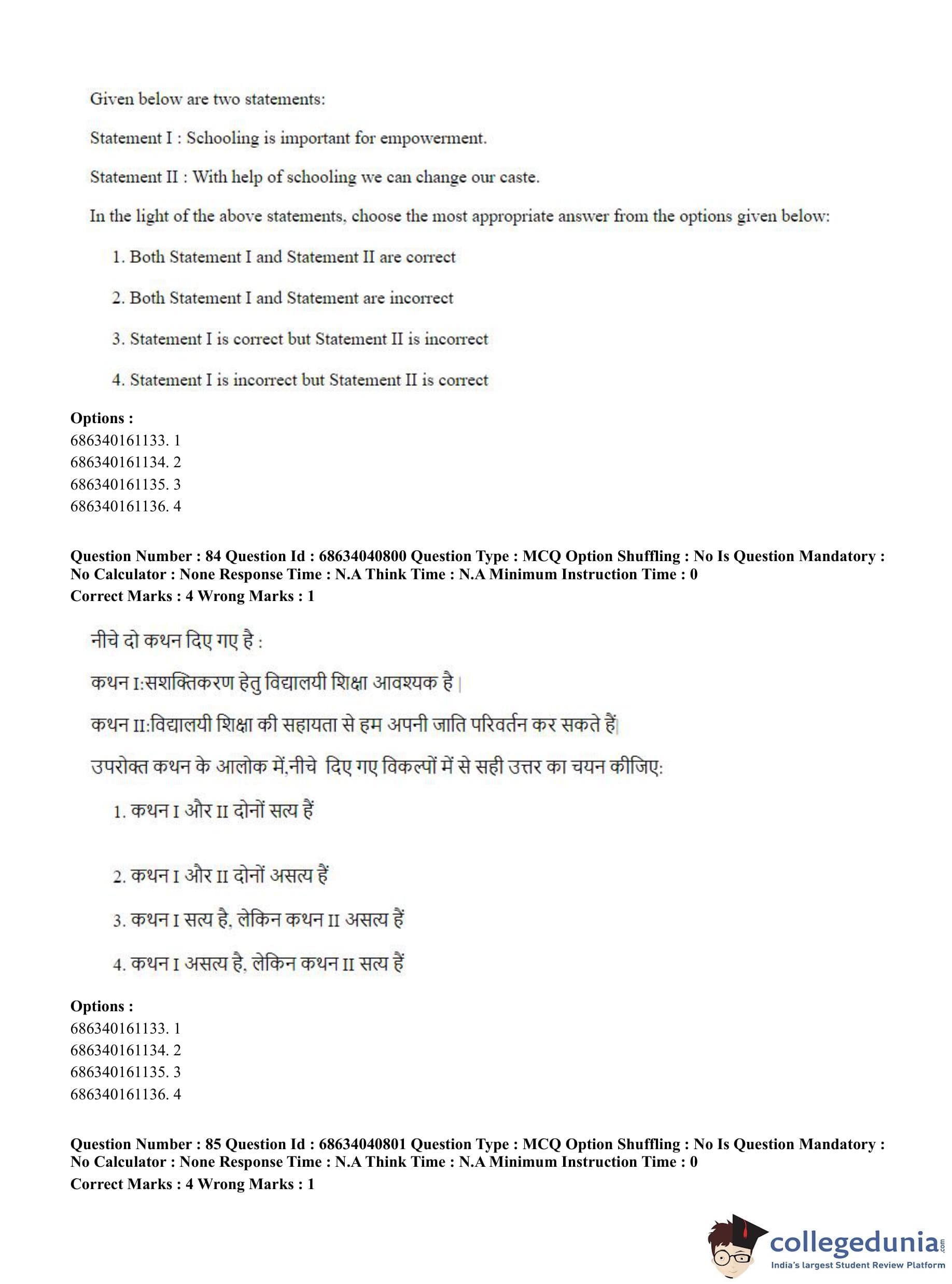 CUET PG 2023 B.Ed. Humanities and Social Sciences Question Paper in Hindi (June 30 - Shift 3)