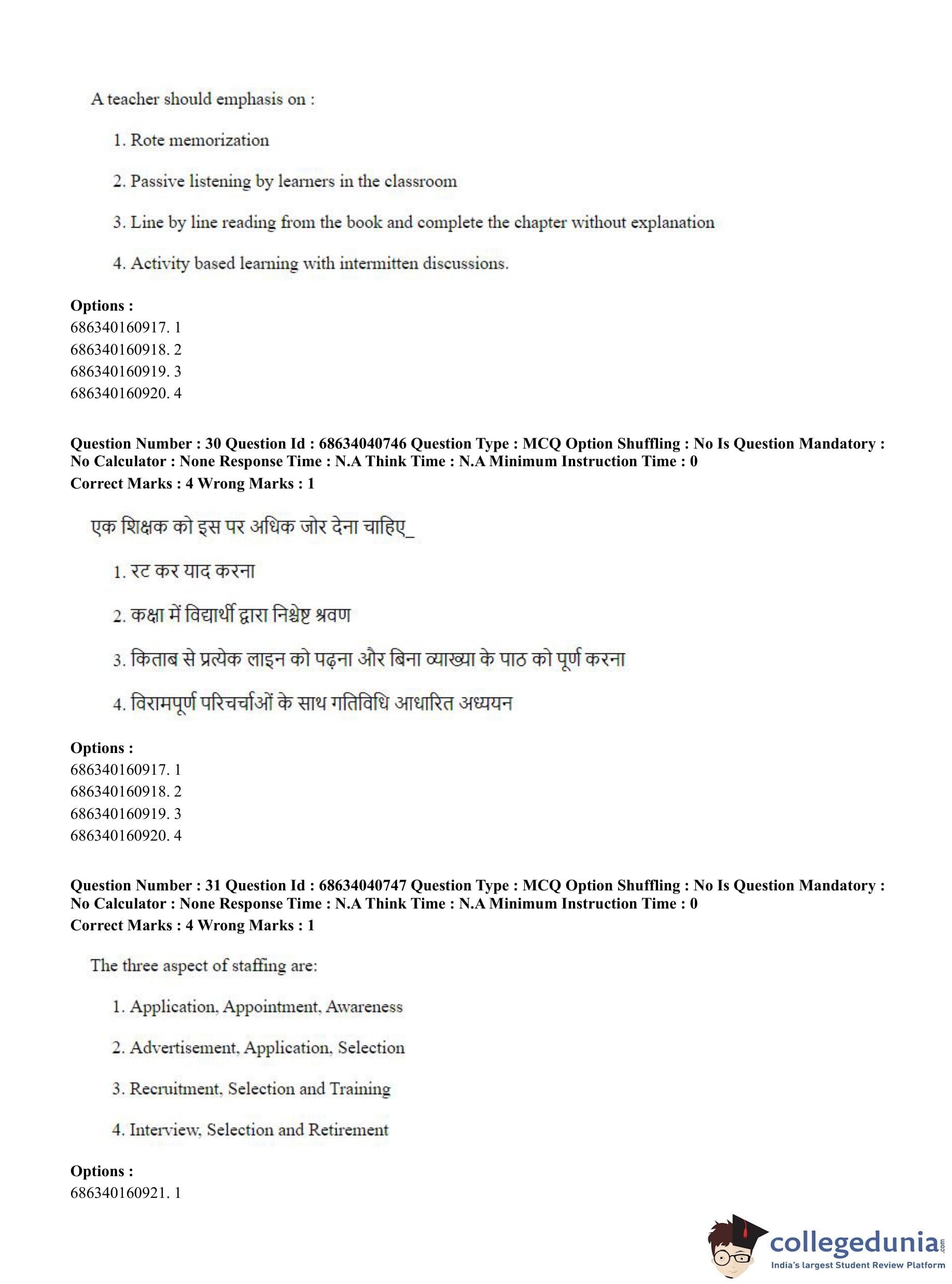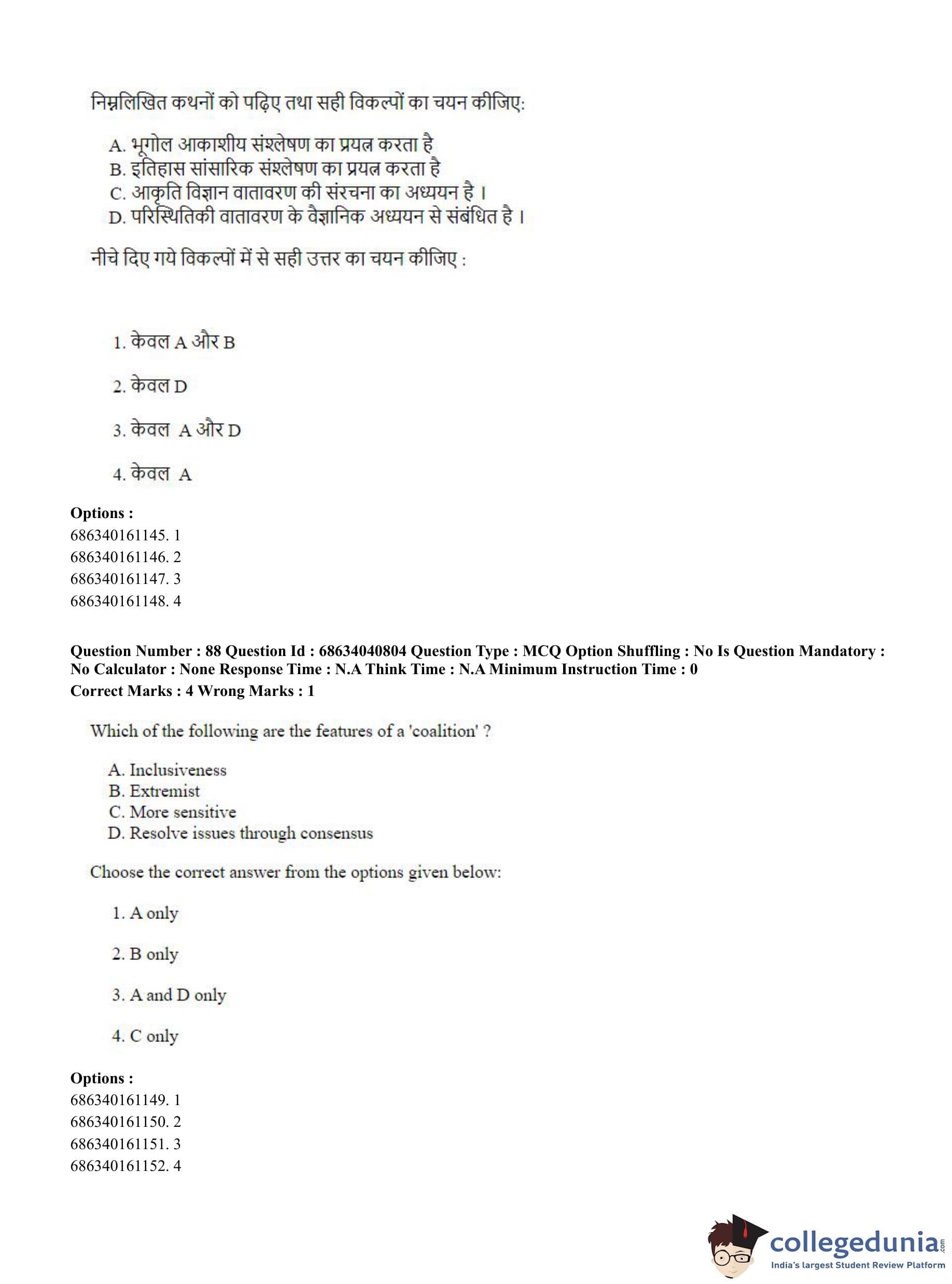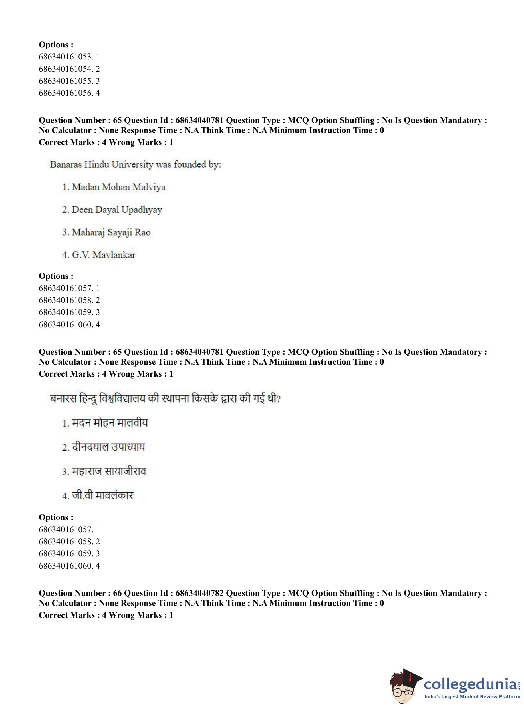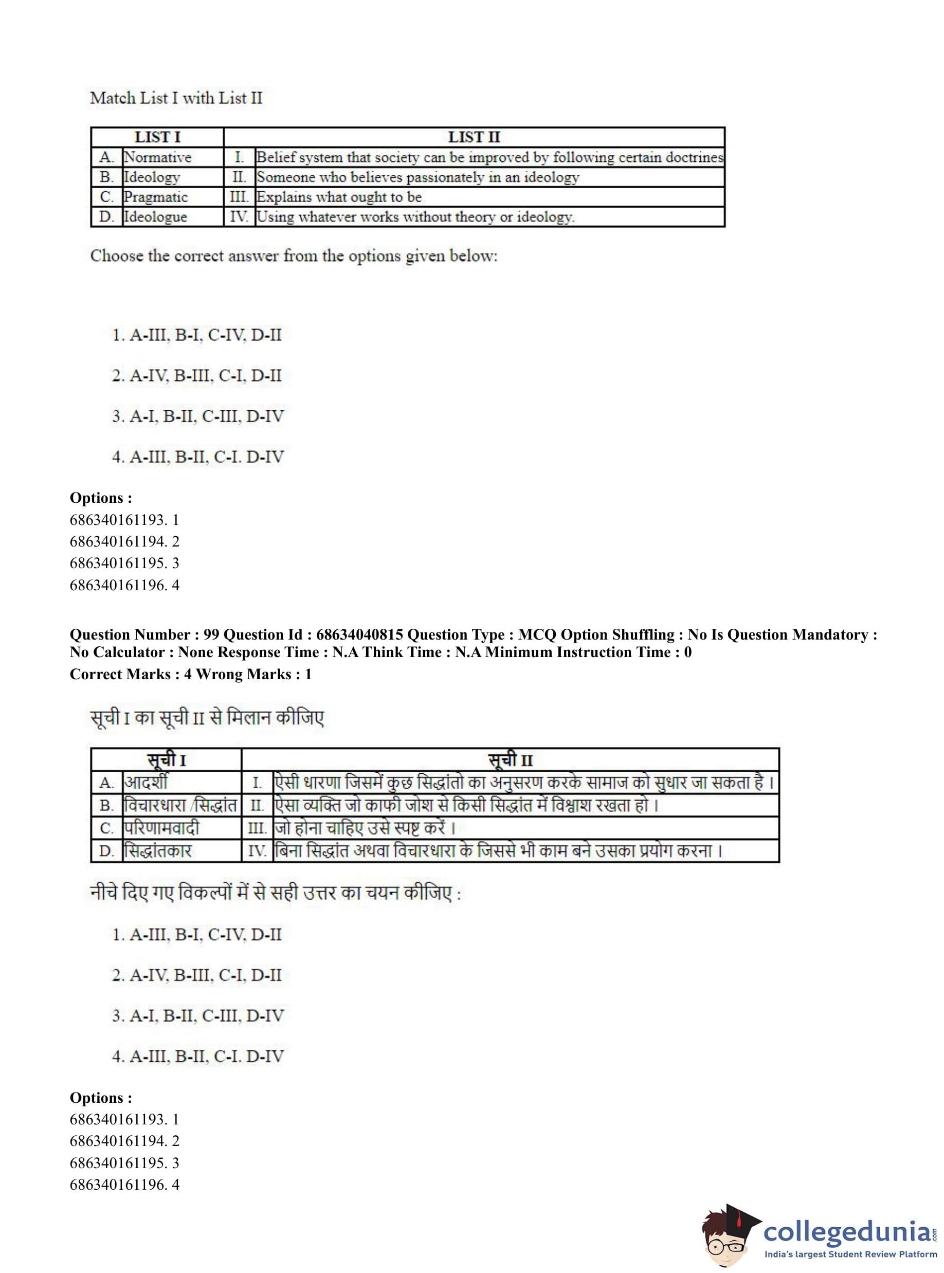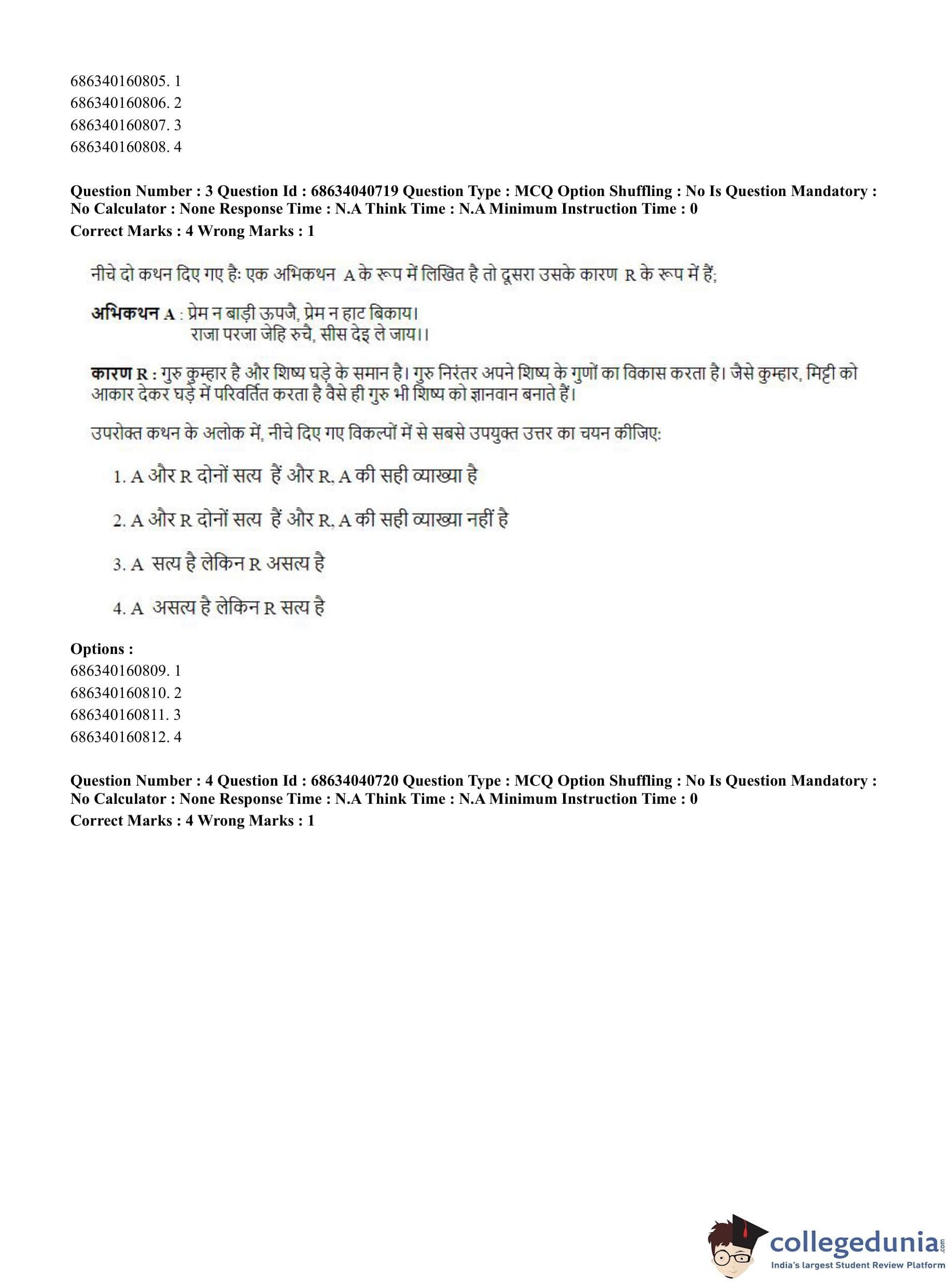 CUET PG 2023 B.Ed. Humanities and Social Sciences Question Paper in Hindi (June 30 - Shift 3)