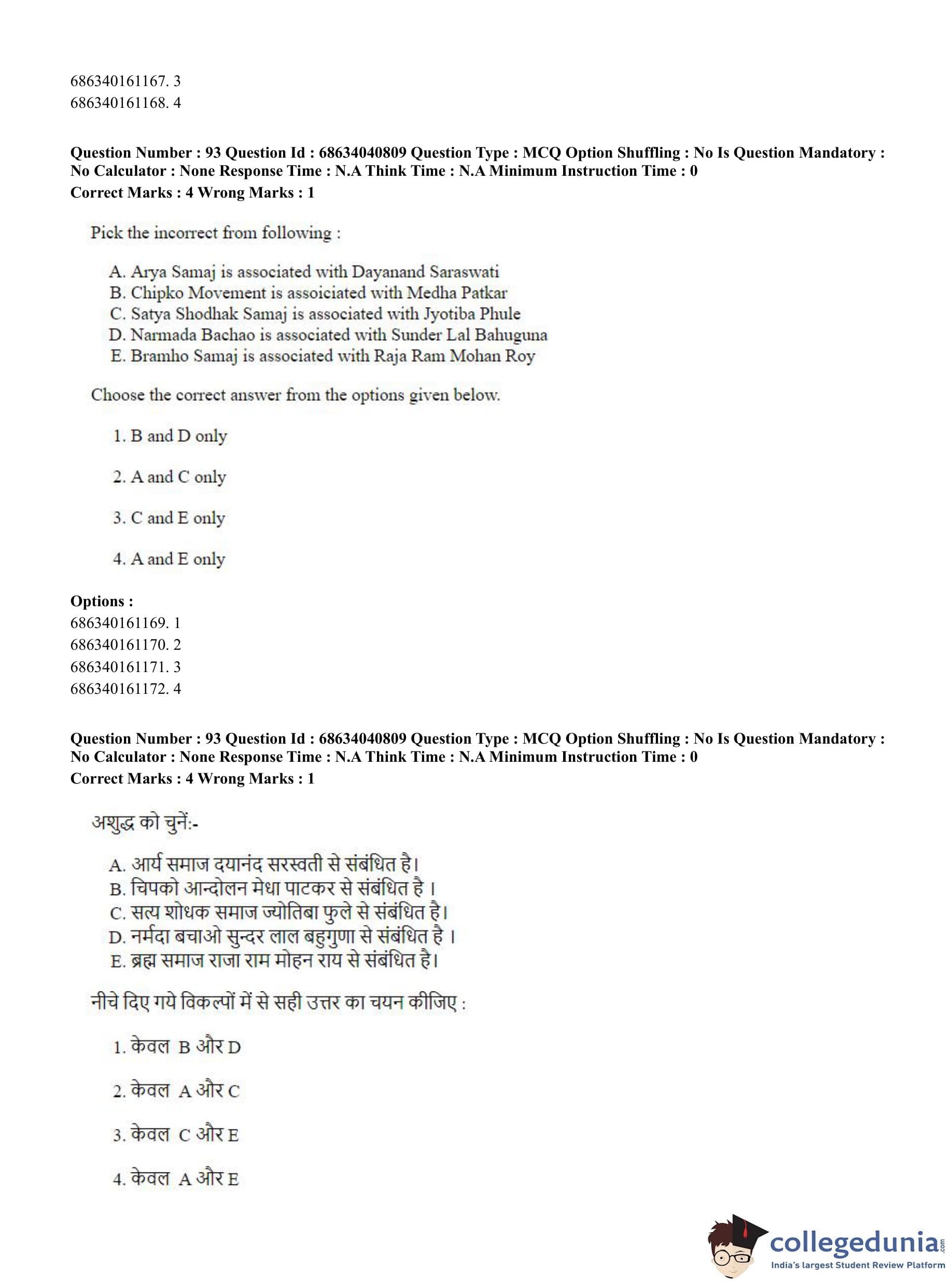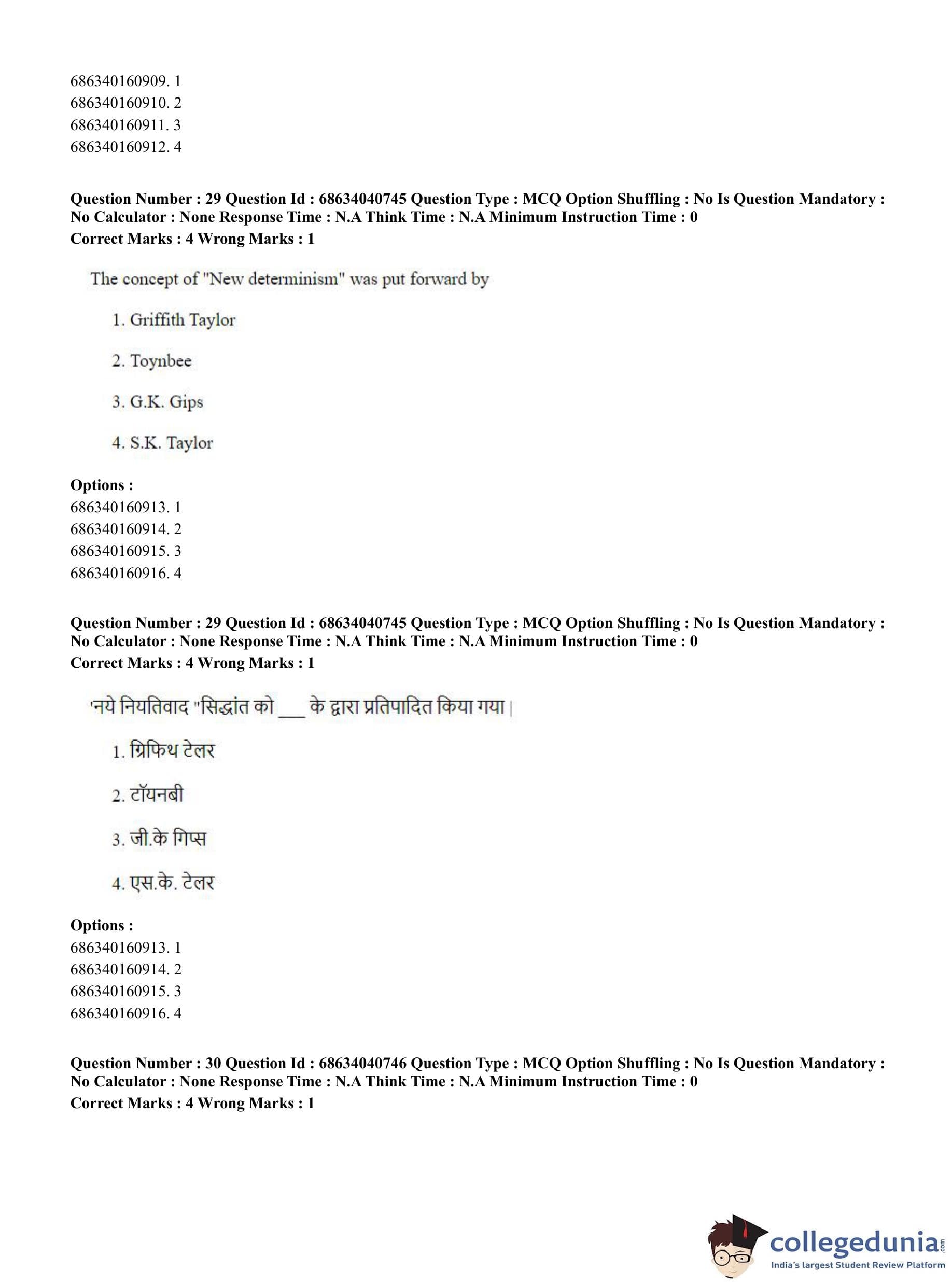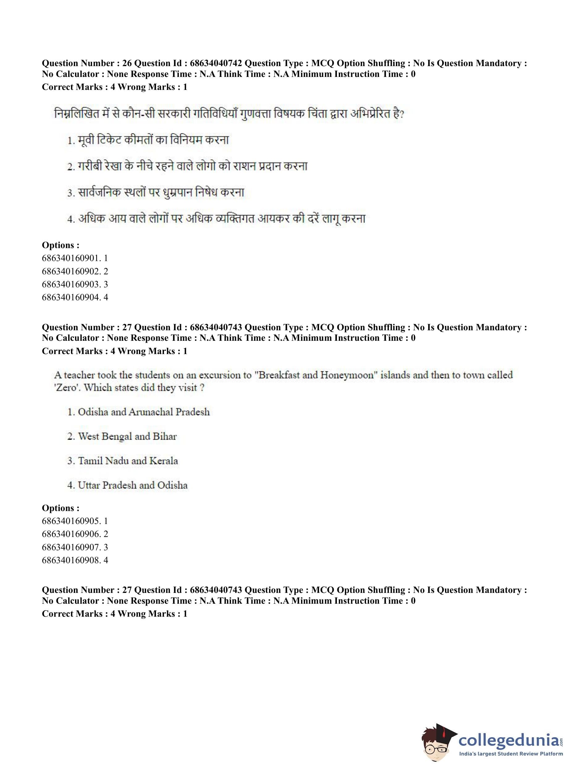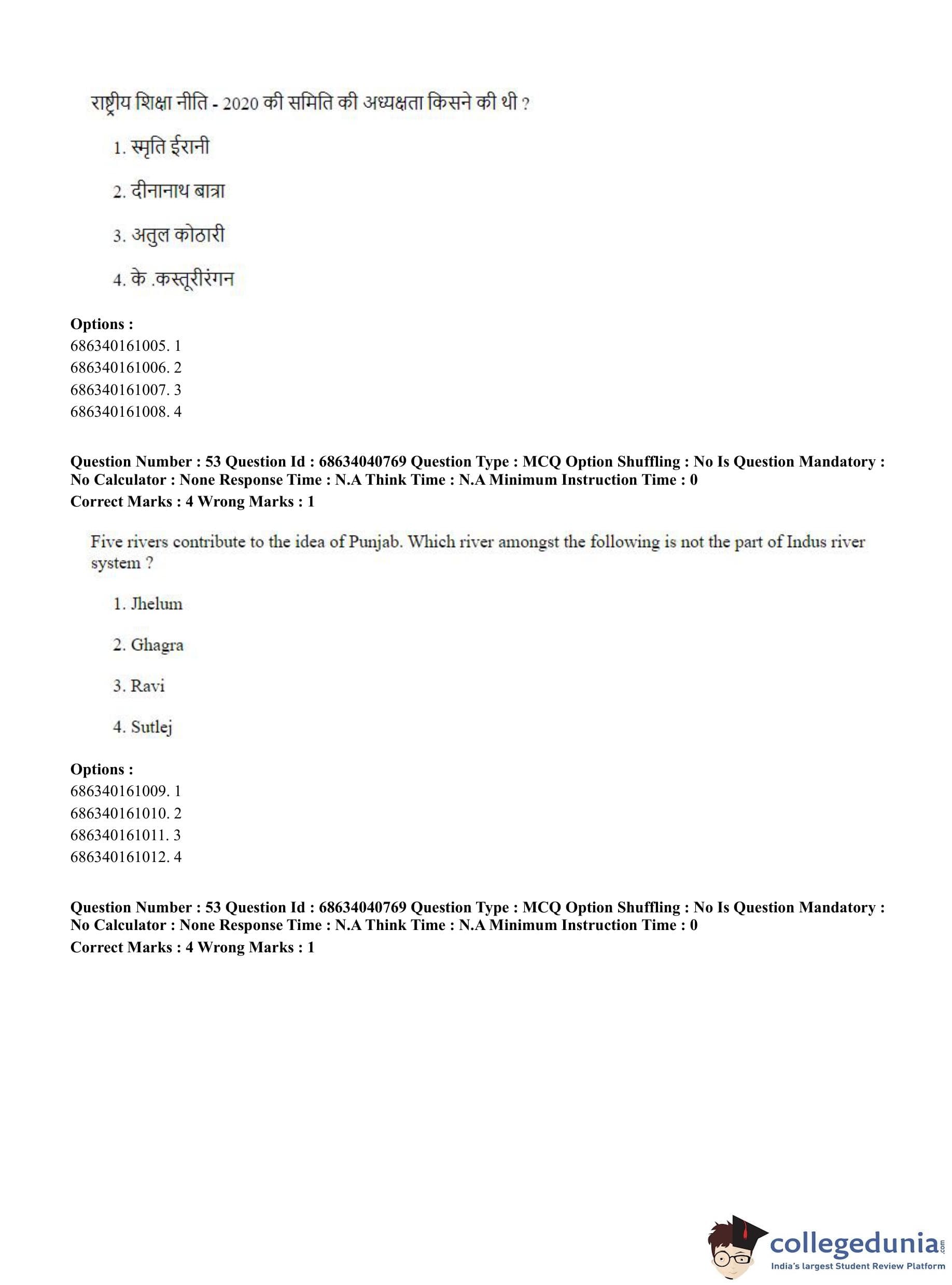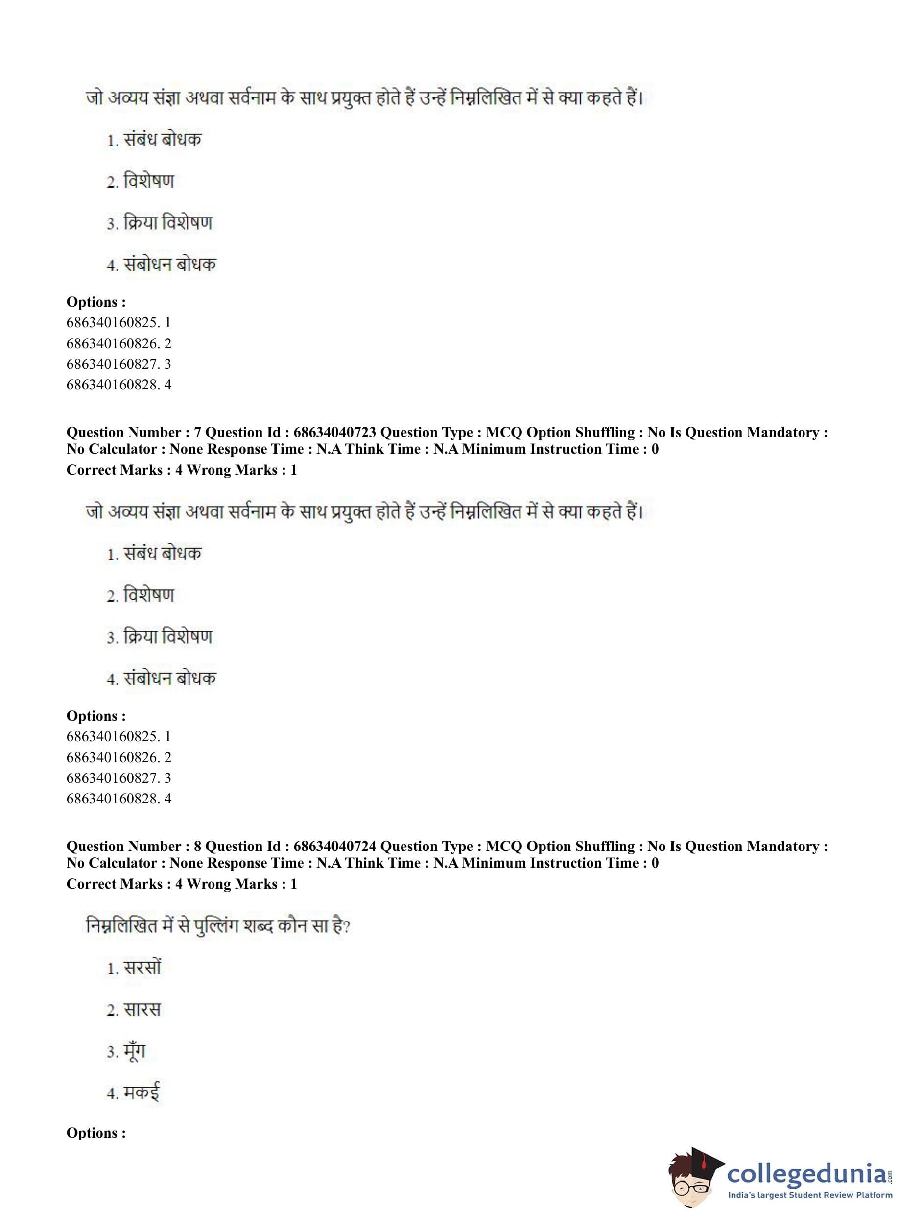 CUET PG 2023 B.Ed. Humanities and Social Sciences Question Paper in Hindi (June 30 - Shift 3)