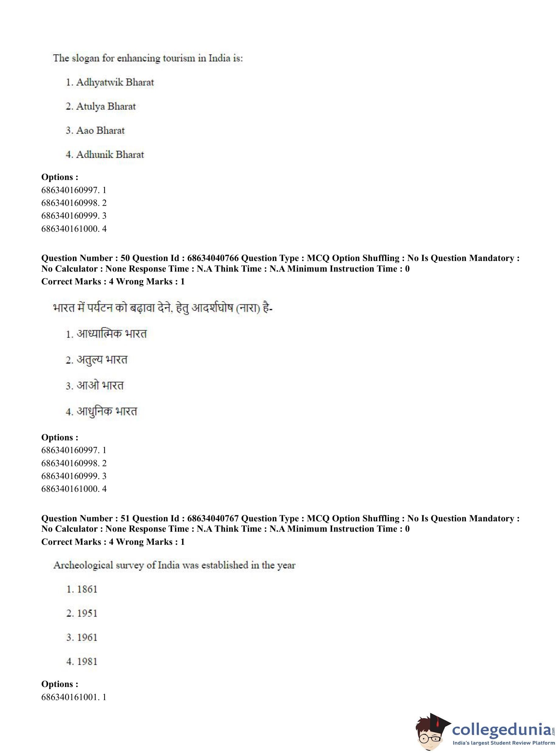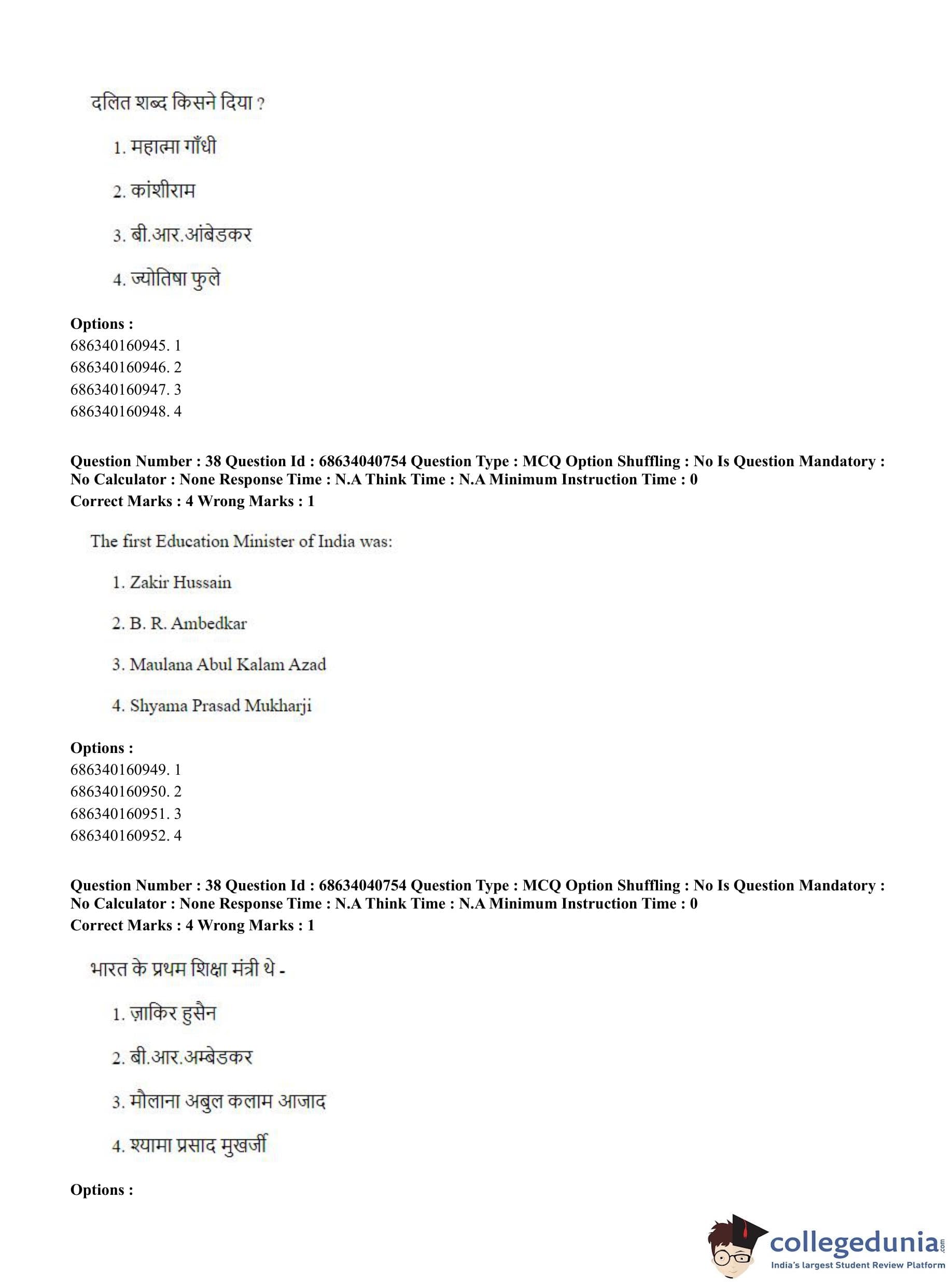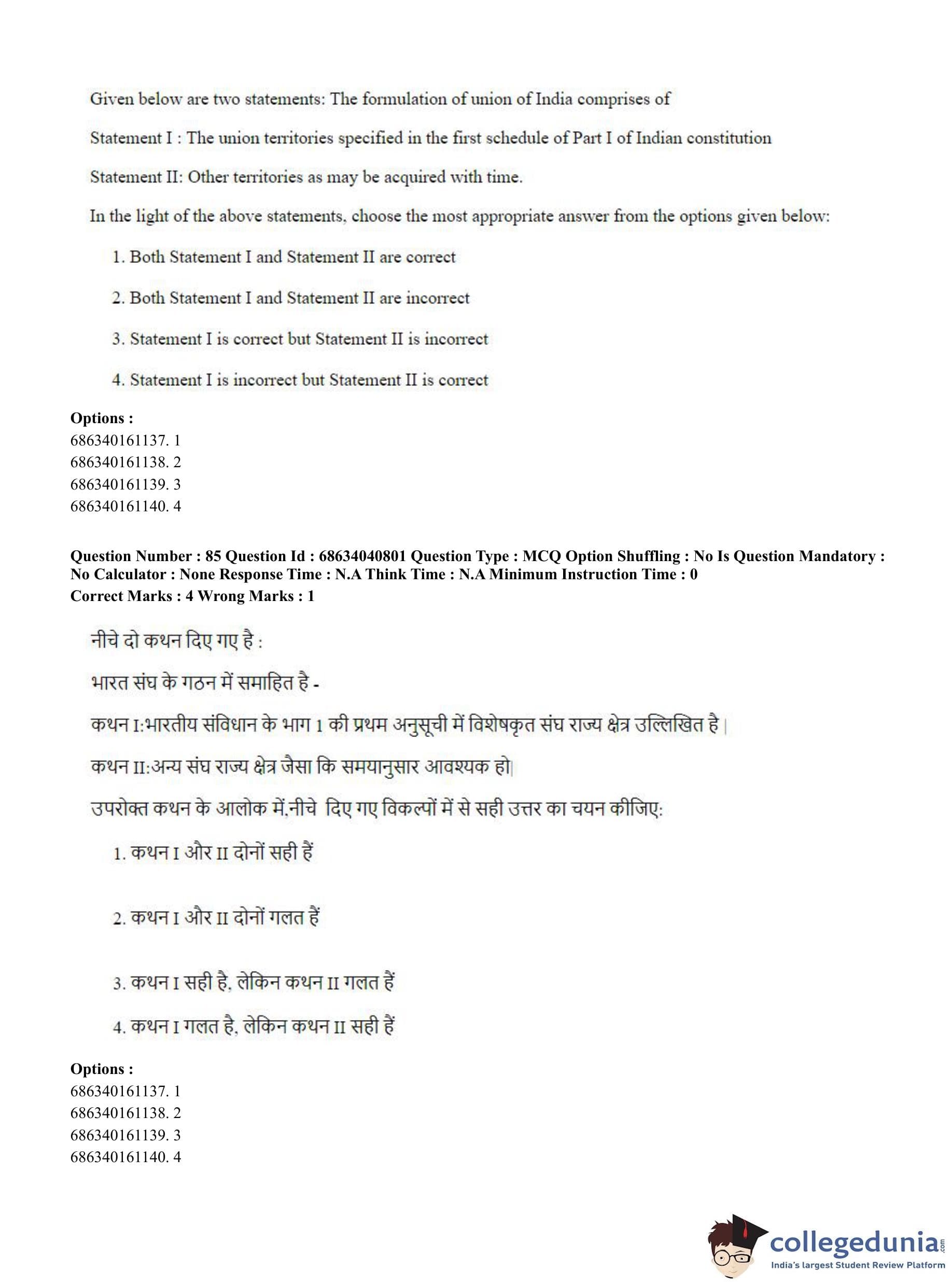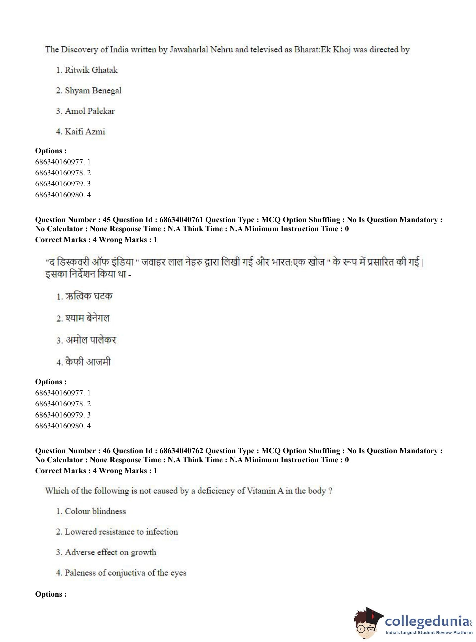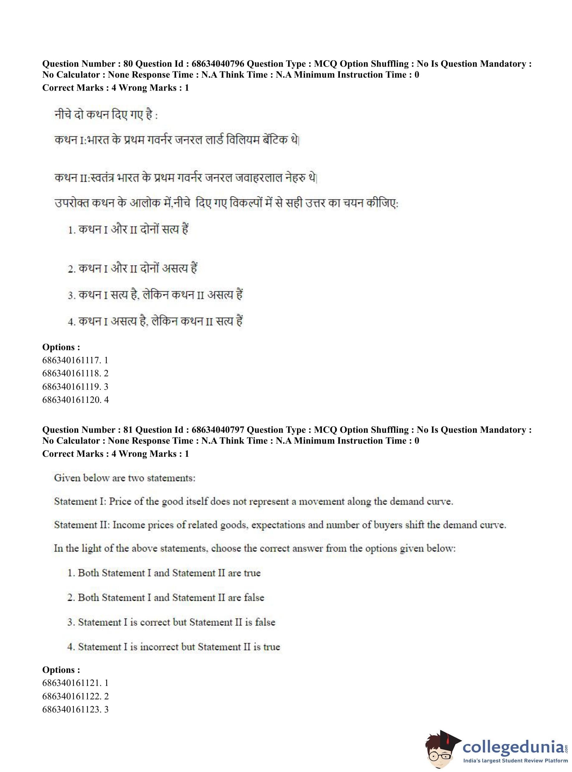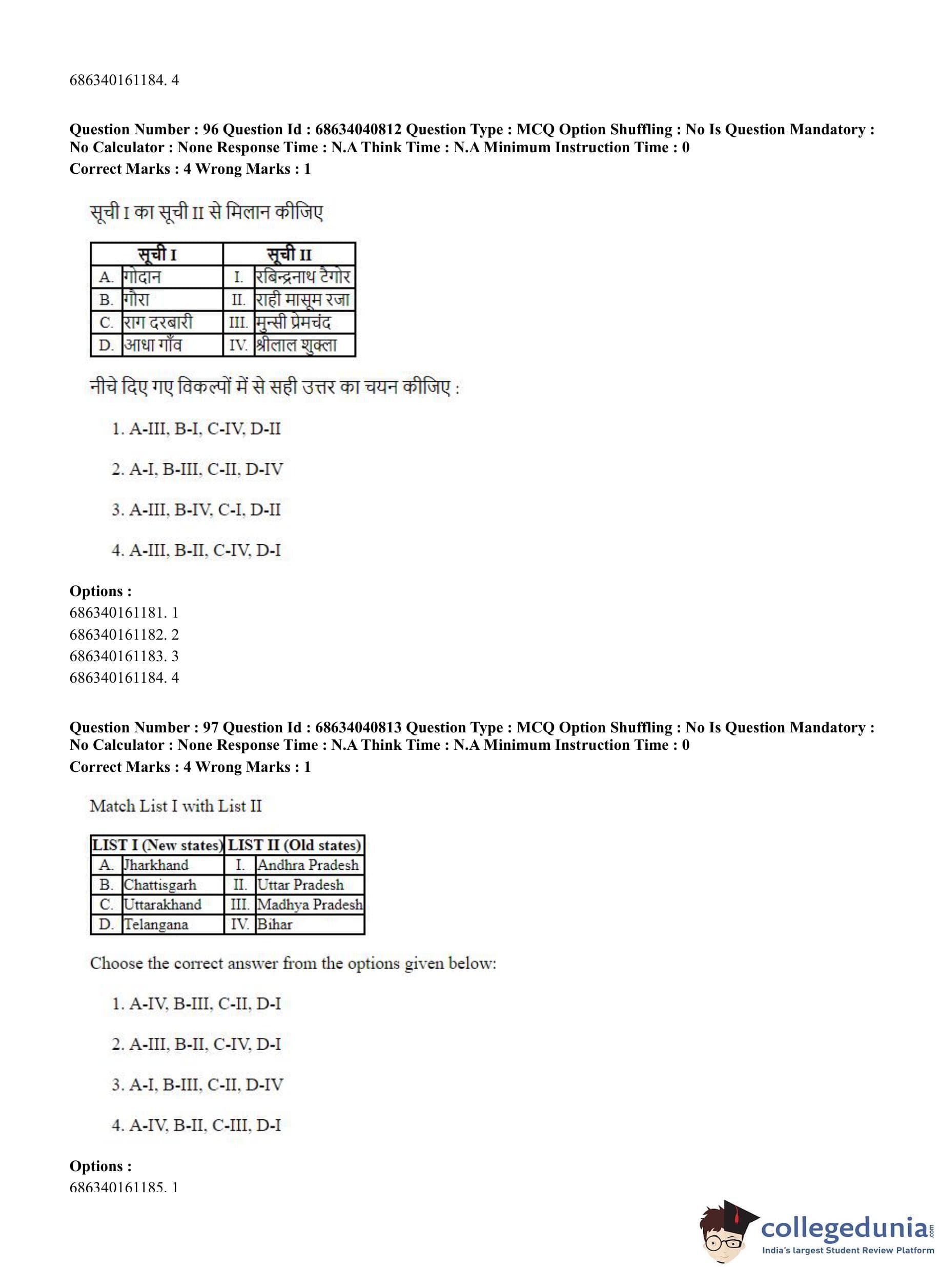 CUET PG 2023 B.Ed. Humanities and Social Sciences Question Paper in Hindi (June 30 - Shift 3)