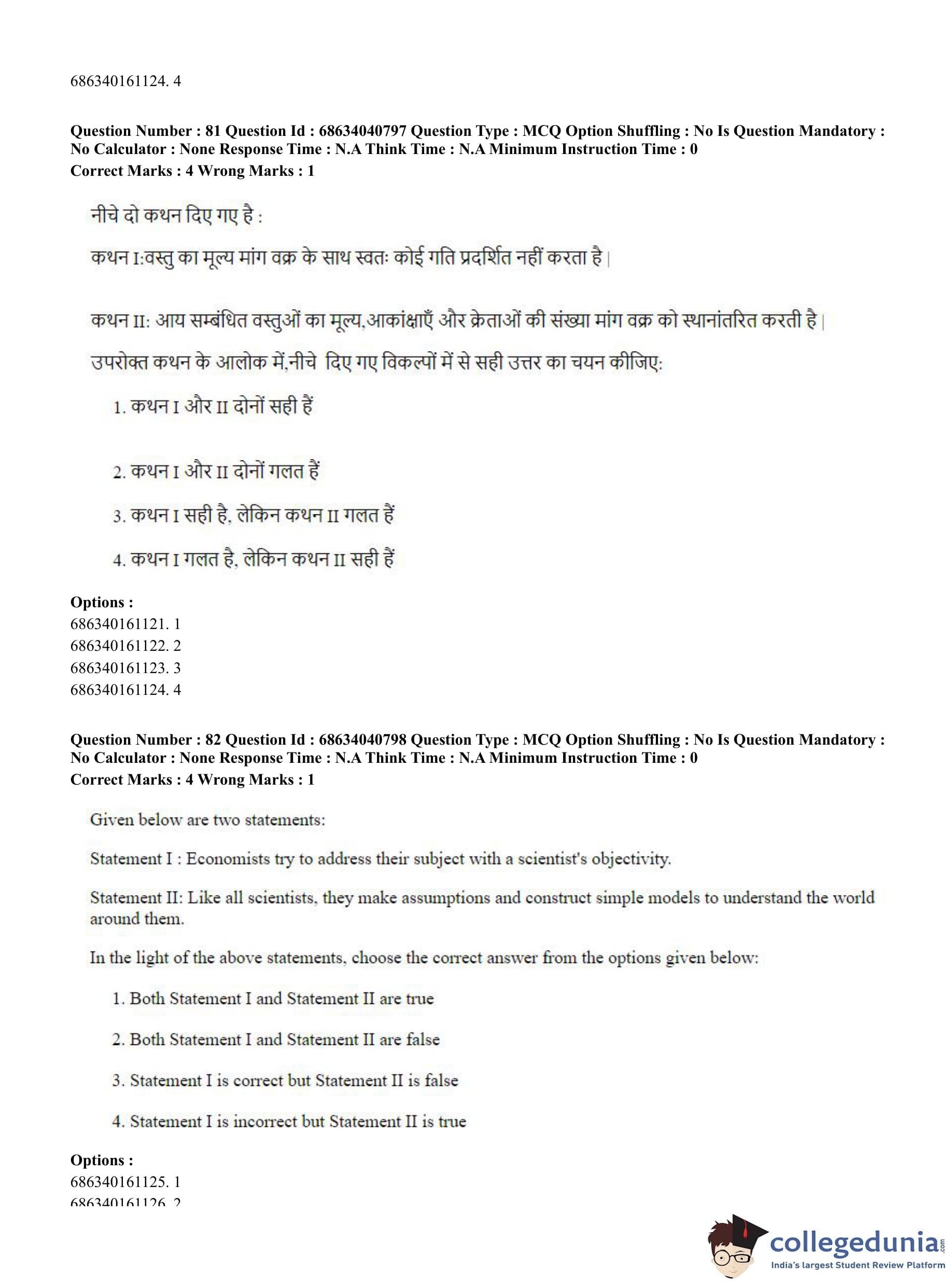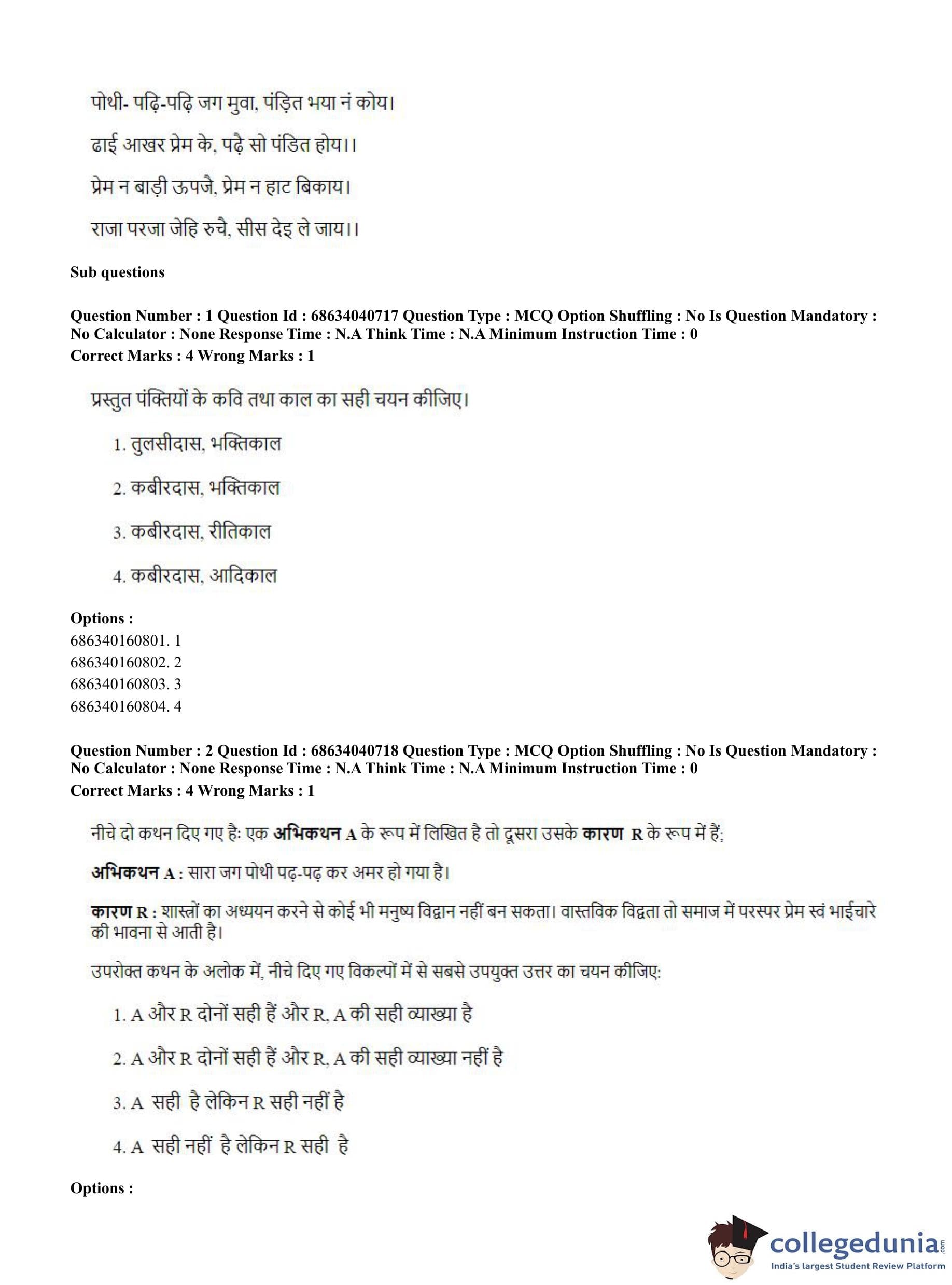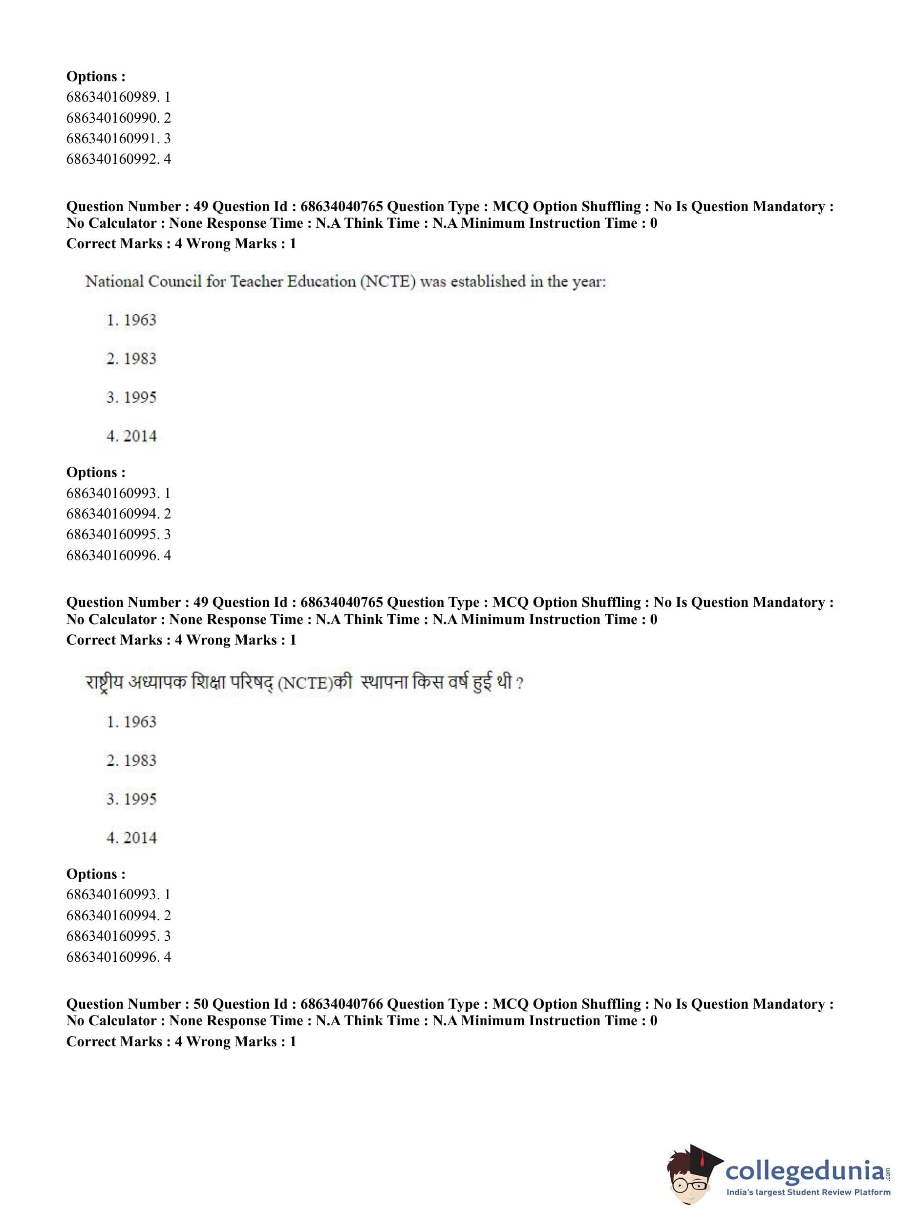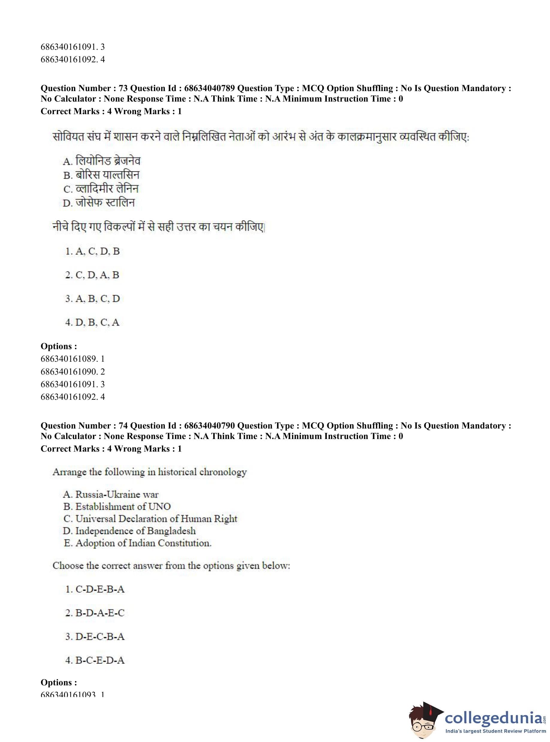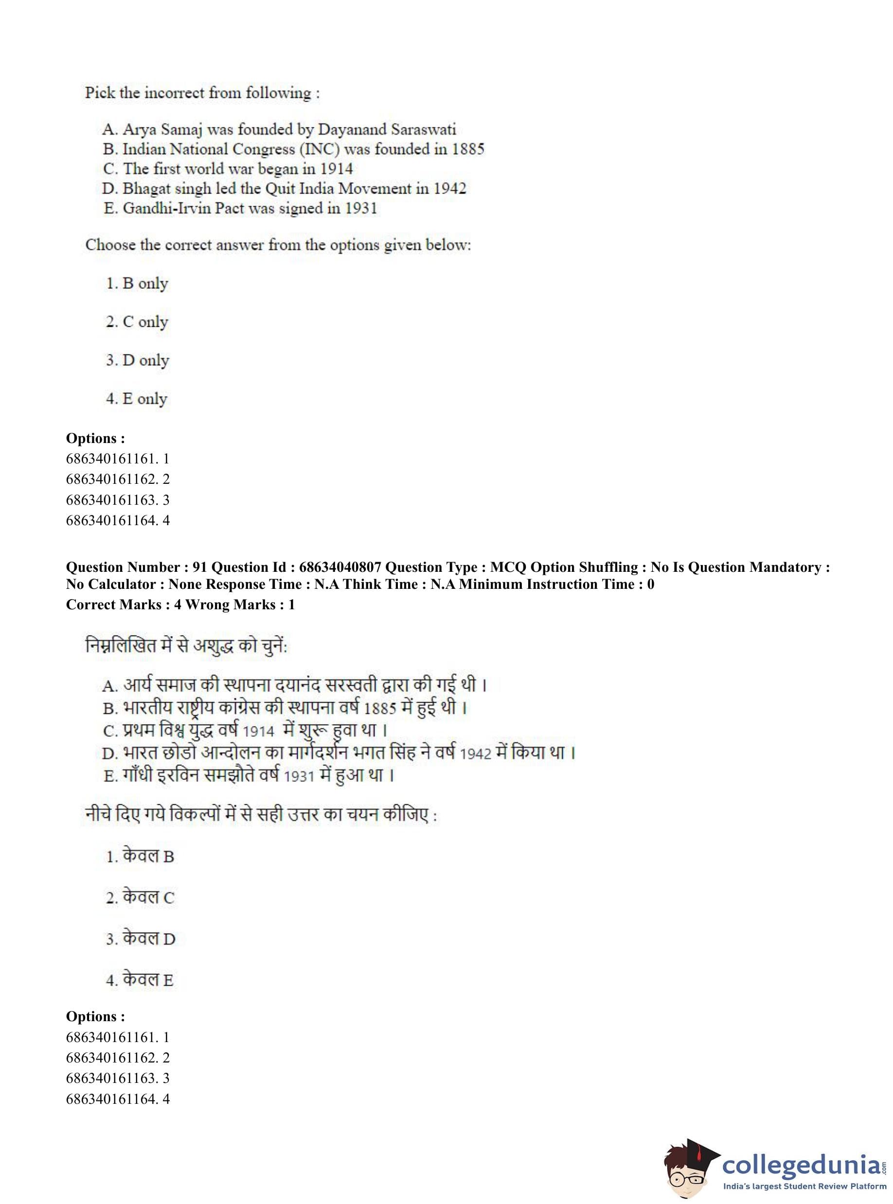 CUET PG 2023 B.Ed. Humanities and Social Sciences Question Paper in Hindi (June 30 - Shift 3)