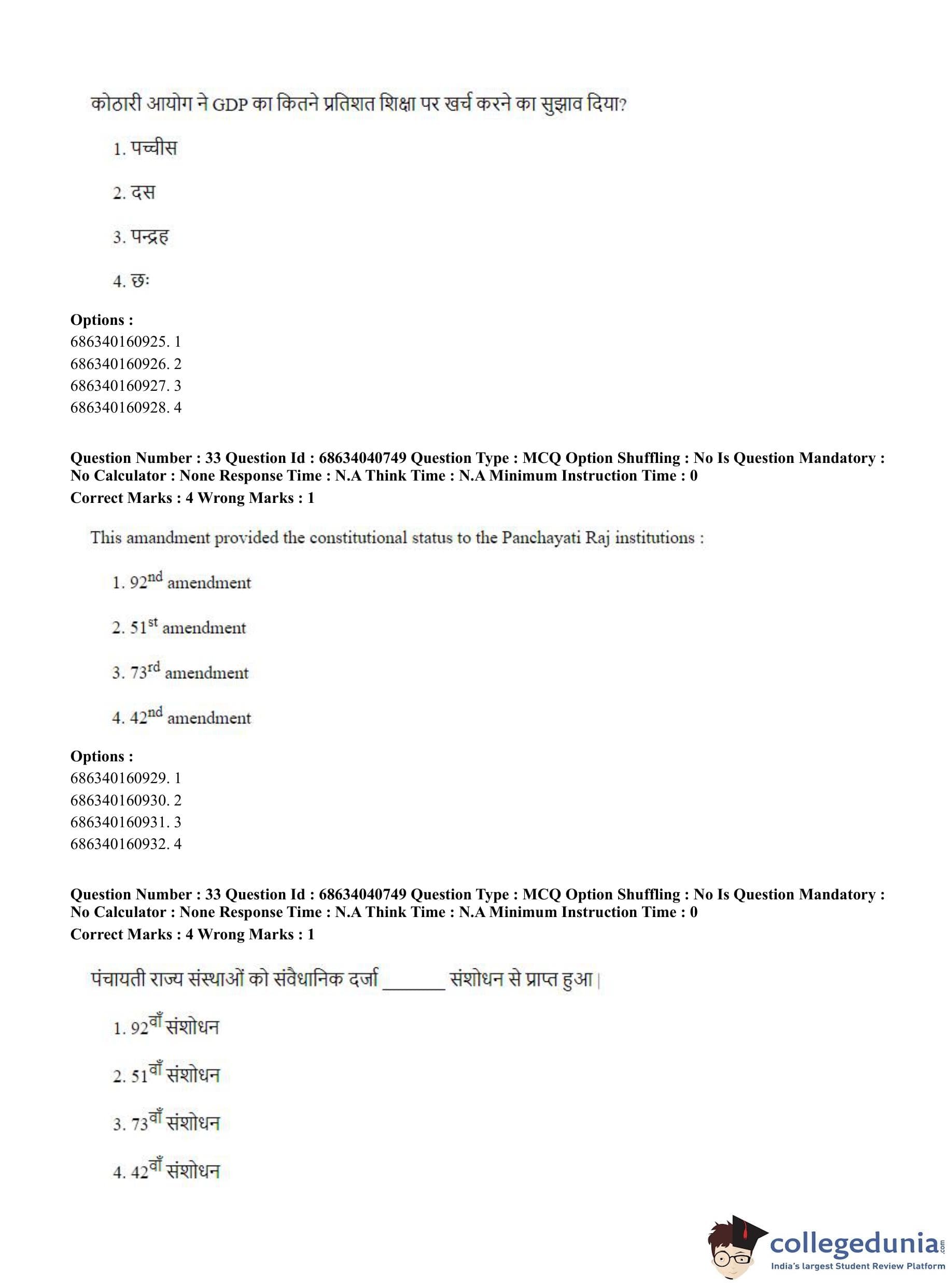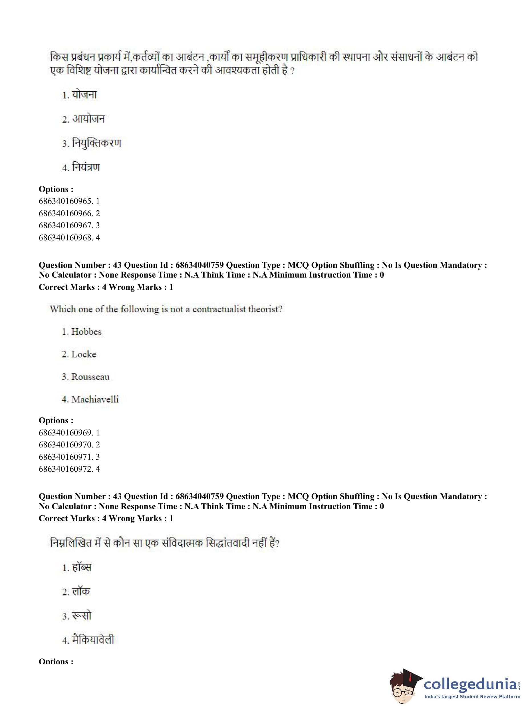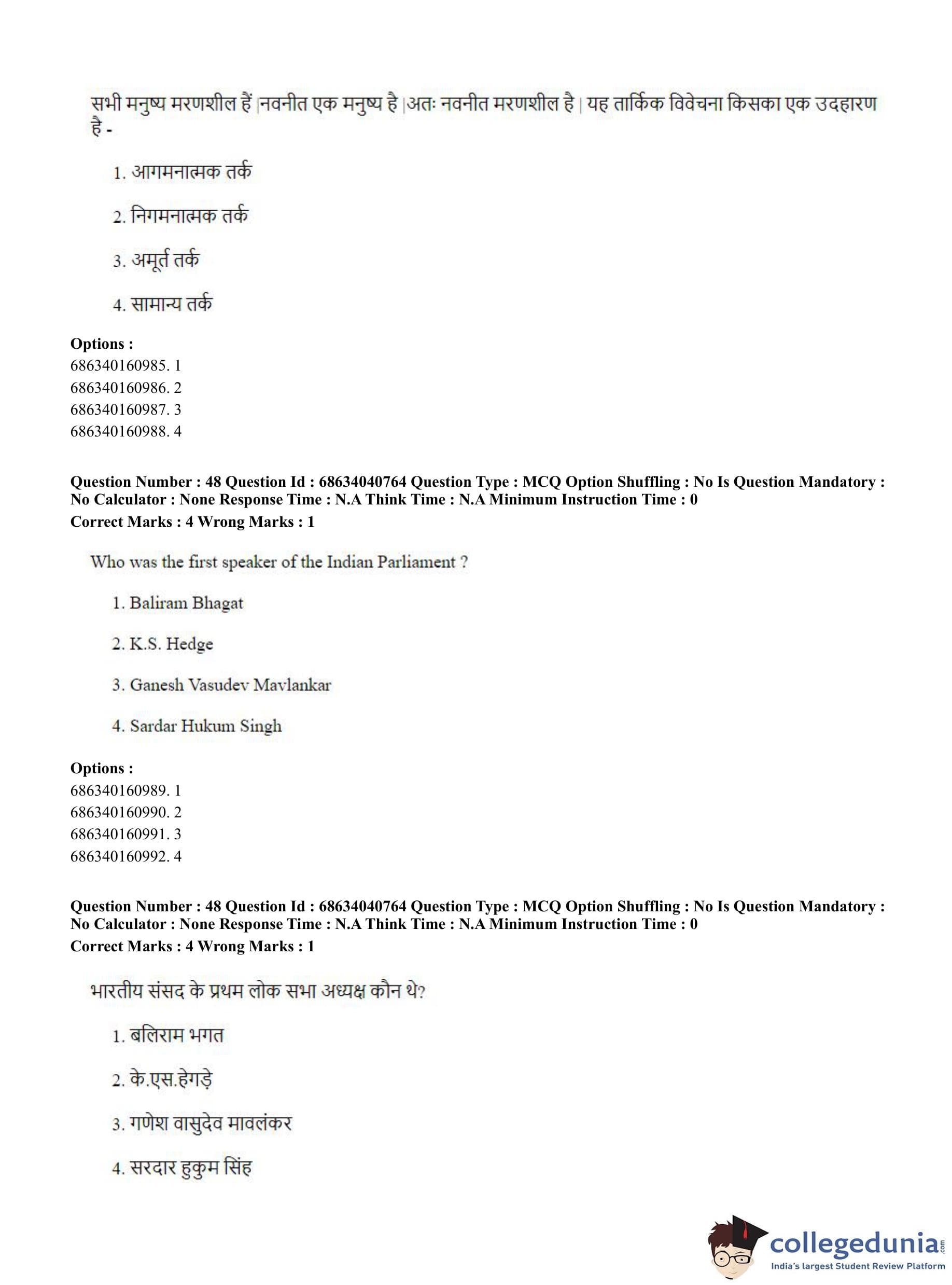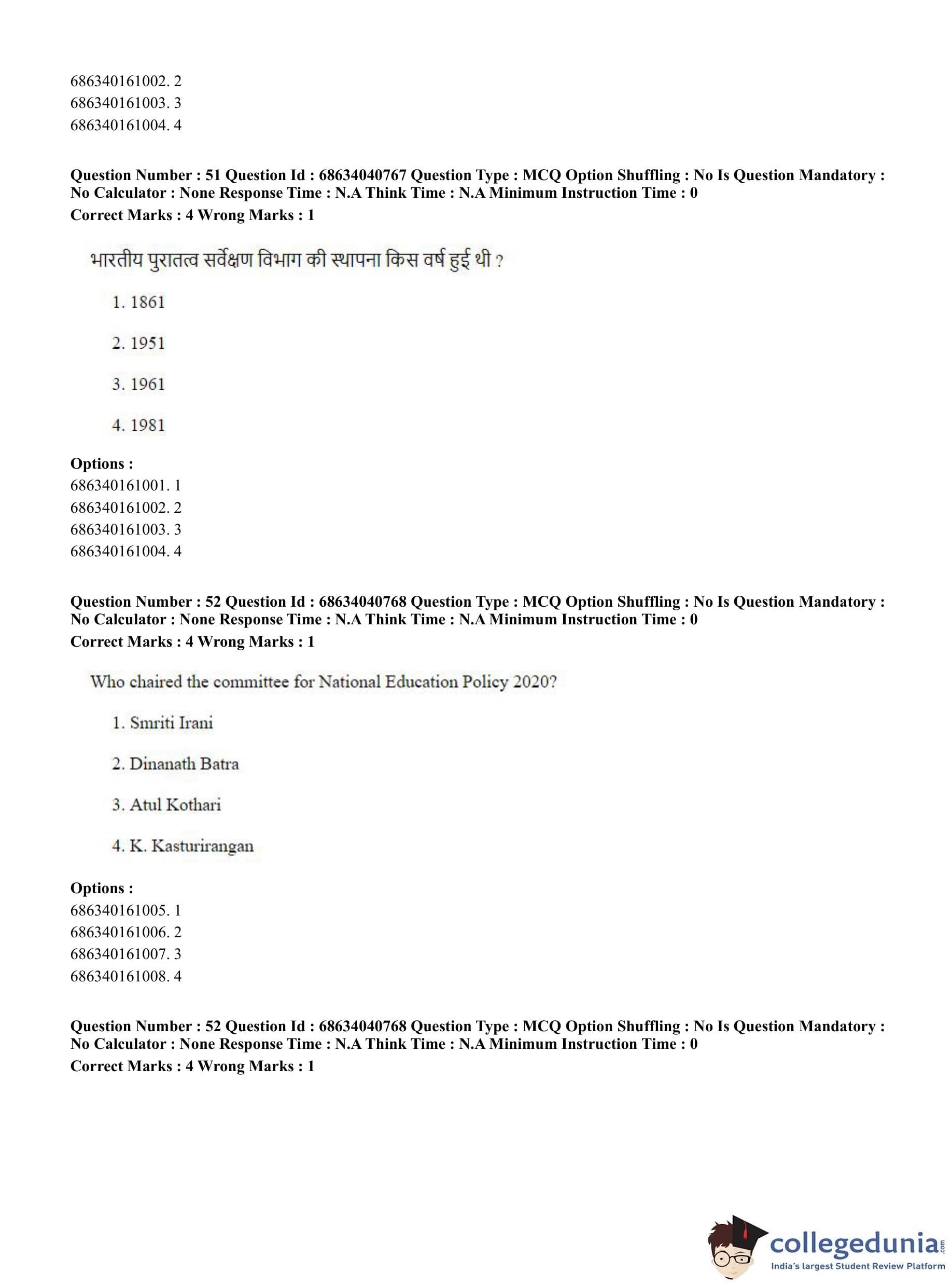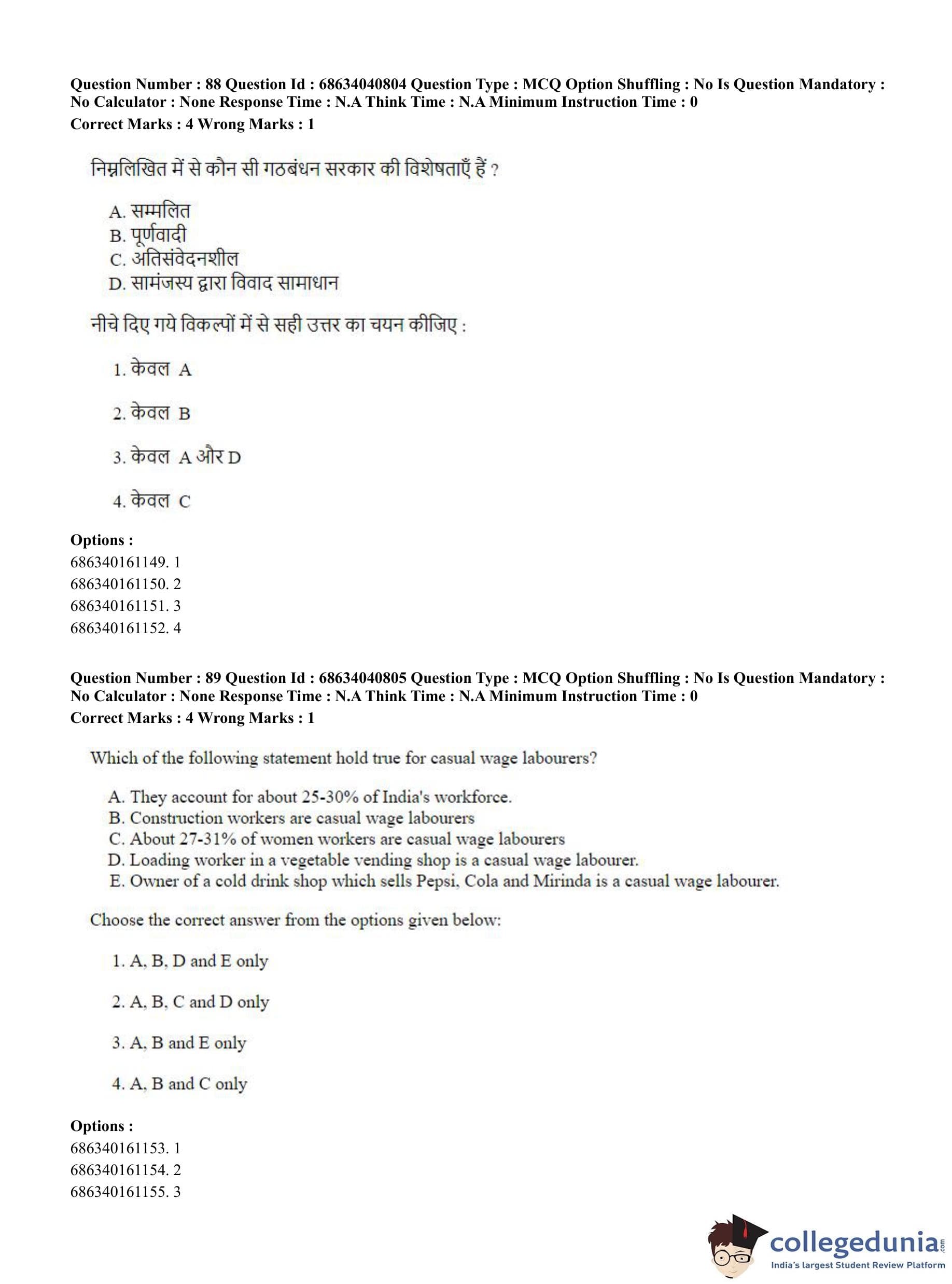 CUET PG 2023 B.Ed. Humanities and Social Sciences Question Paper in Hindi (June 30 - Shift 3)
