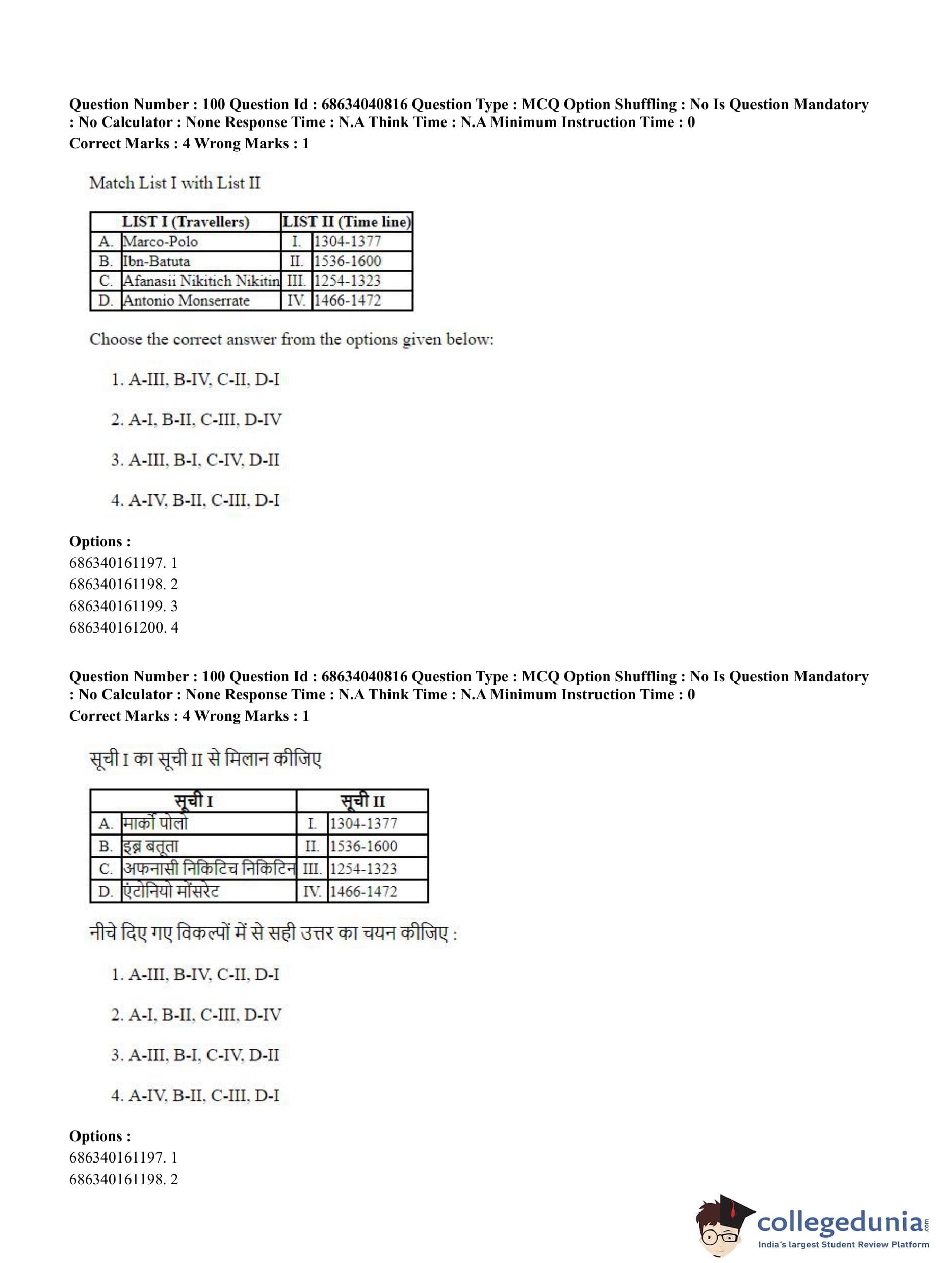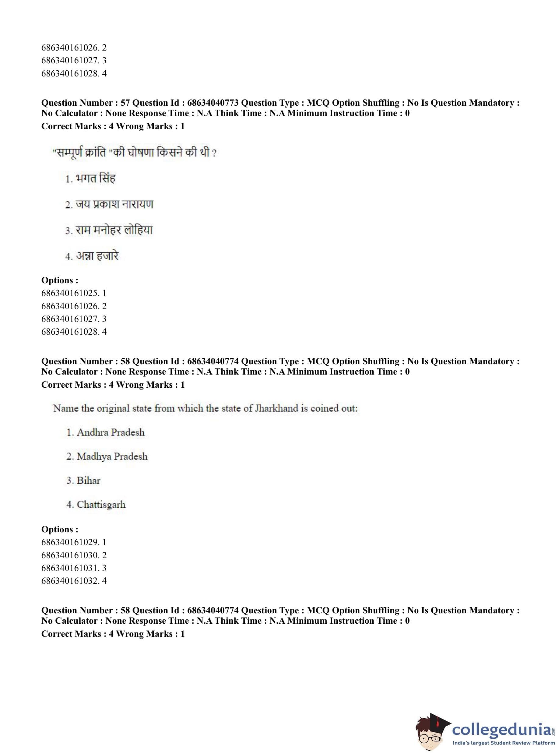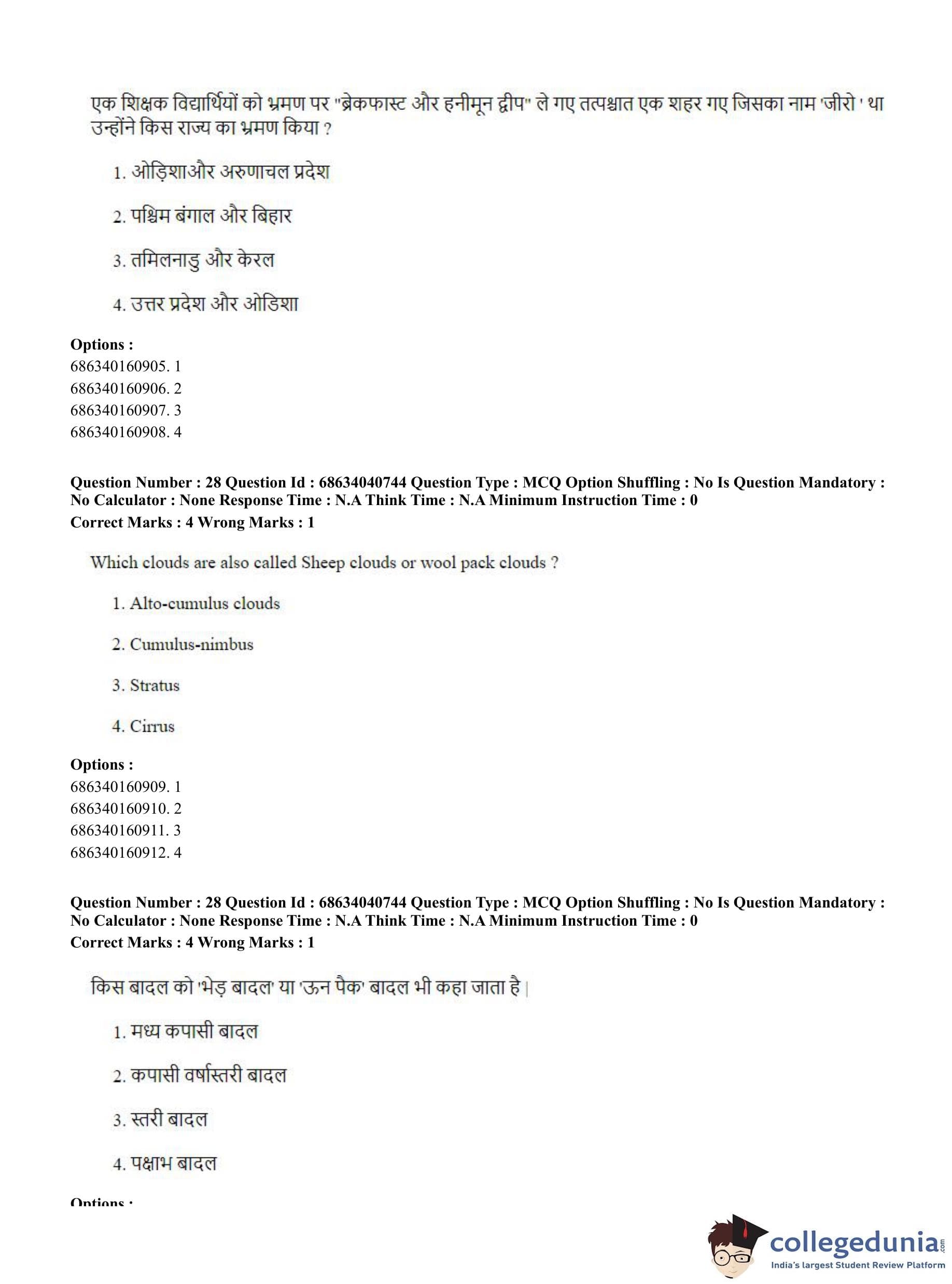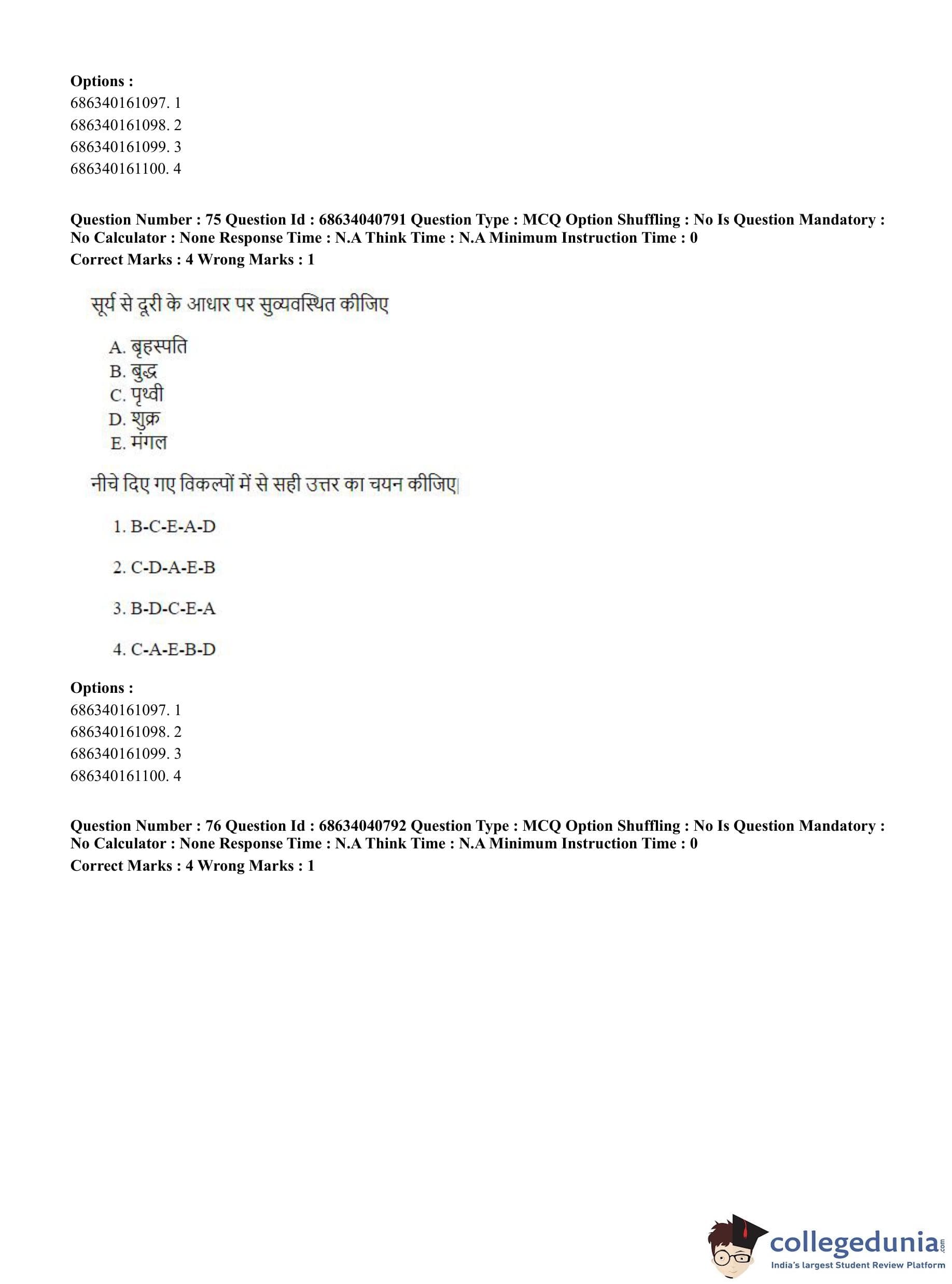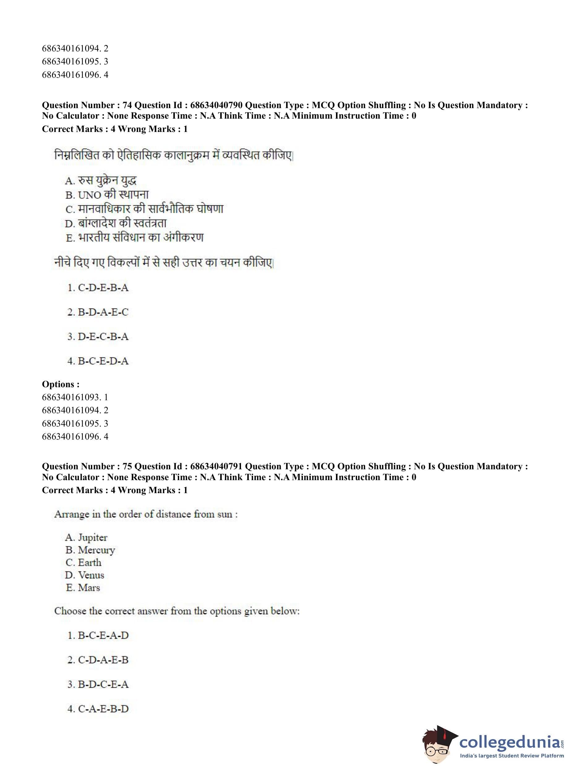 CUET PG 2023 B.Ed. Humanities and Social Sciences Question Paper in Hindi (June 30 - Shift 3)