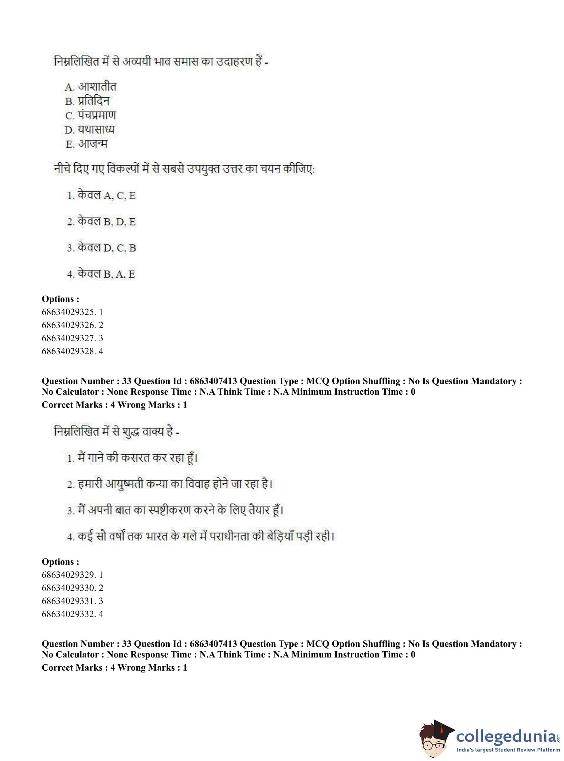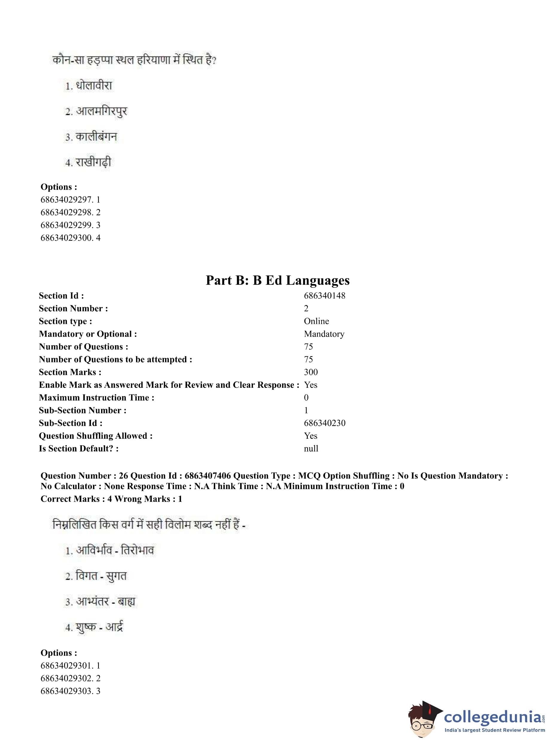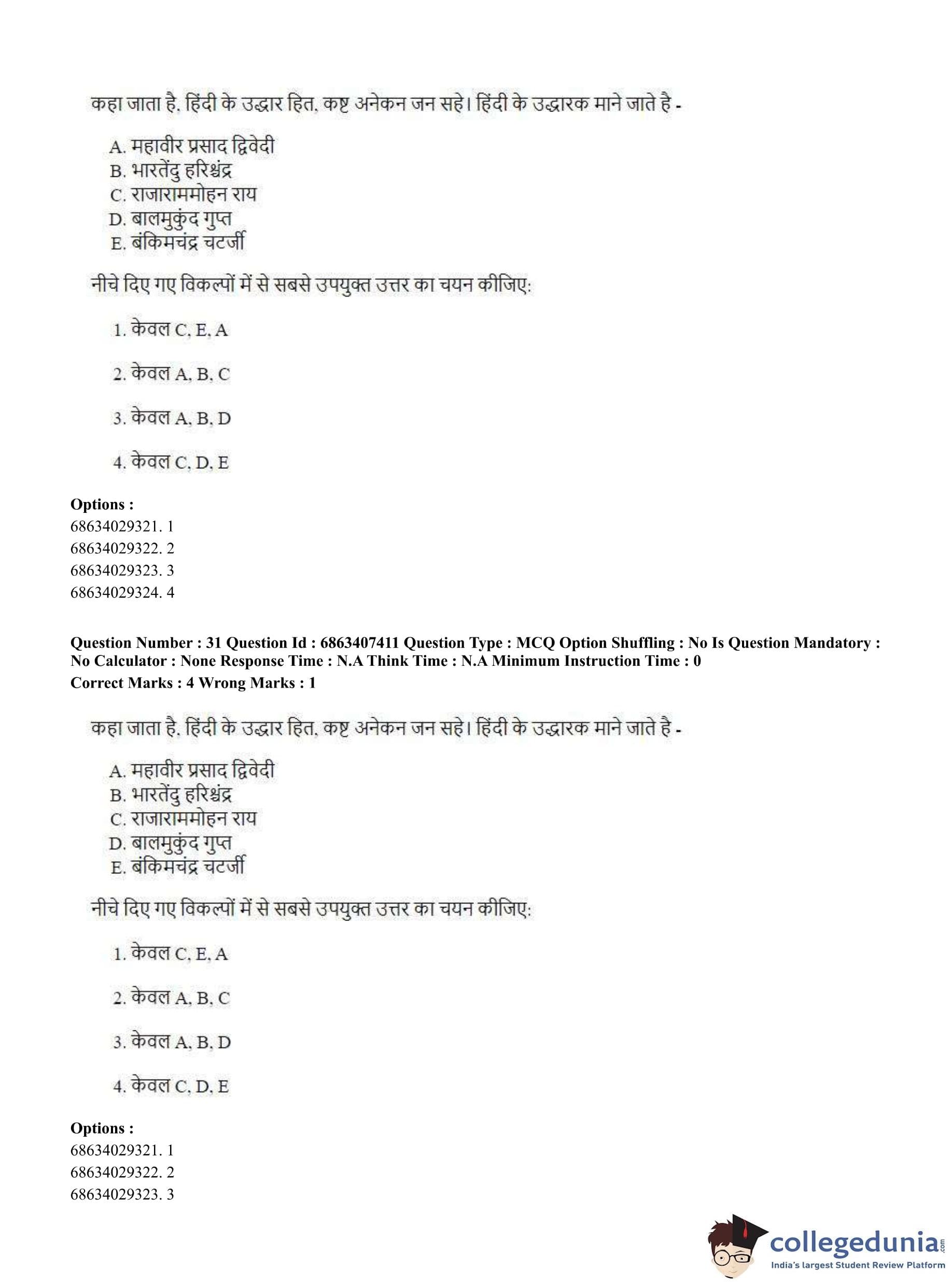 CUET PG 2023 B.Ed. Languages Question Paper in Hindi (June 7 - Shift 1)