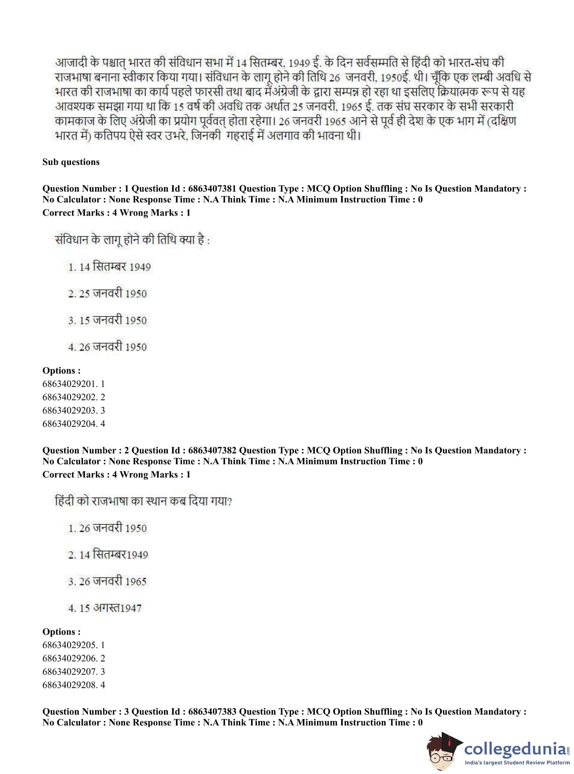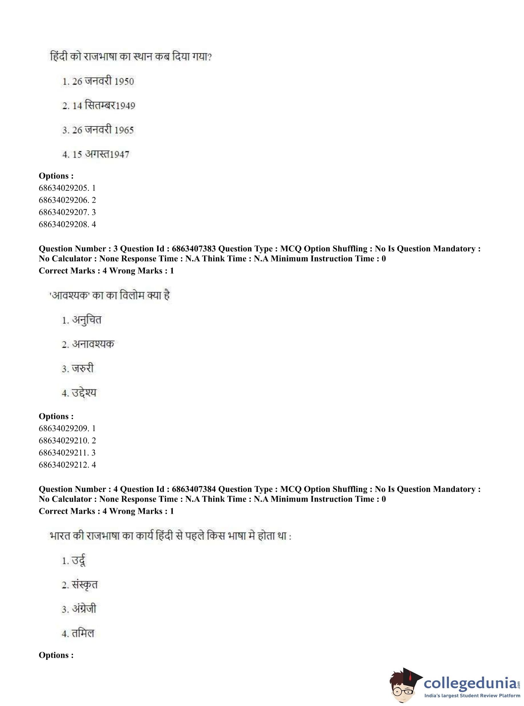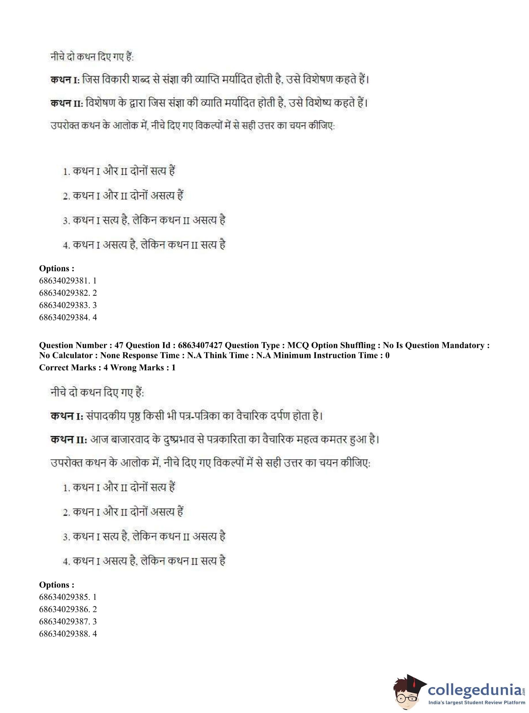 CUET PG 2023 B.Ed. Languages Question Paper in Hindi (June 7 - Shift 1)