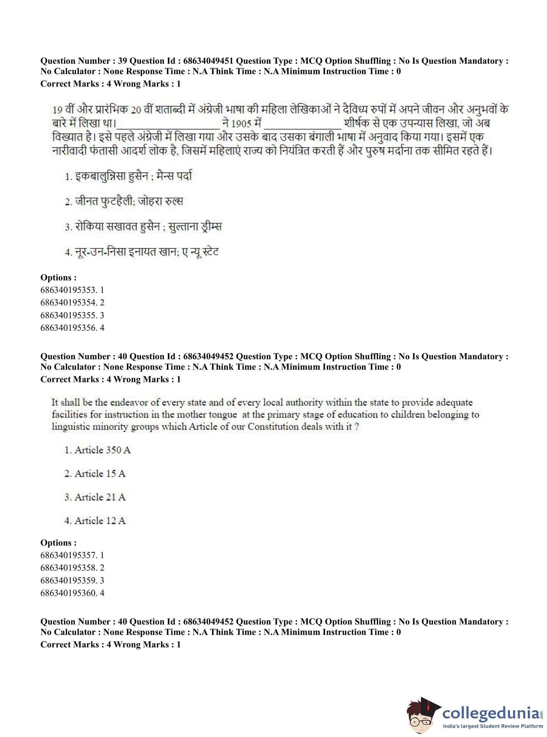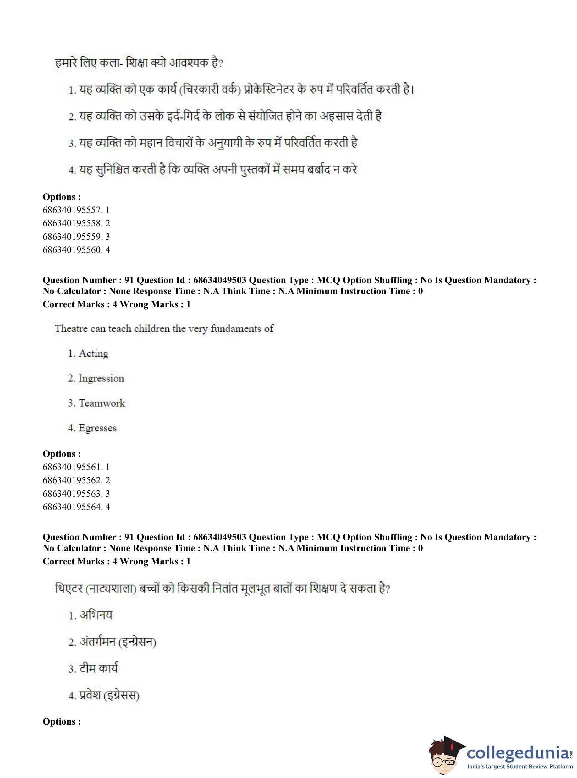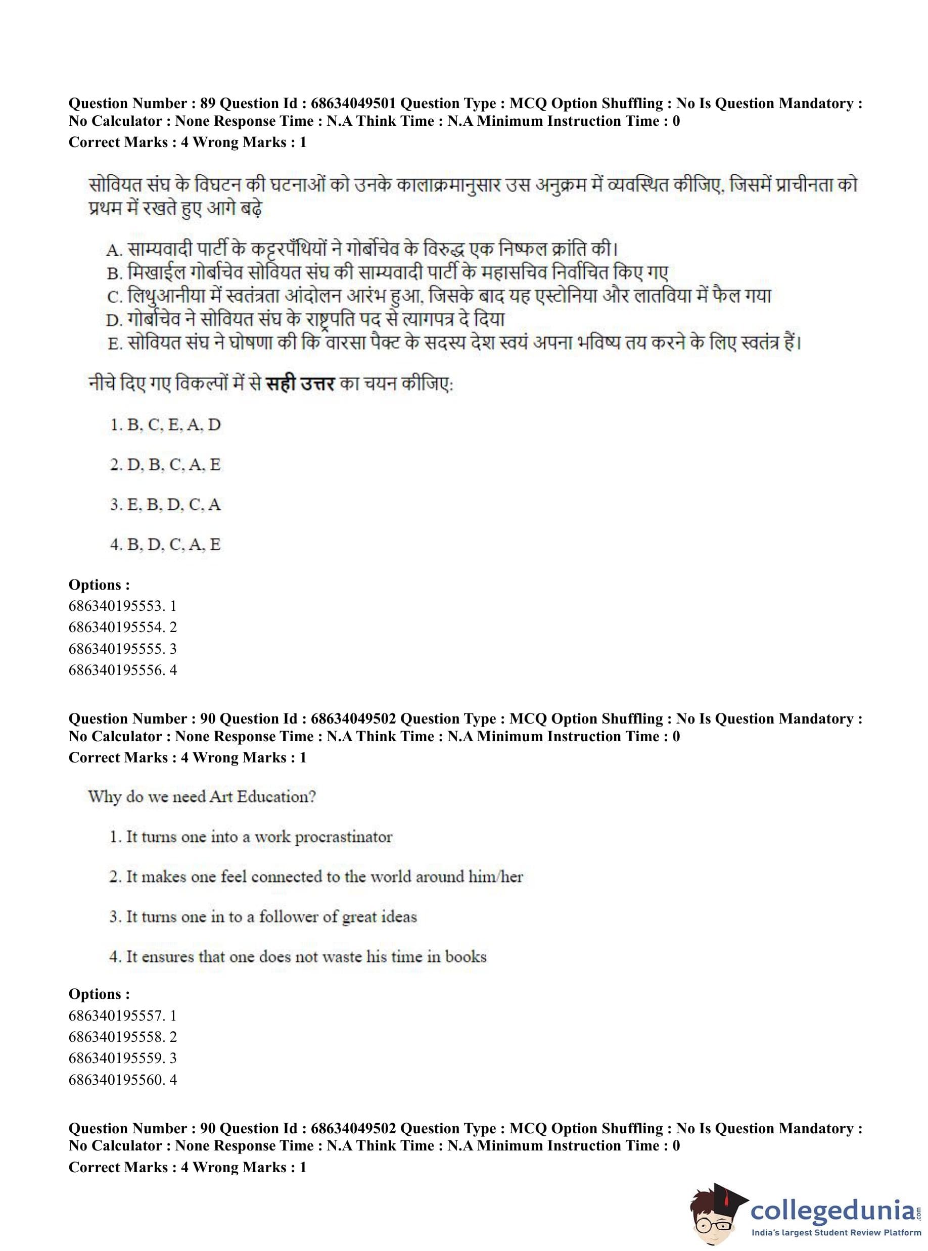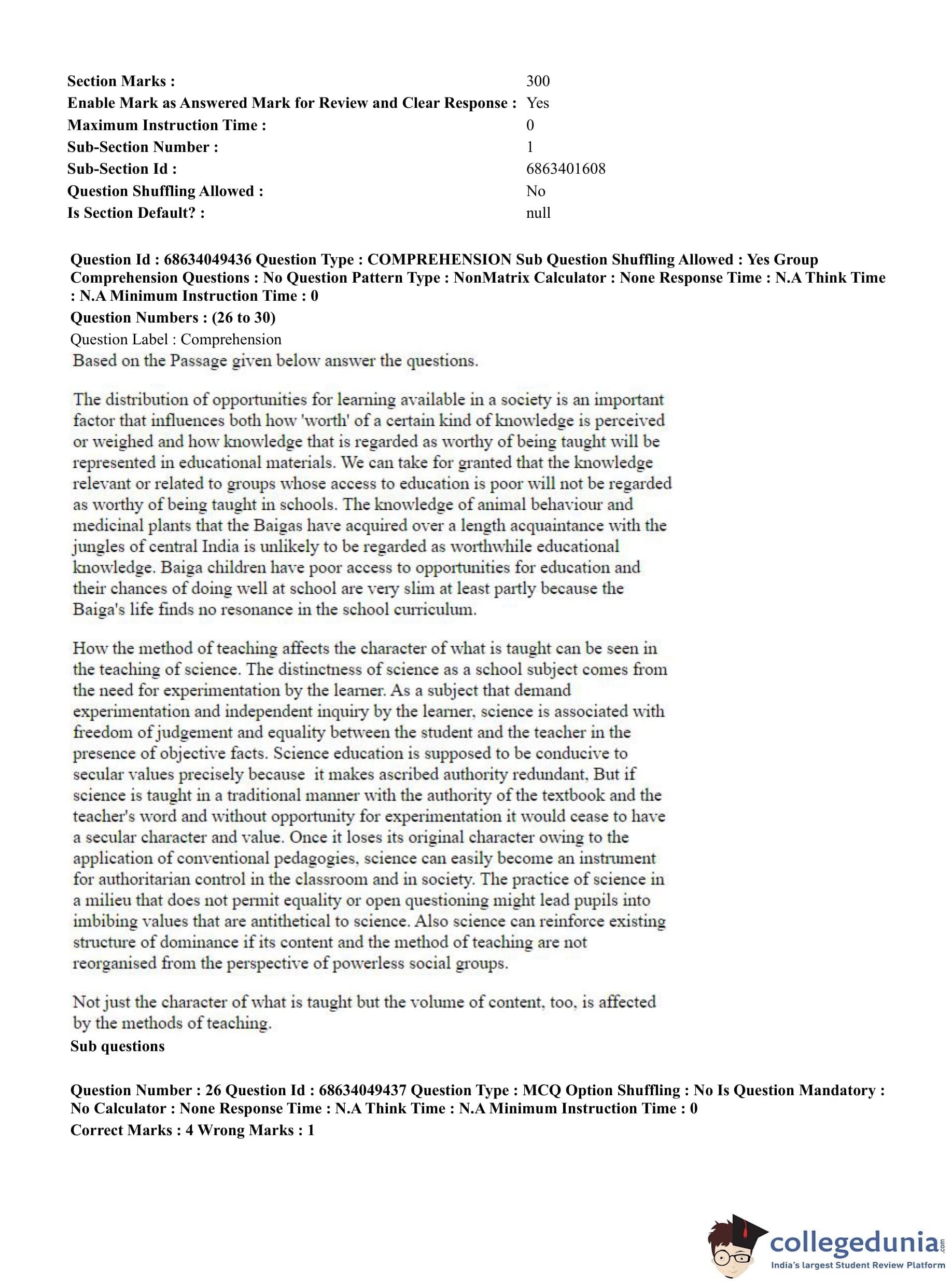 CUET PG 2023 B.Ed Question Paper with Answer Key PDF in English is available for download here. The exam was conducted by National Testing Agency (NTA) on July 2, 2023 in Shift 3. The question paper comprised a total of 100 questions divided into 2 sections.