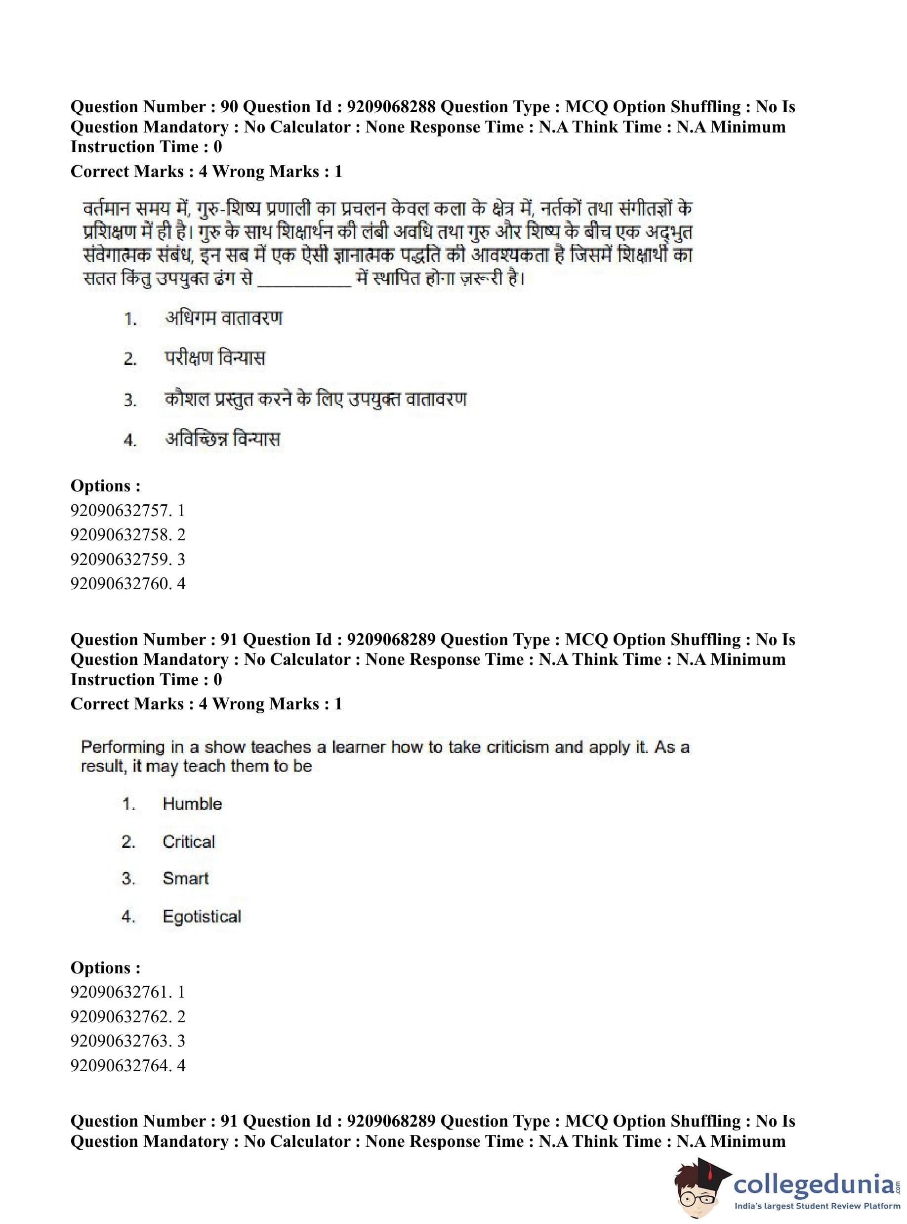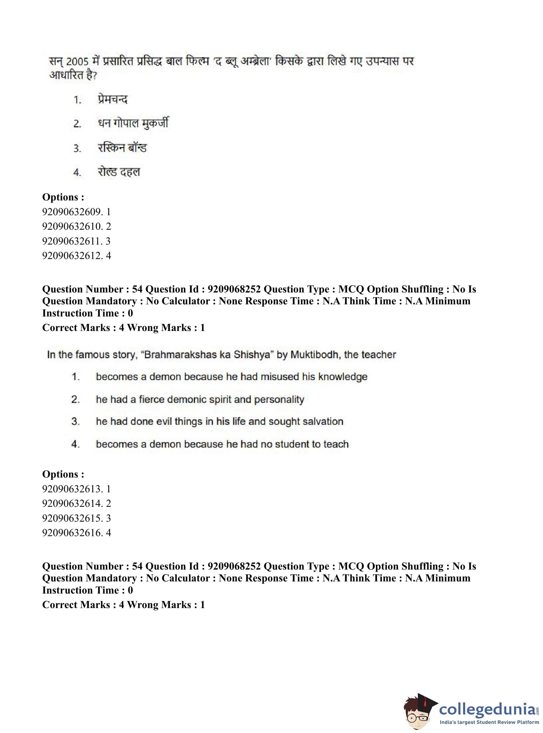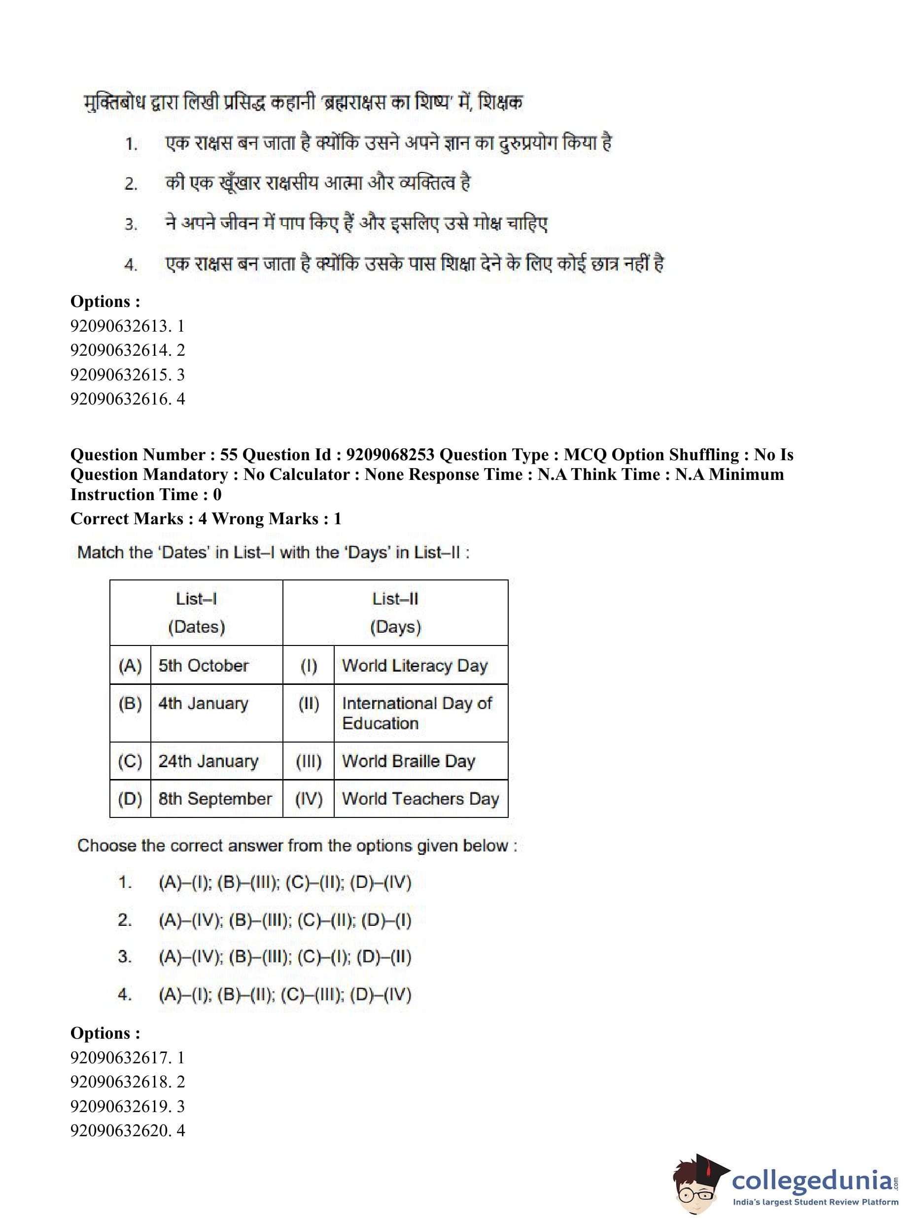 CUET PG 2023 B.Ed Question Paper in Hindi (June 8 - Shift 2)