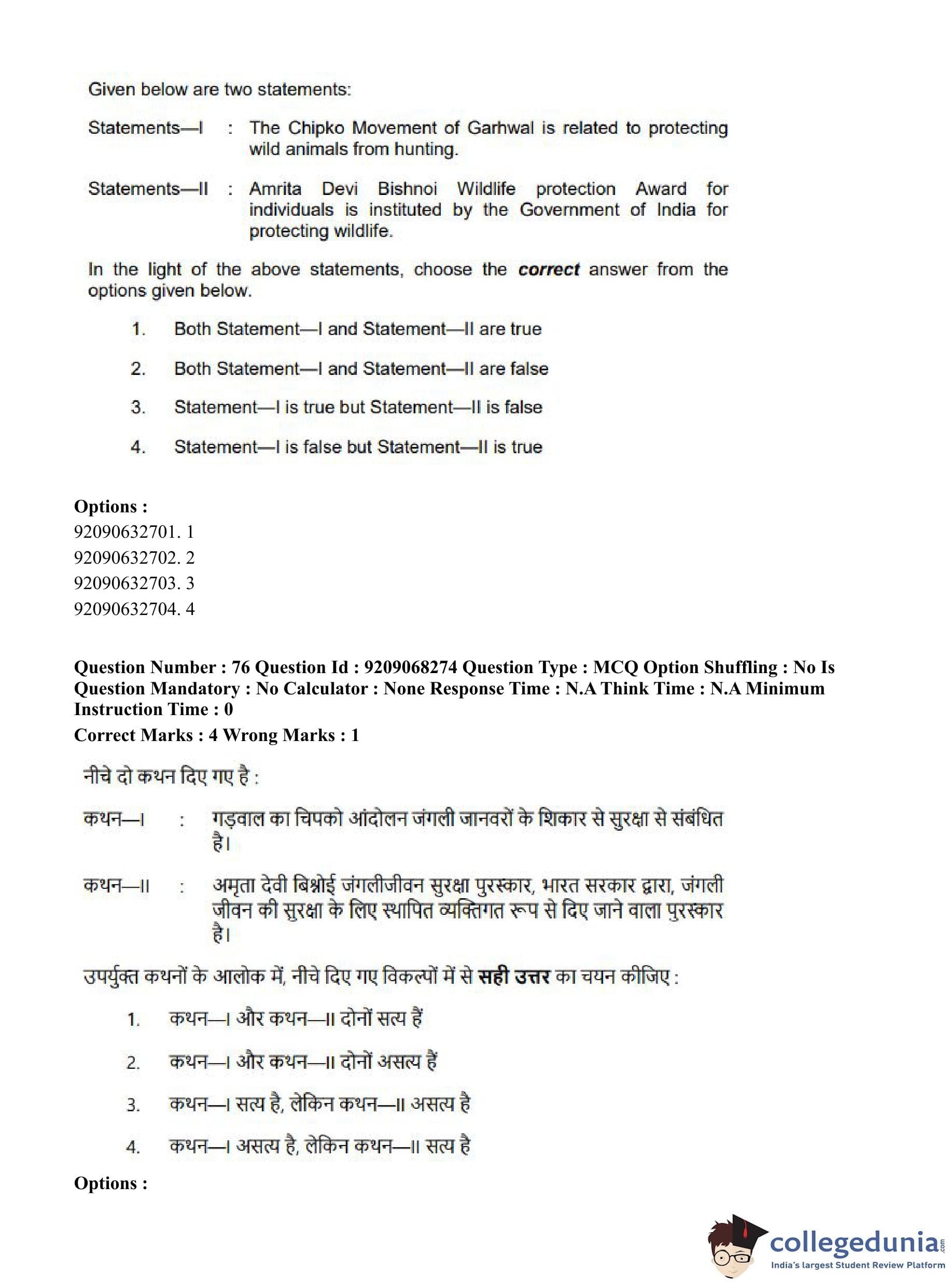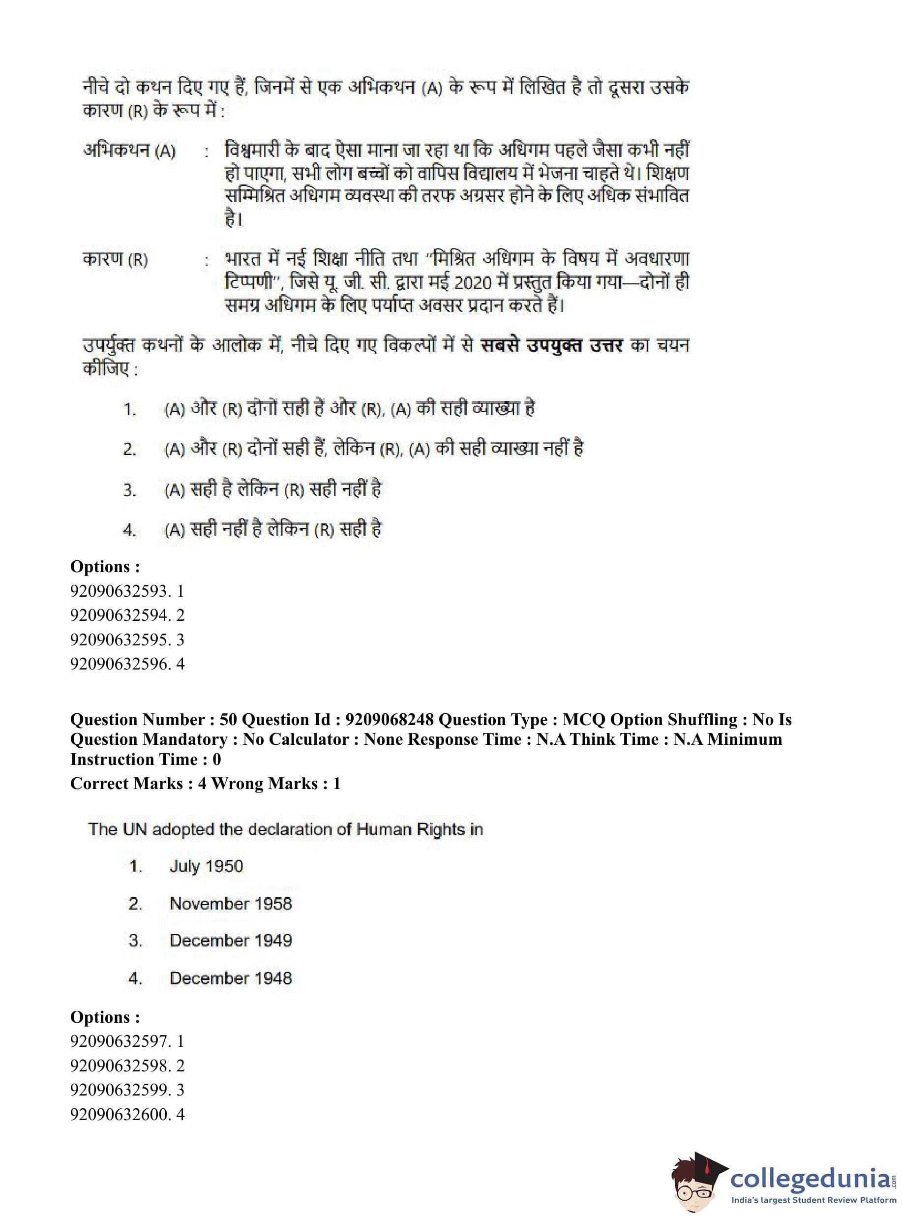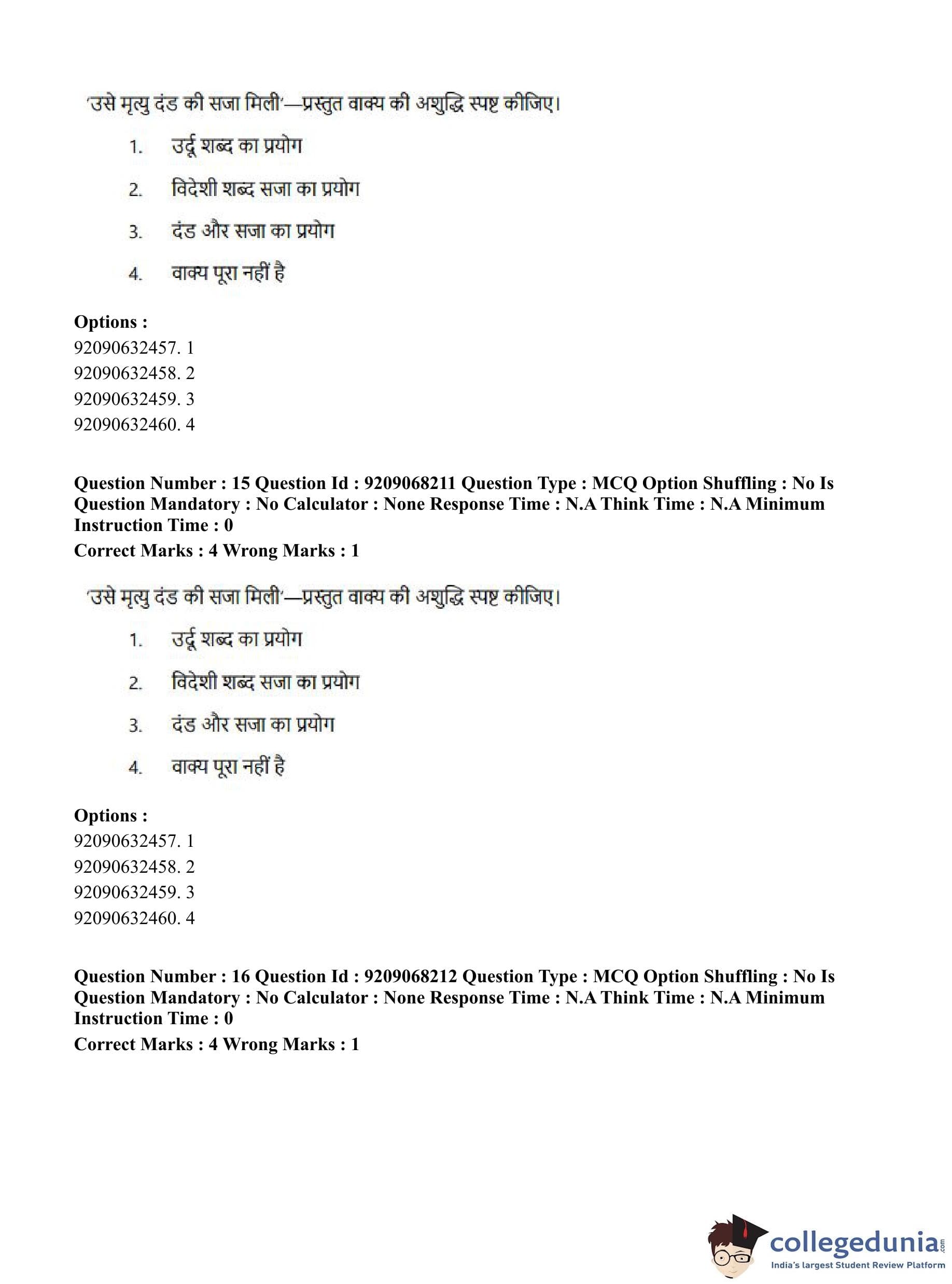CUET PG 2023 B.Ed Question Paper in Hindi (June 8 - Shift 2)