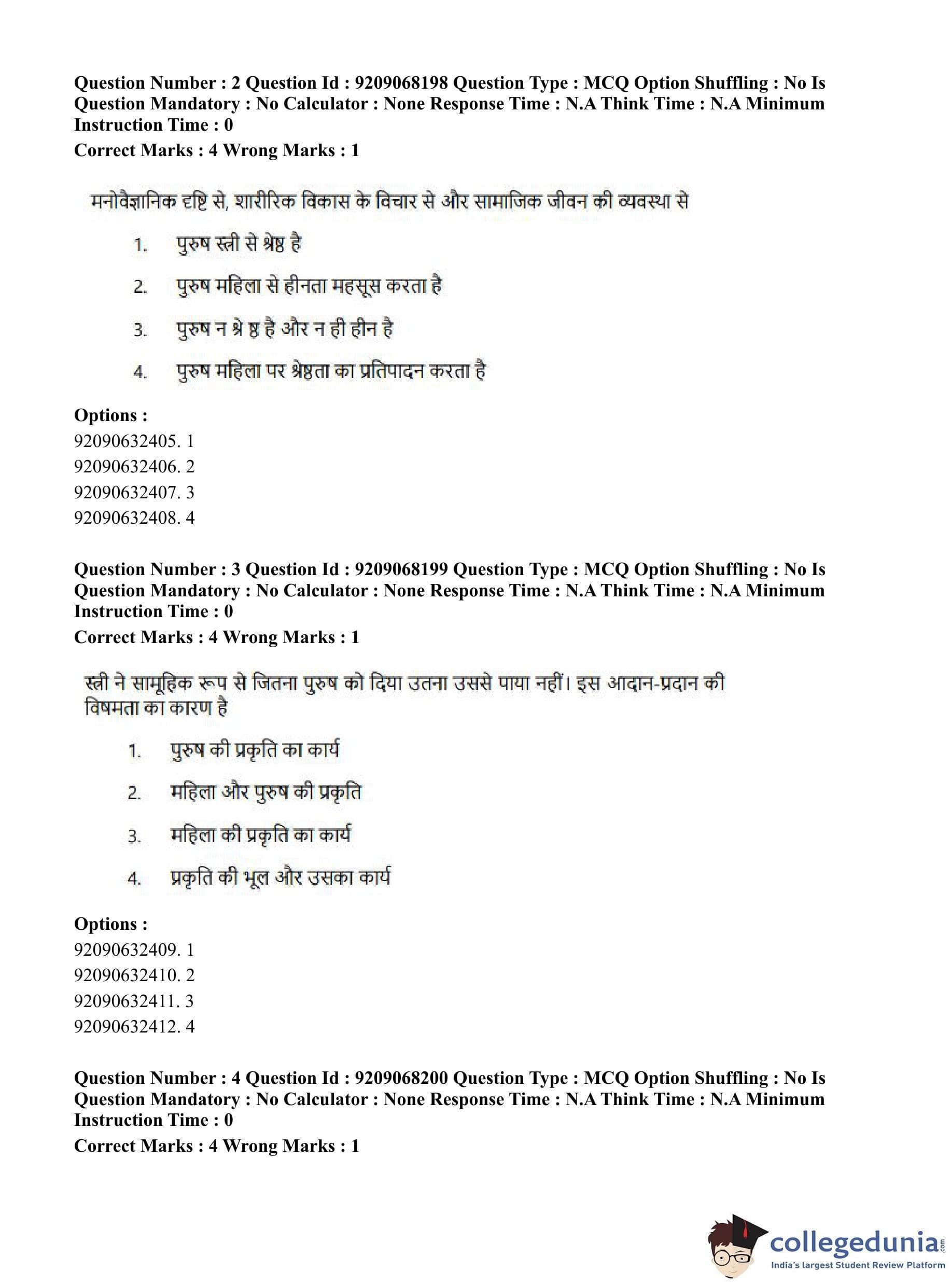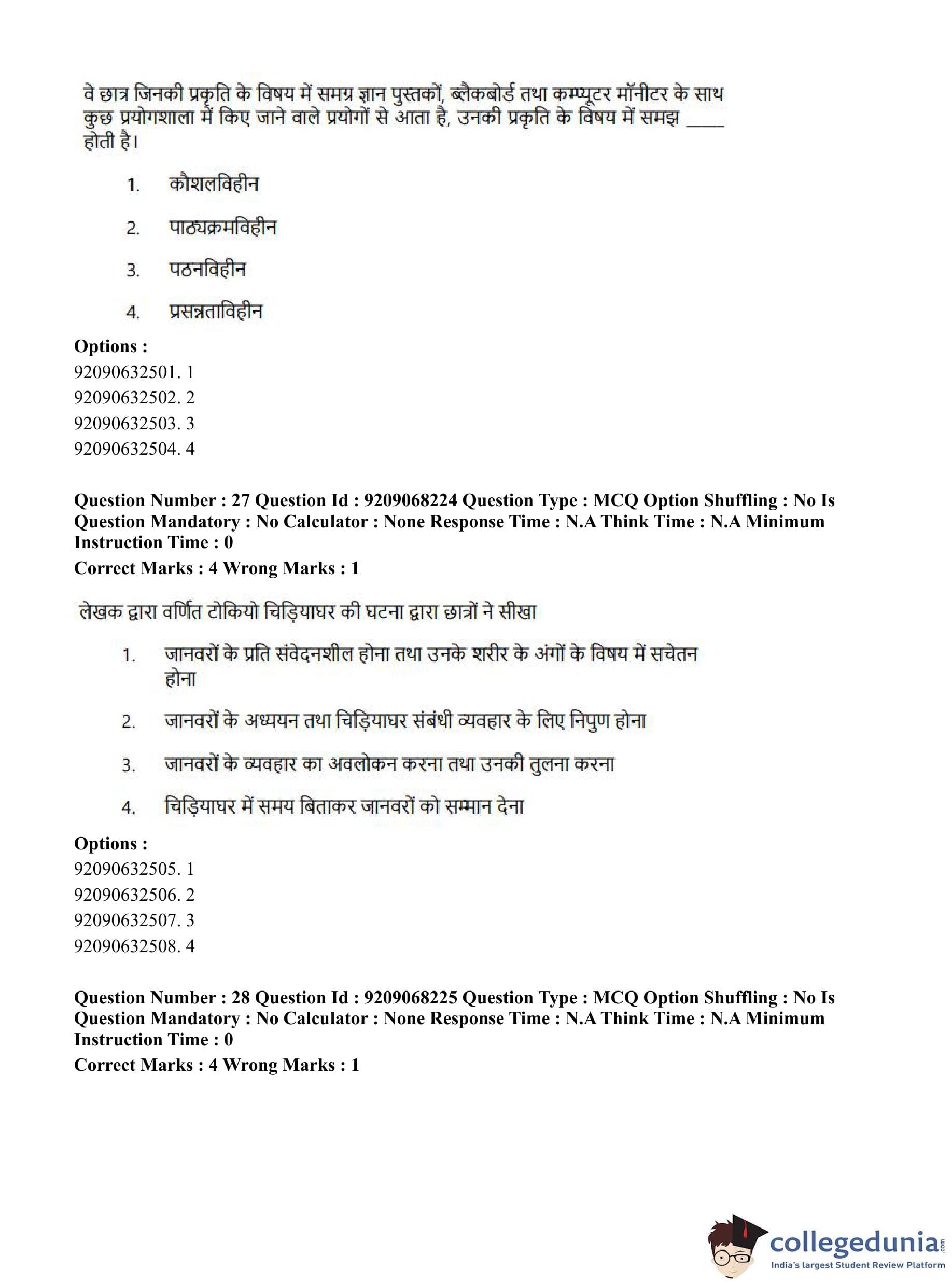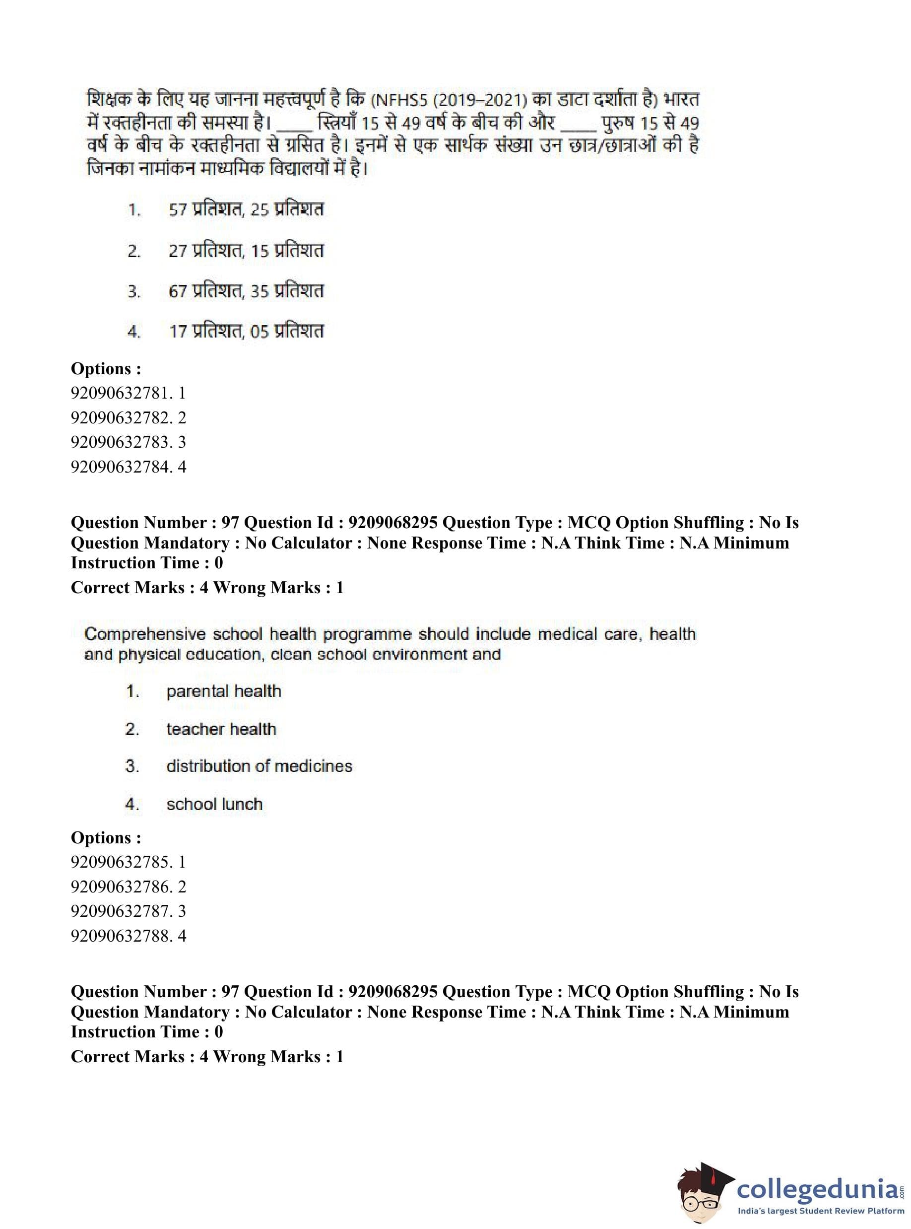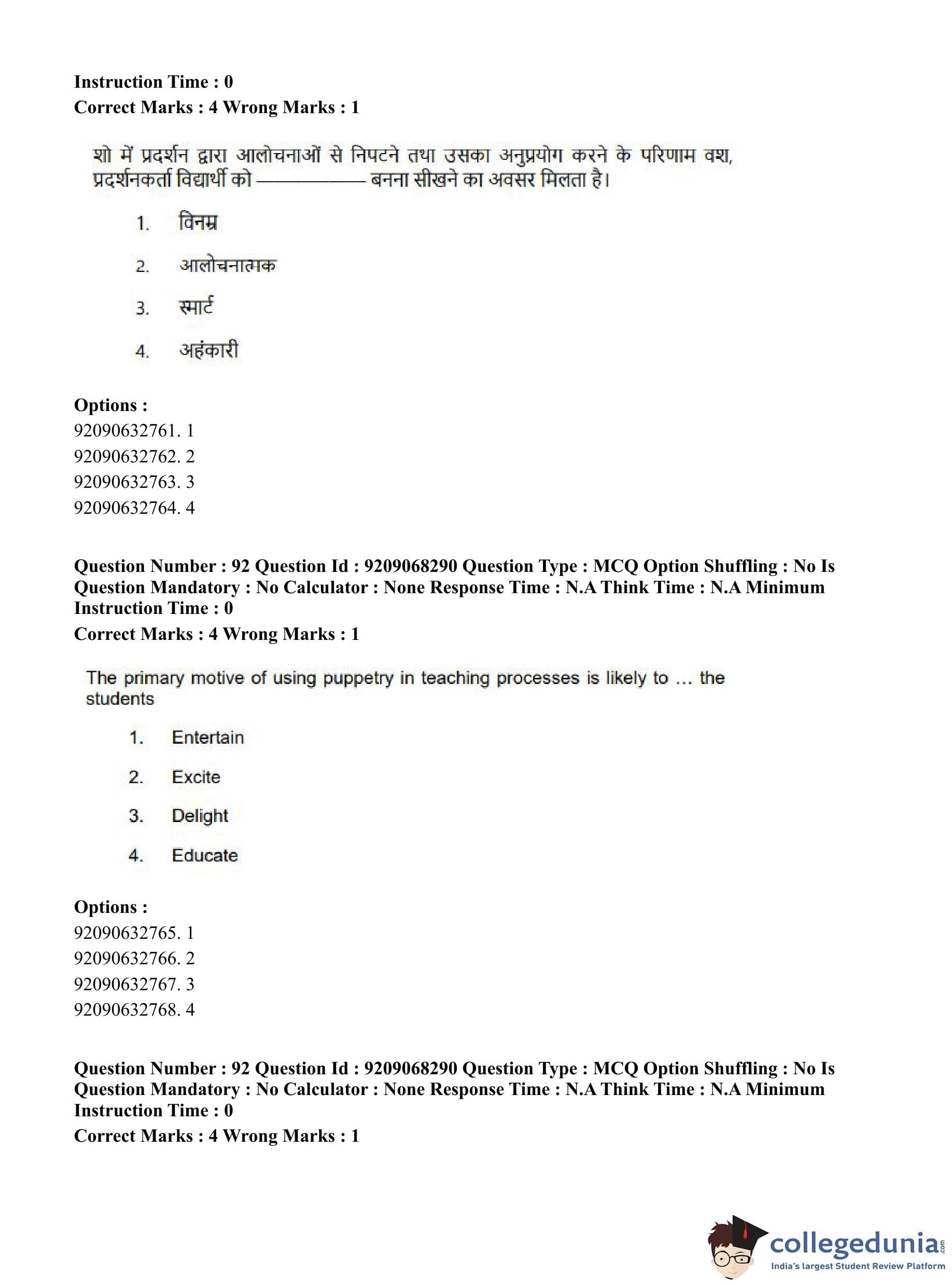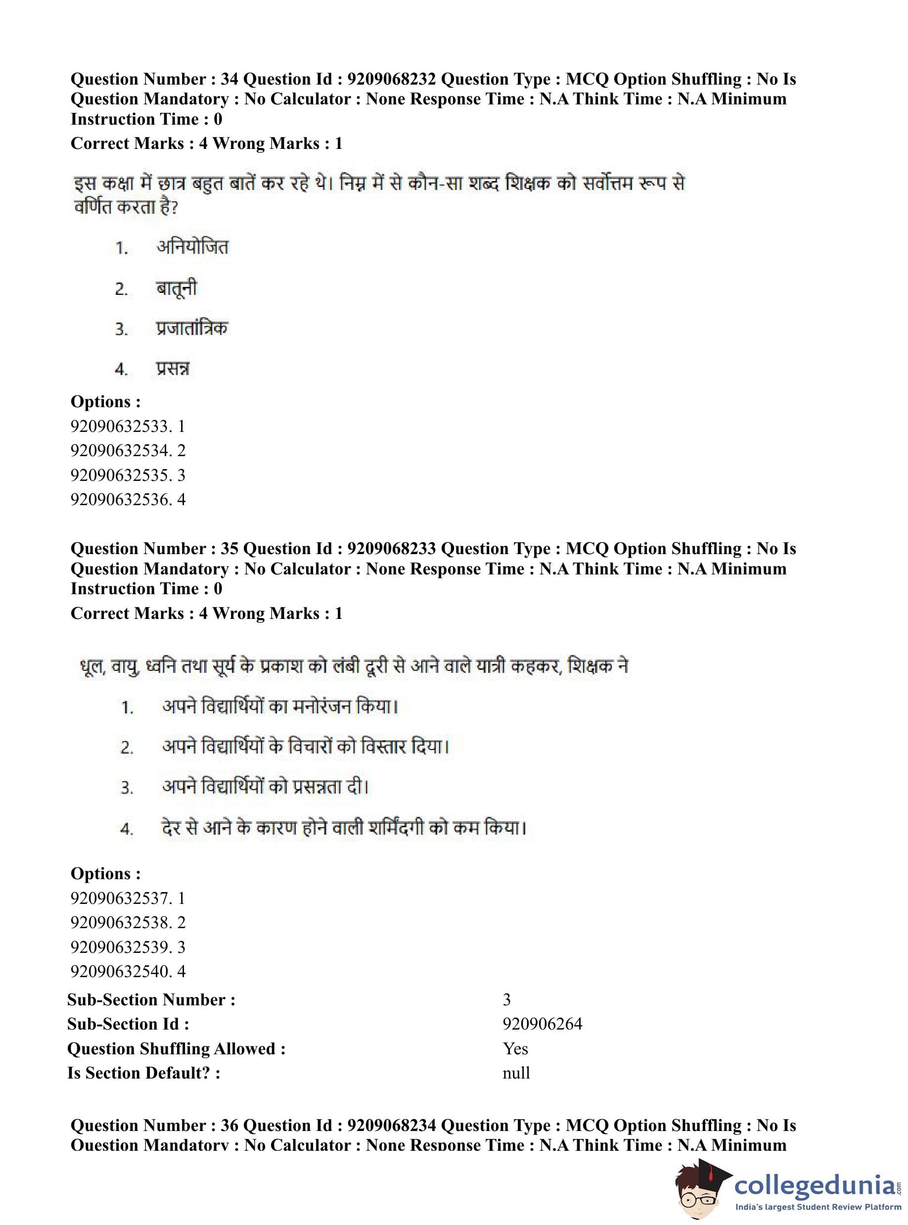 CUET PG 2023 B.Ed Question Paper with Answer Key PDF in Hindi is available for download here. The exam was conducted by National Testing Agency (NTA) on June 8, 2023 in Shift 2. The question paper comprised a total of 100 questions divided into 2 sections.