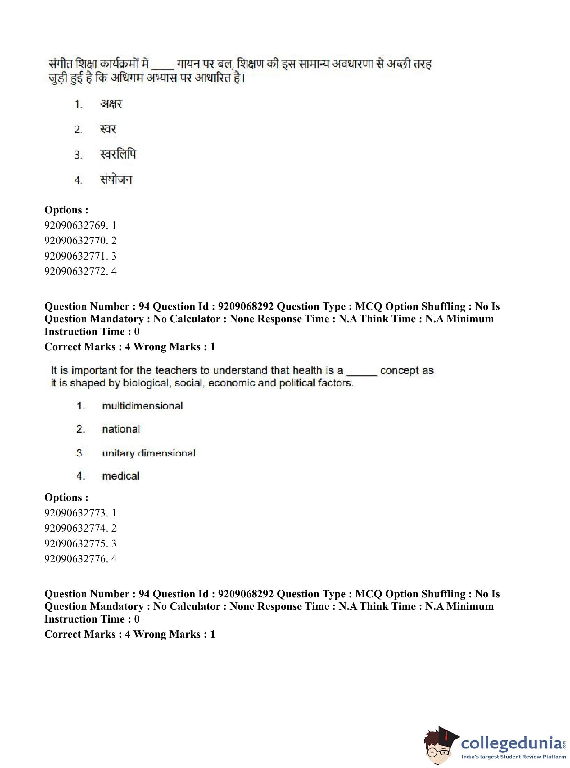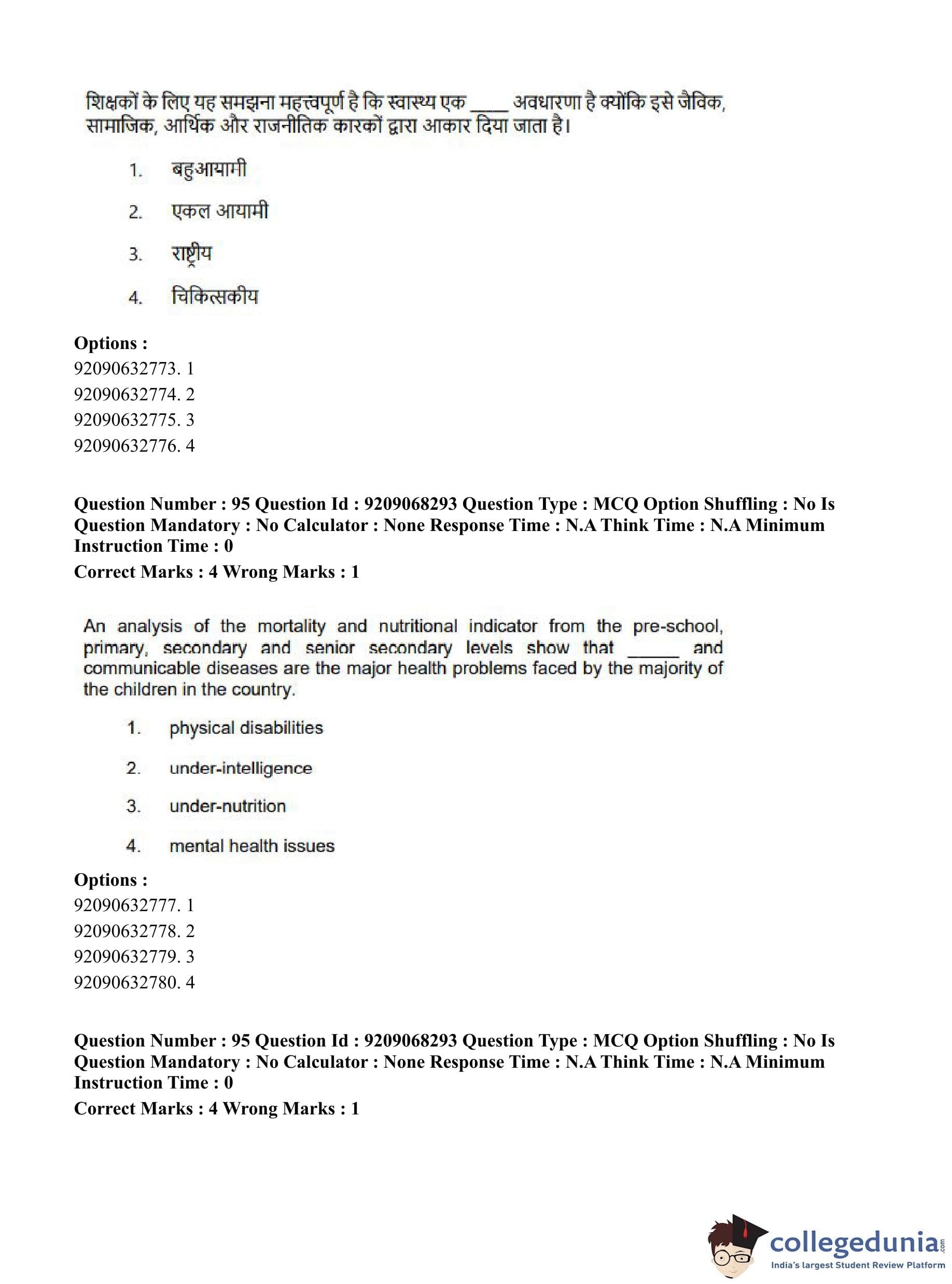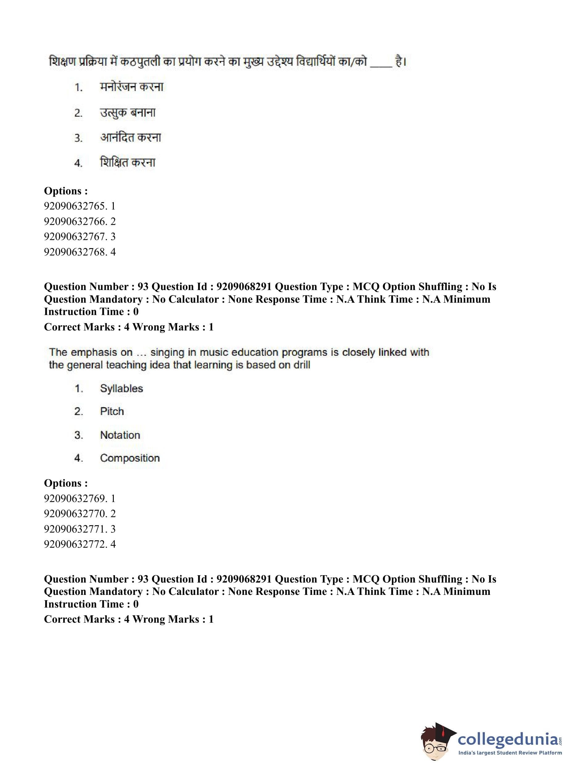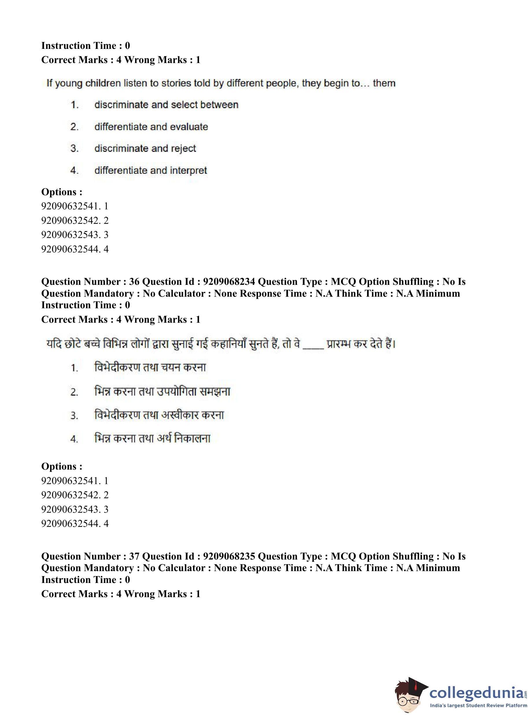 CUET PG 2023 B.Ed Question Paper with Answer Key PDF in Hindi is available for download here. The exam was conducted by National Testing Agency (NTA) on June 8, 2023 in Shift 2. The question paper comprised a total of 100 questions divided into 2 sections.