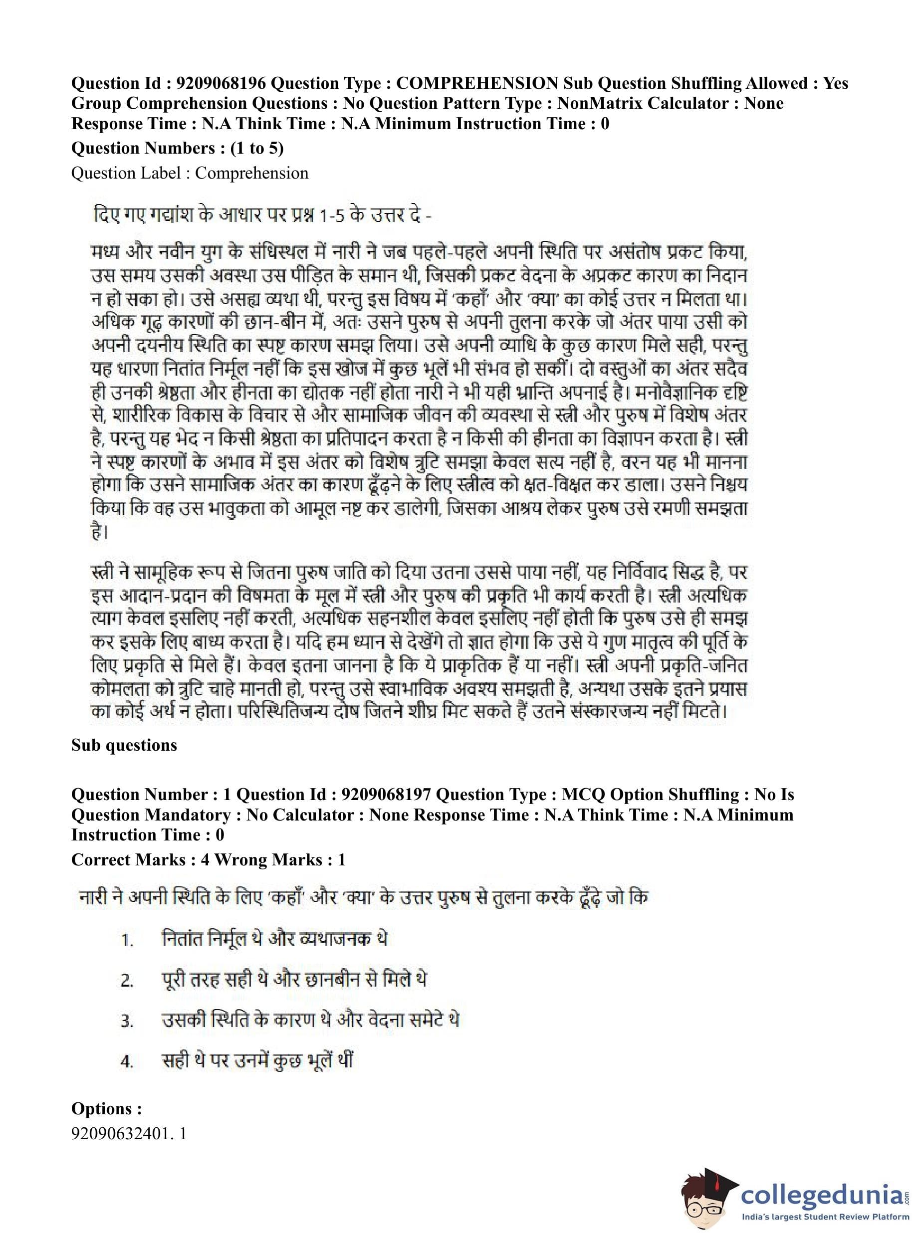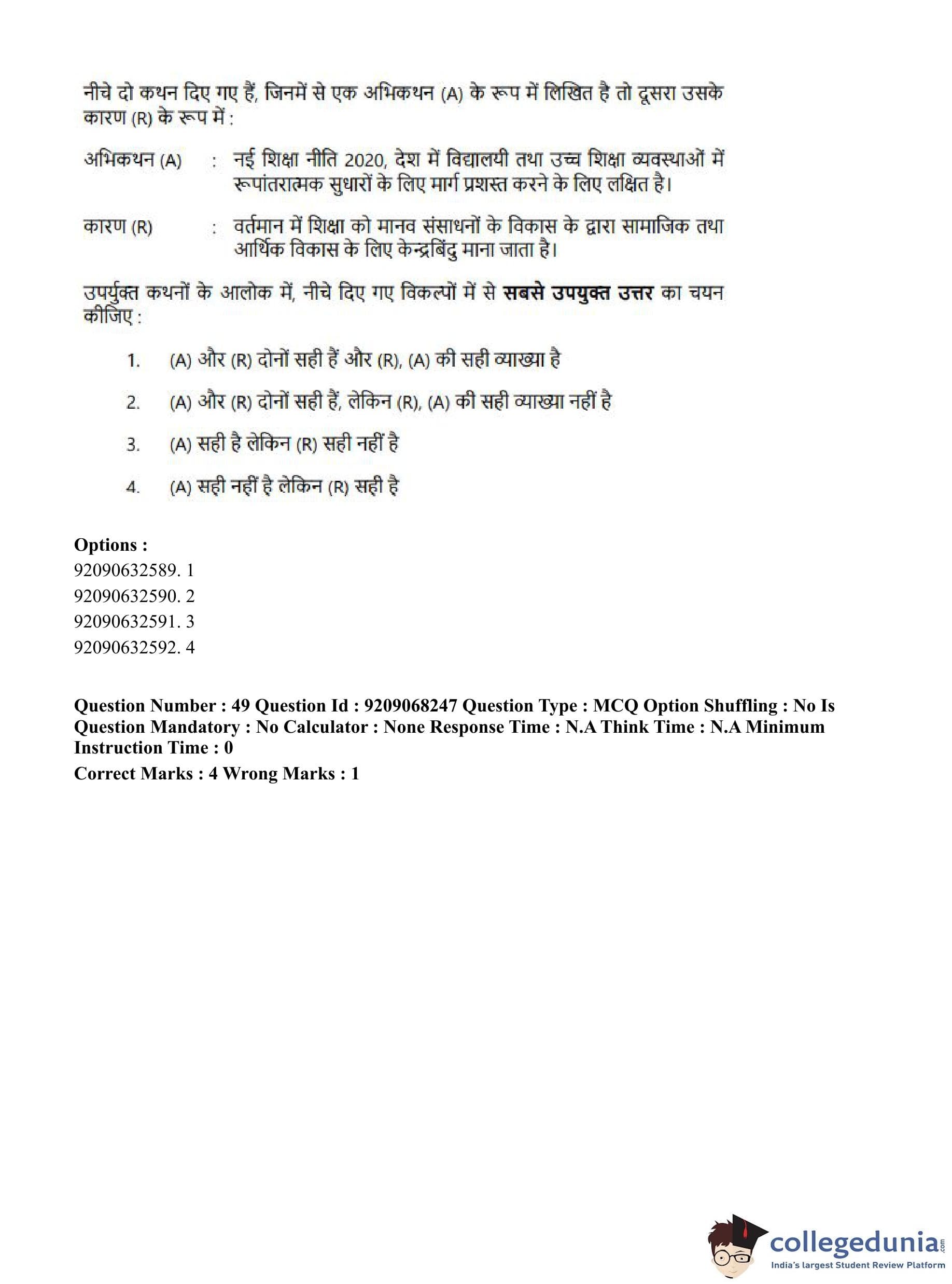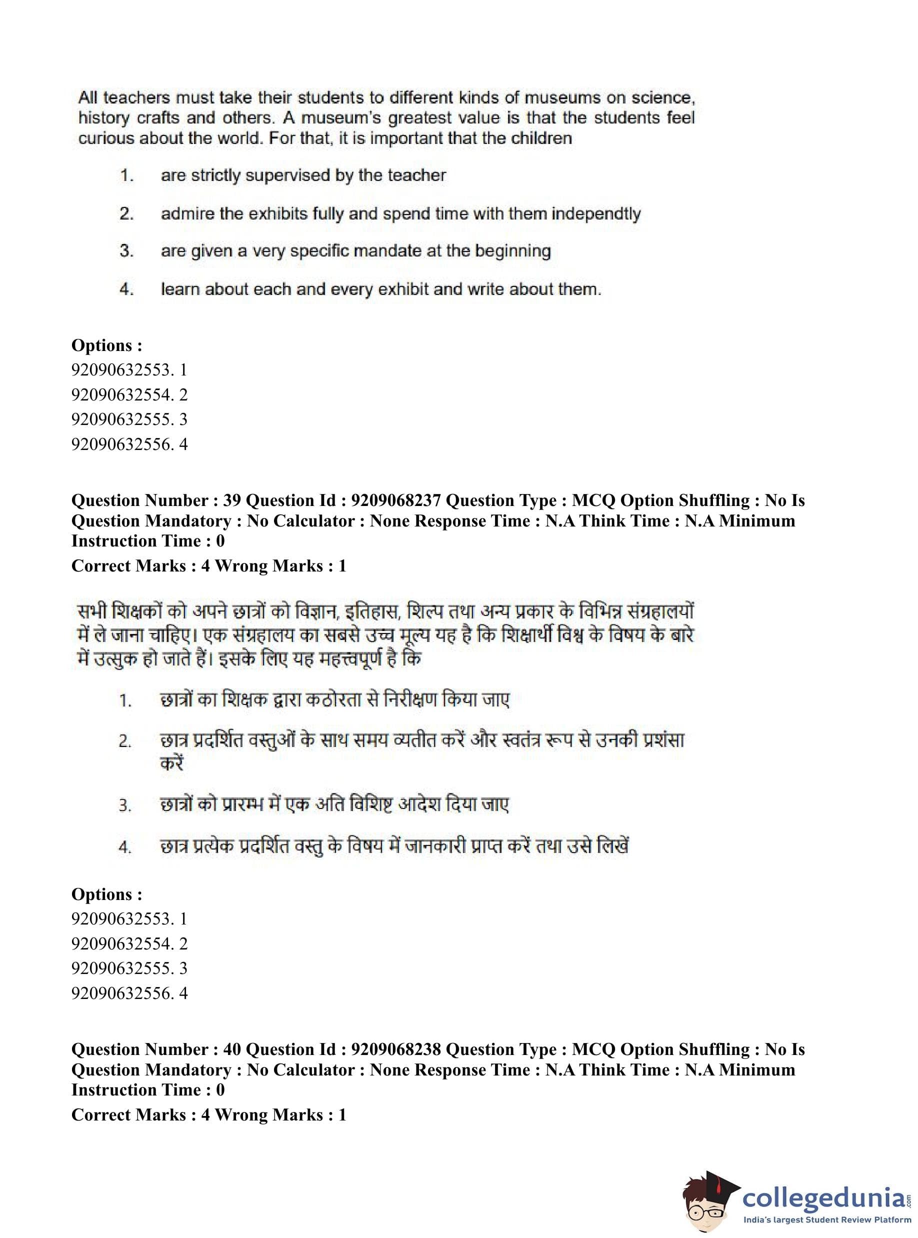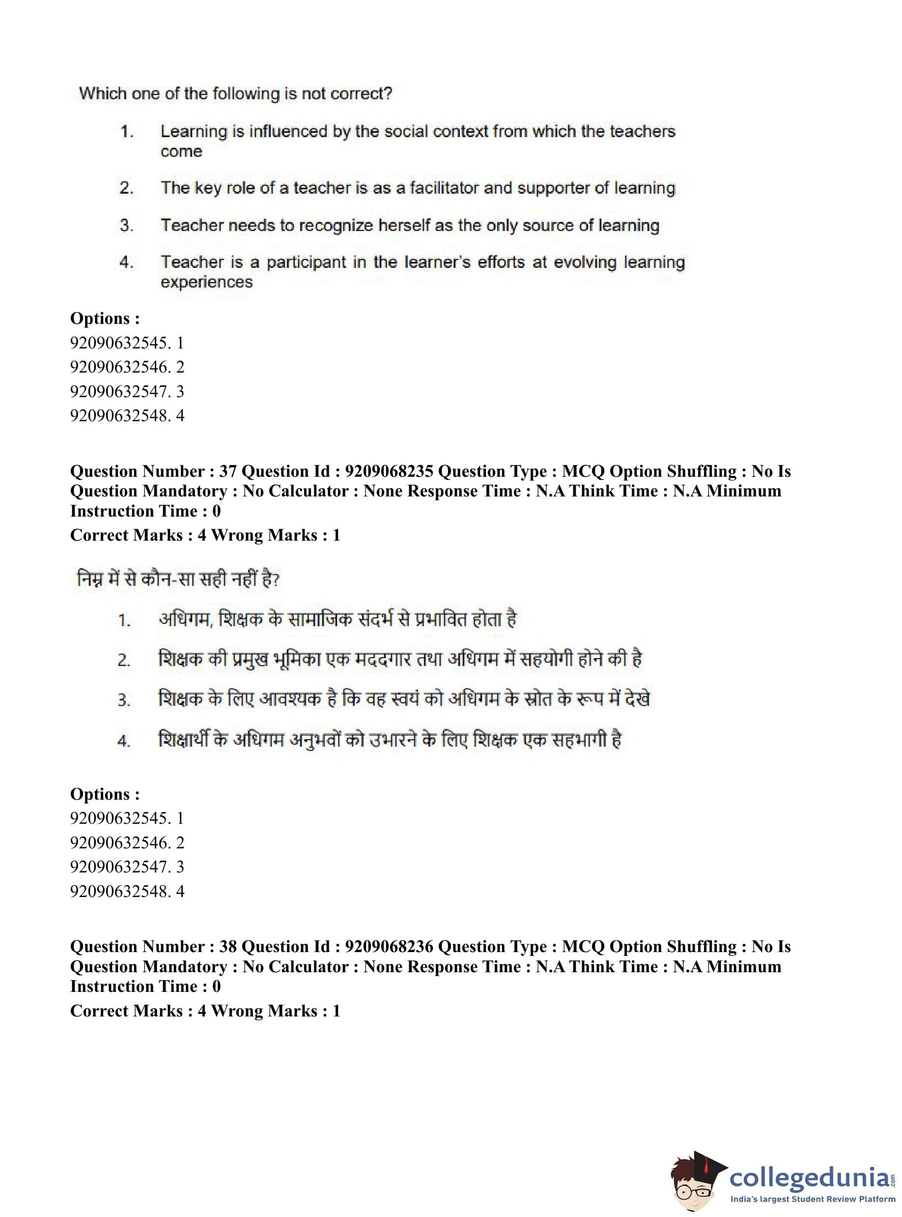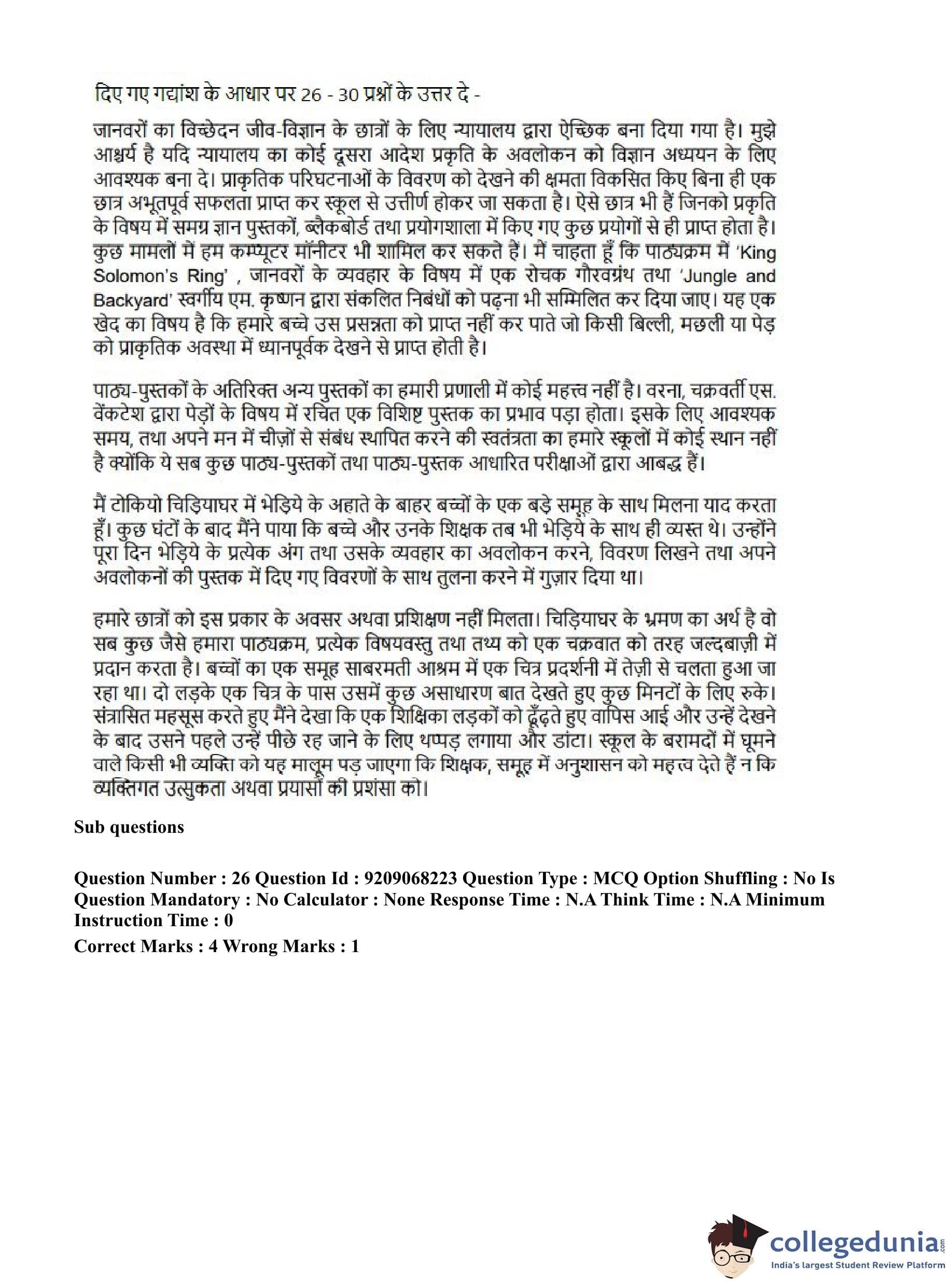CUET PG 2023 B.Ed Question Paper with Answer Key PDF in Hindi is available for download here. The exam was conducted by National Testing Agency (NTA) on June 8, 2023 in Shift 2. The question paper comprised a total of 100 questions divided into 2 sections.