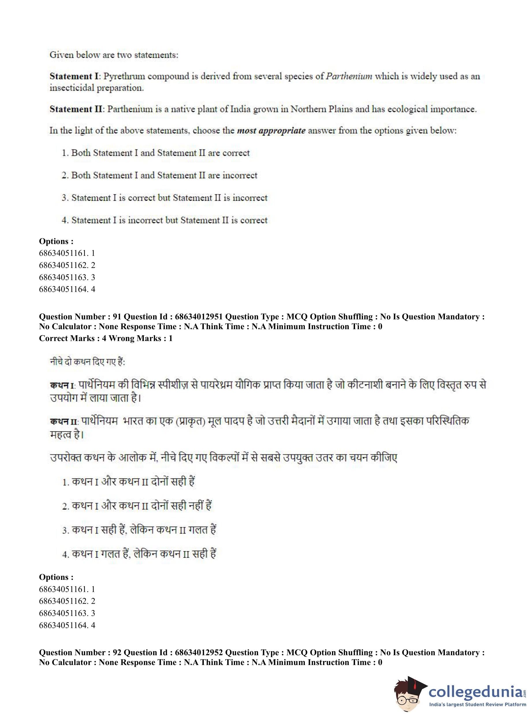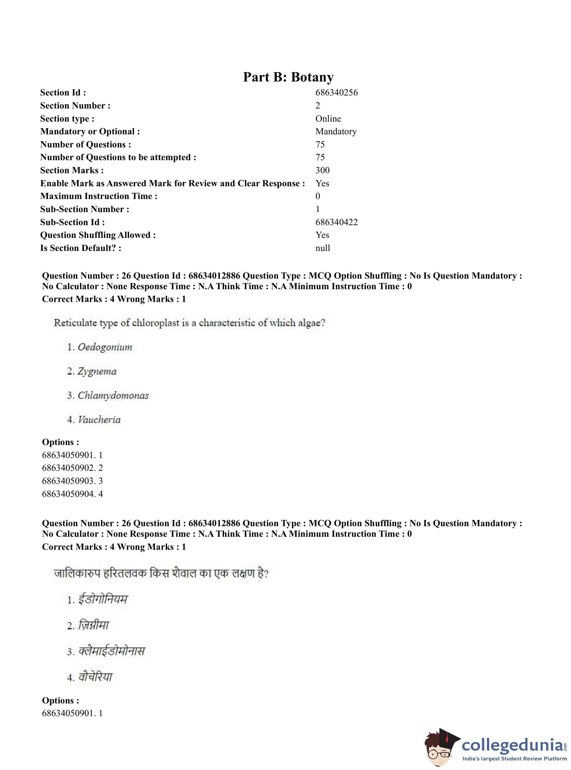 CUET PG 2023 Botany Question Paper in English (June 11 - Shift 2)