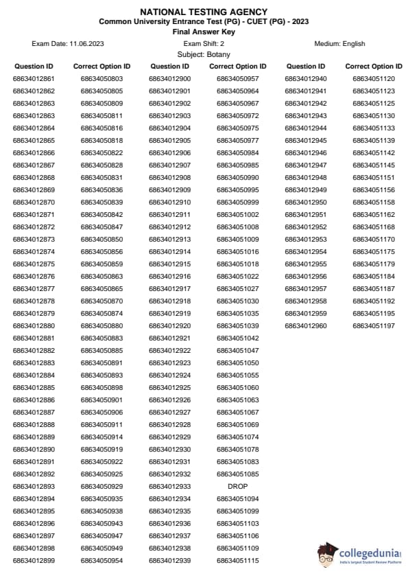 | CUET PG Botany Question Paper 2023 PDF | CUET PG Botany Answer Key 2023 PDF |