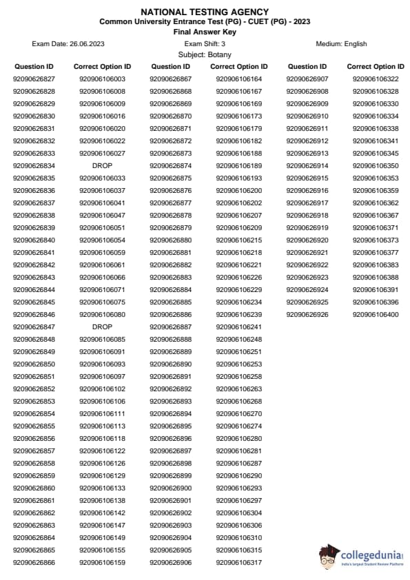 | CUET PG Botany Question Paper 2023 PDF | CUET PG Botany Answer Key 2023 PDF |