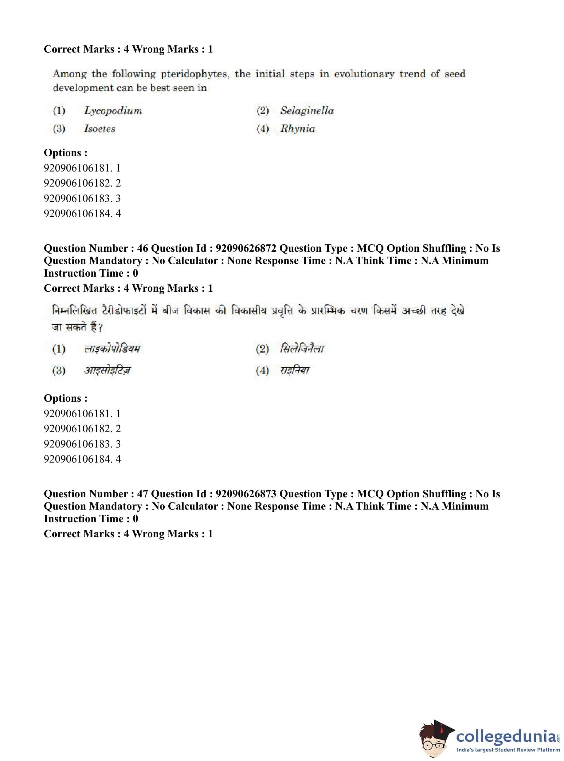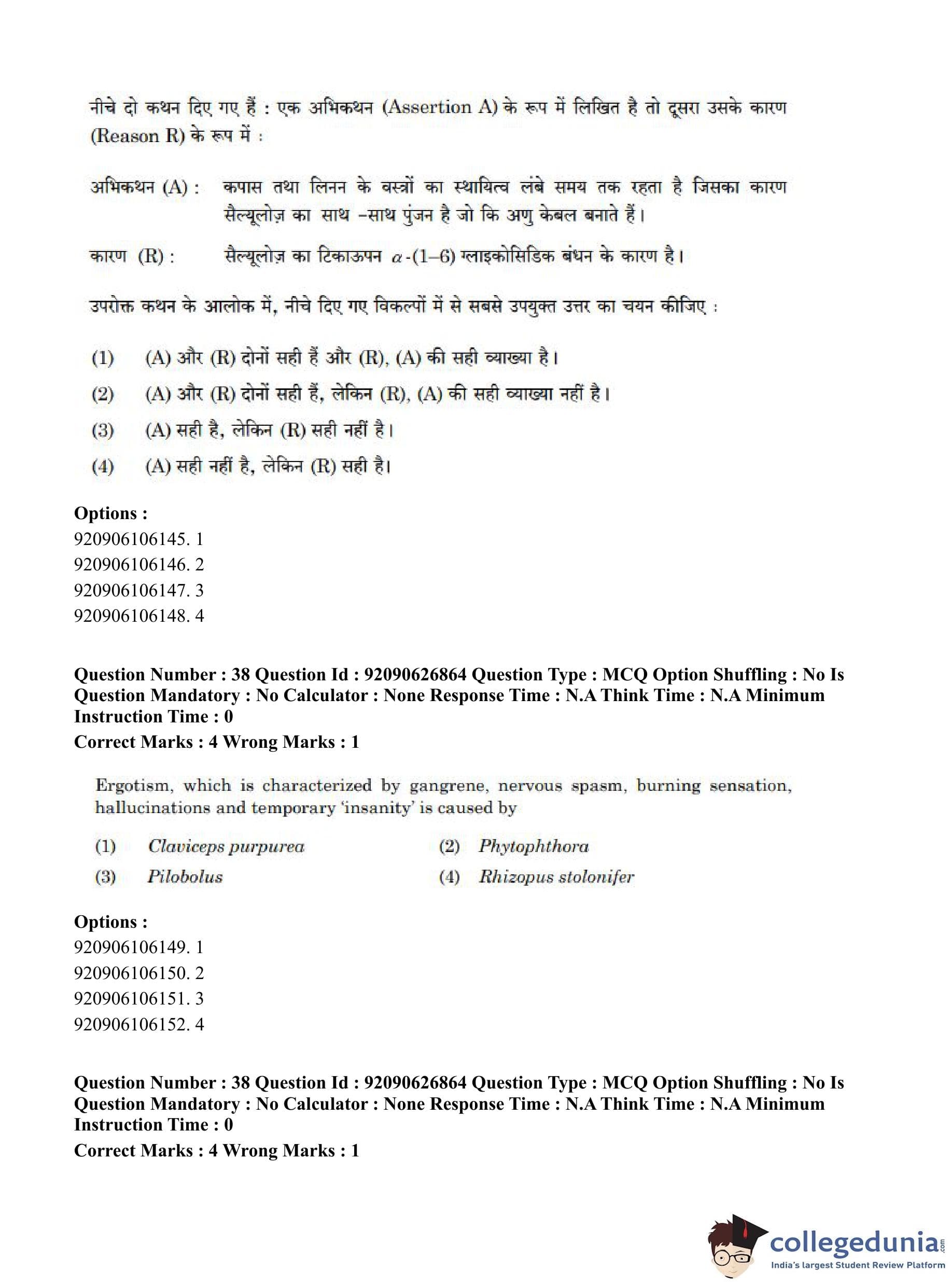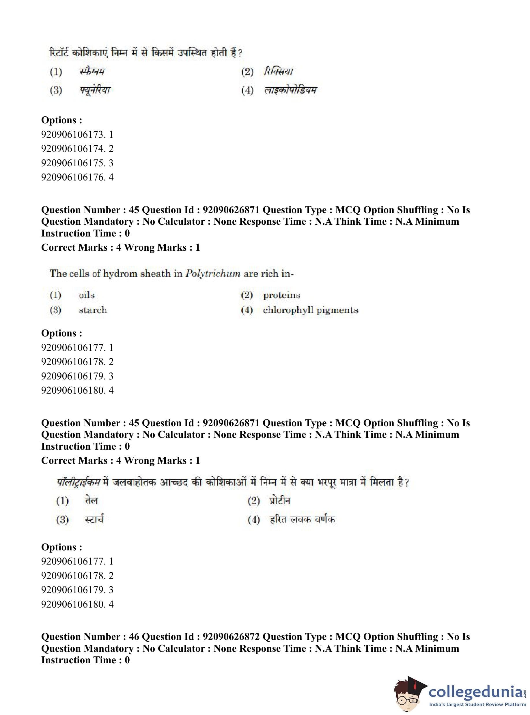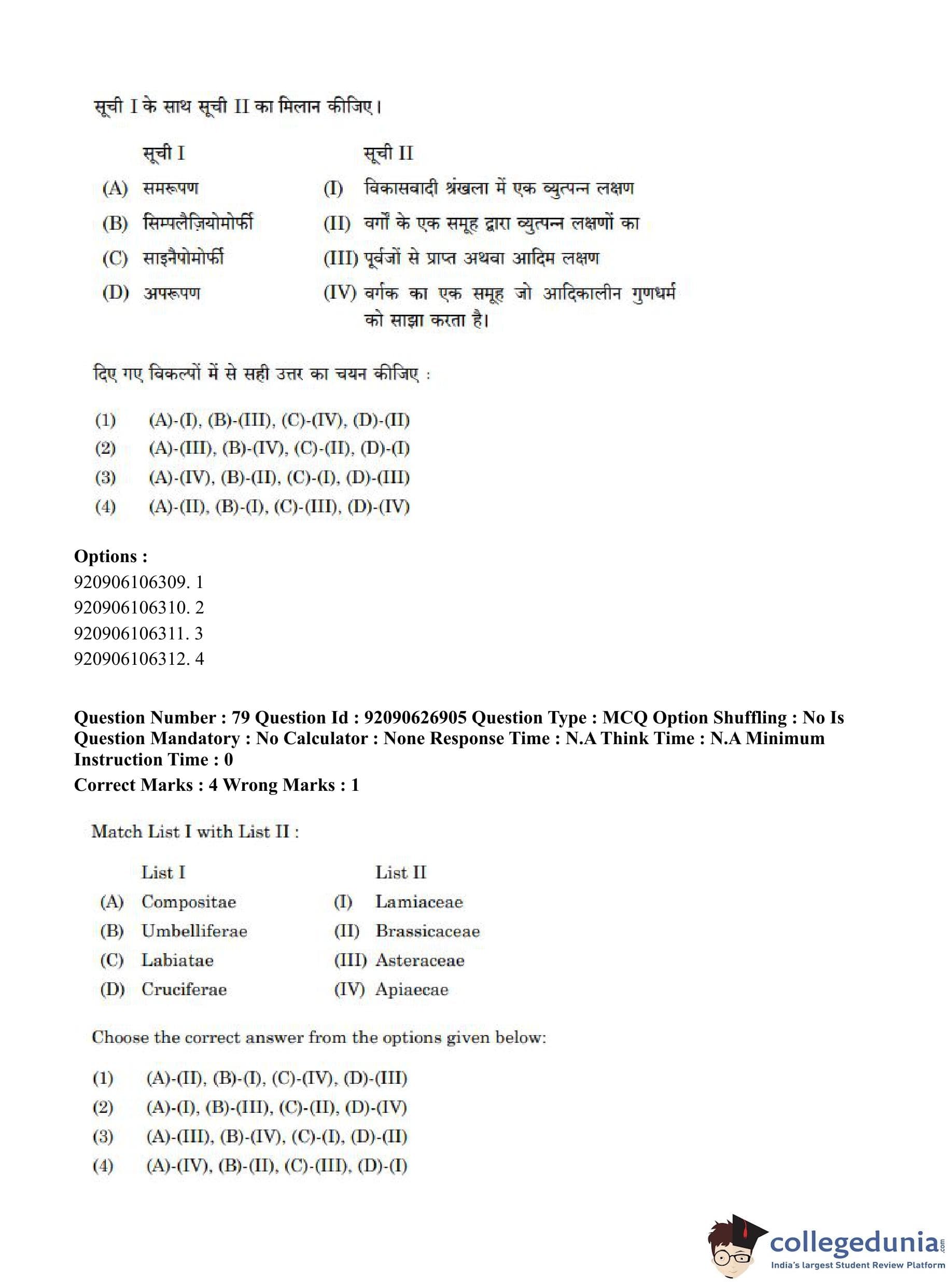 CUET PG 2023 Botany Question Paper in English (June 26 - Shift 3)