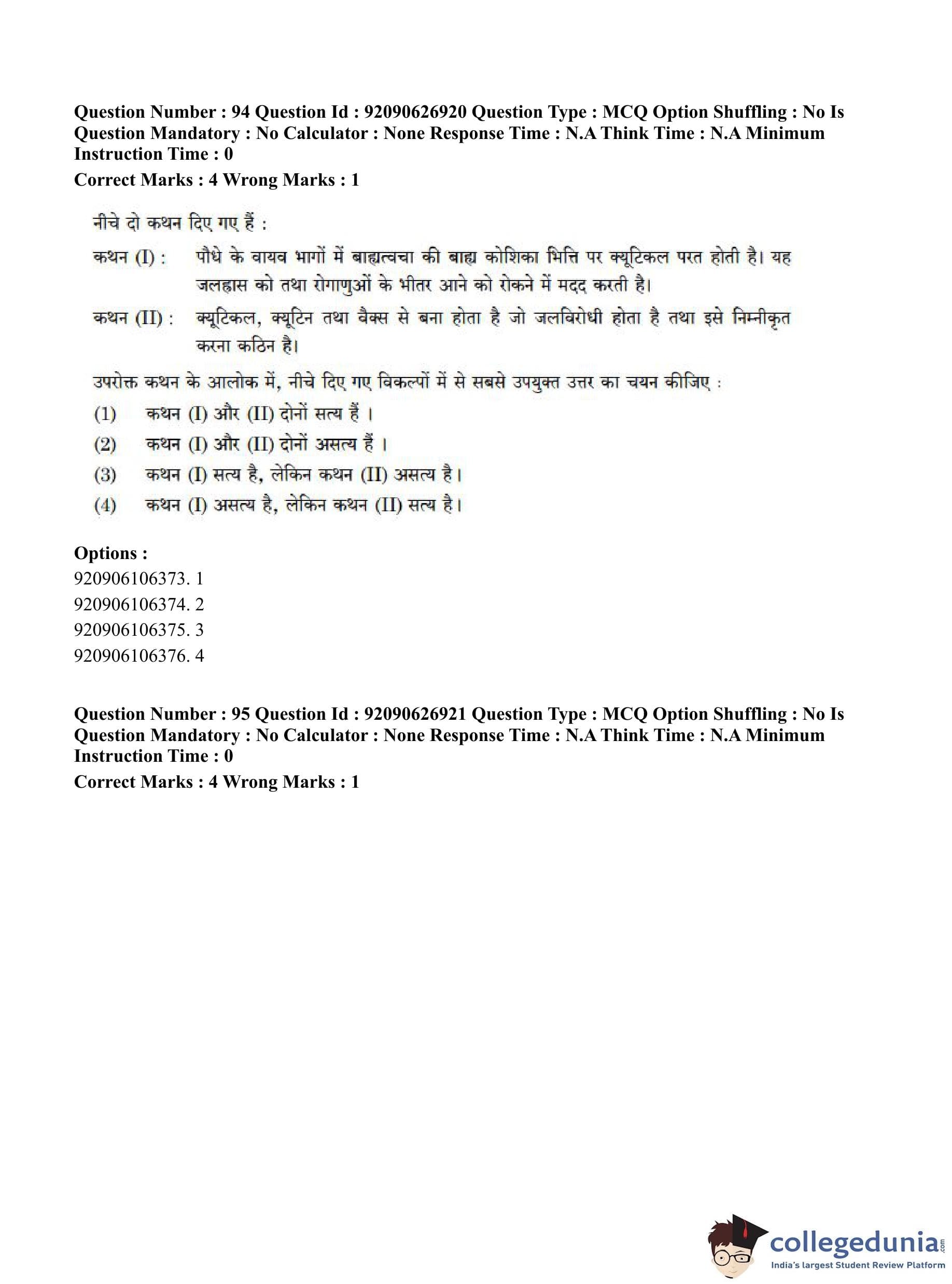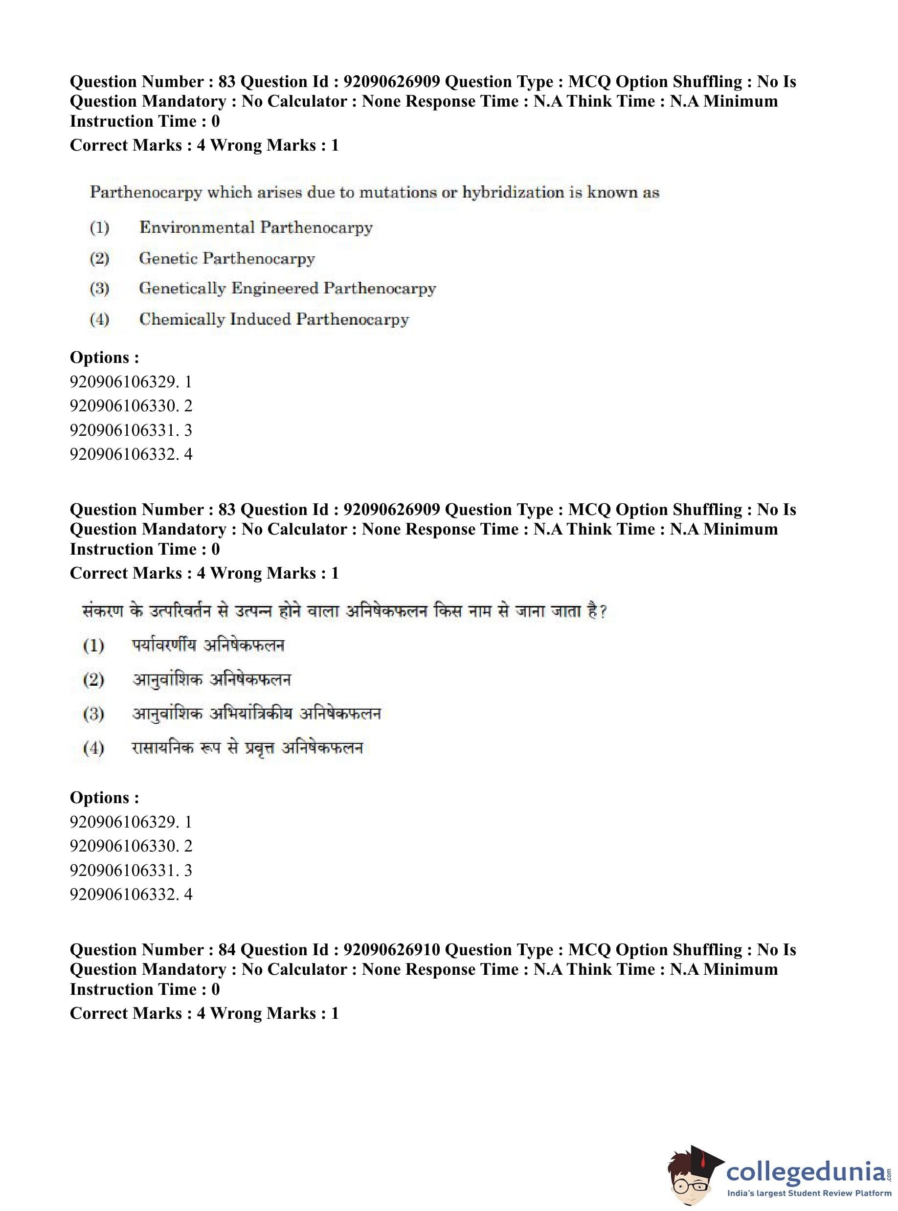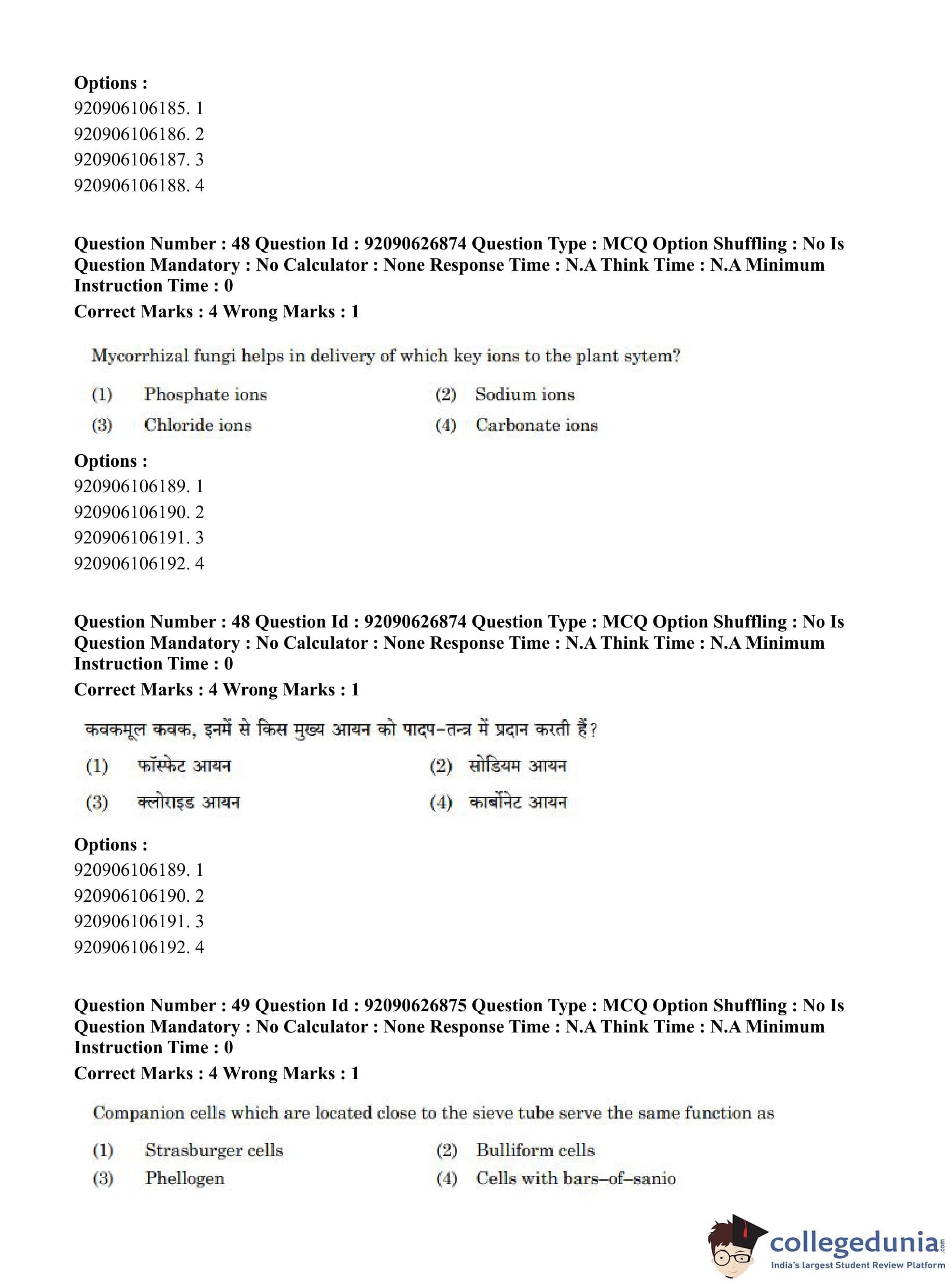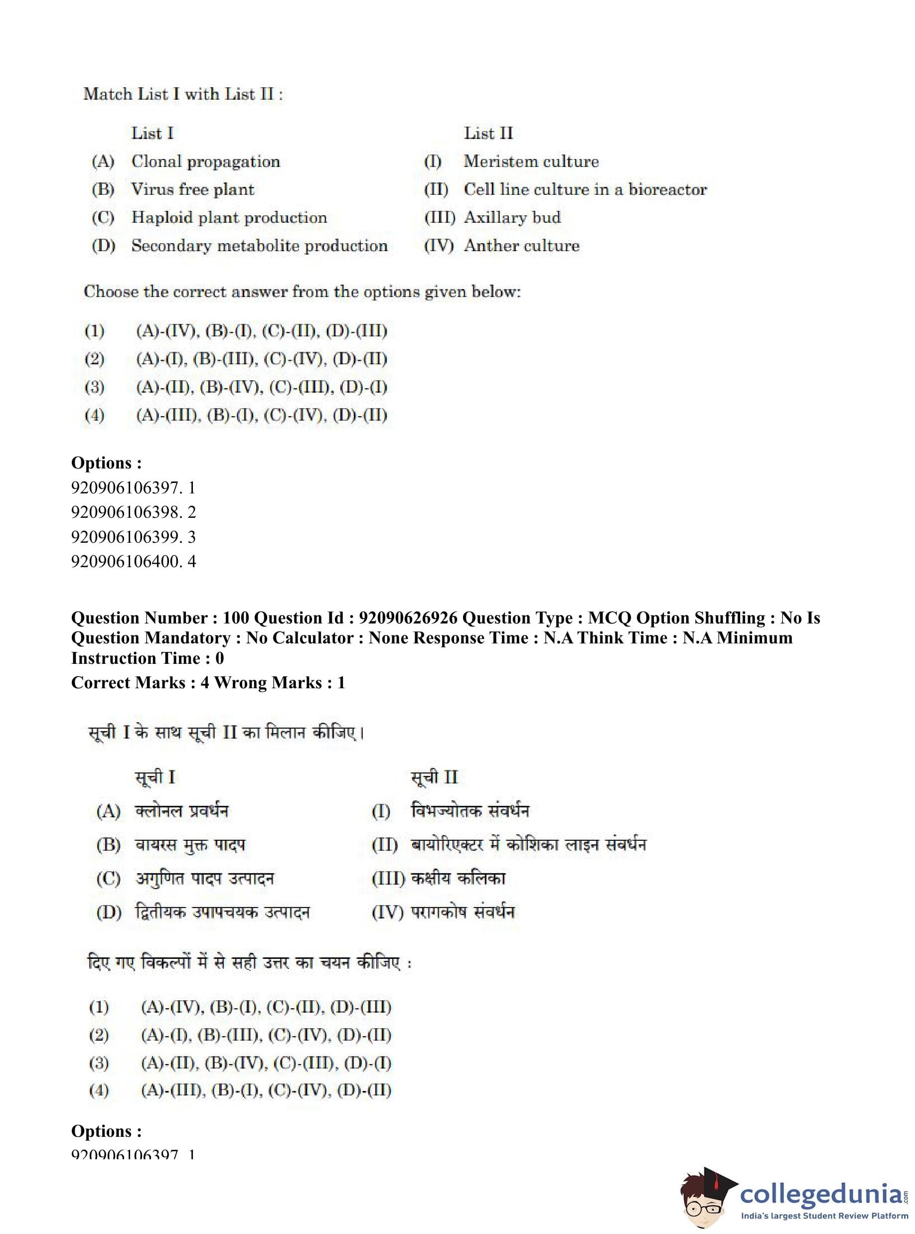CUET PG 2023 Botany Question Paper in English (June 26 - Shift 3)