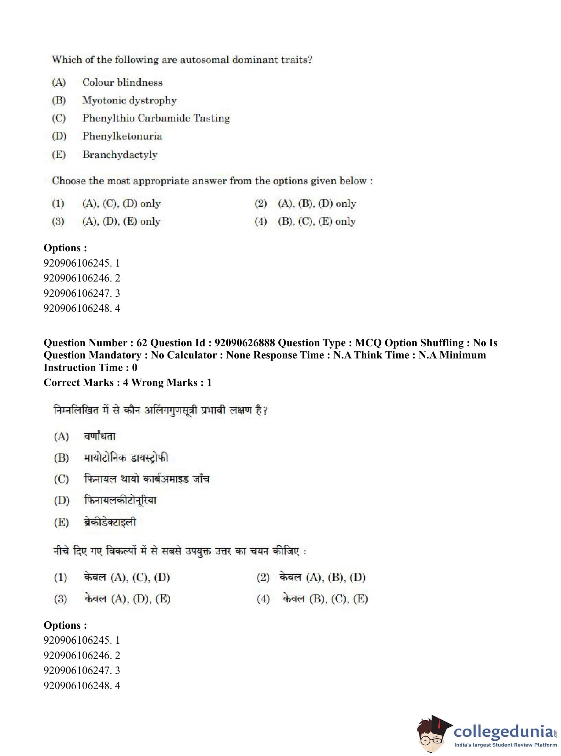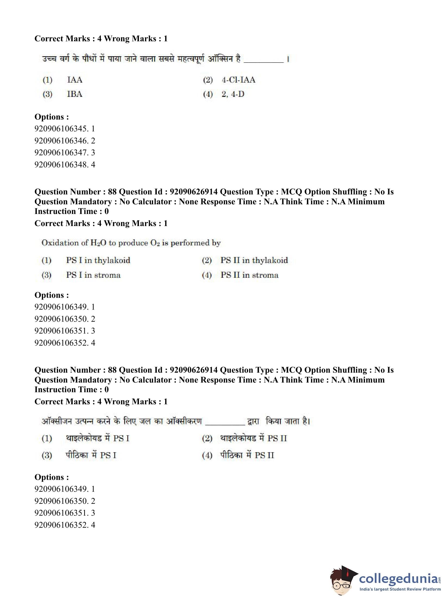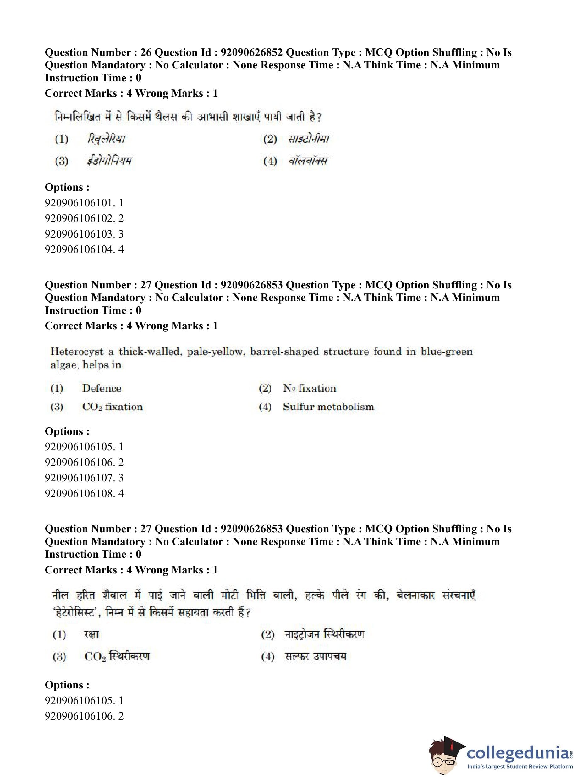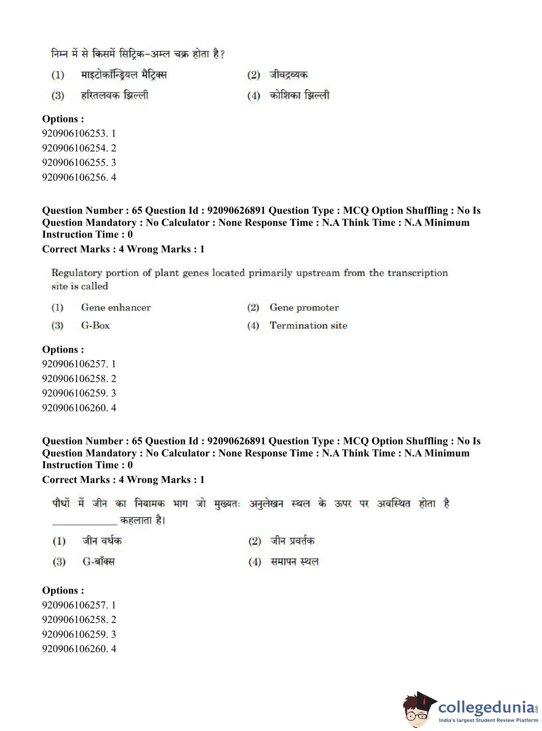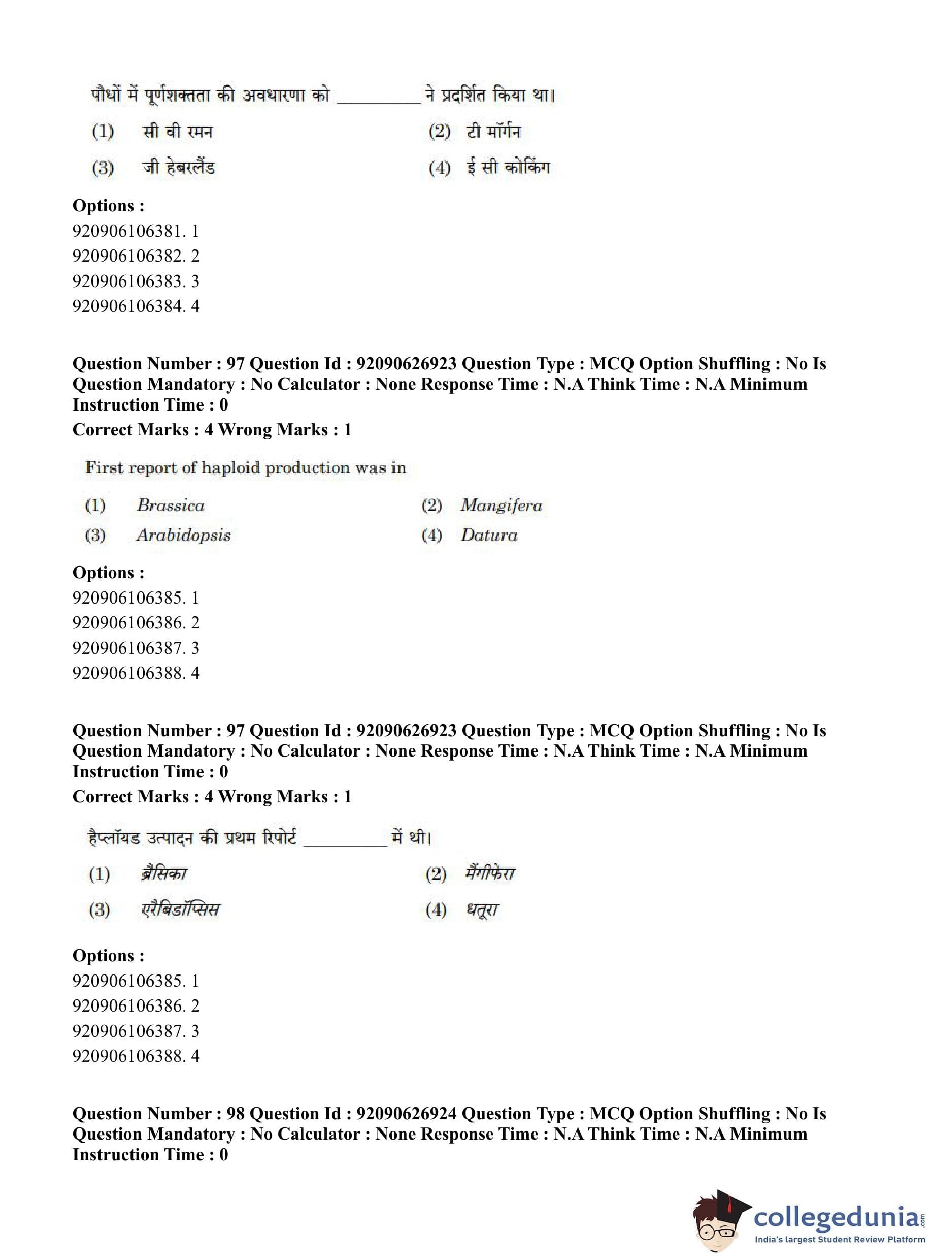 CUET PG 2023 Botany Question Paper in English (June 26 - Shift 3)