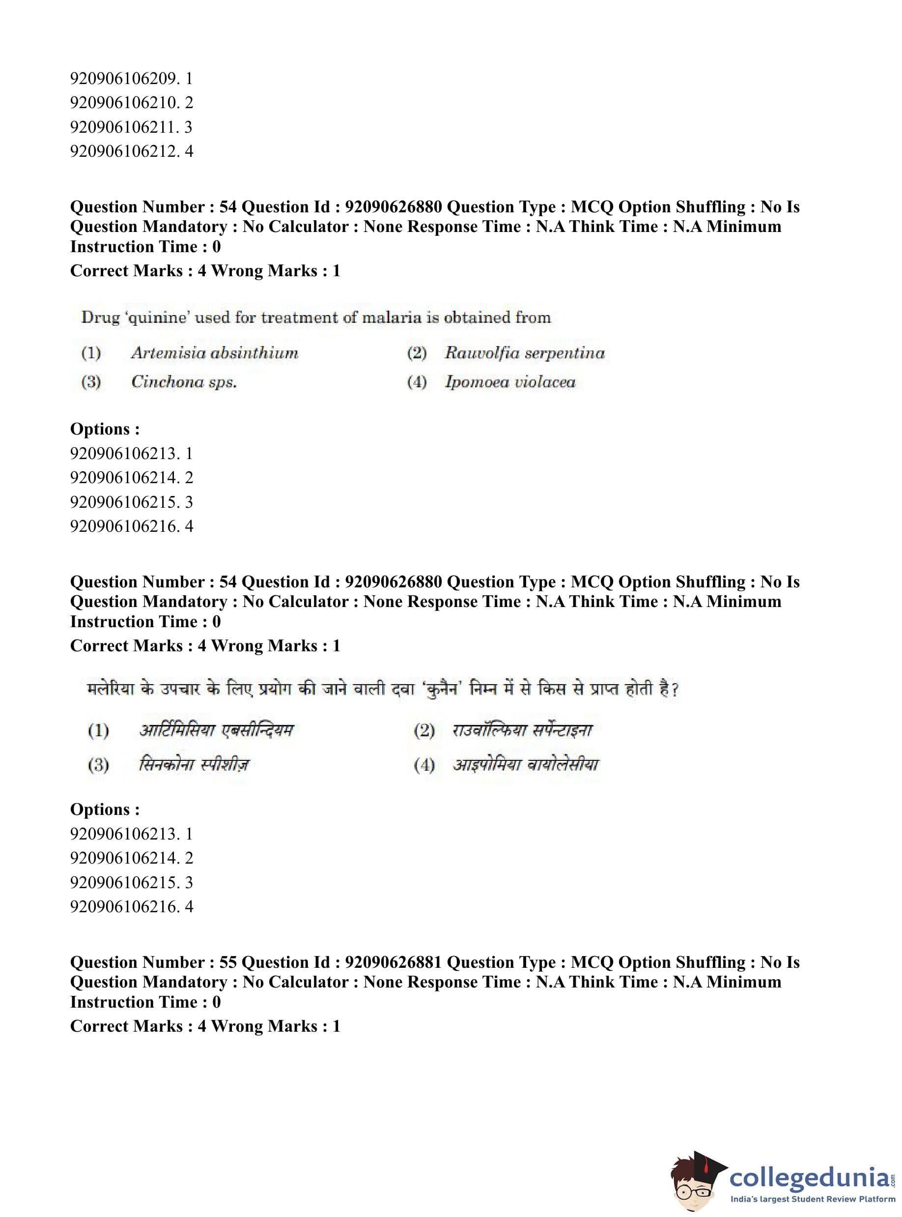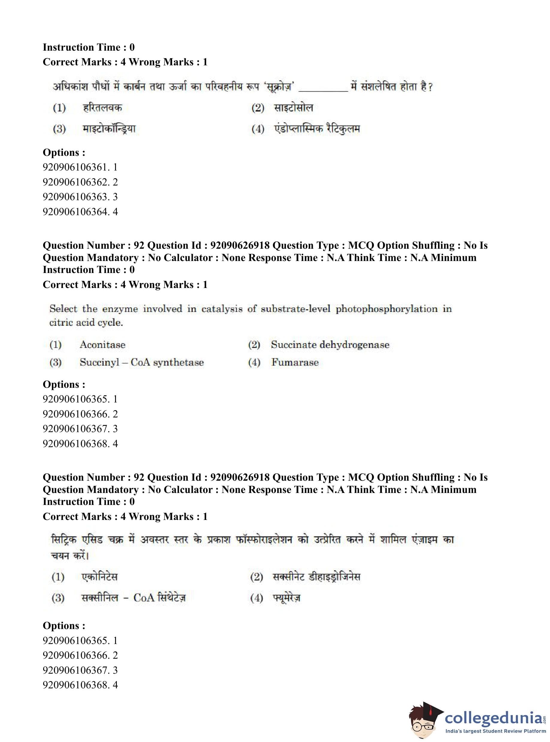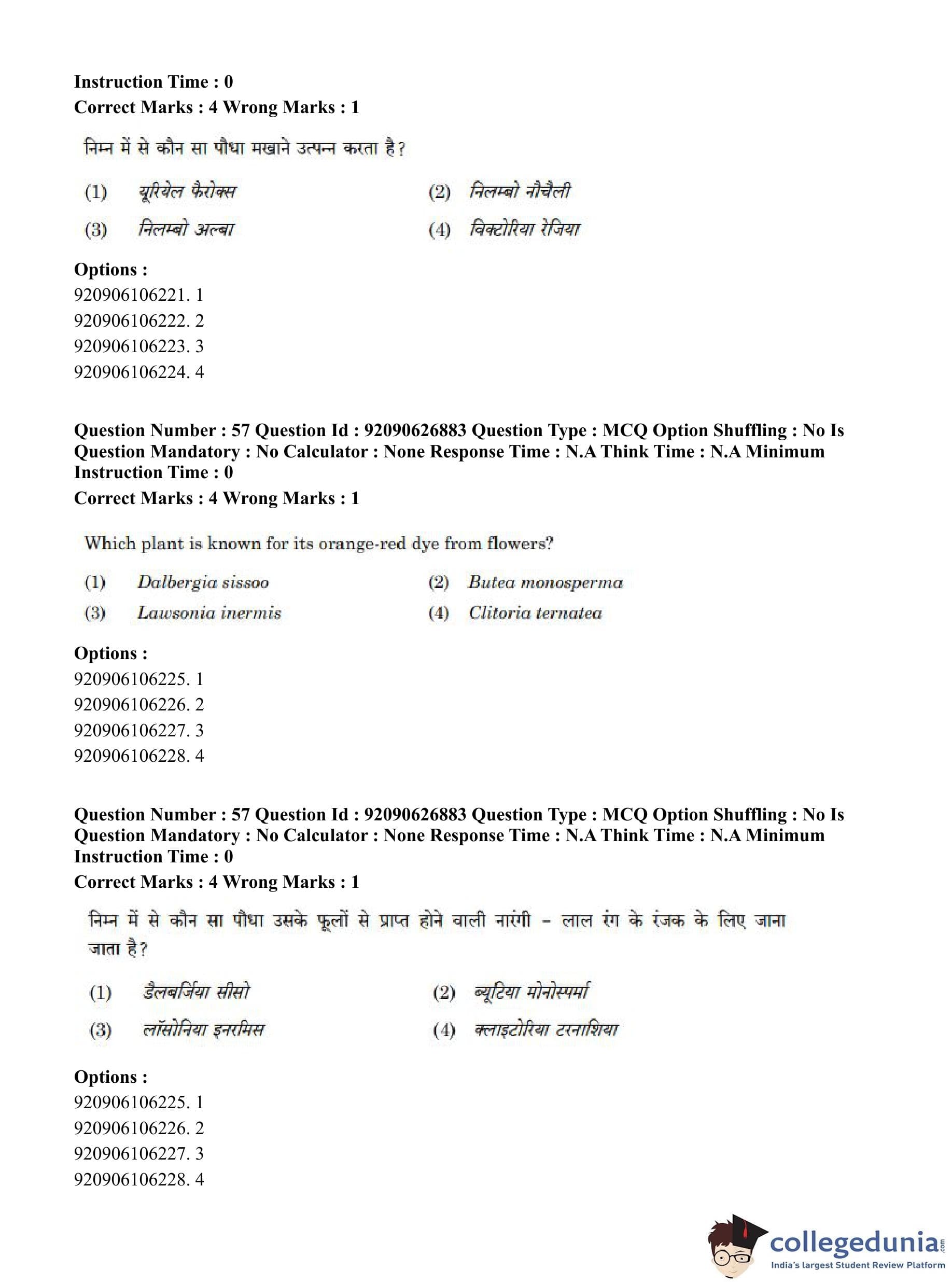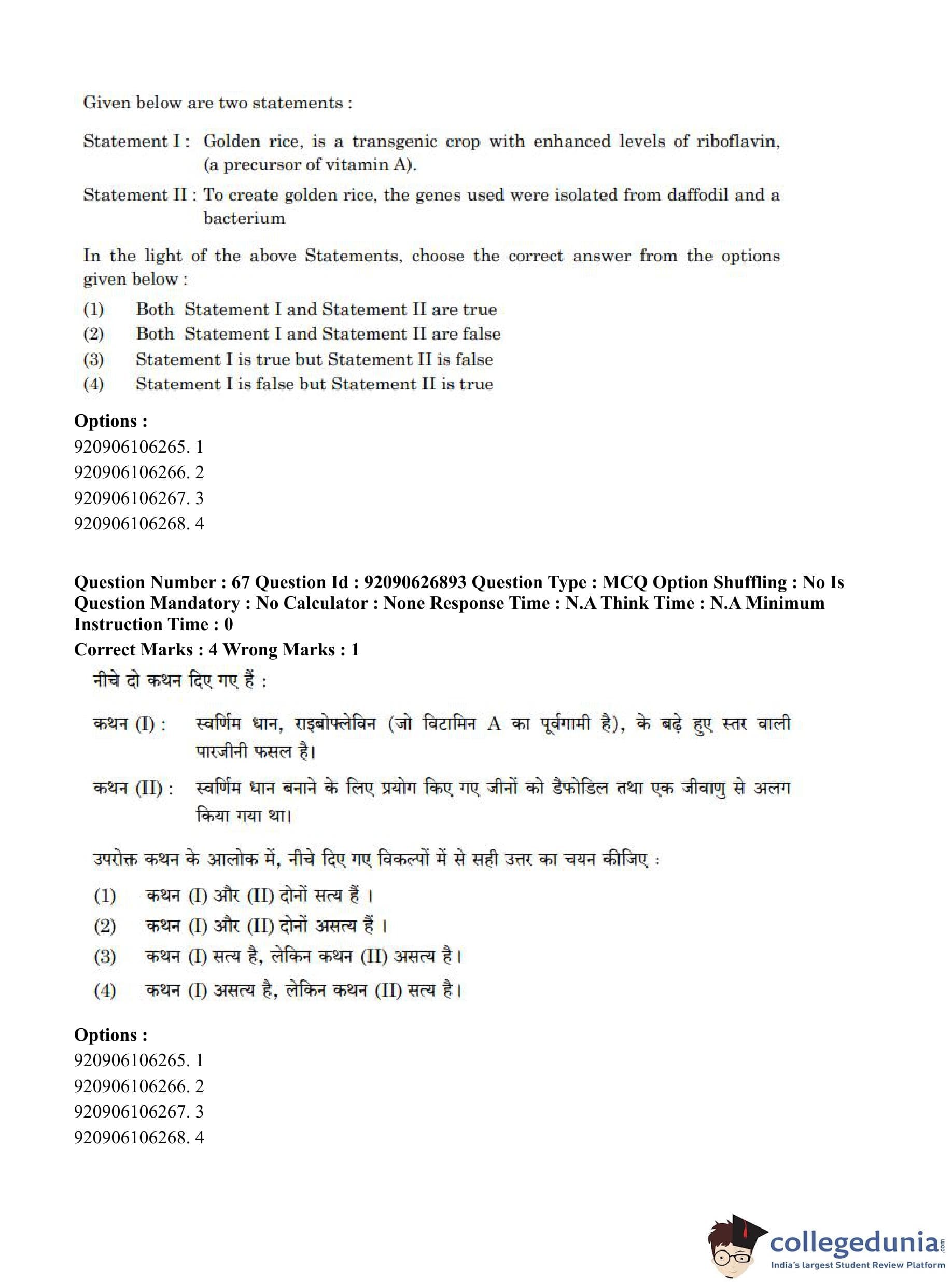 CUET PG 2023 Botany Question Paper in English (June 26 - Shift 3)