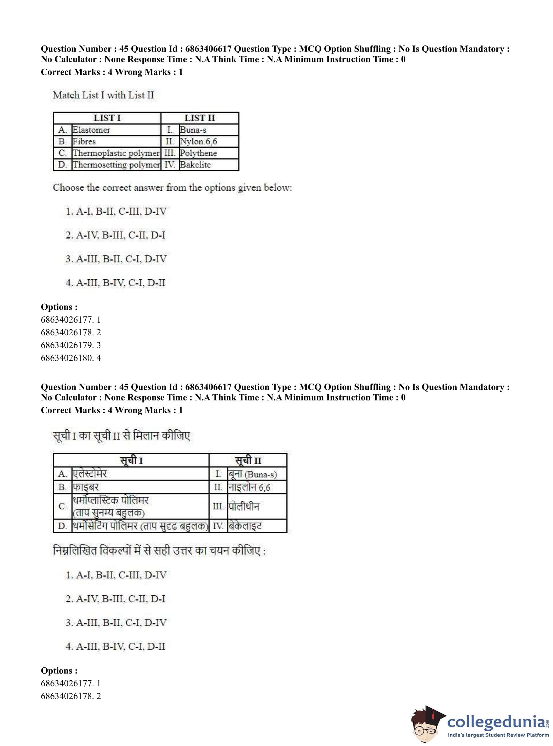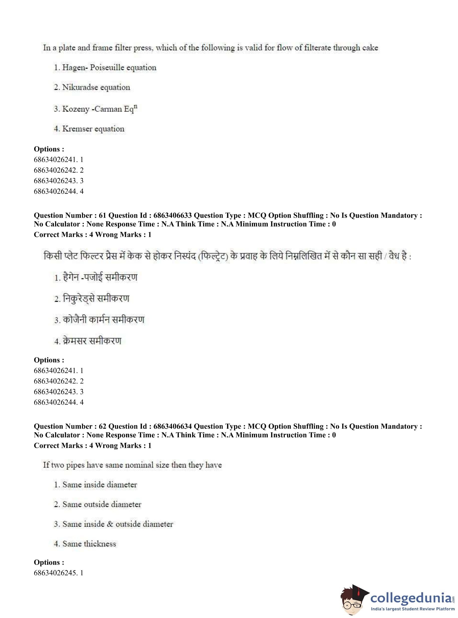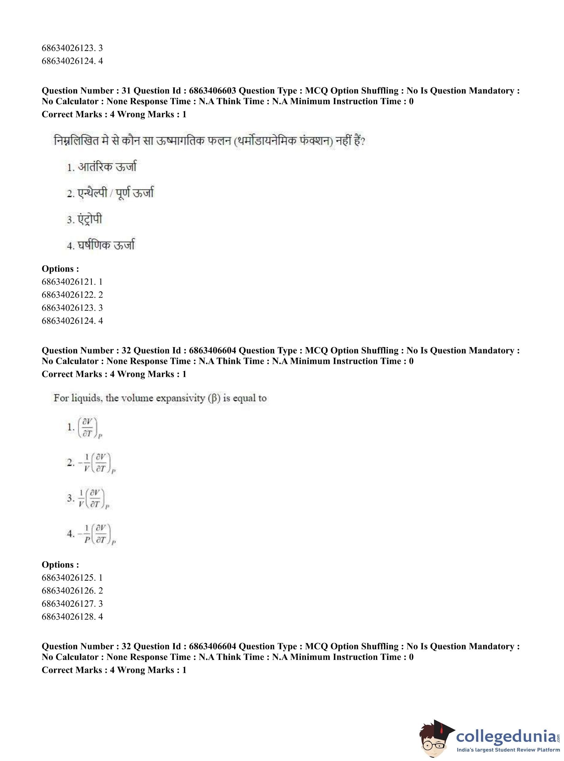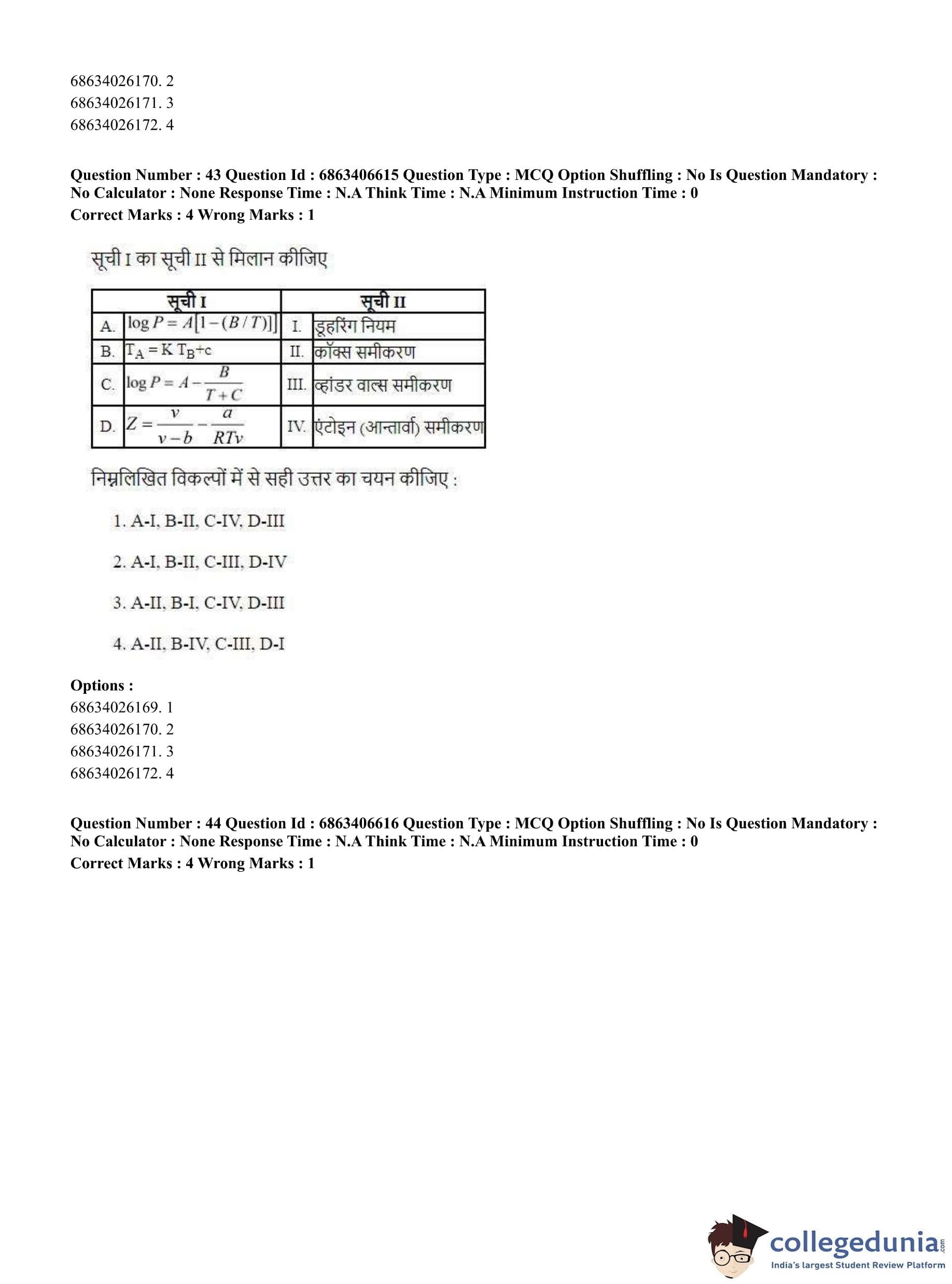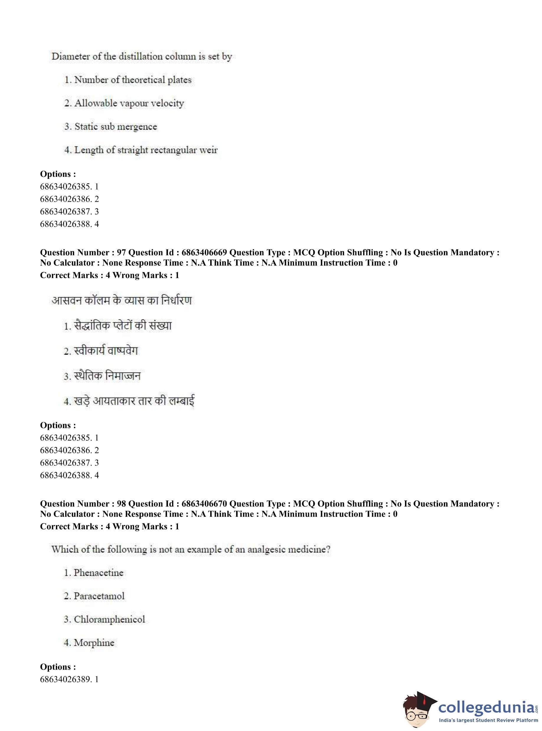 CUET PG 2023 Chemical Thermal and Polymer Engineering Question Paper in English (June 7 - Shift 1)