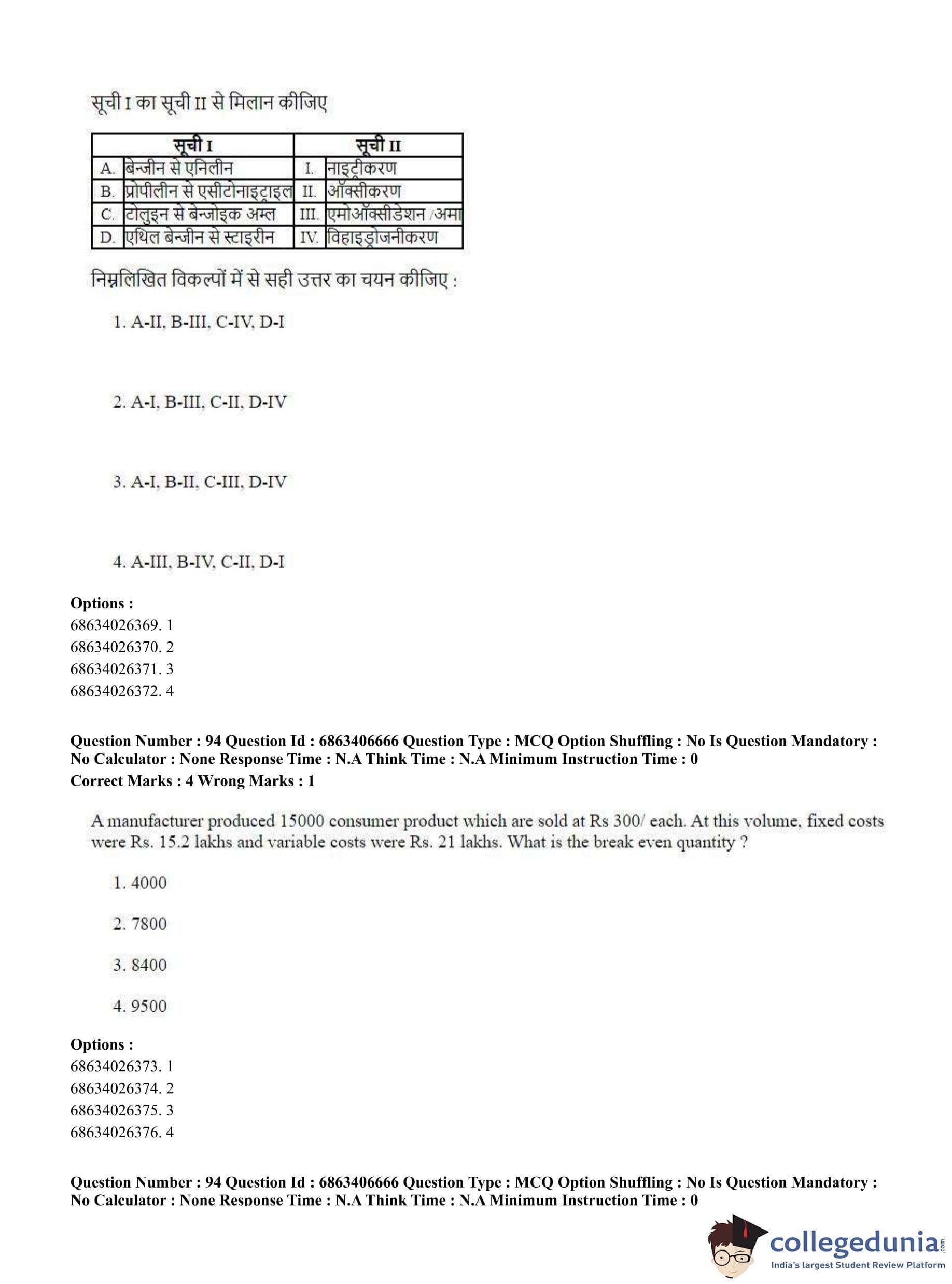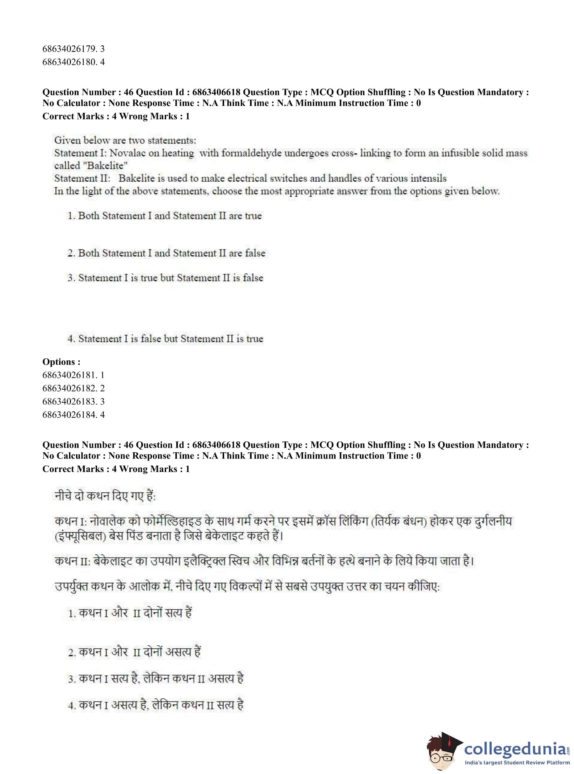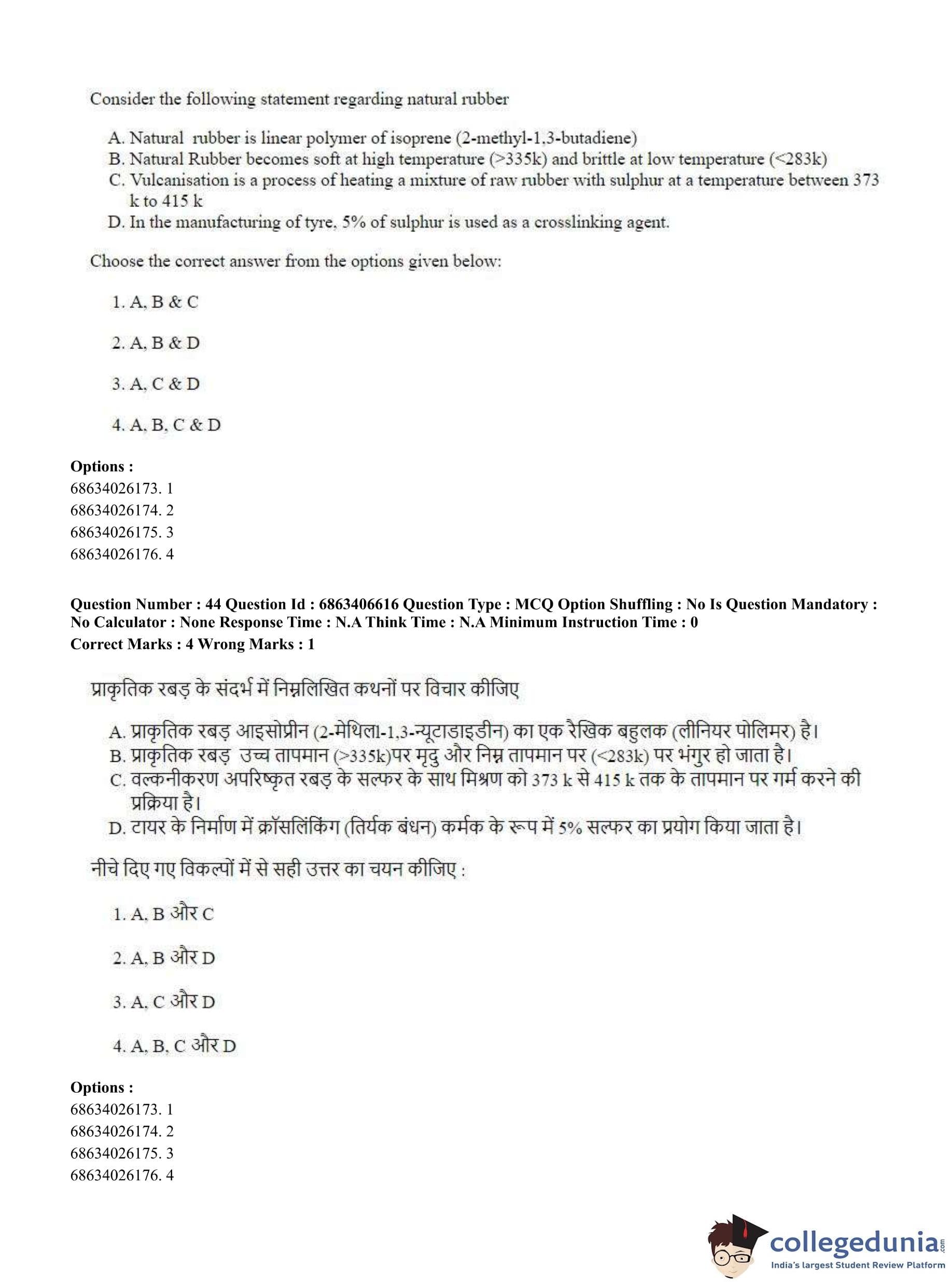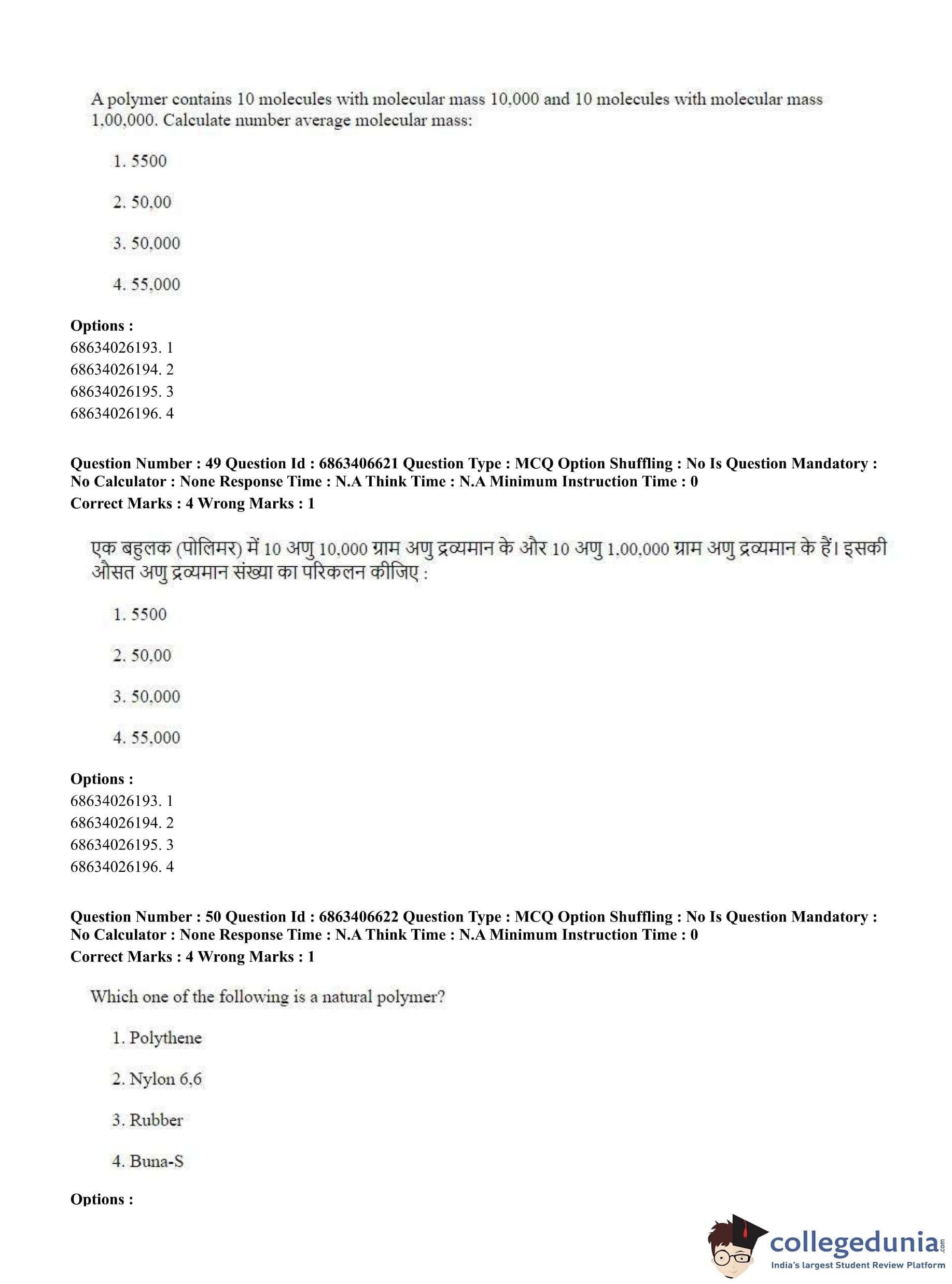 CUET PG 2023 Chemical Thermal and Polymer Engineering Question Paper with Answer Key PDF in English is available for download here. The exam was conducted by National Testing Agency (NTA) on June 7, 2023 in Shift 1. The question paper comprised a total of 100 questions divided into 2 sections.