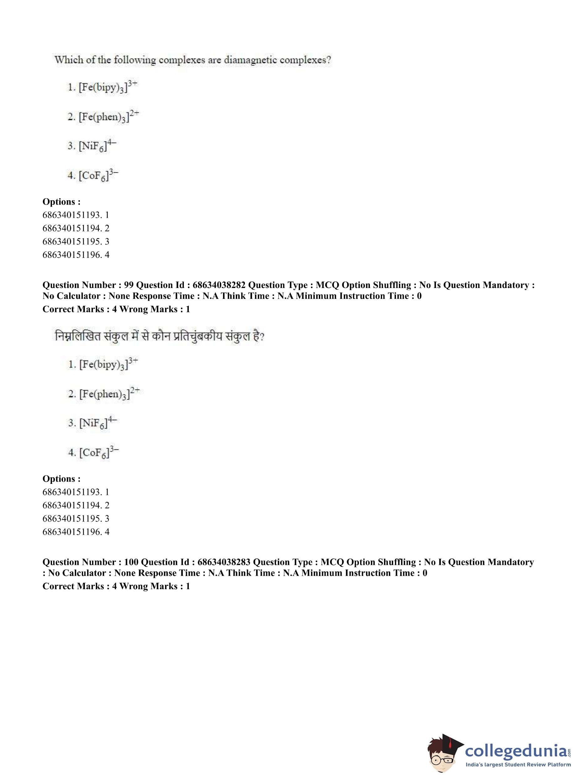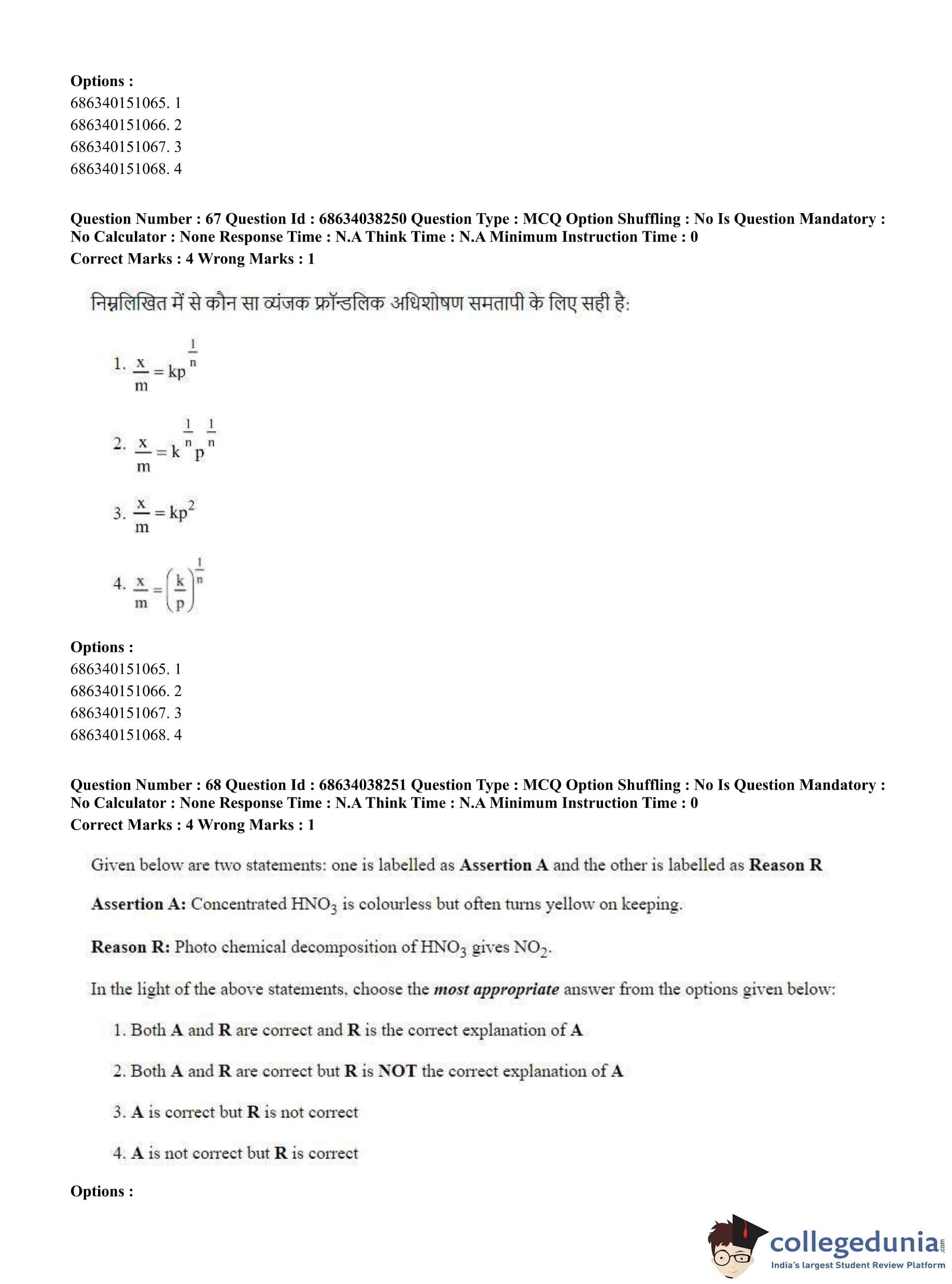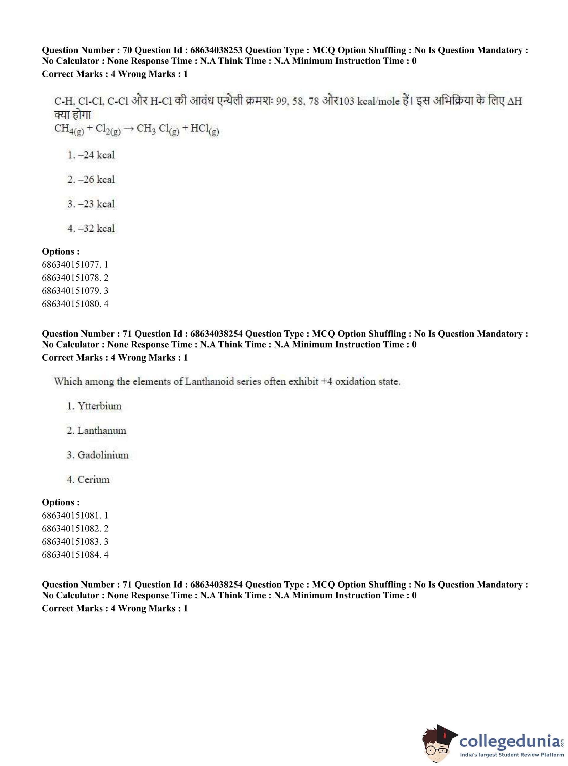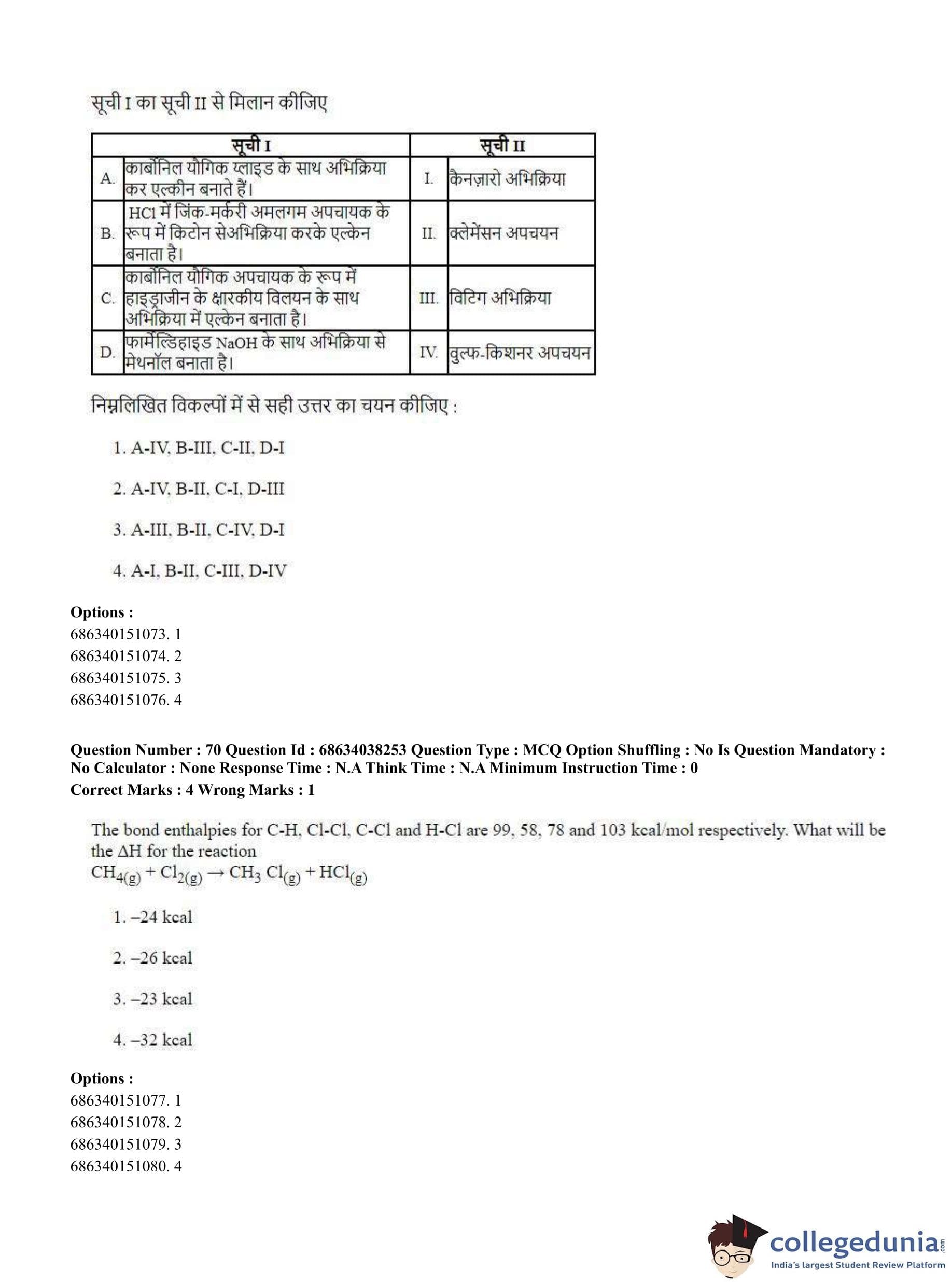 CUET PG 2023 Chemistry Question Paper in English (June 25 - Shift 2)
