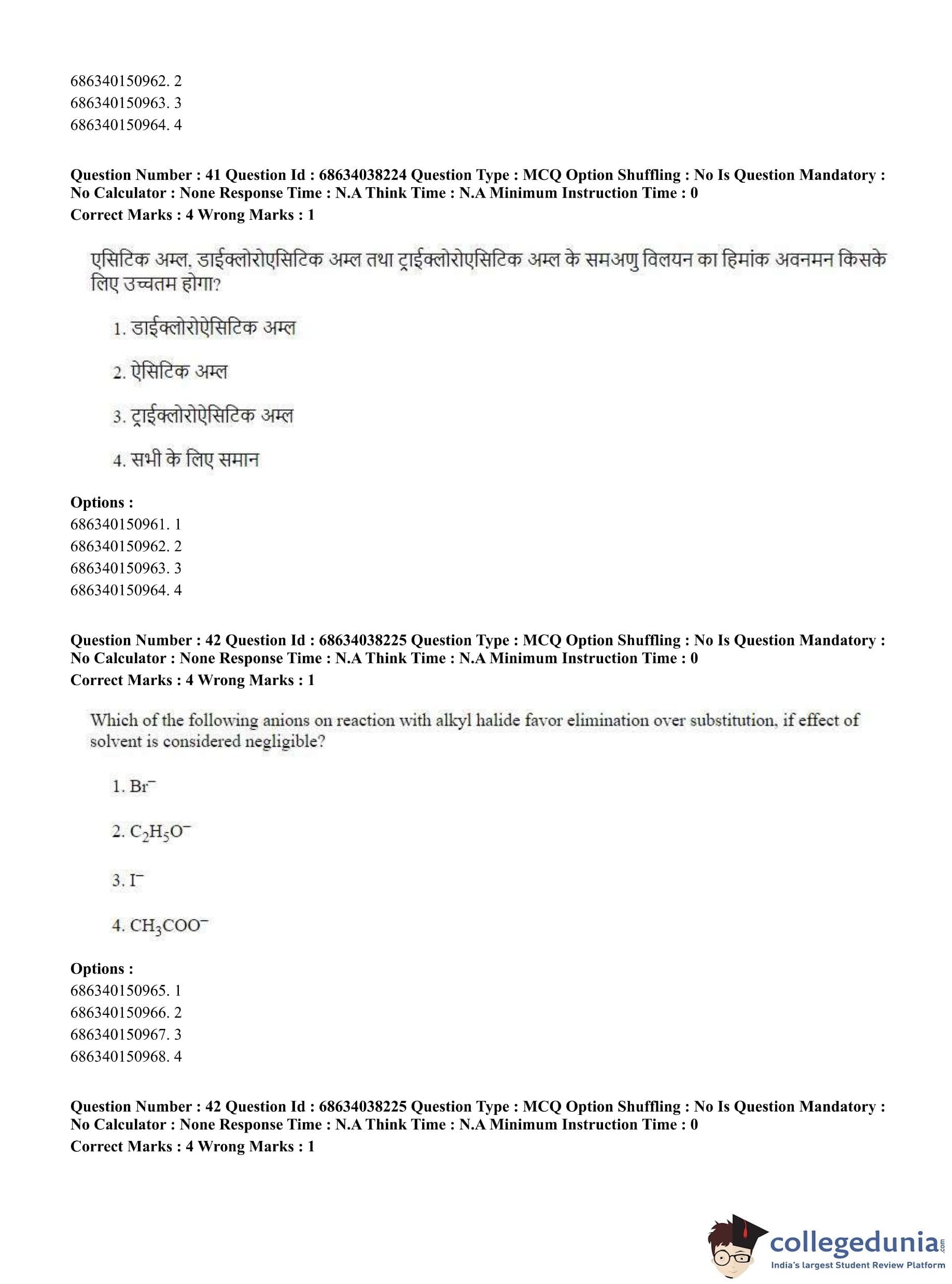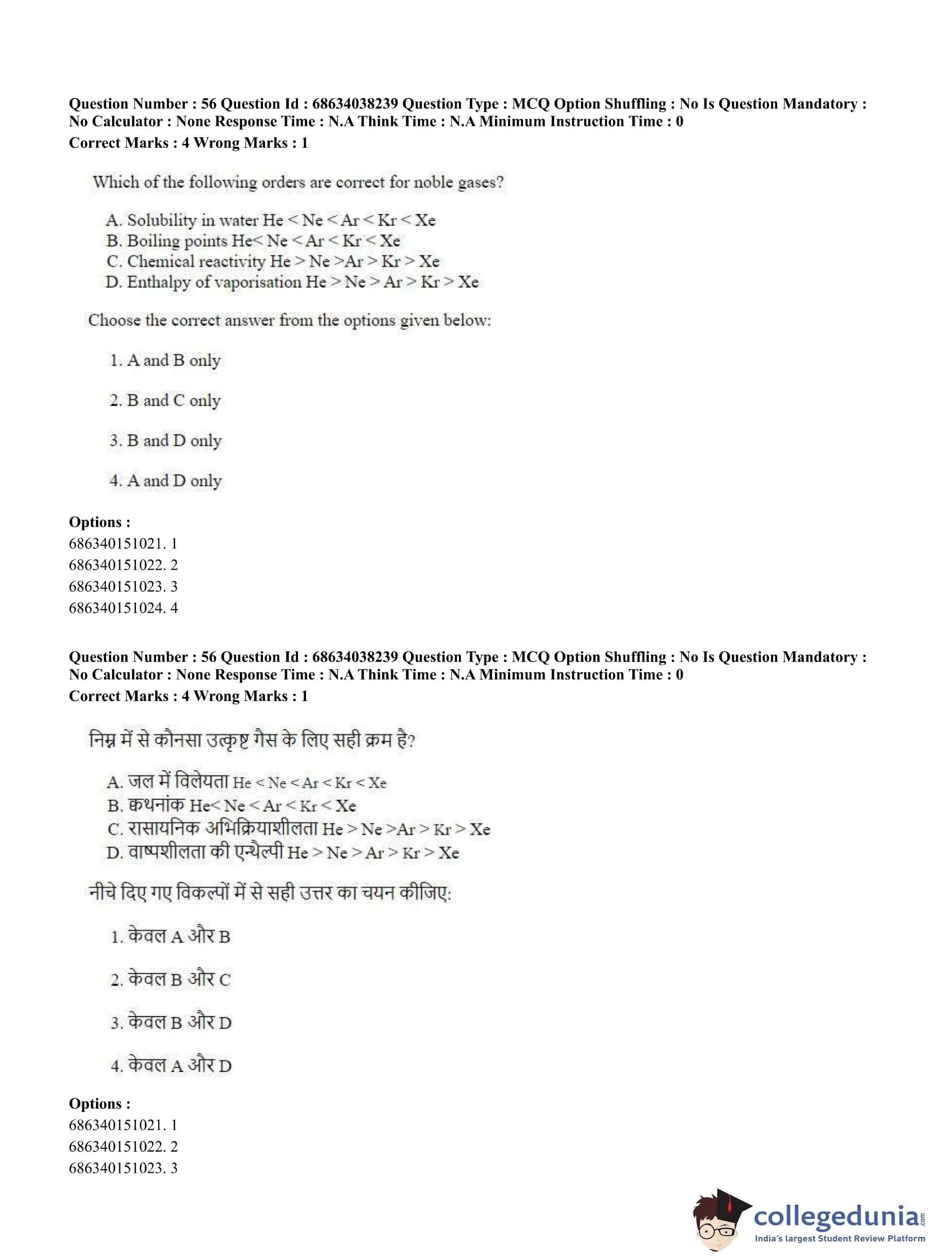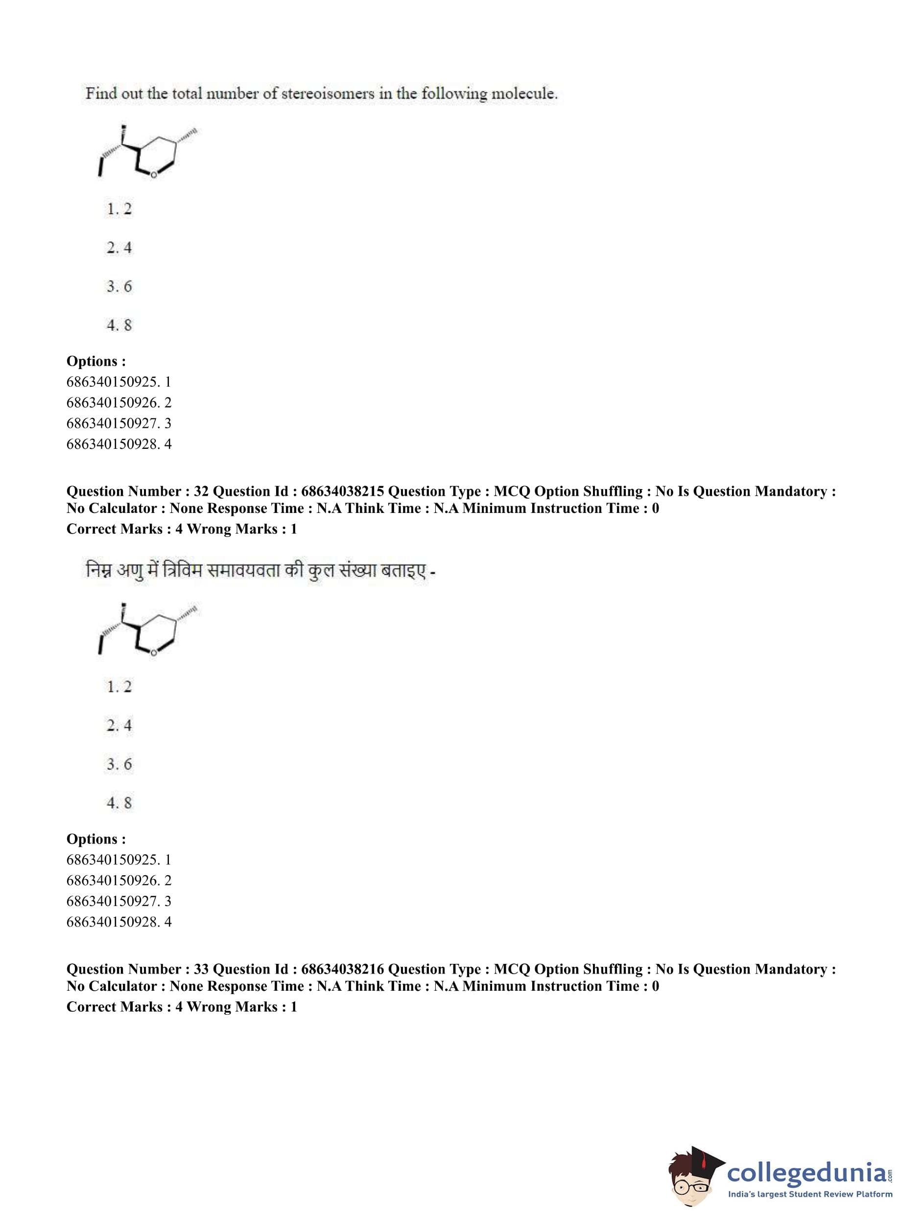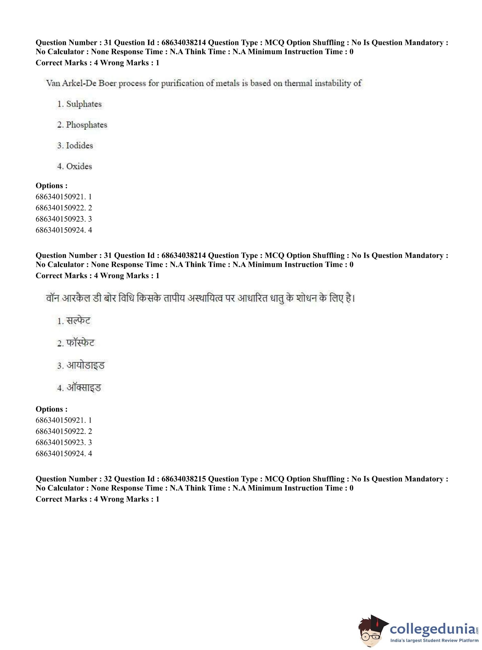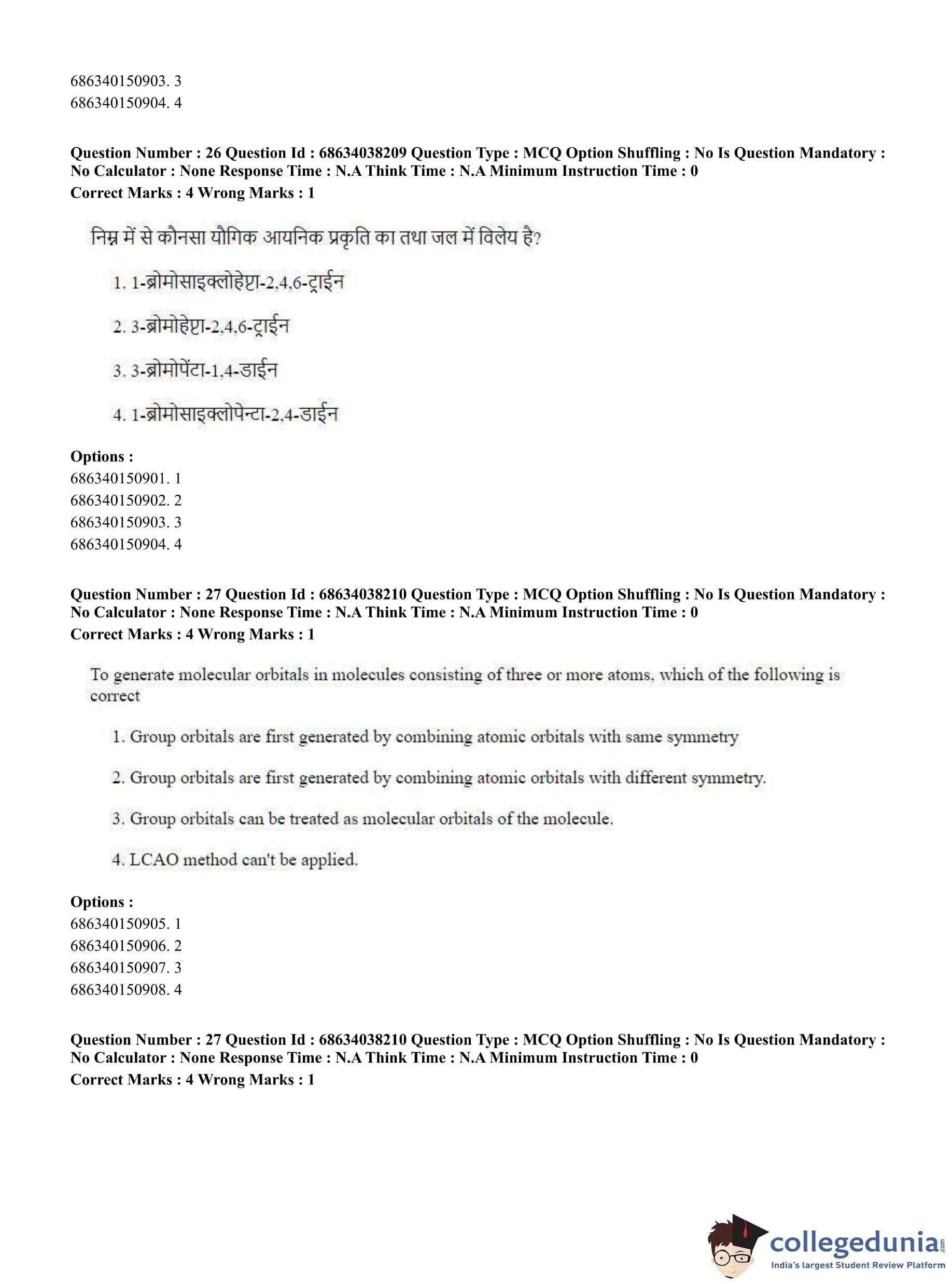 CUET PG 2023 Chemistry Question Paper in English (June 25 - Shift 2)
