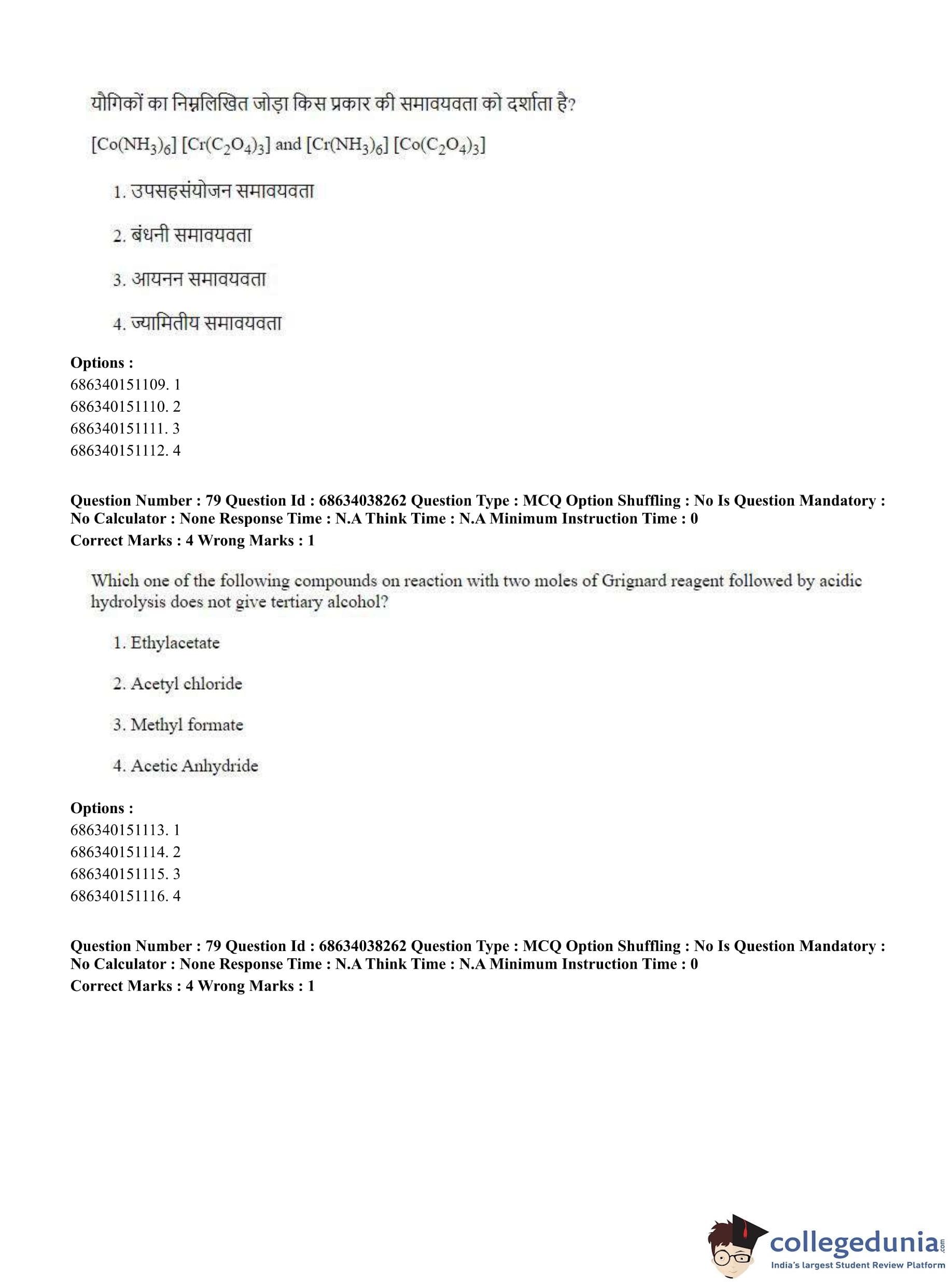 CUET PG 2023 Chemistry Question Paper with Answer Key PDF in English is available for download here. The exam was conducted by National Testing Agency (NTA) on June 25, 2023 in Shift 2. The question paper comprised a total of 100 questions divided into 2 sections.