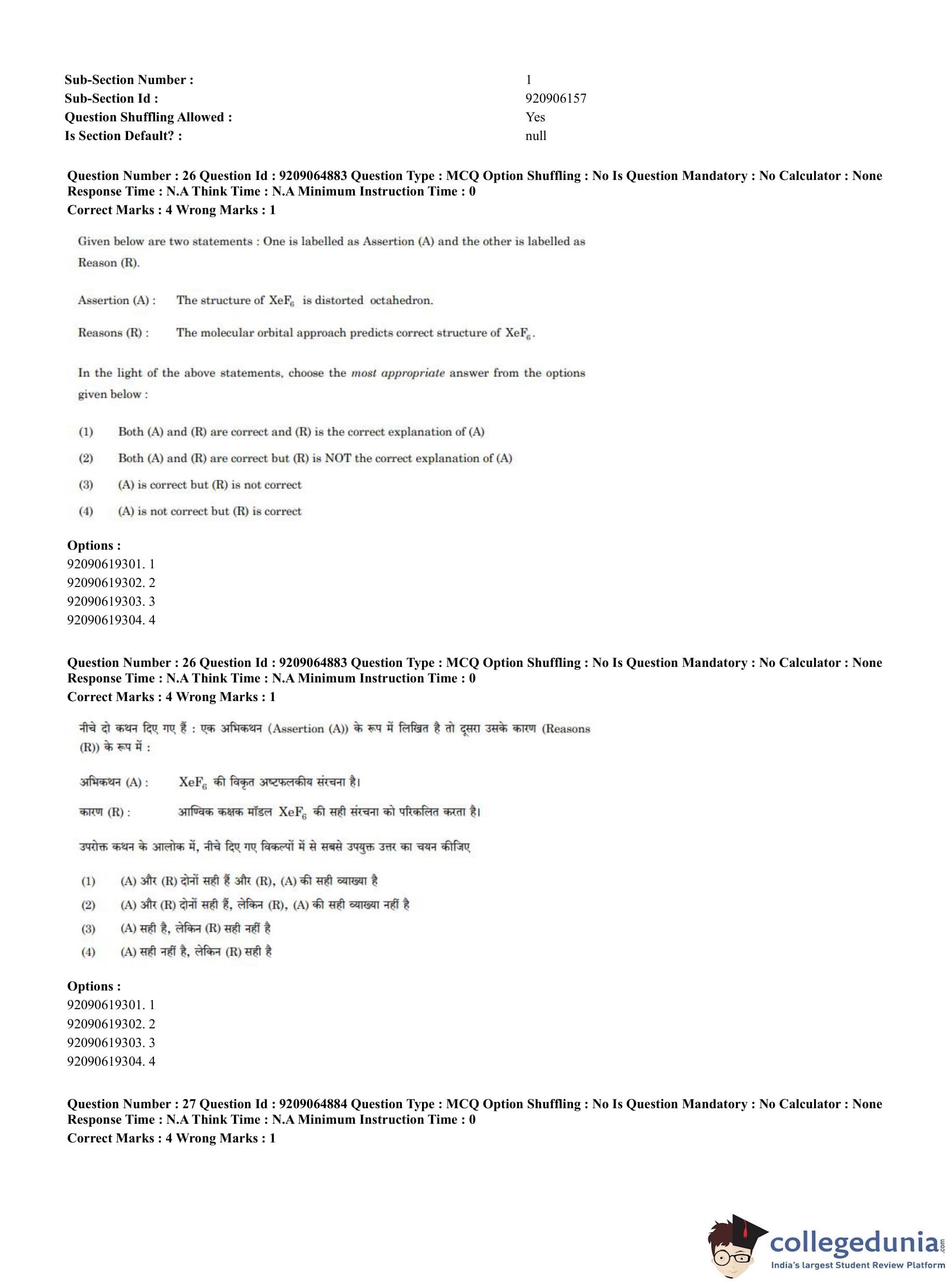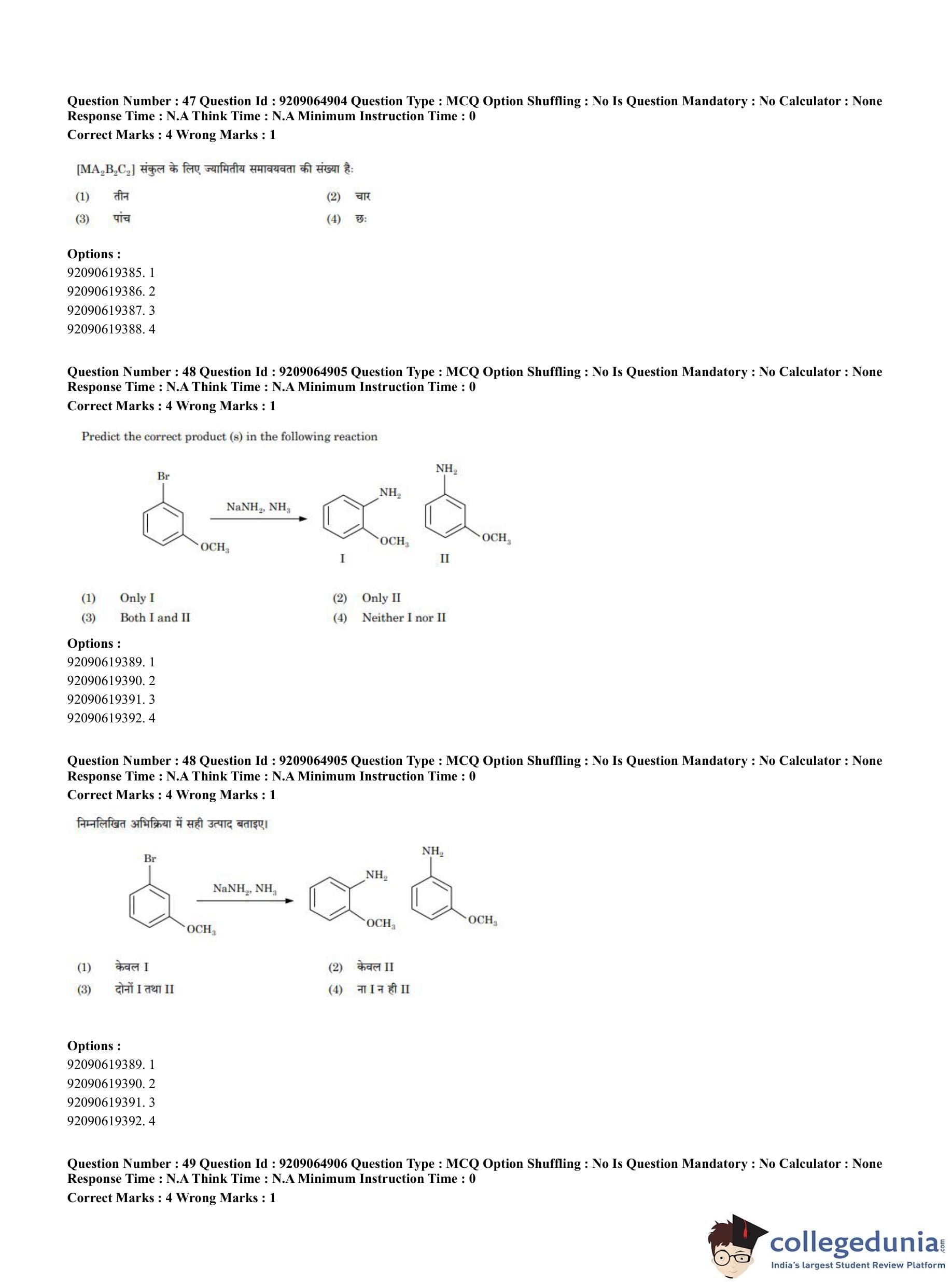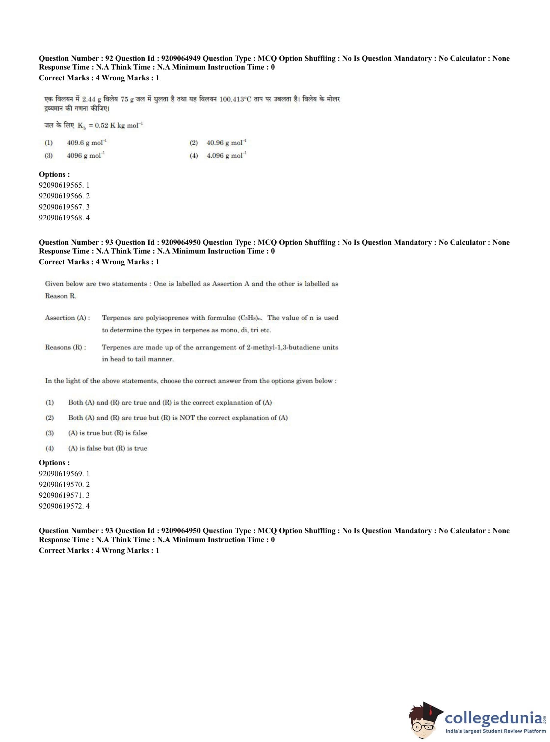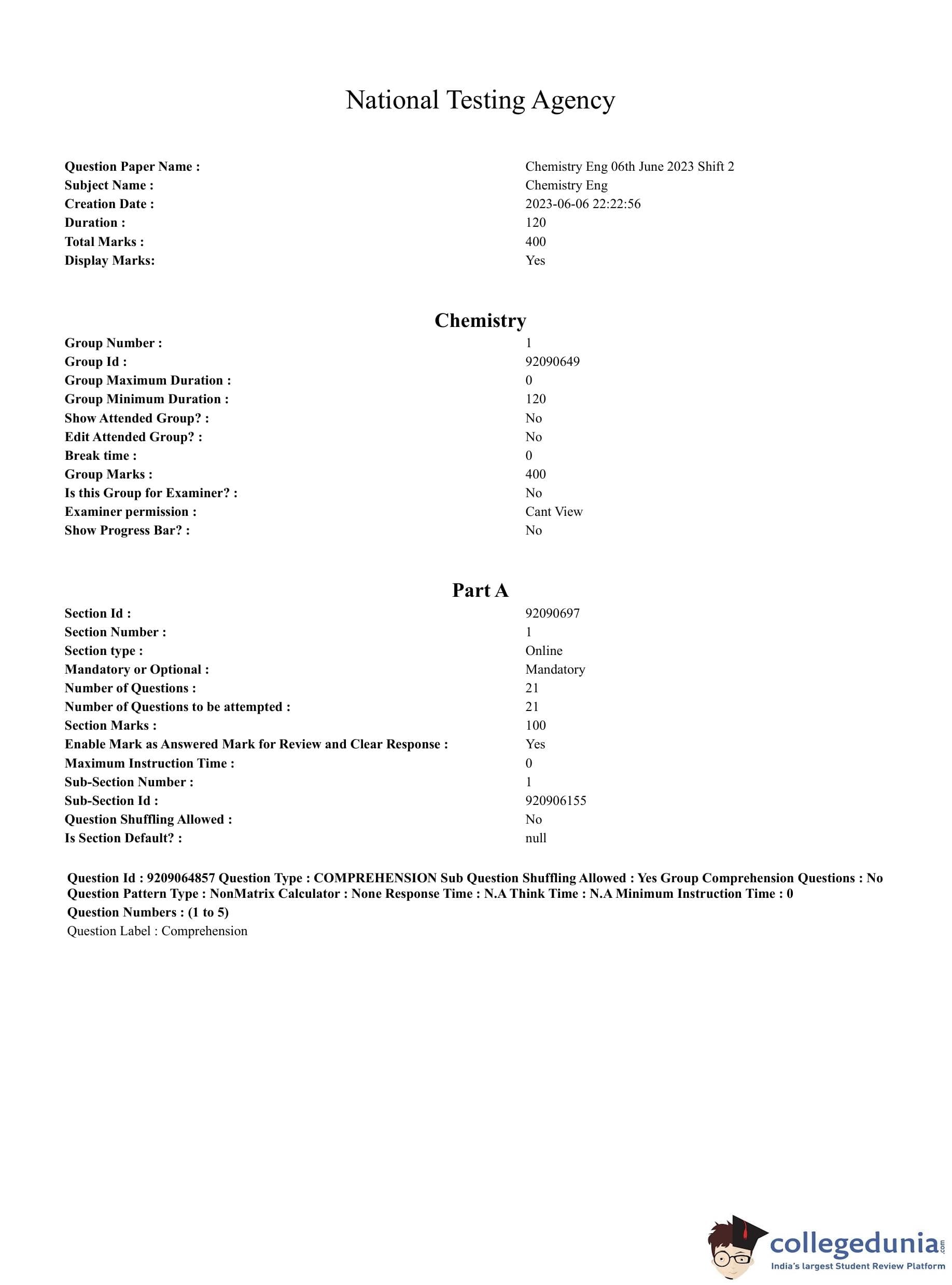 CUET PG 2023 Chemistry Question Paper in English (June 6 - Shift 2)