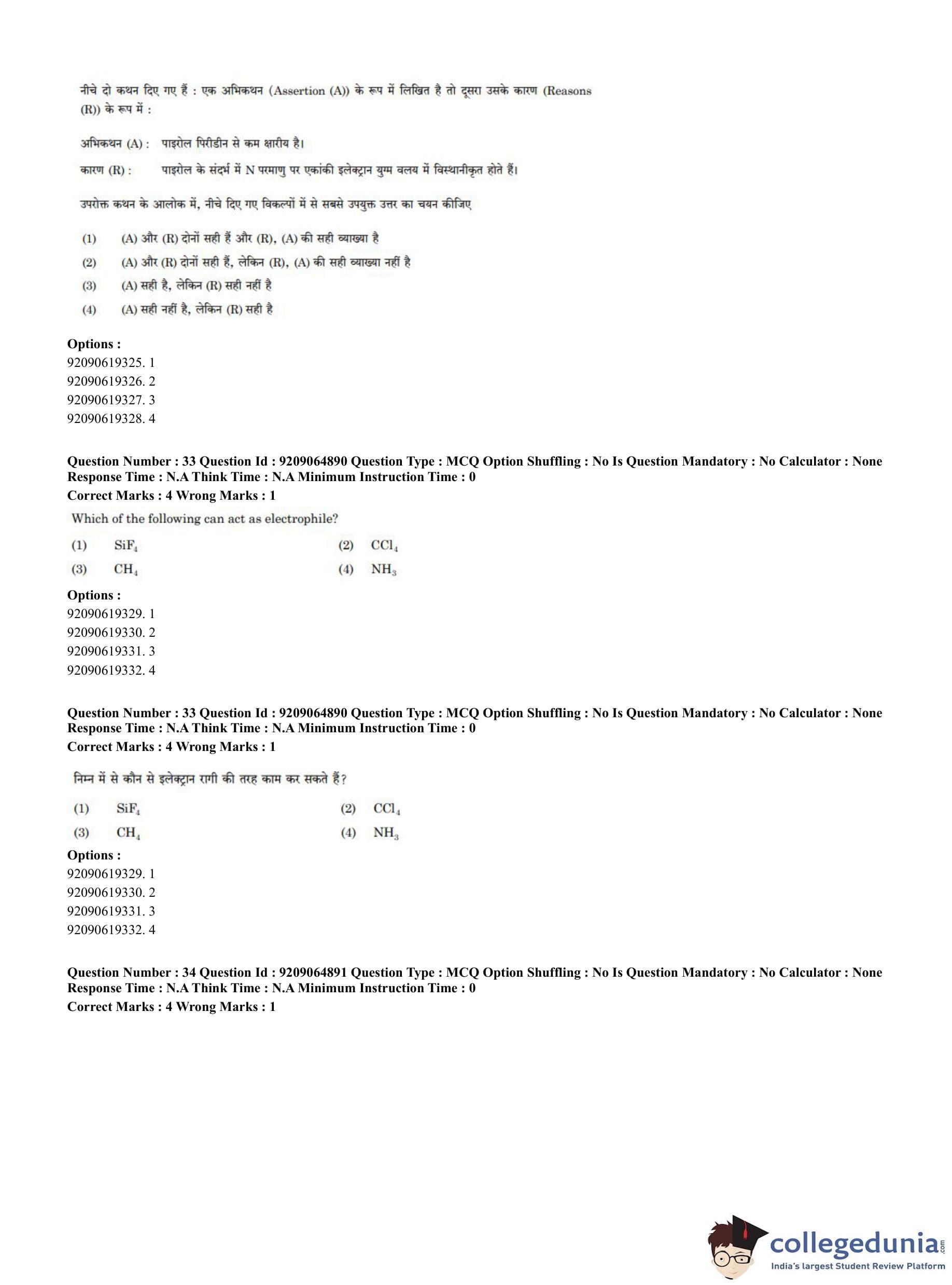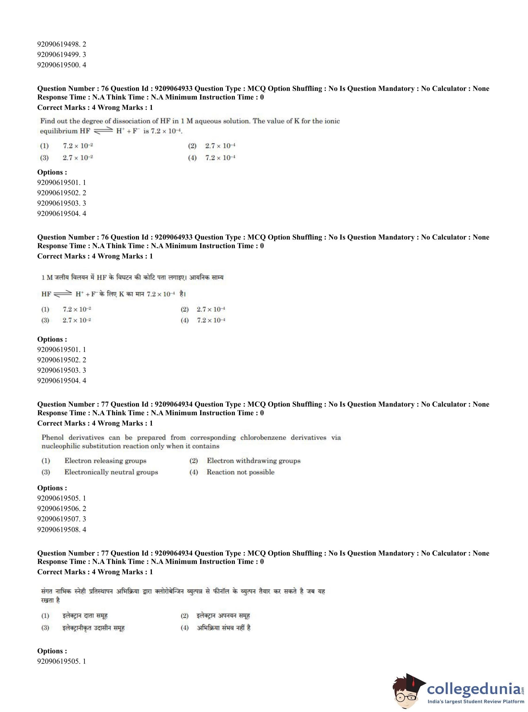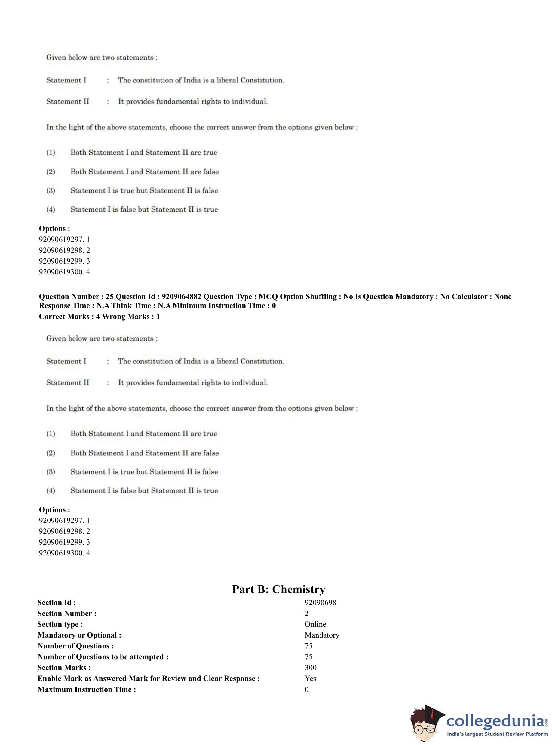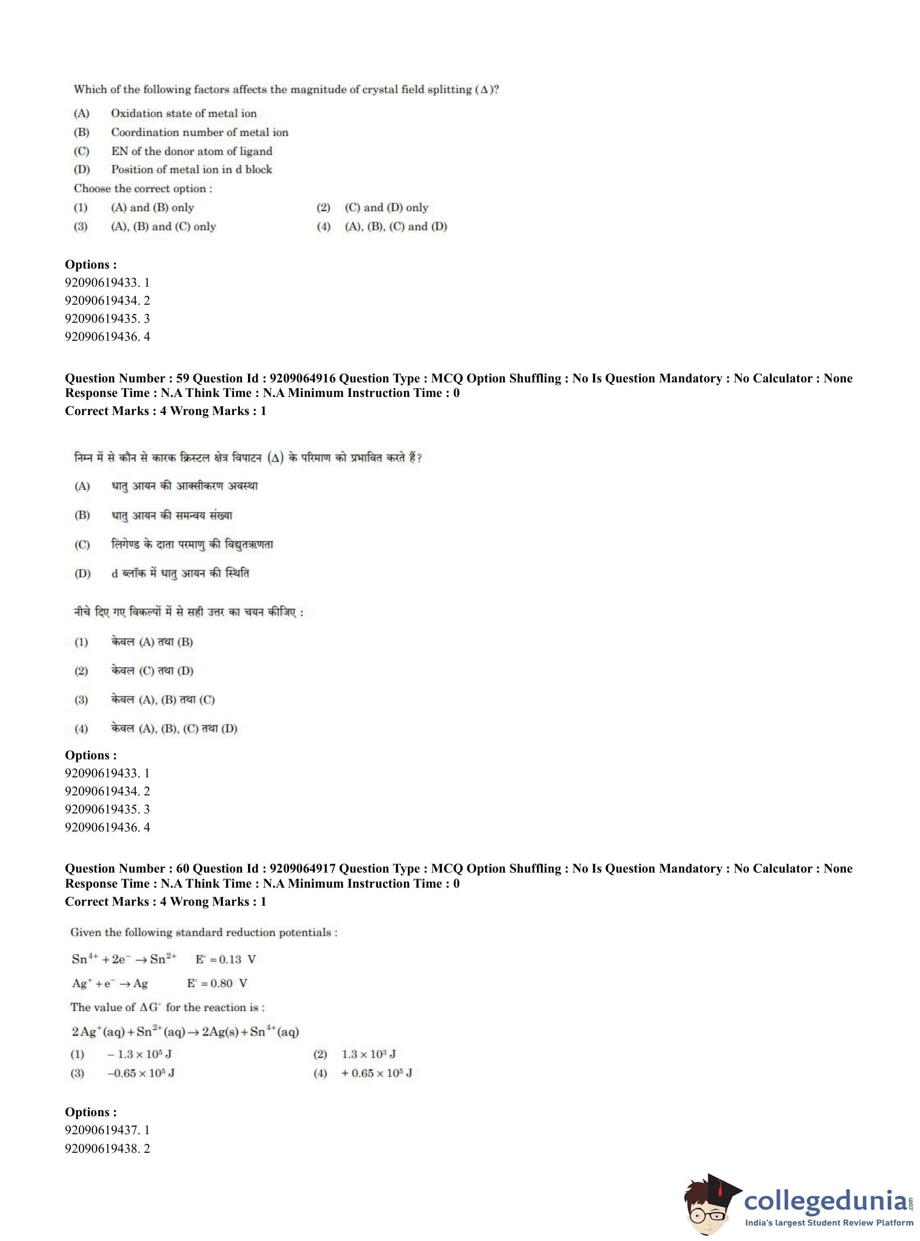 CUET PG 2023 Chemistry Question Paper in English (June 6 - Shift 2)