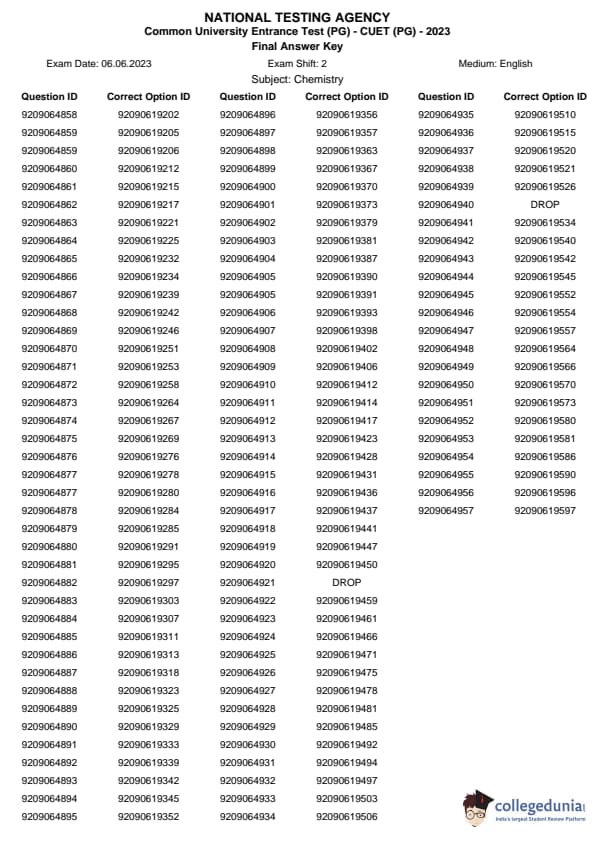 | CUET PG Chemistry Question Paper 2023 PDF | CUET PG Chemistry Answer Key 2023 PDF |