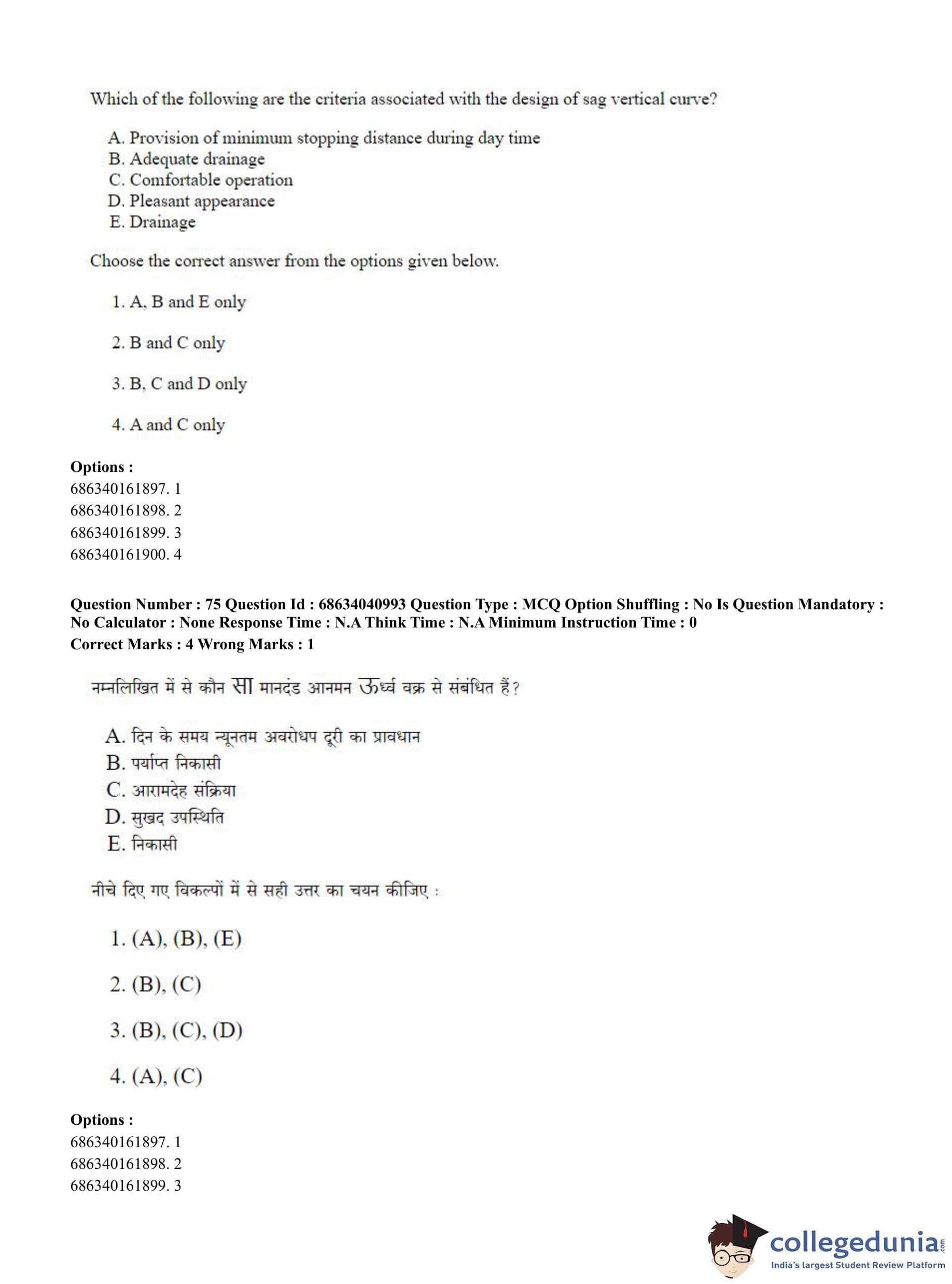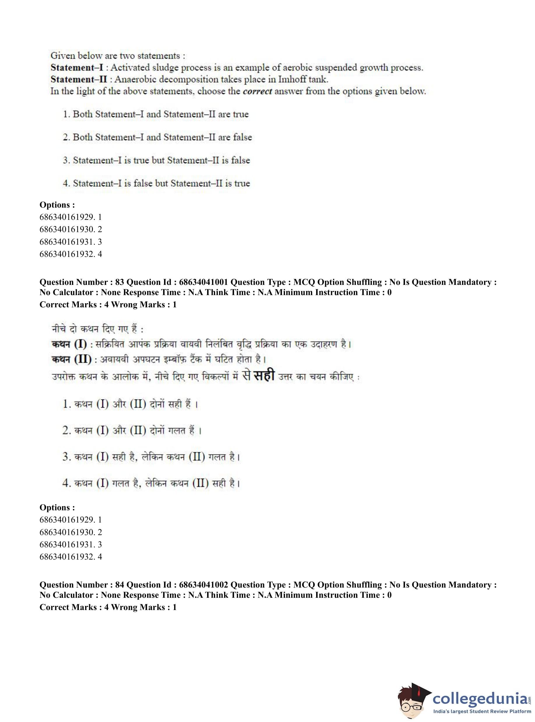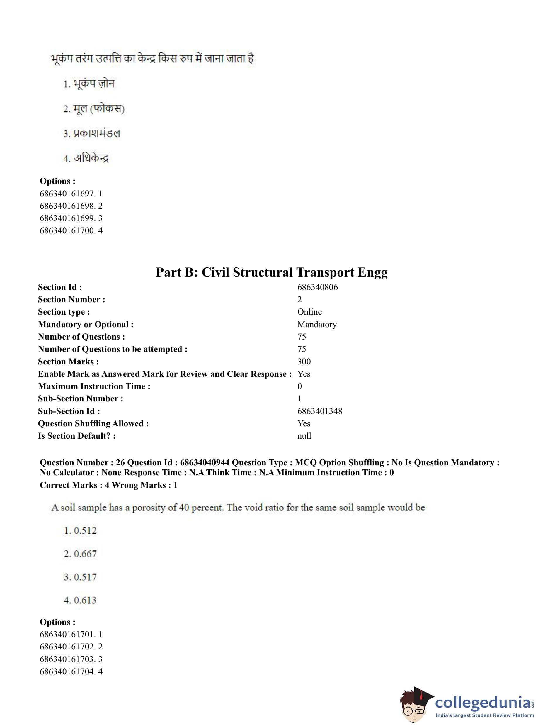 CUET PG 2023 Civil, Structural and Transport Engg Question Paper with Answer Key PDF in Hindi is available for download here. The exam was conducted by National Testing Agency (NTA) on June 30, 2023 in Shift 3. The question paper comprised a total of 100 questions divided into 2 sections.