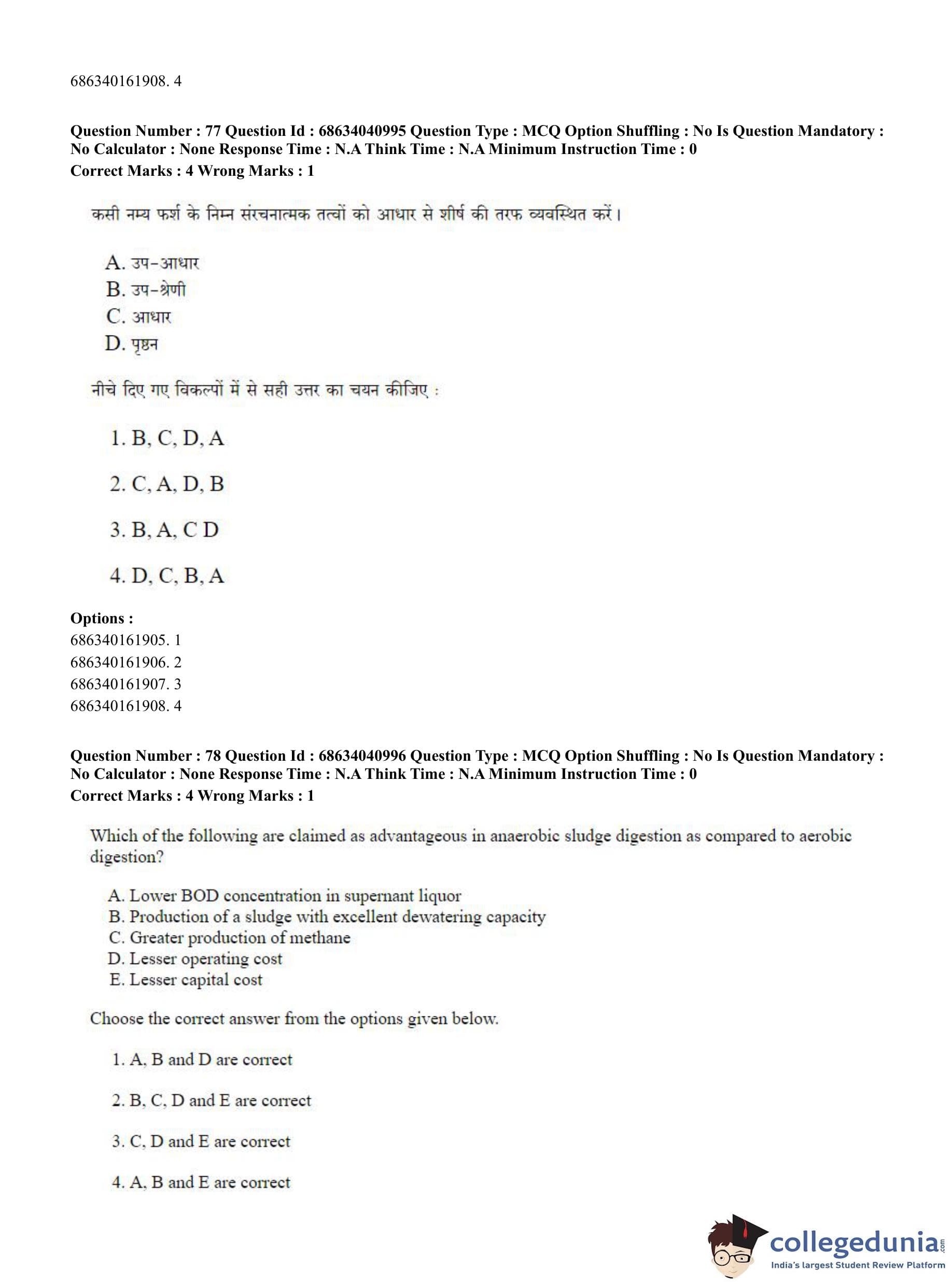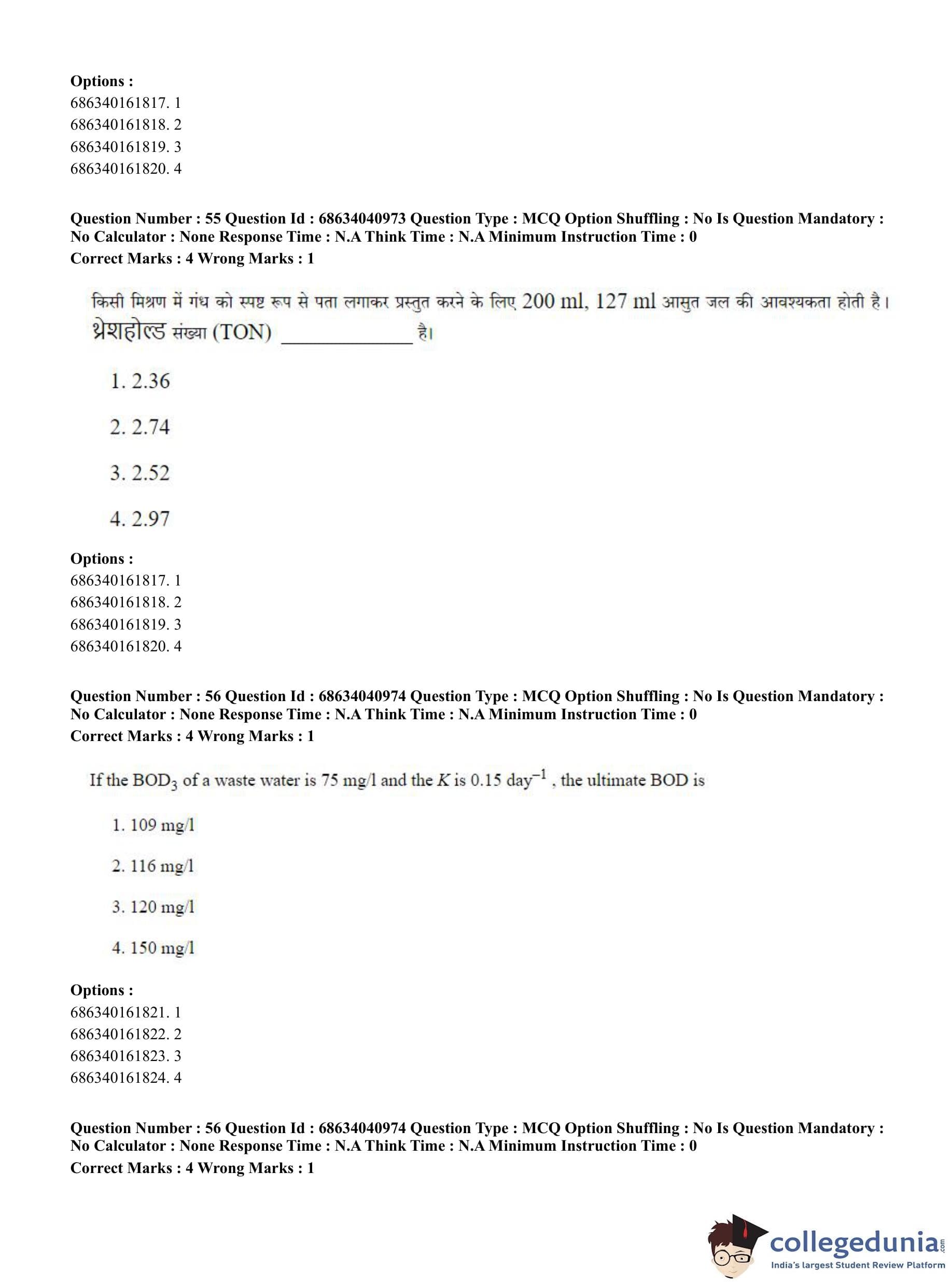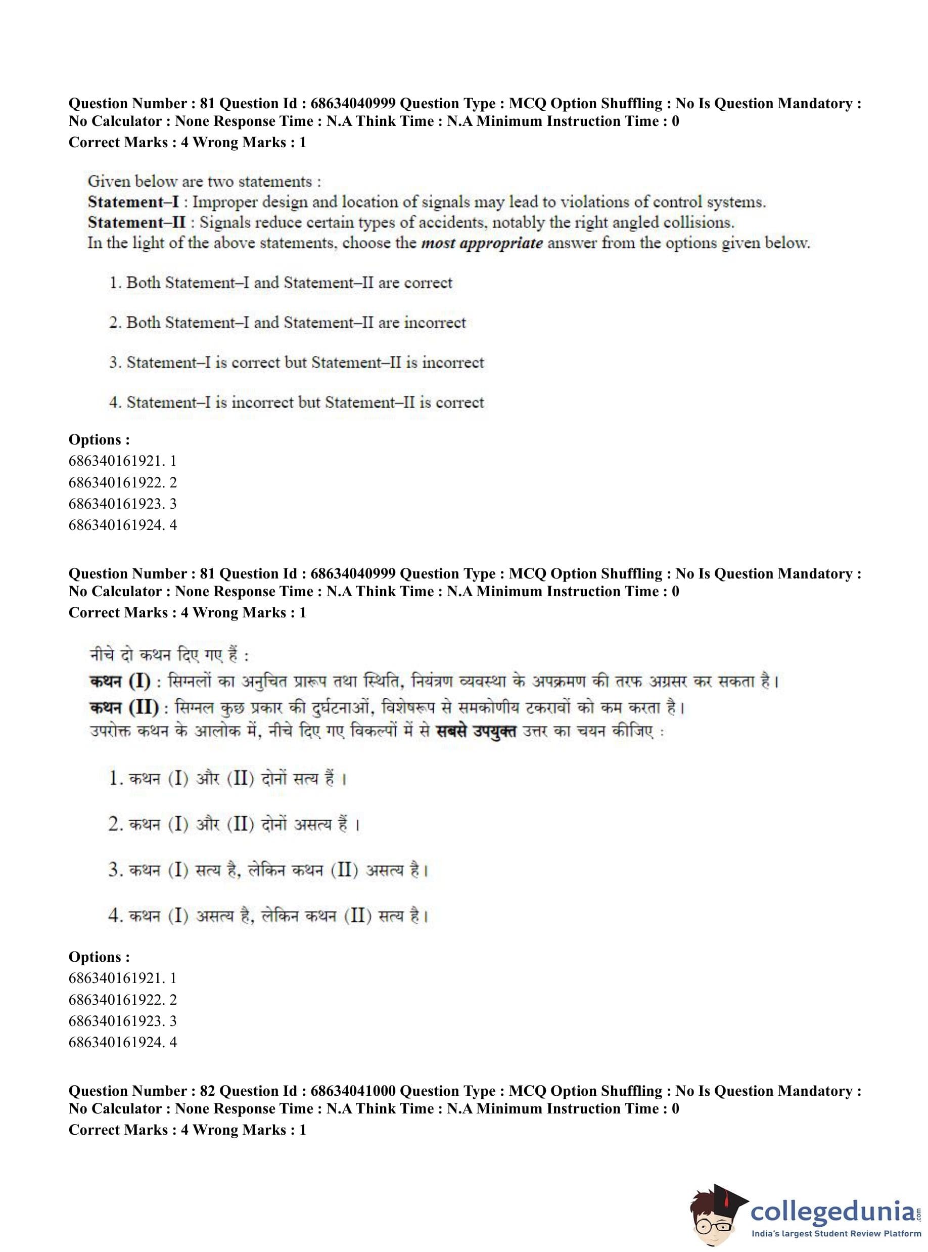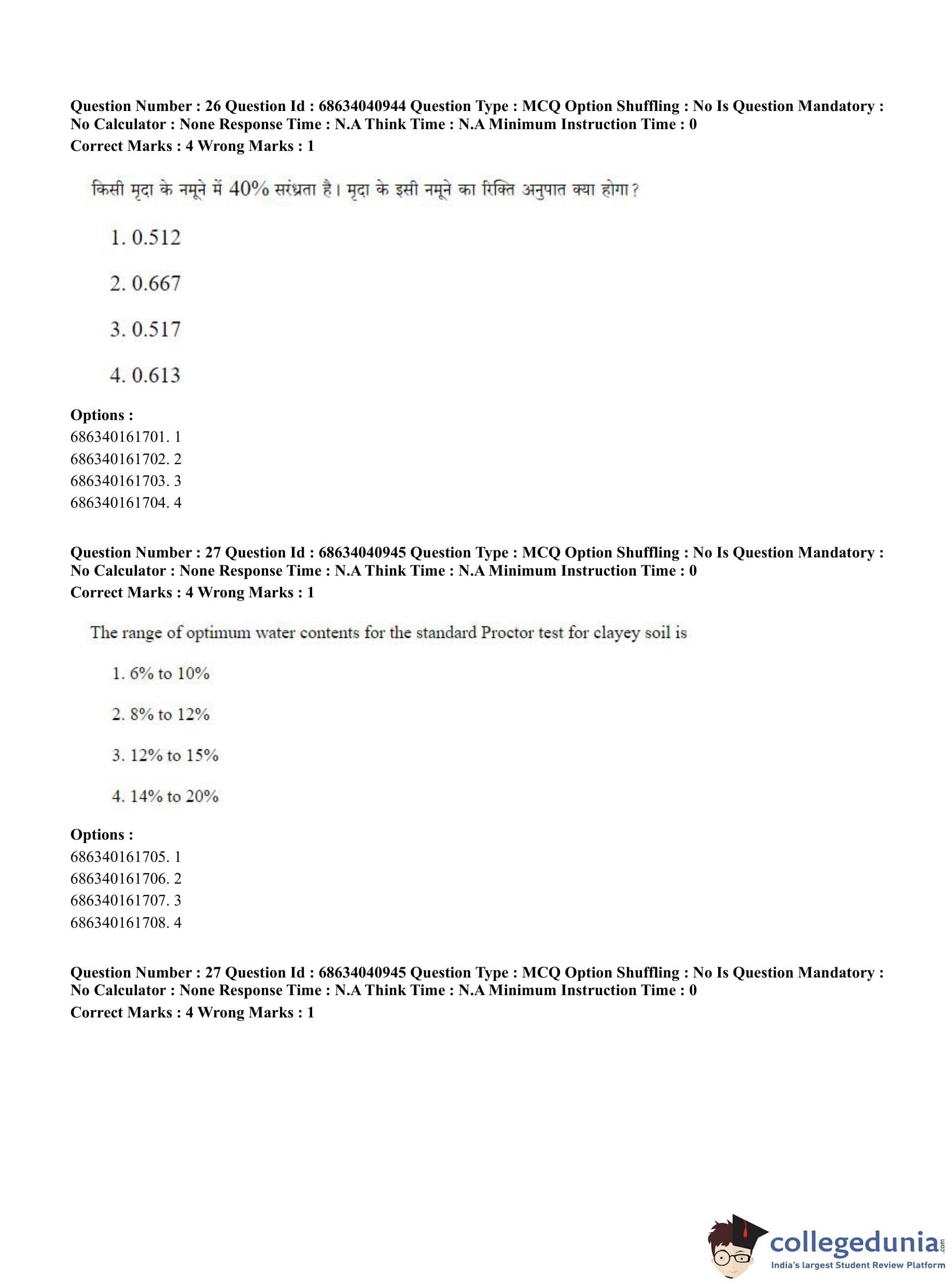 CUET PG 2023 Civil, Structural and Transport Engg Question Paper with Answer Key PDF in Hindi is available for download here. The exam was conducted by National Testing Agency (NTA) on June 30, 2023 in Shift 3. The question paper comprised a total of 100 questions divided into 2 sections.