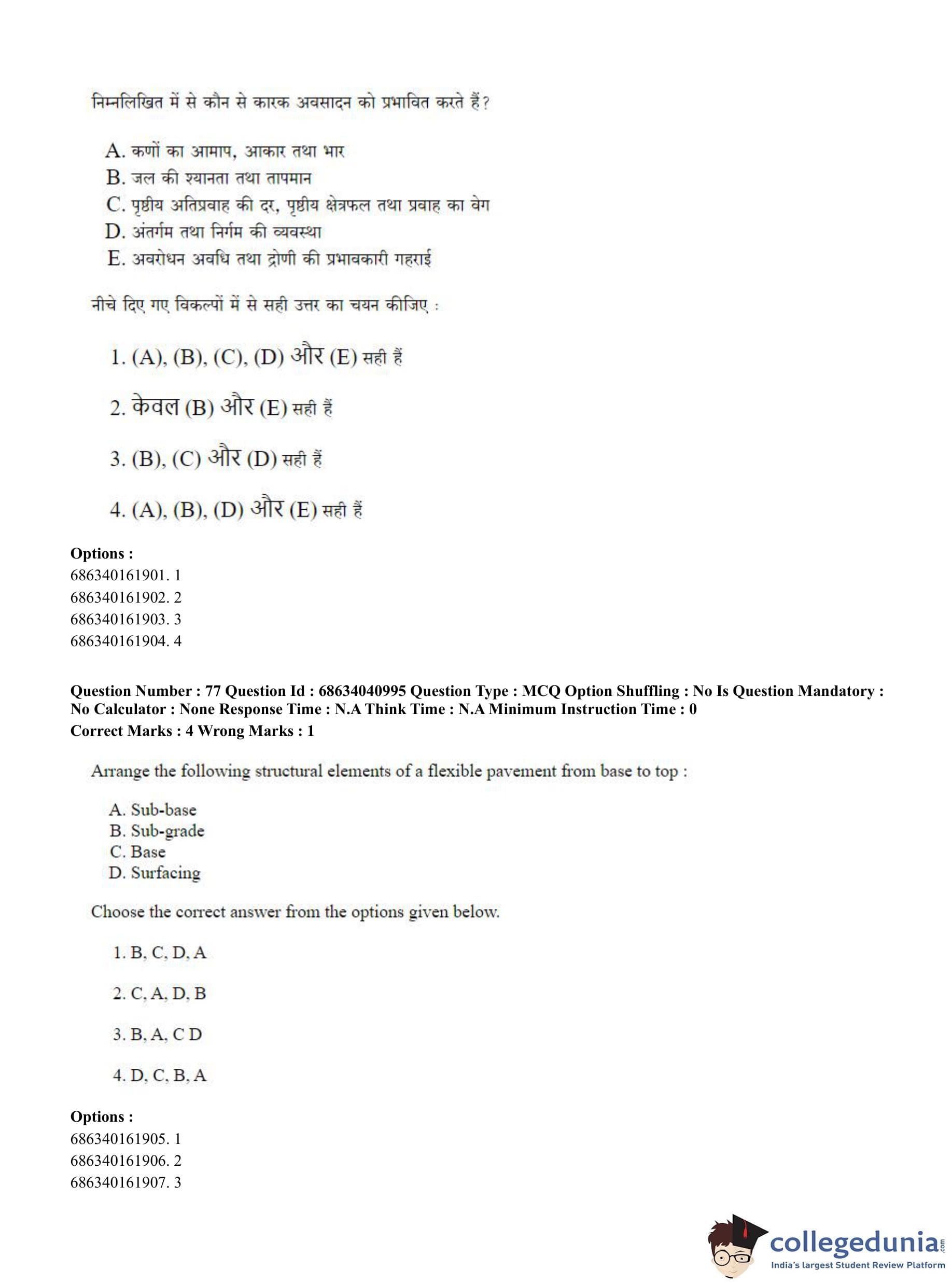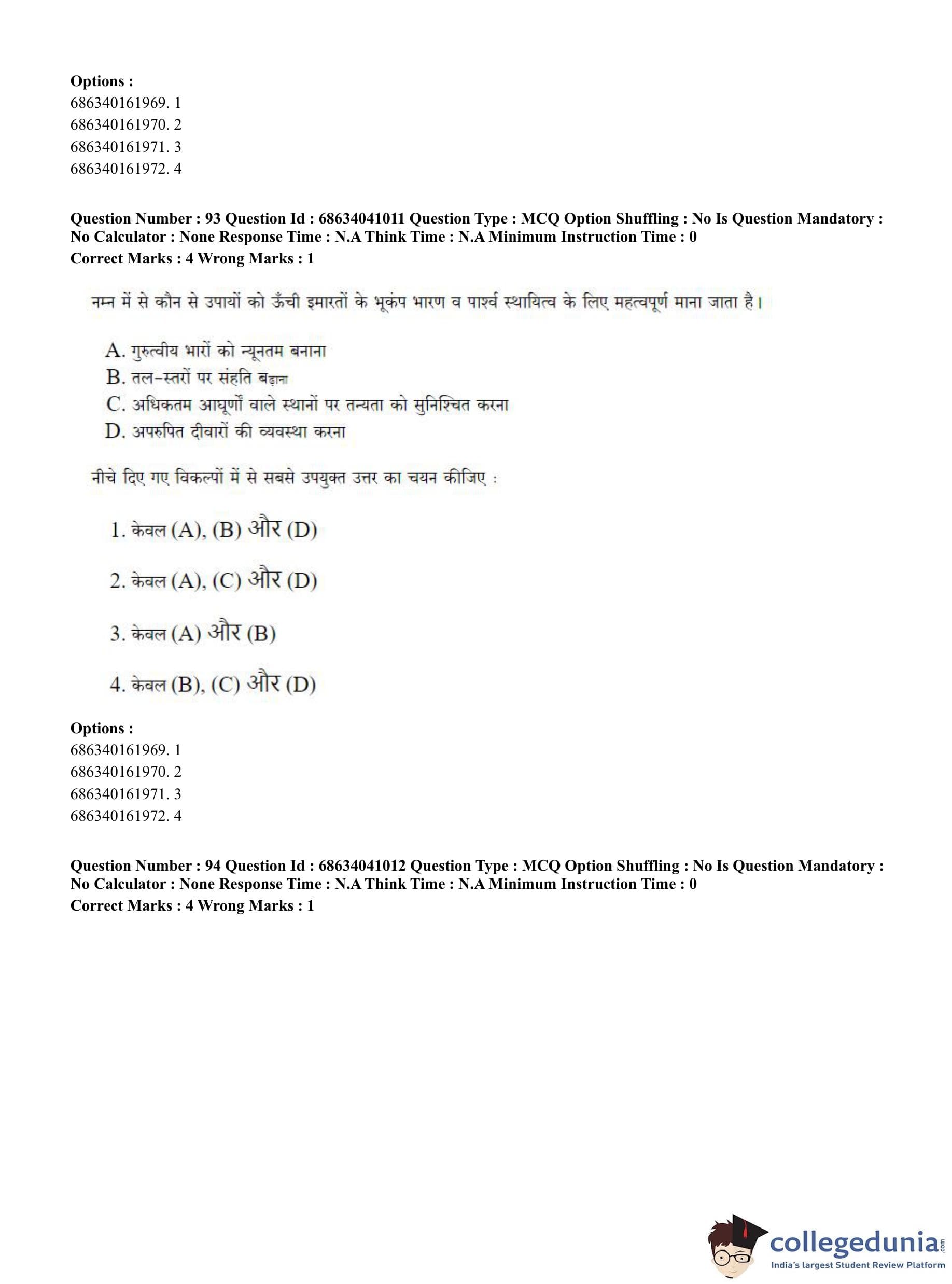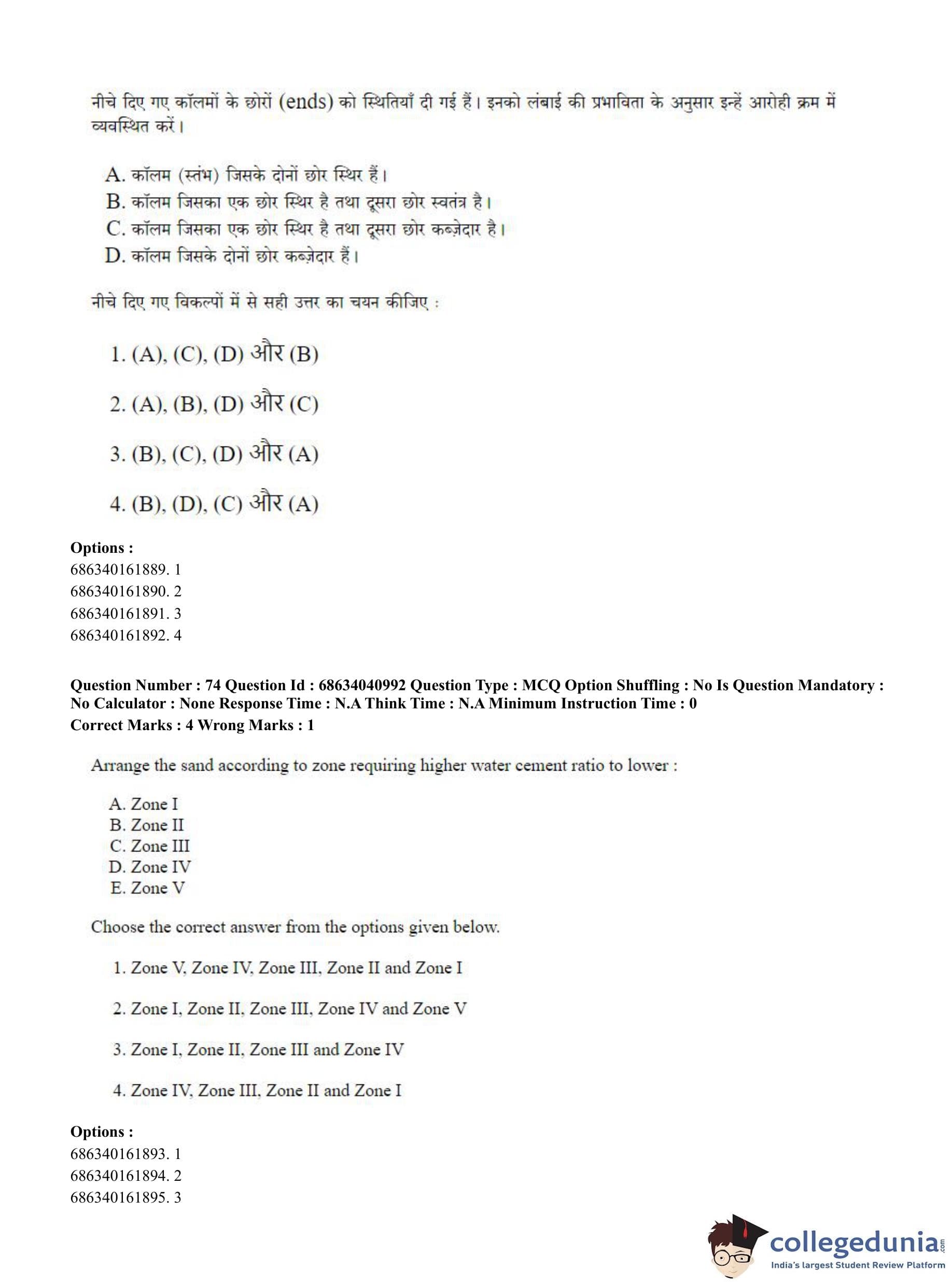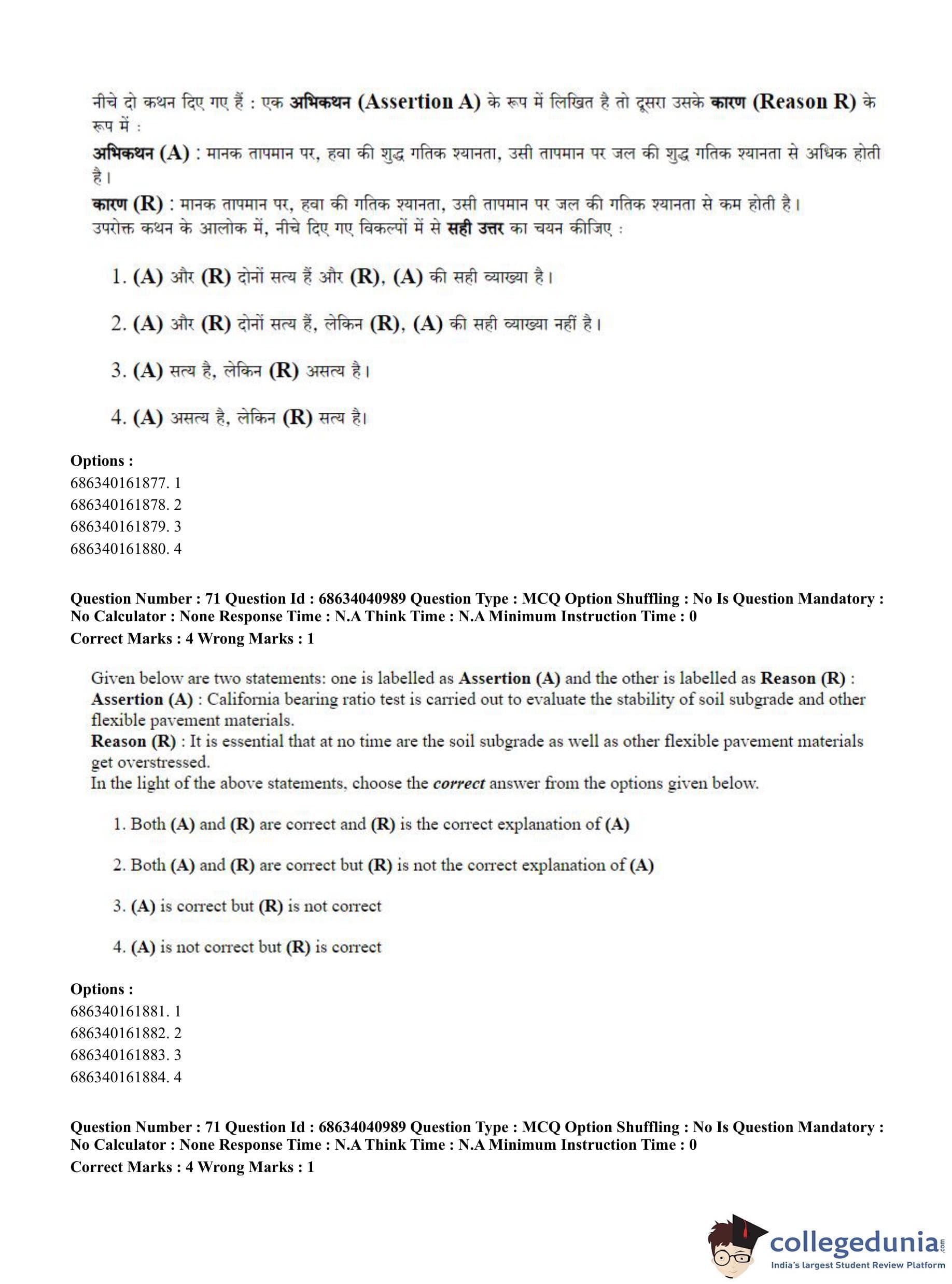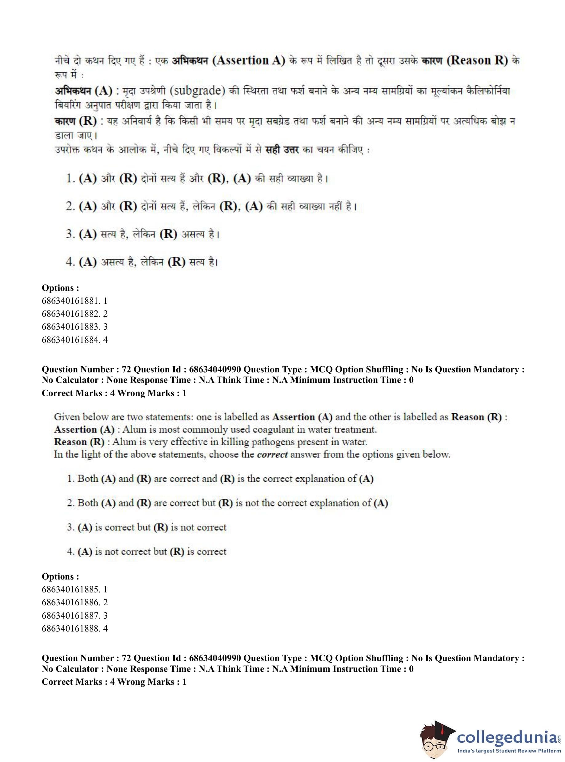 CUET PG 2023 Civil, Structural and Transport Engg Question Paper in Hindi (June 30 - Shift 3)