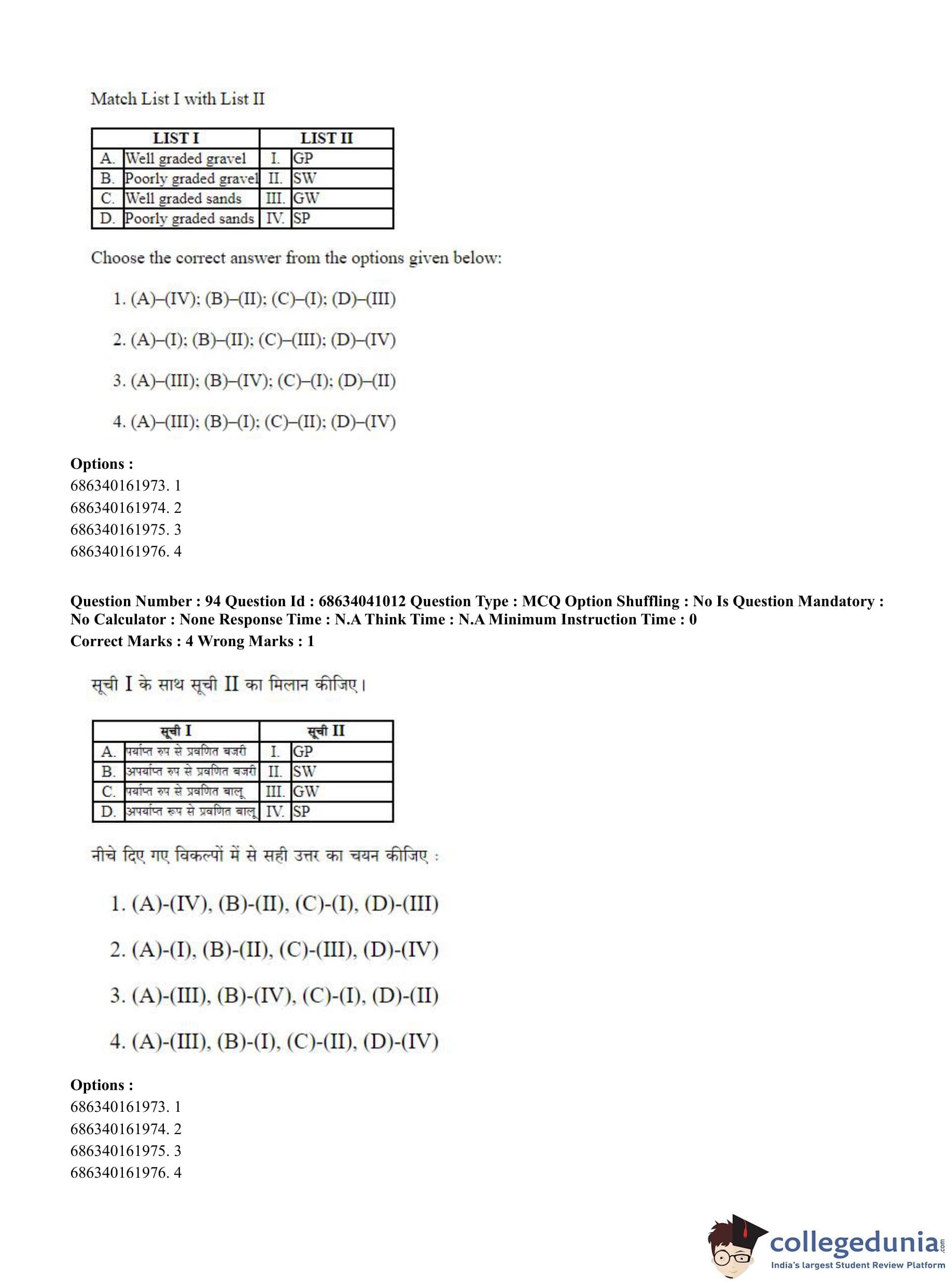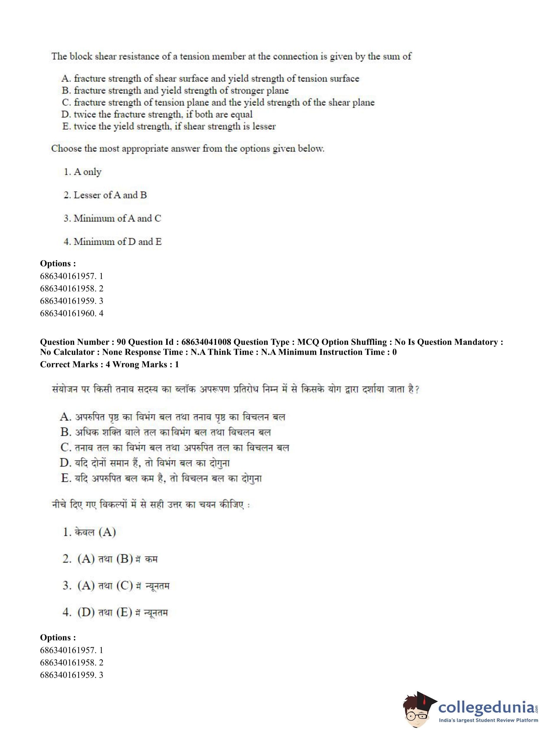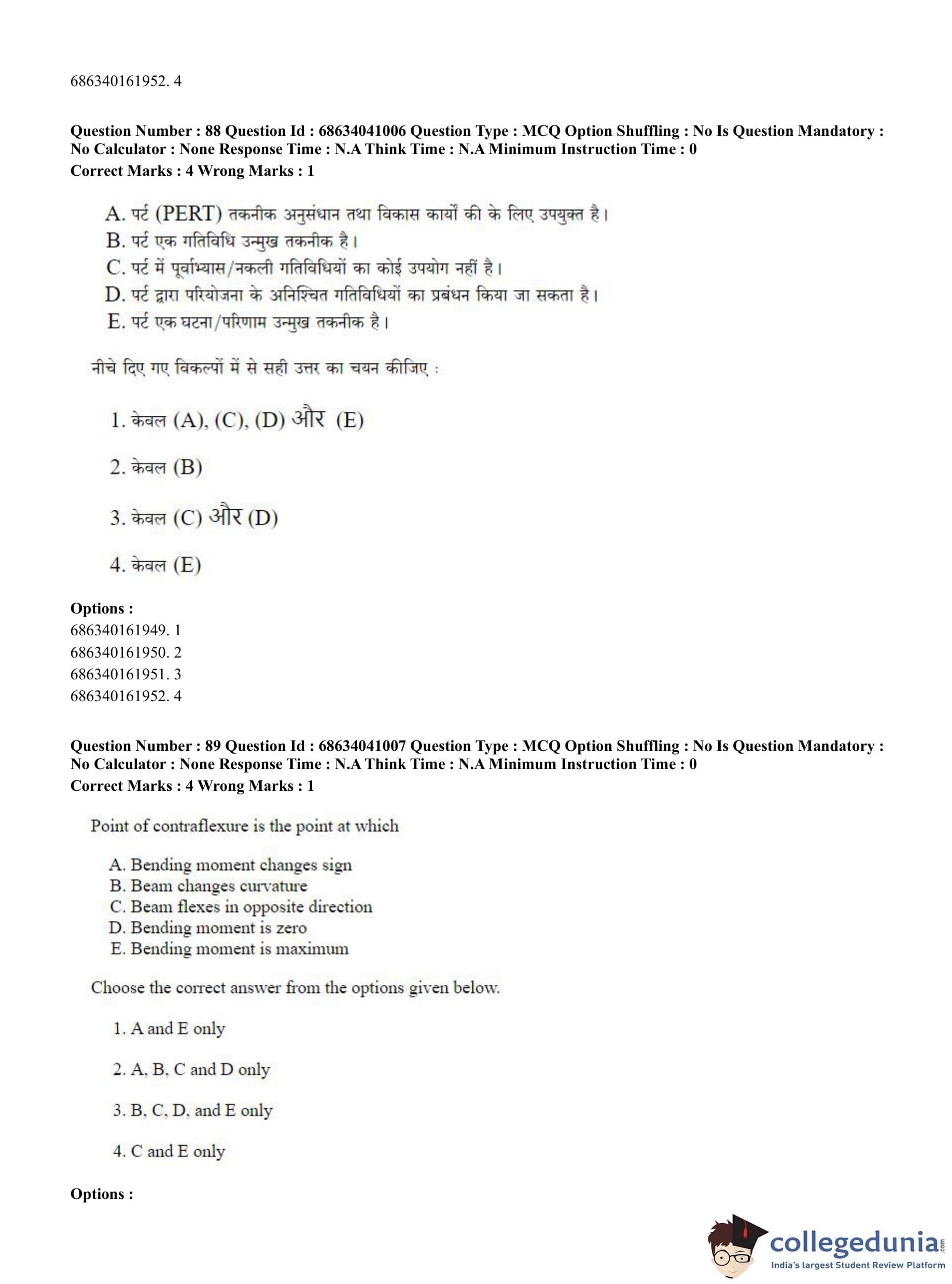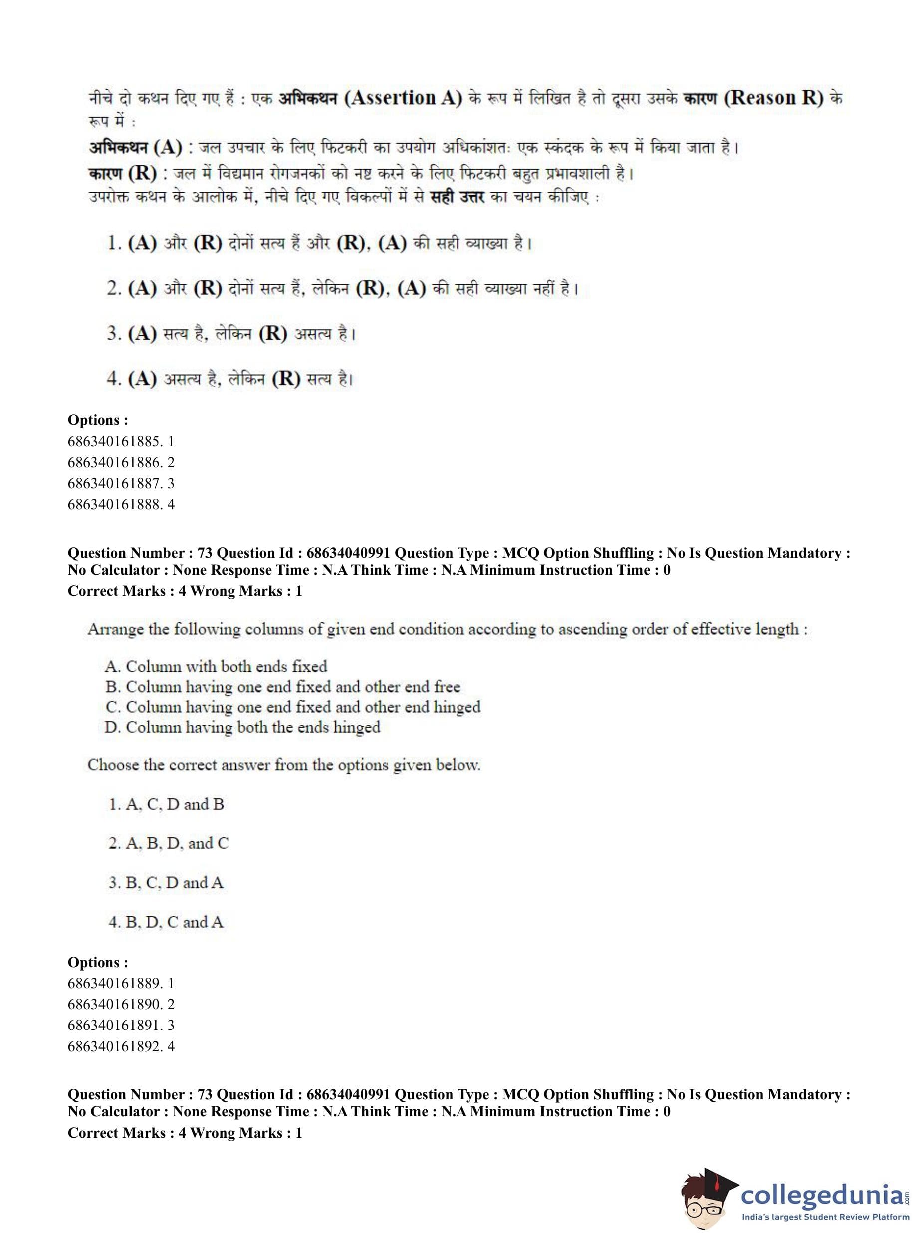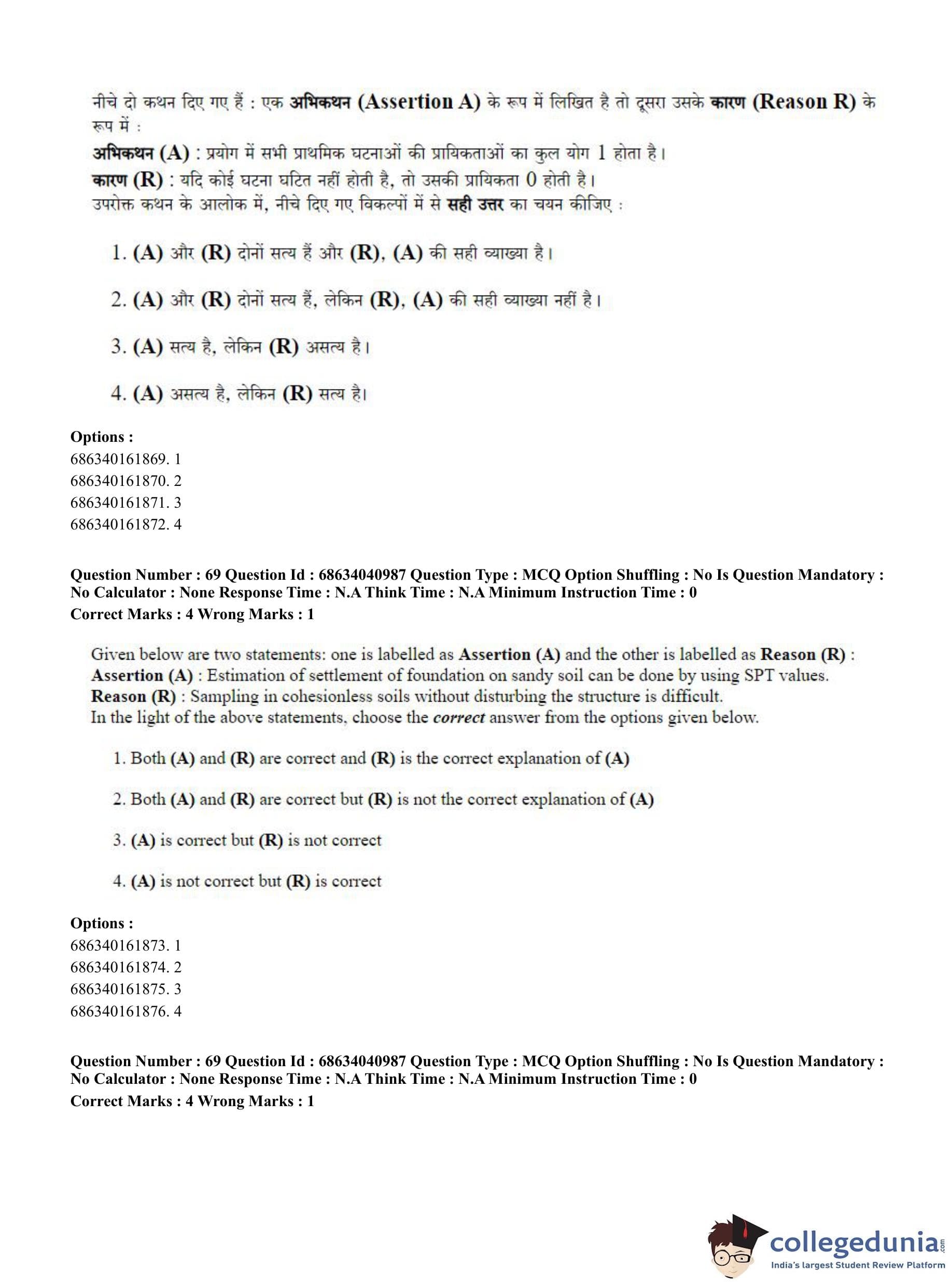 CUET PG 2023 Civil, Structural and Transport Engg Question Paper in Hindi (June 30 - Shift 3)